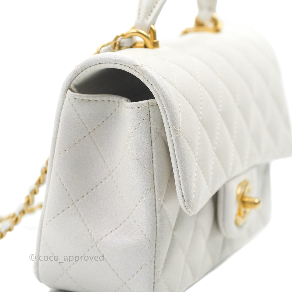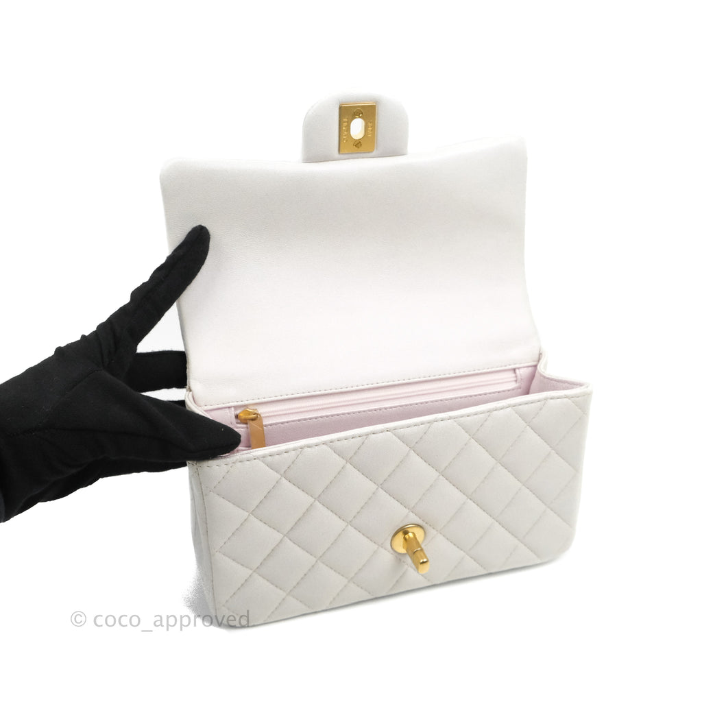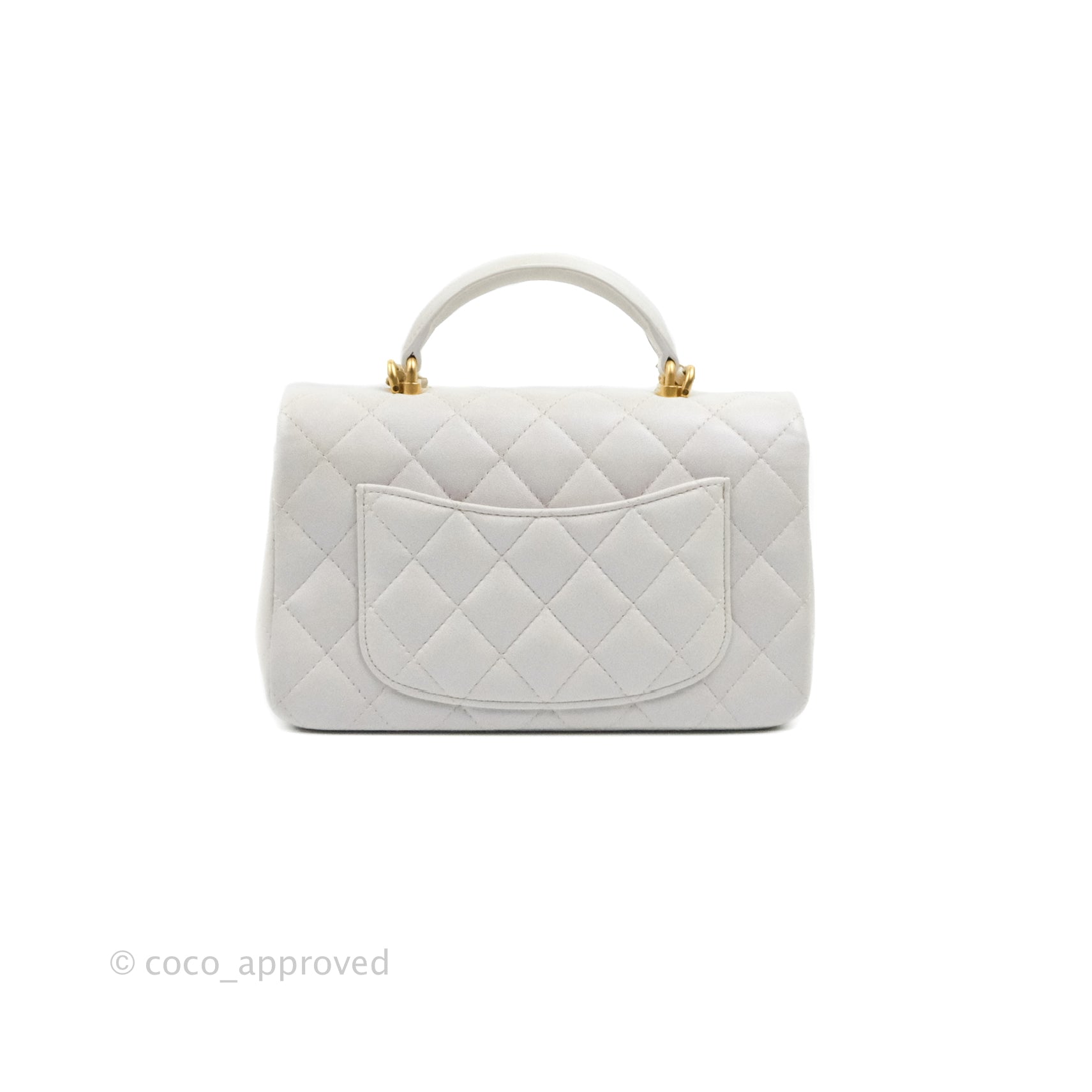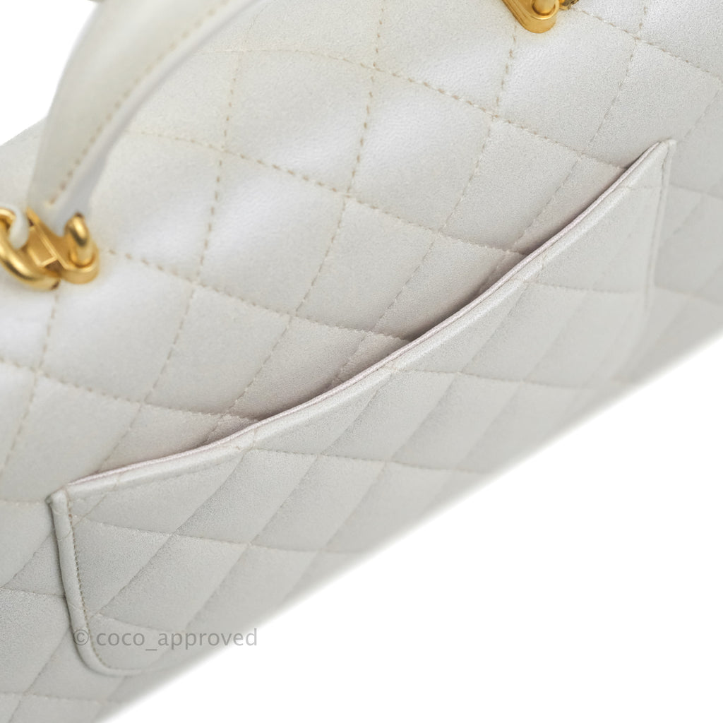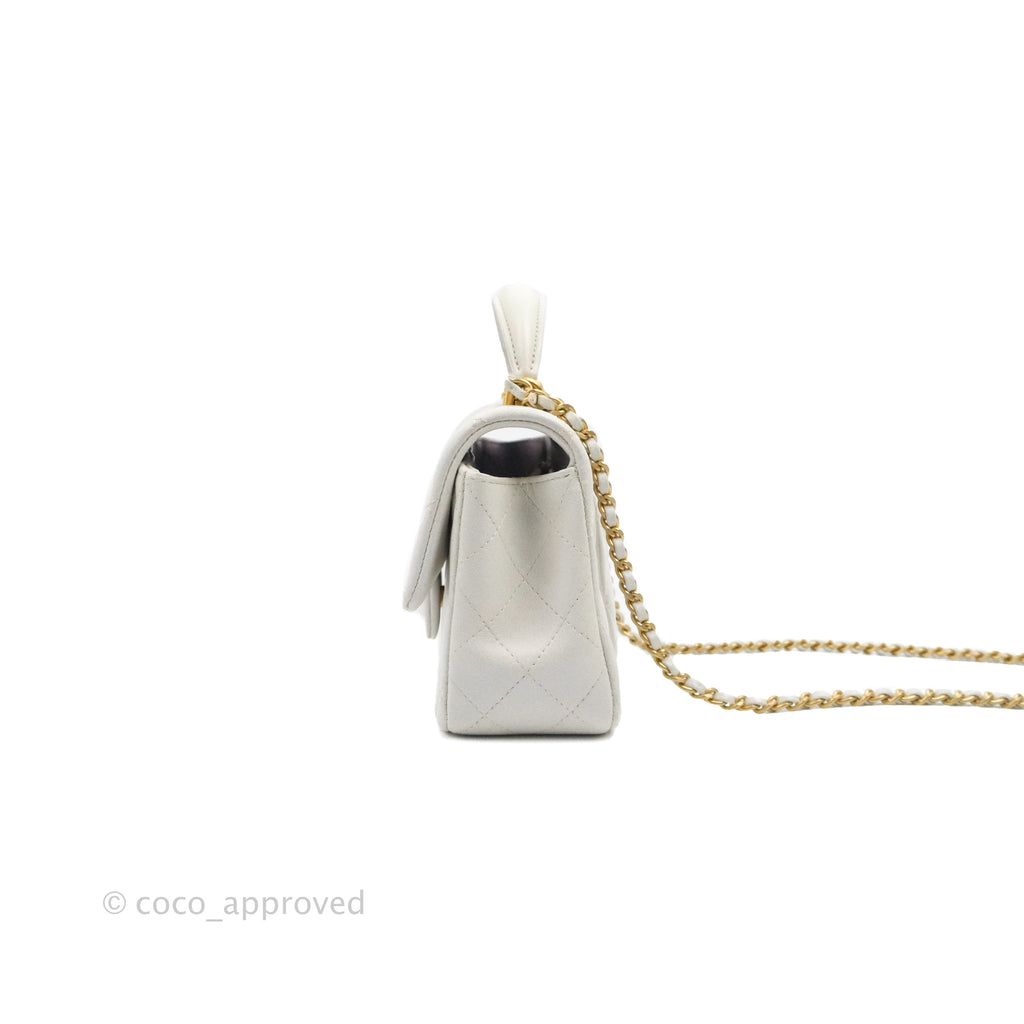 Chanel Top Handle Mini Rectangular Flap Bag Iridescent White Lambskin Aged Gold Hardware