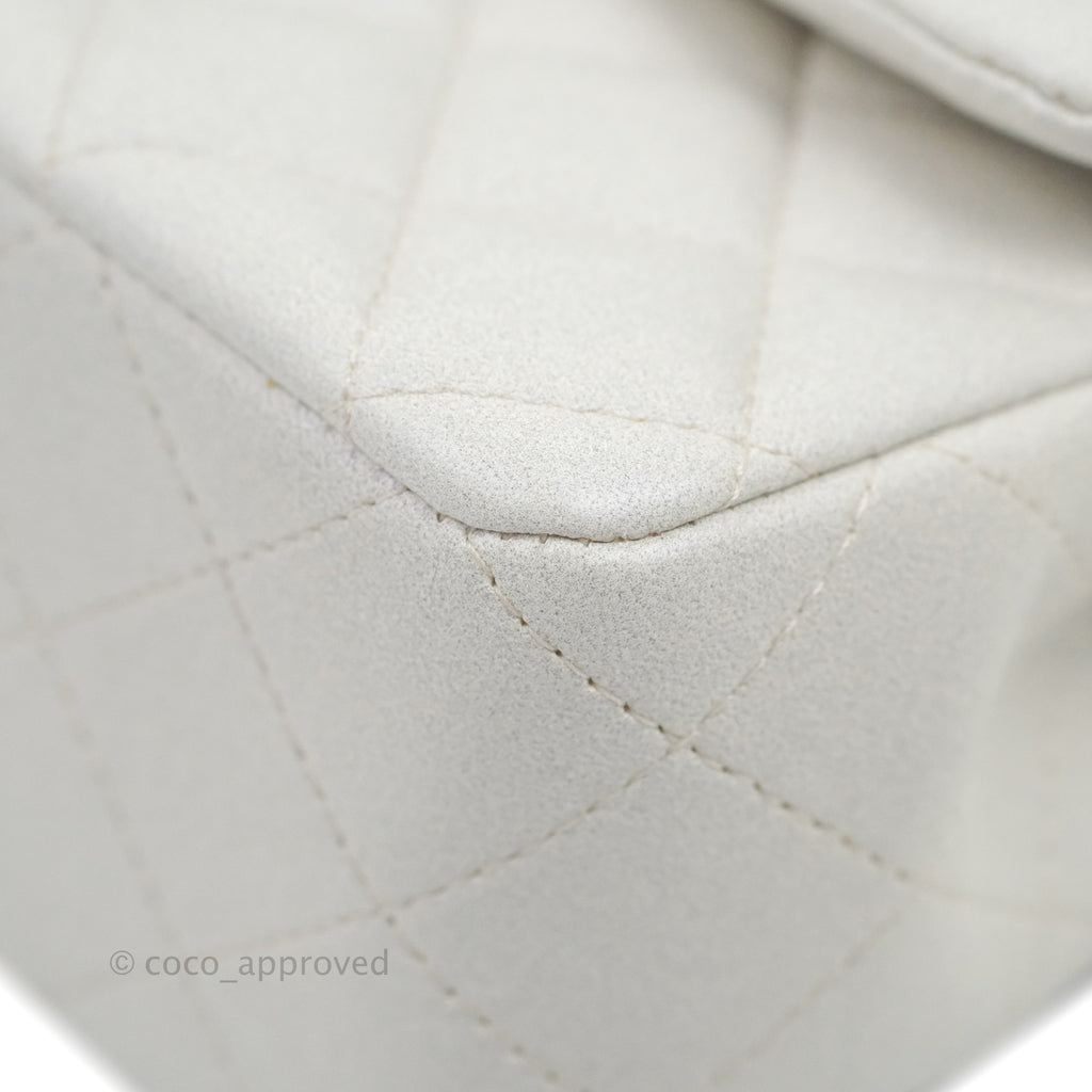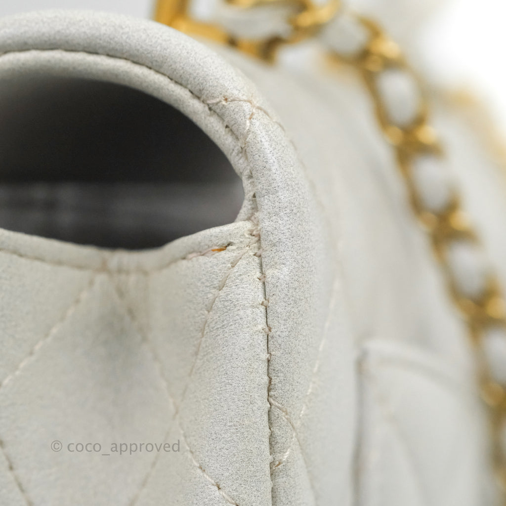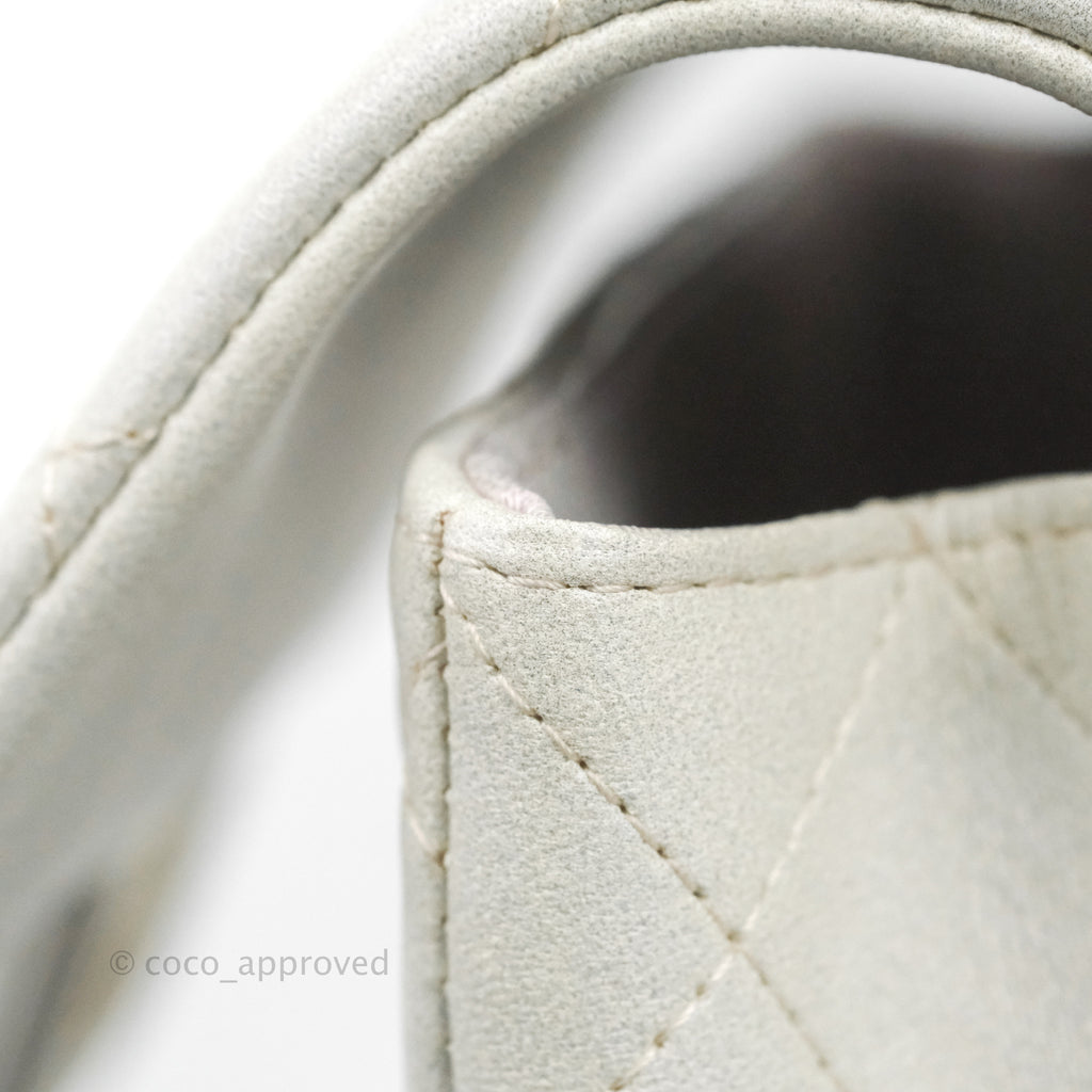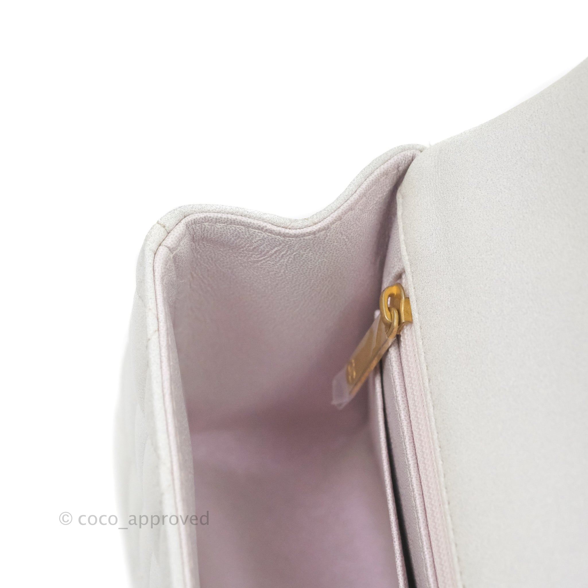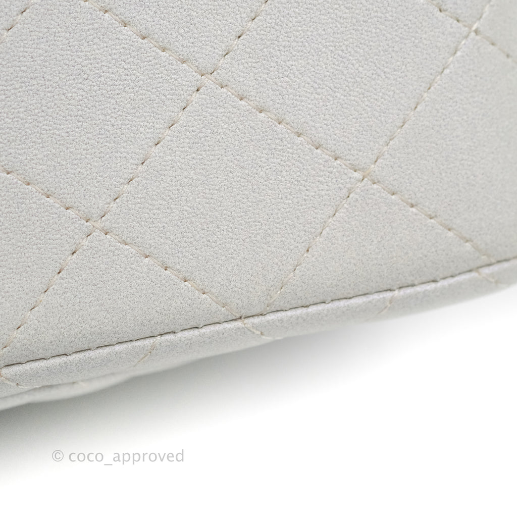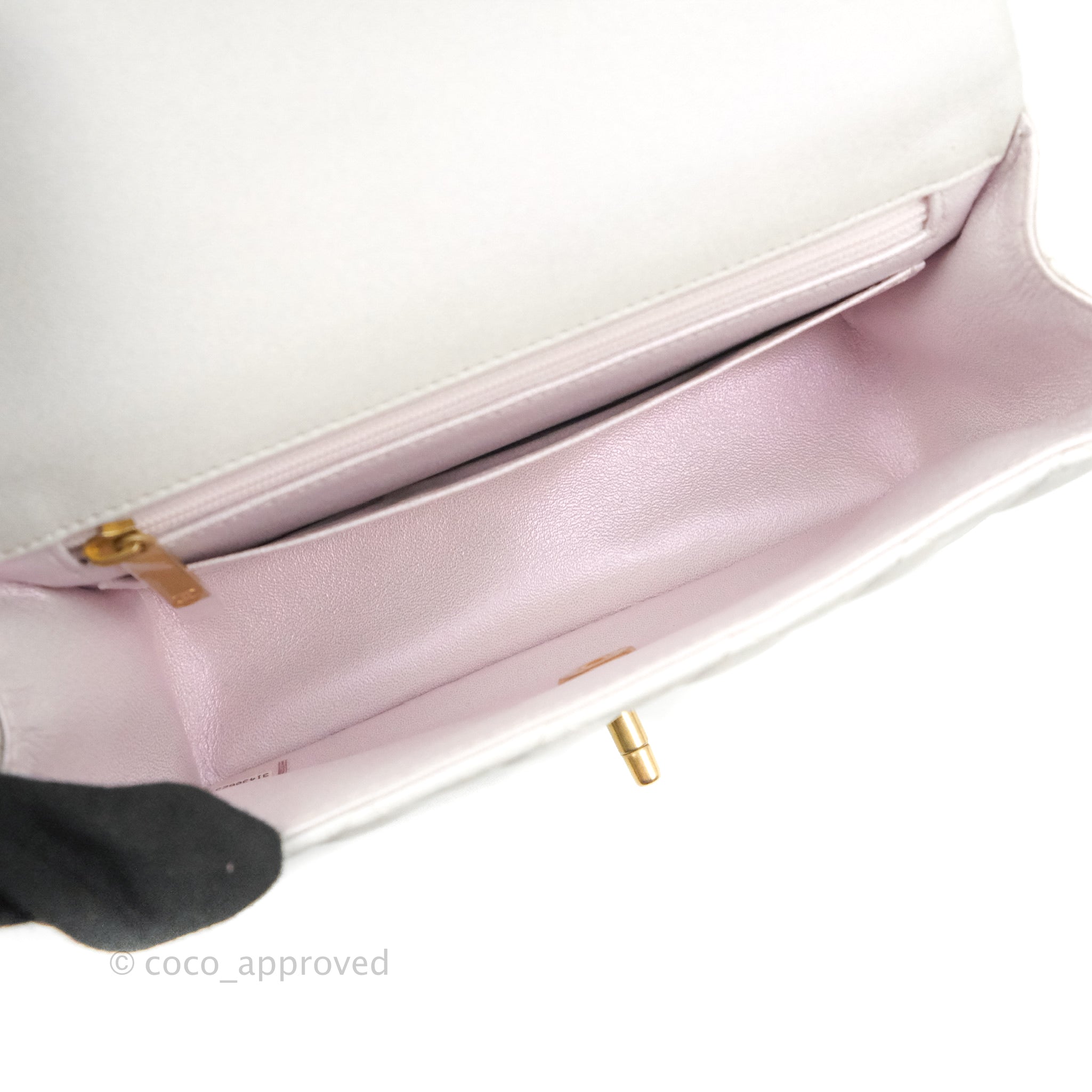 Chanel Top Handle Mini Rectangular Flap Bag Iridescent White Lambskin Aged Gold Hardware