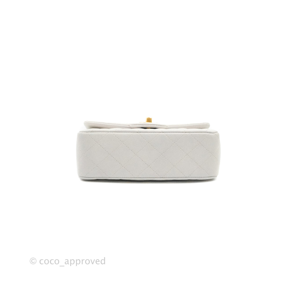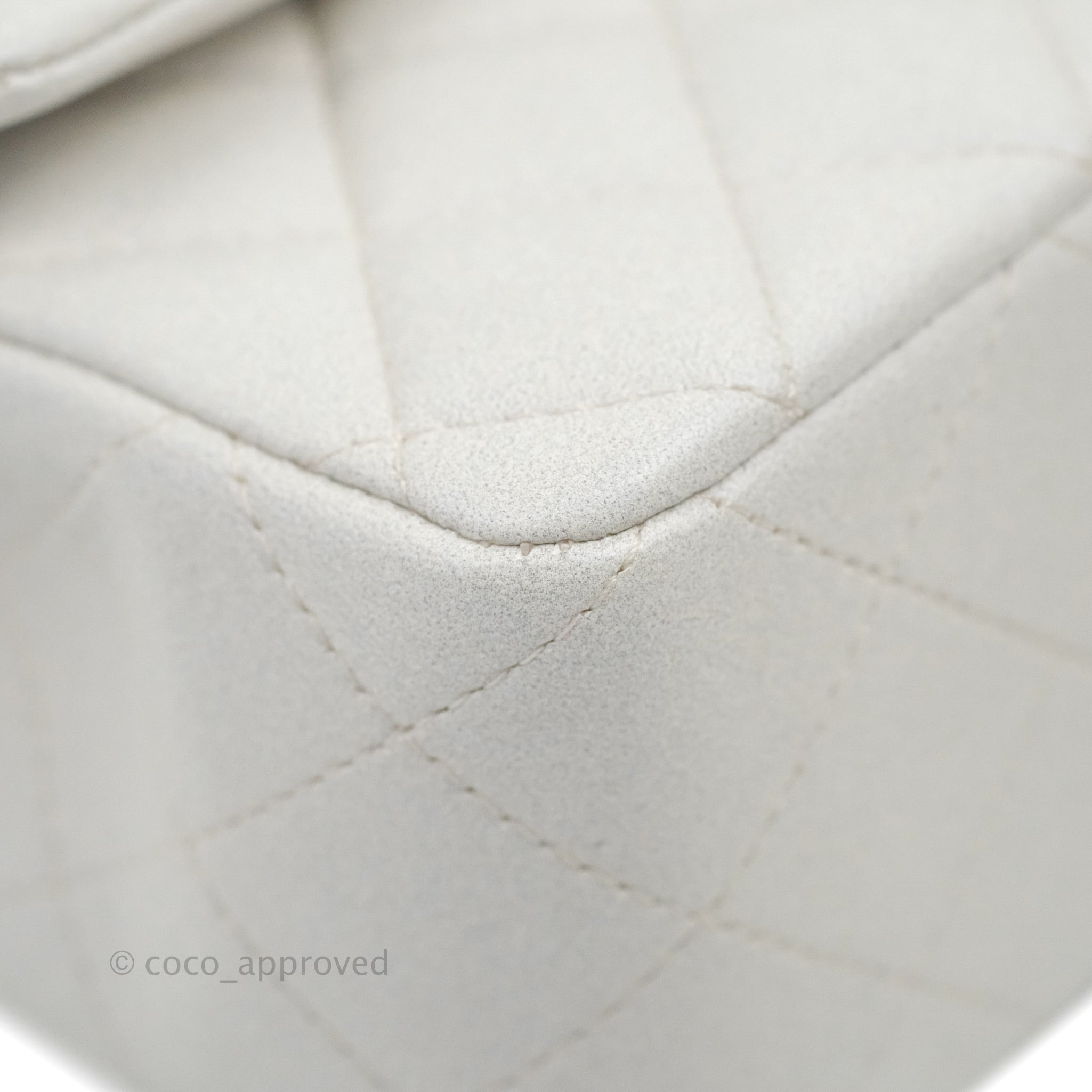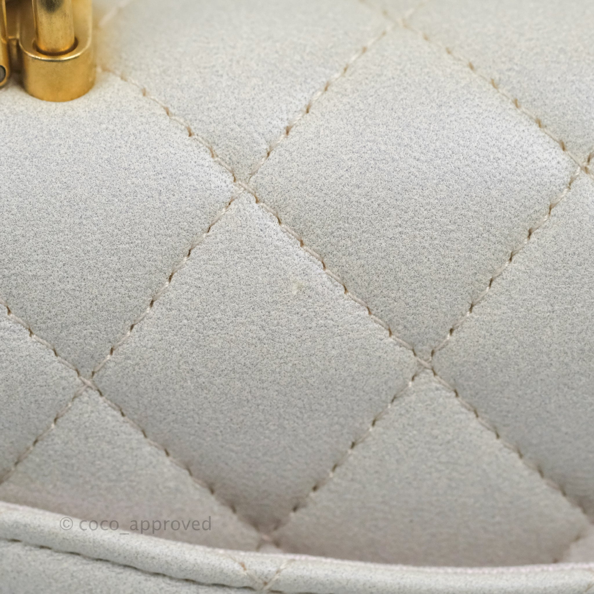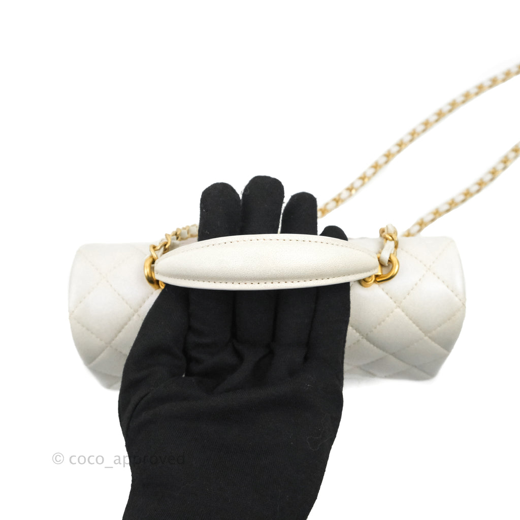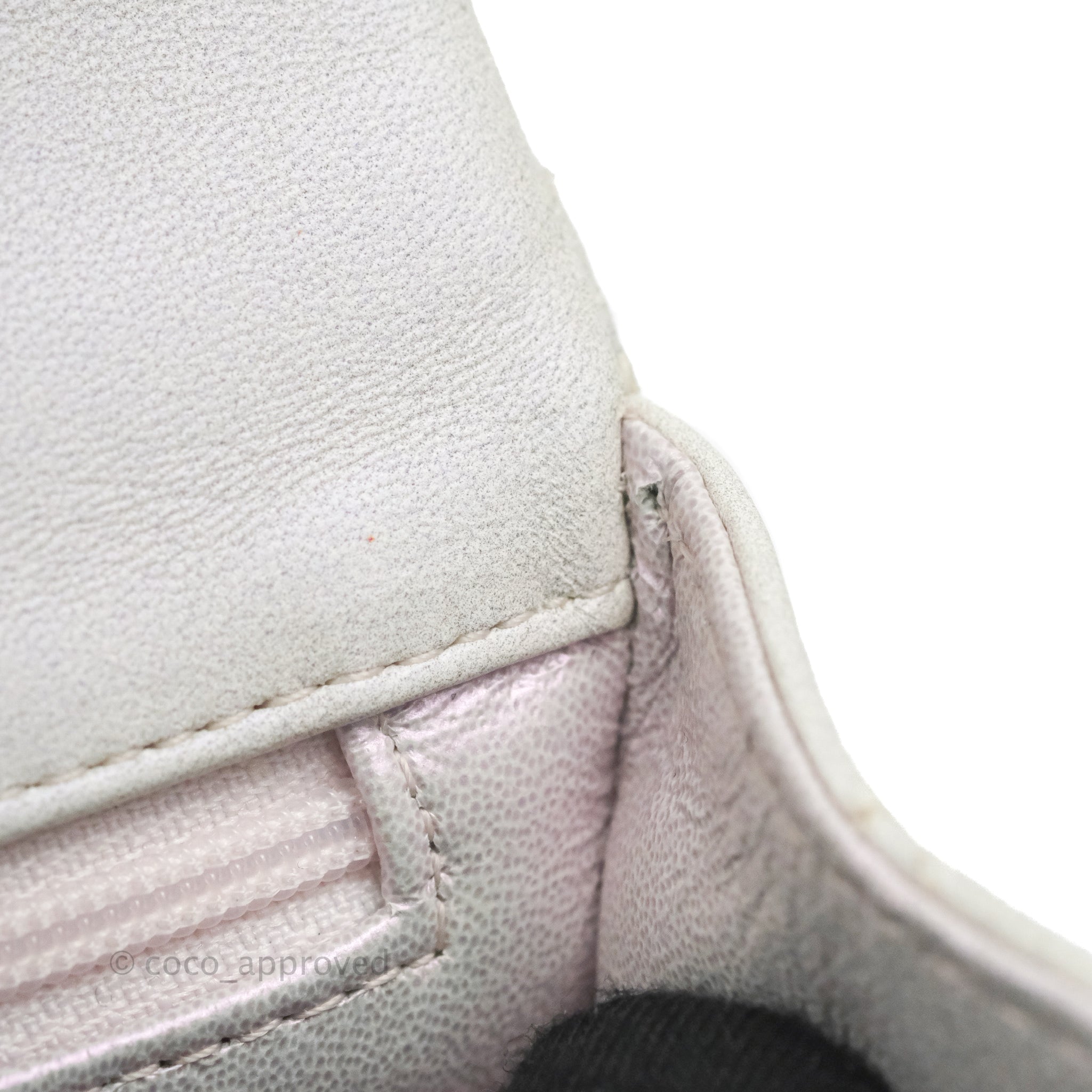 Chanel Top Handle Mini Rectangular Flap Bag Iridescent White Lambskin Aged Gold Hardware