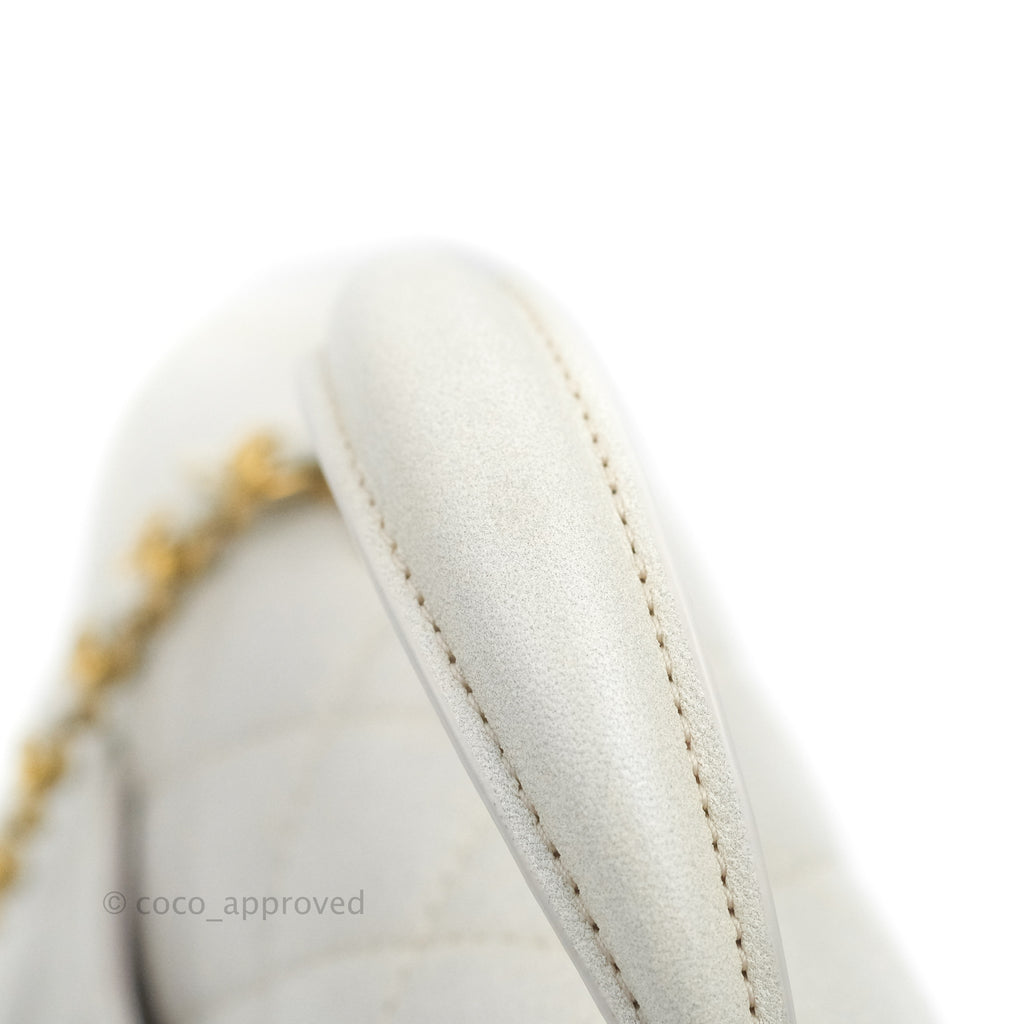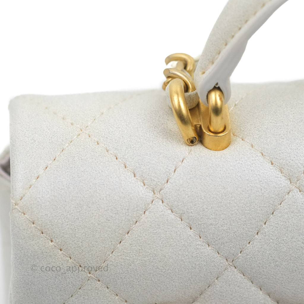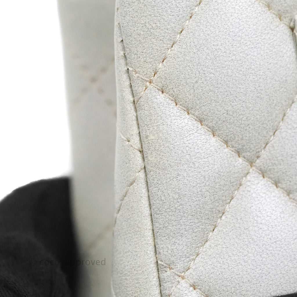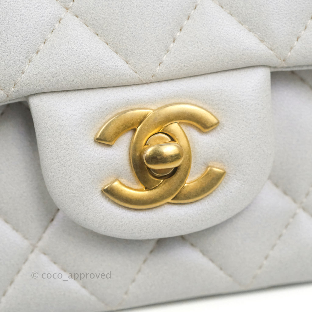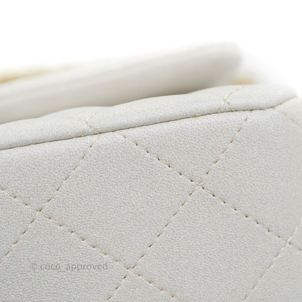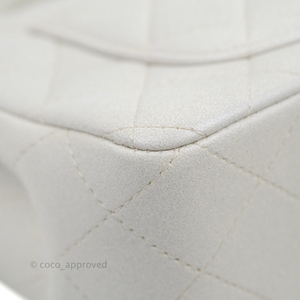 Chanel Top Handle Mini Rectangular Flap Bag Iridescent White Lambskin Aged Gold Hardware