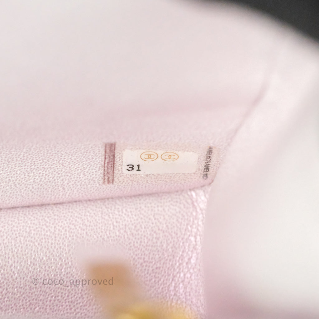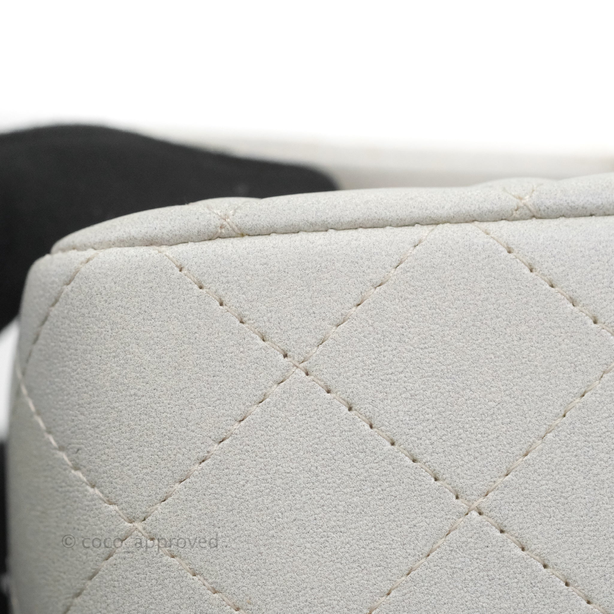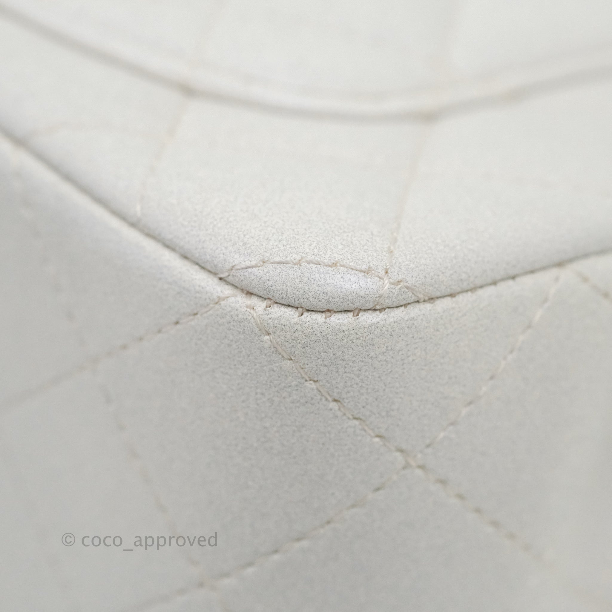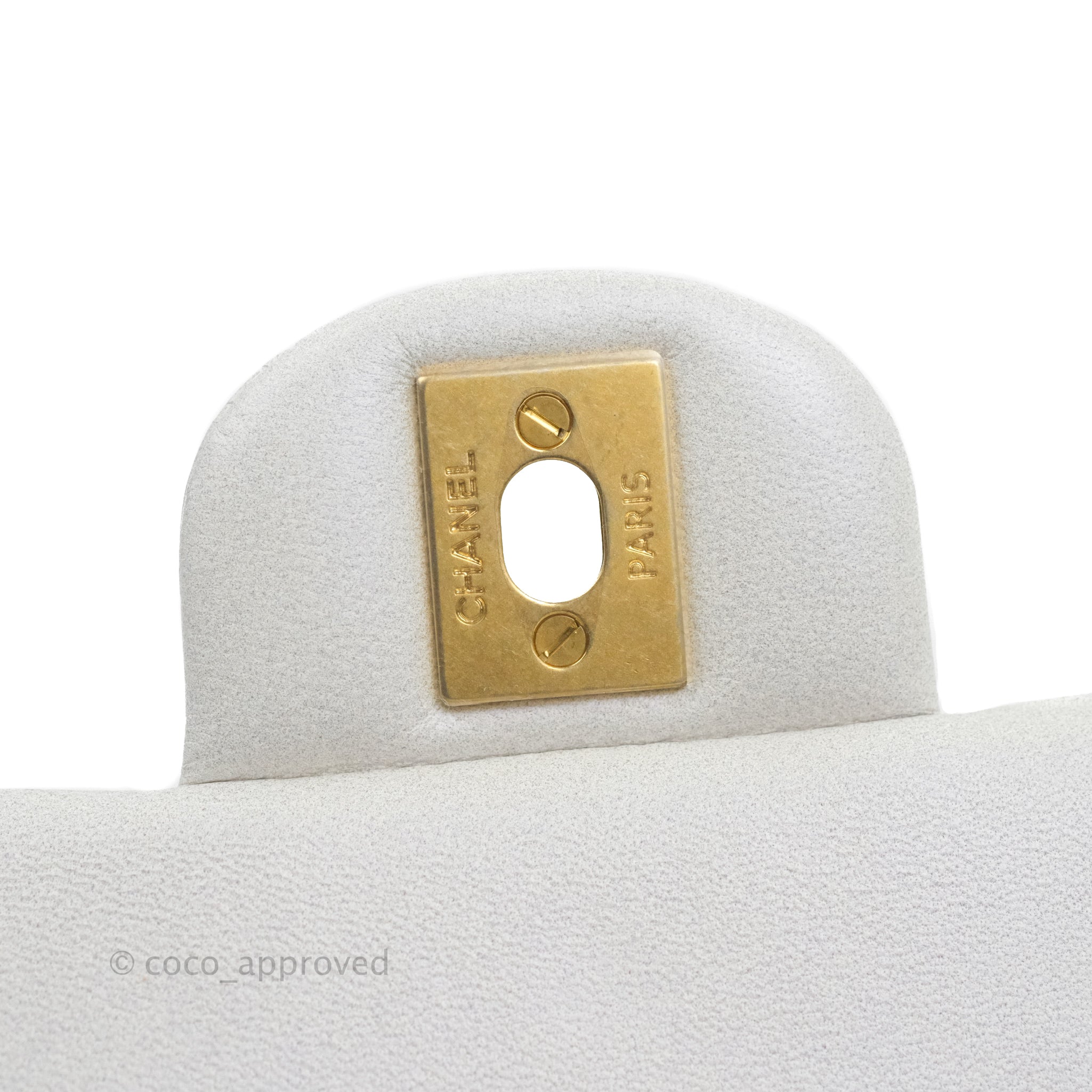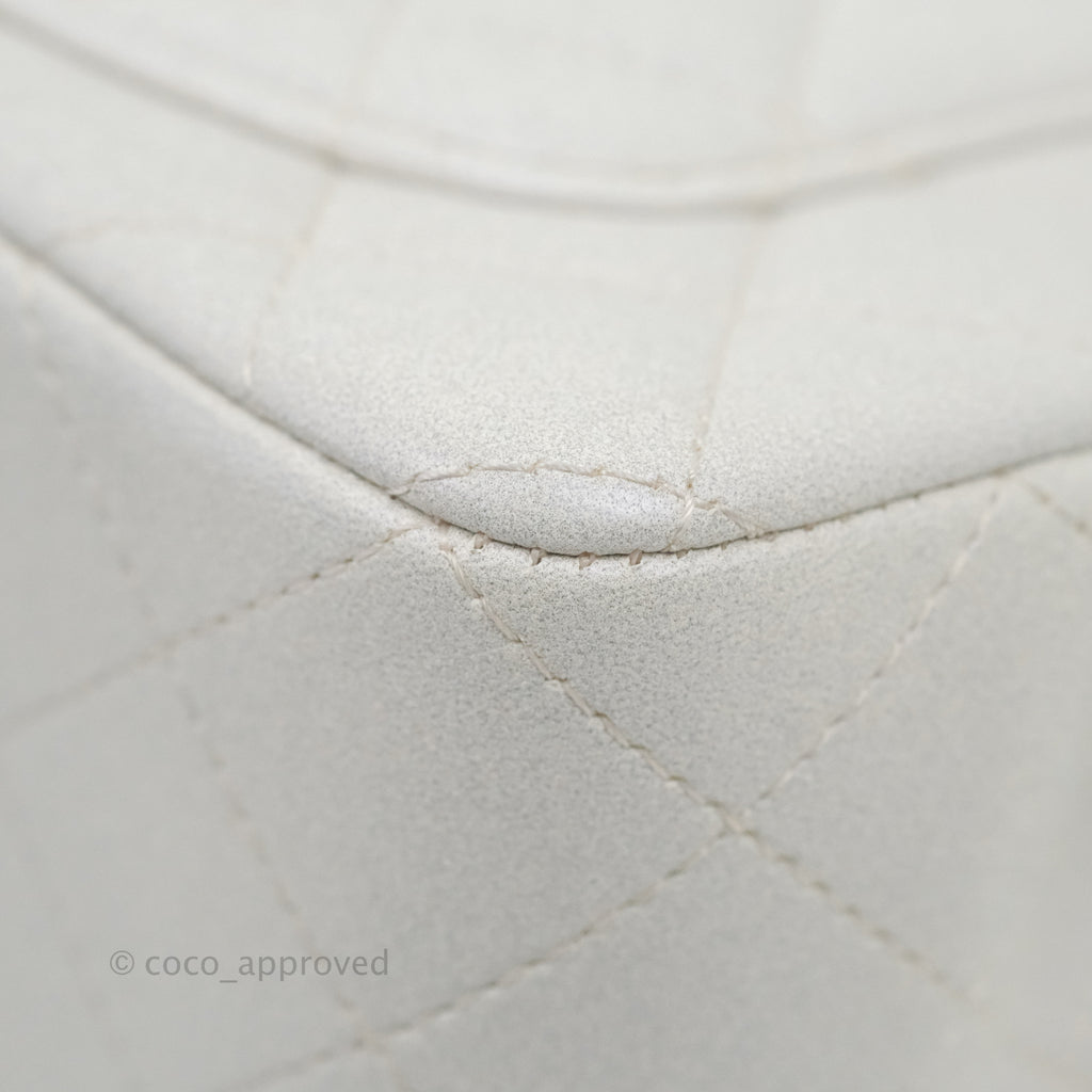 Chanel Top Handle Mini Rectangular Flap Bag Iridescent White Lambskin Aged Gold Hardware