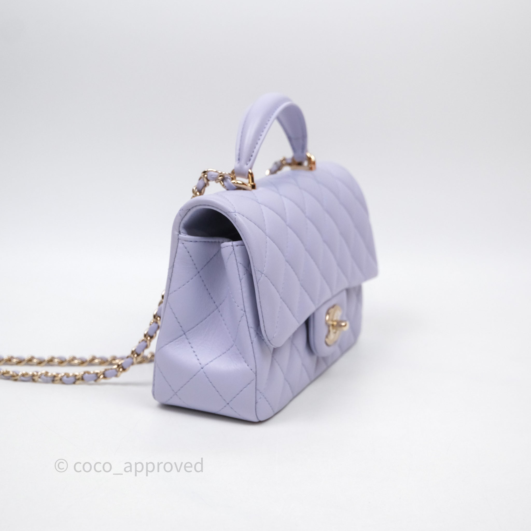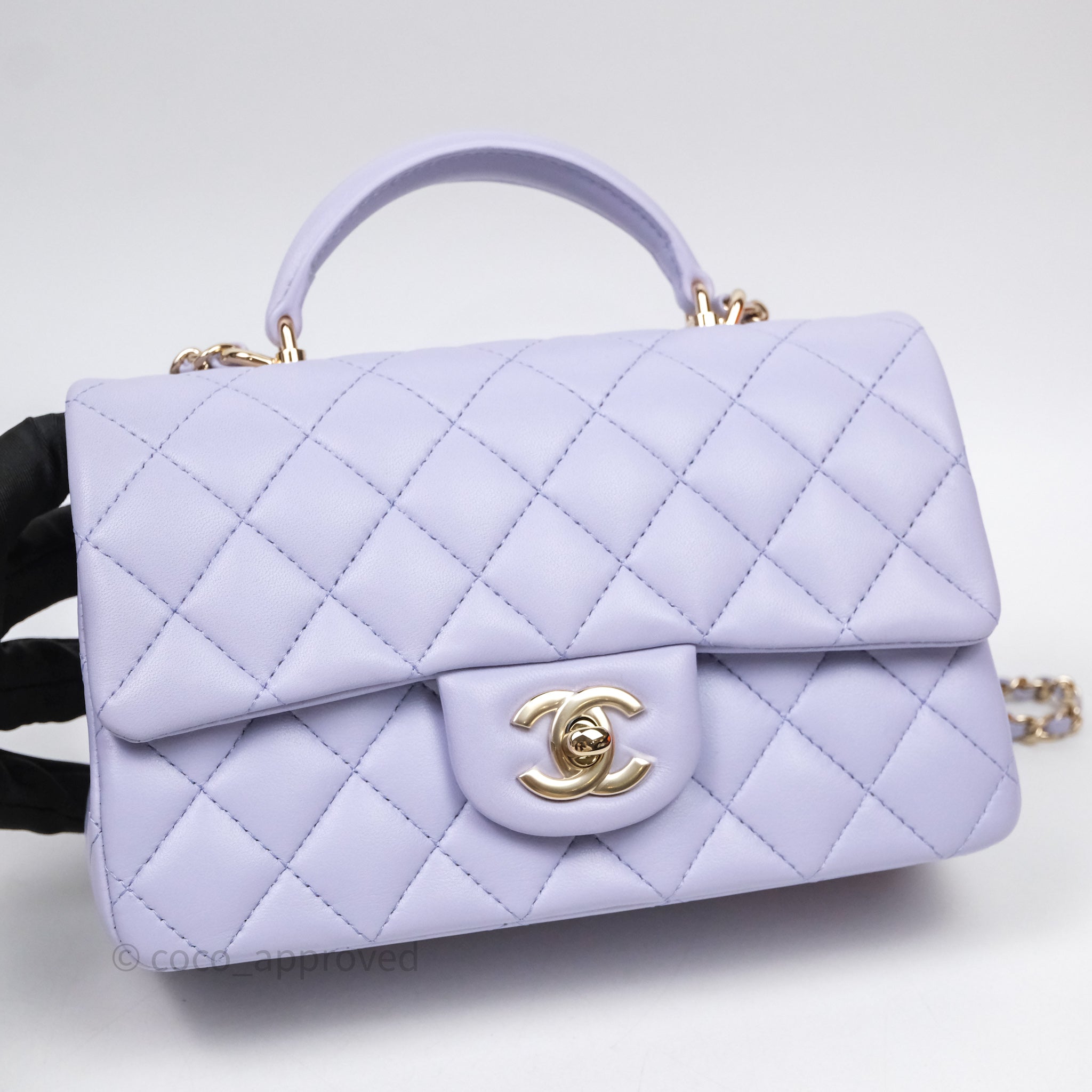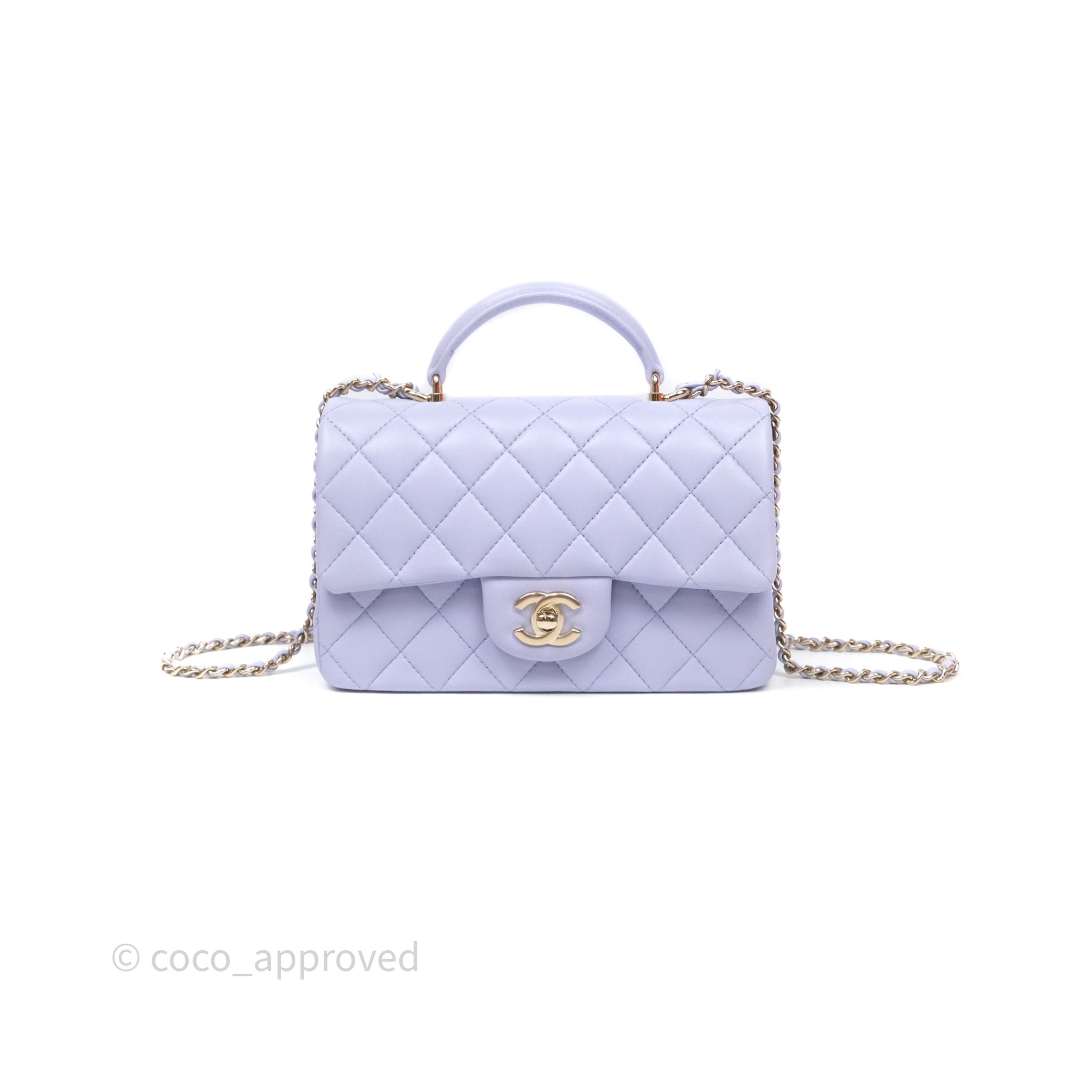 Chanel Top Handle Mini Rectangular Flap Bag Lilac Lambskin Gold Hardware