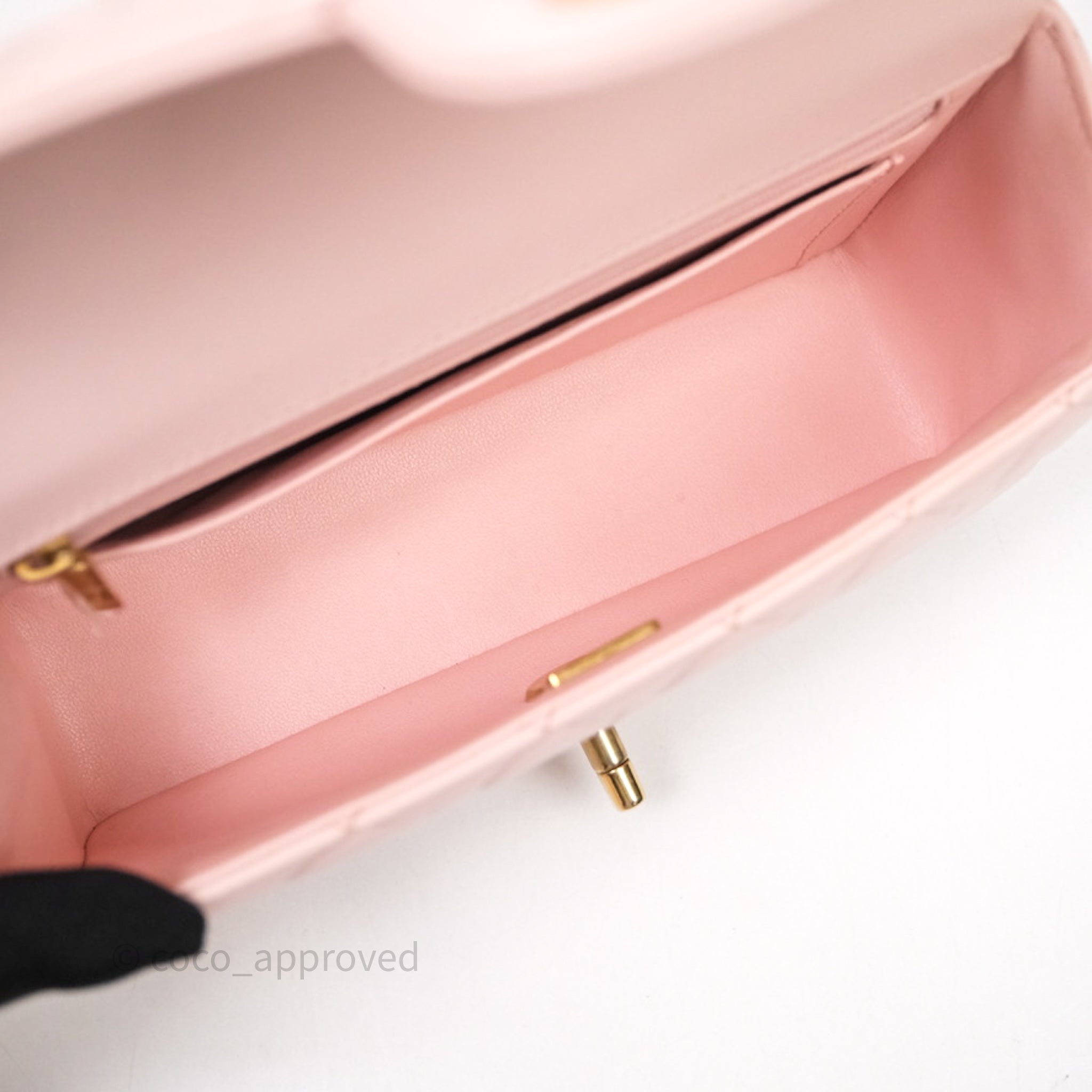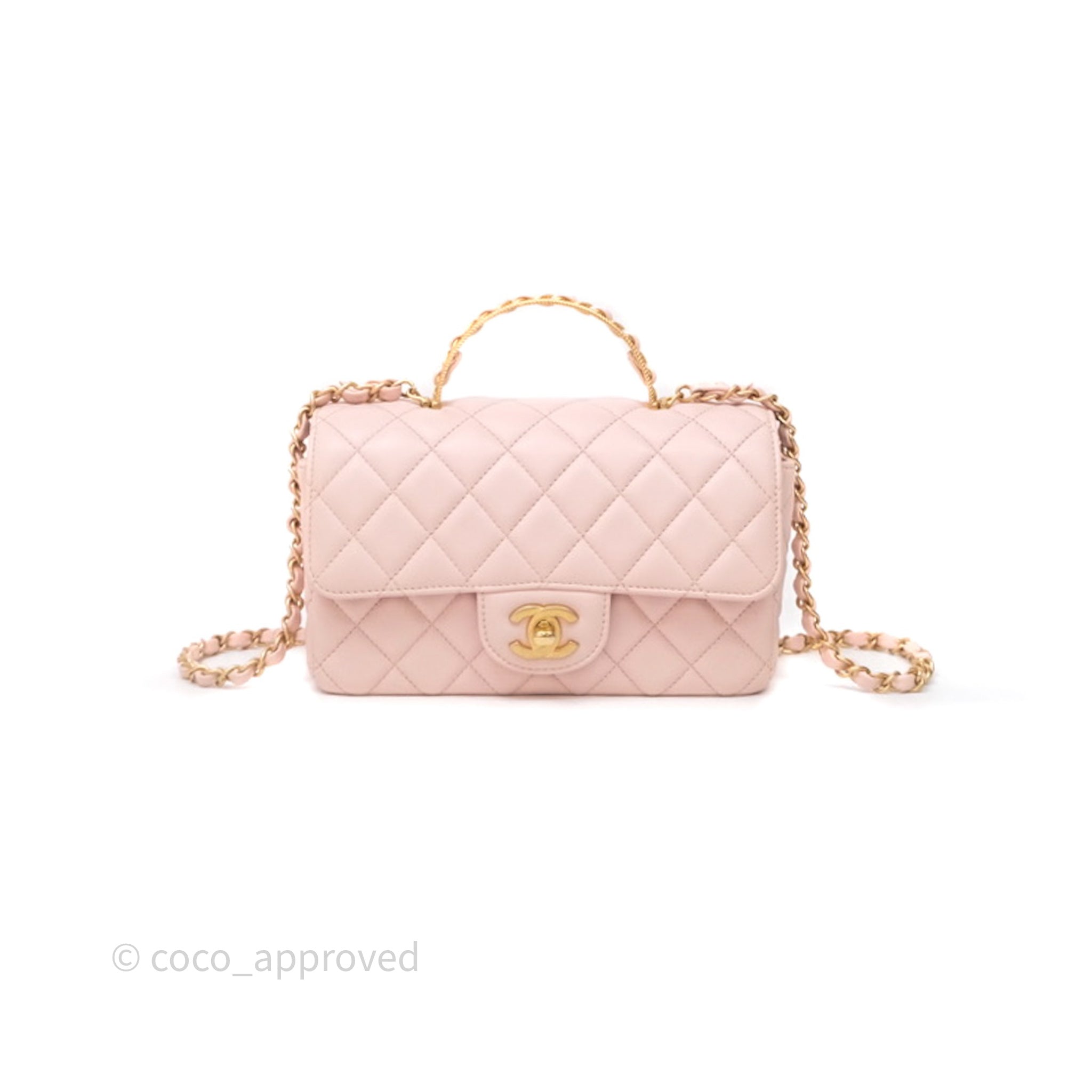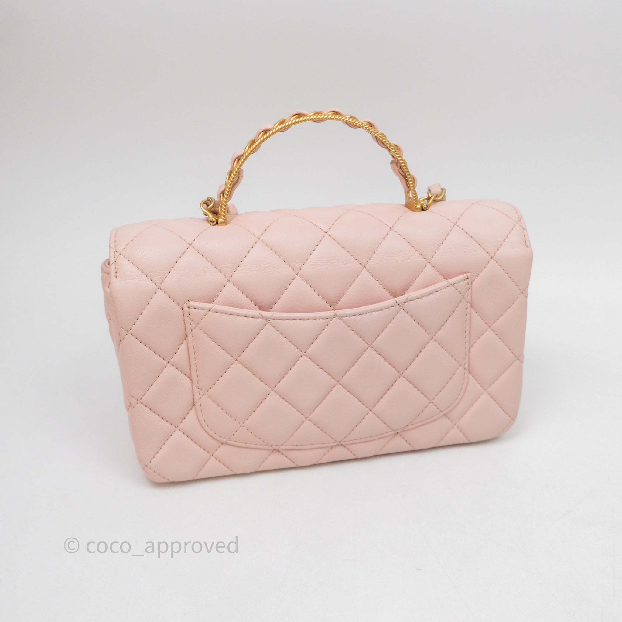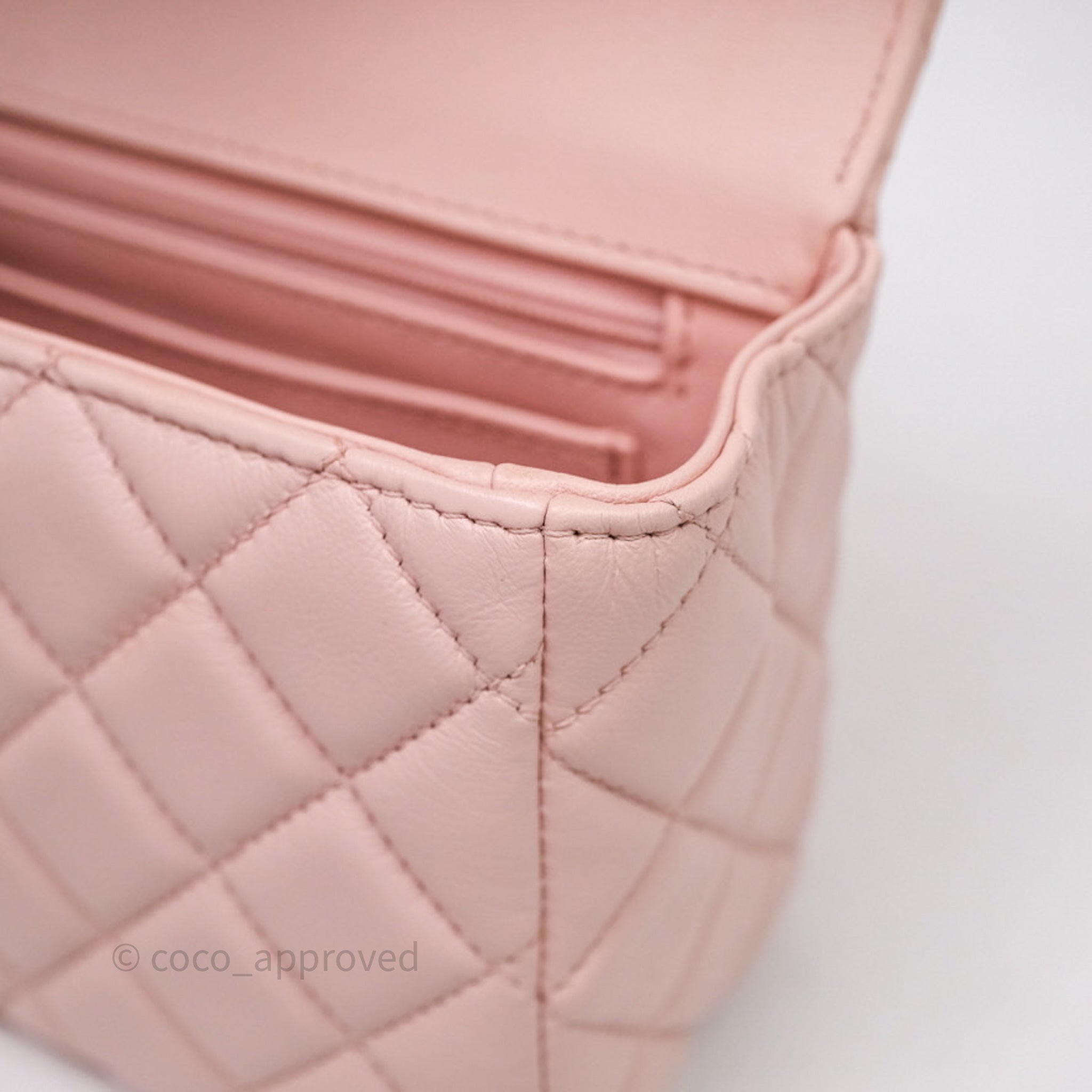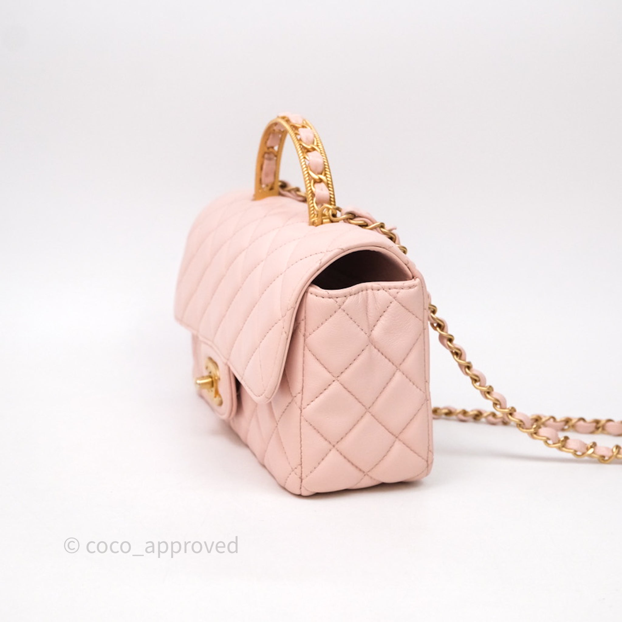 Chanel Top Handle Mini Rectangular Flap Bag Pink Lambskin Aged Gold Hardware