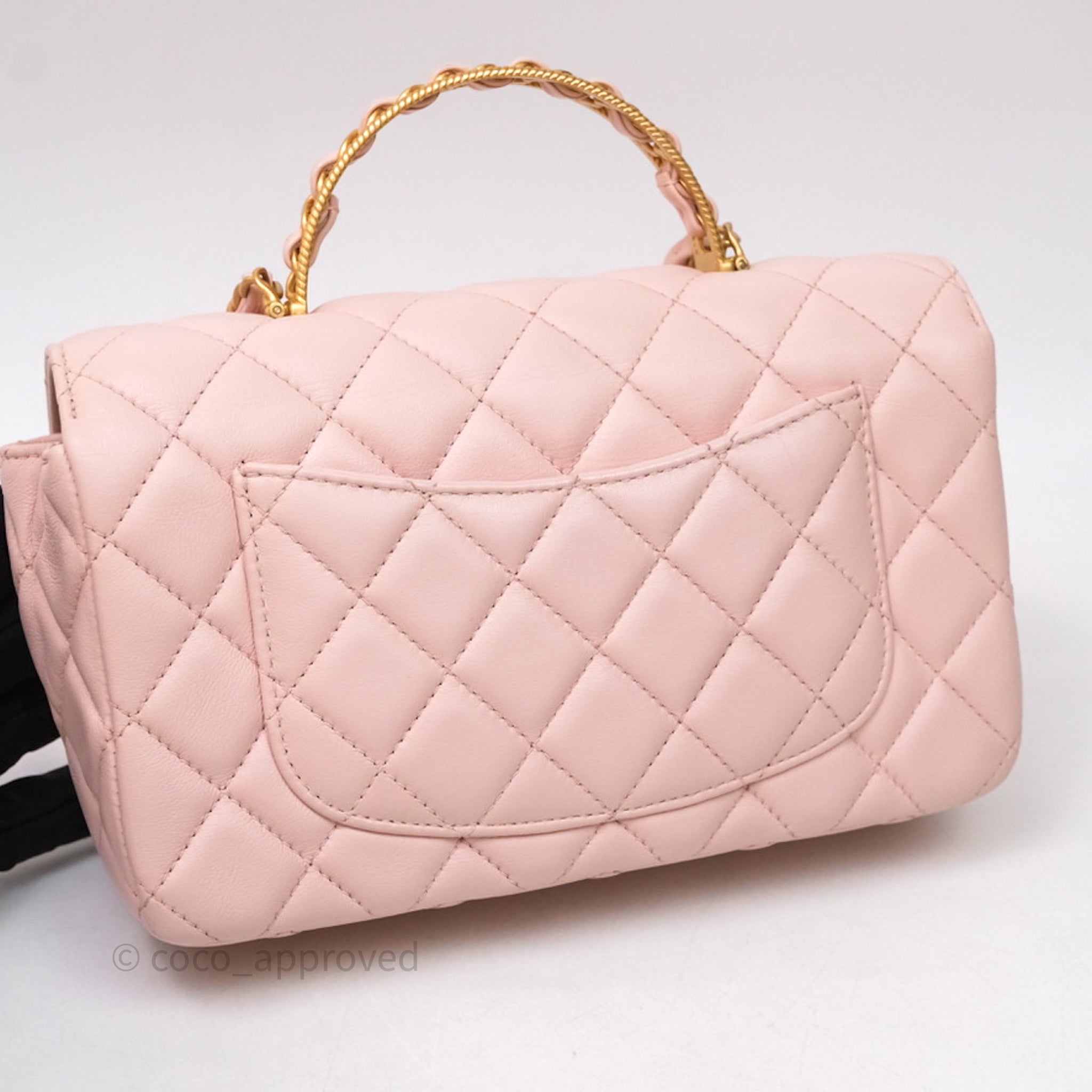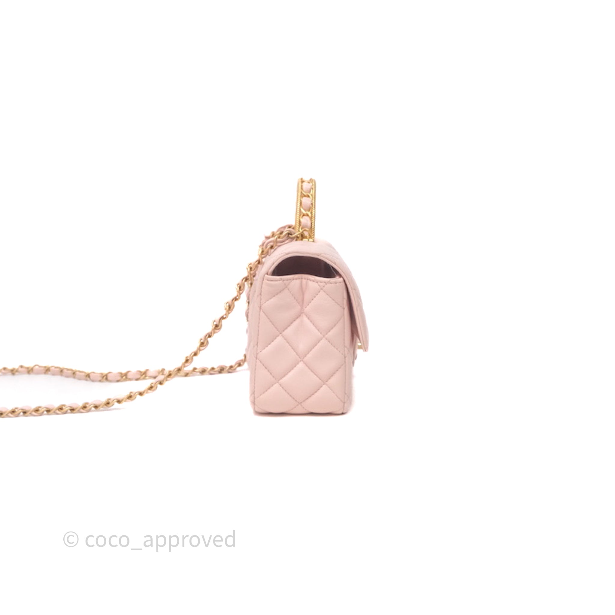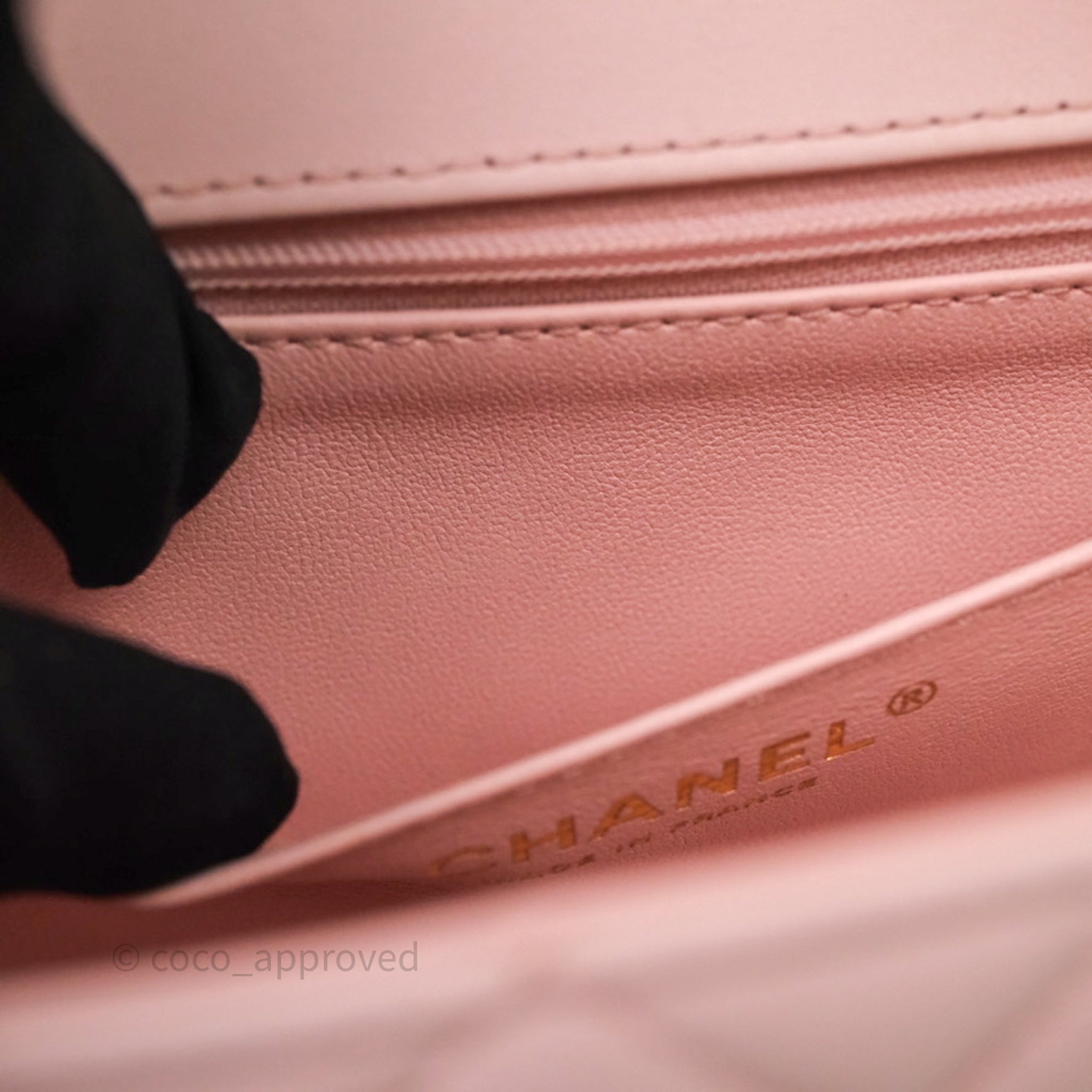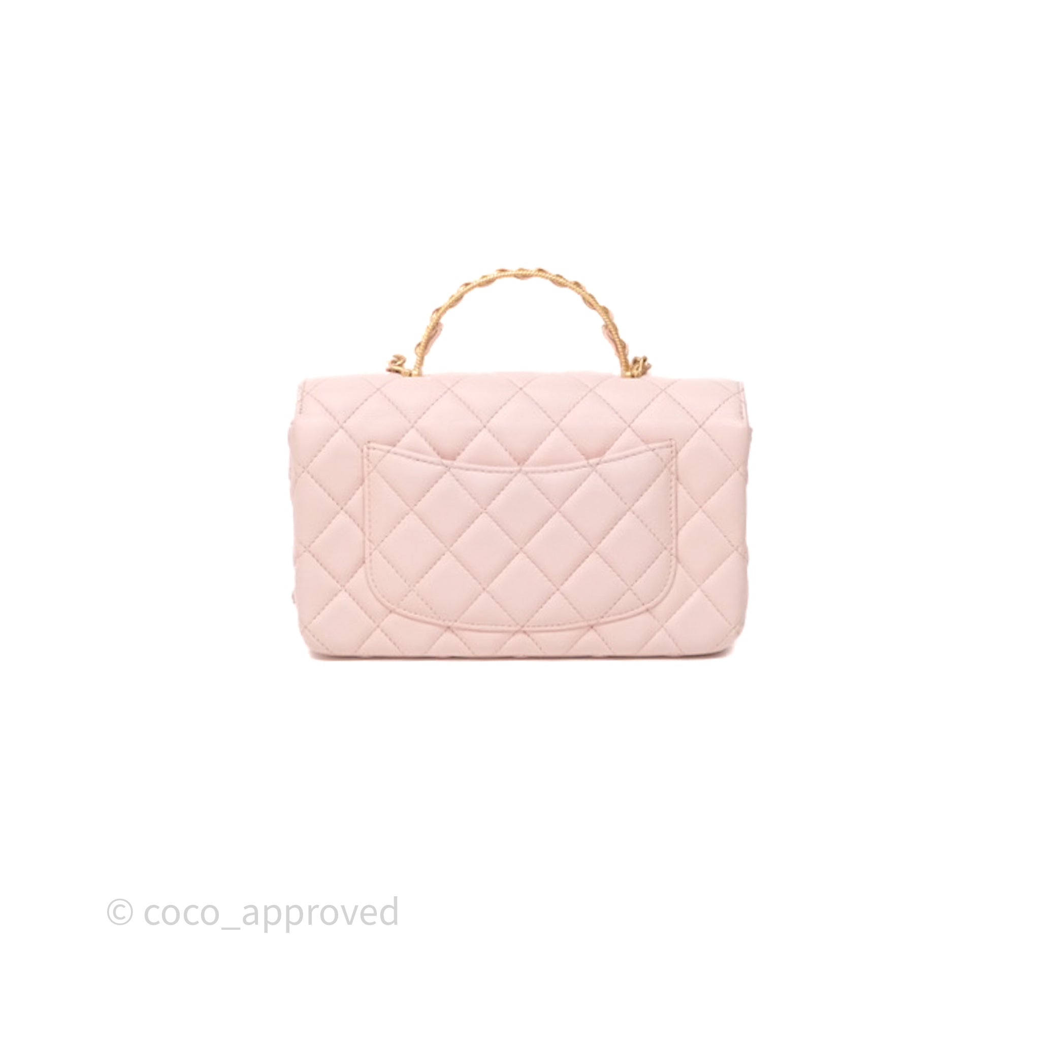 Chanel Top Handle Mini Rectangular Flap Bag Pink Lambskin Aged Gold Hardware