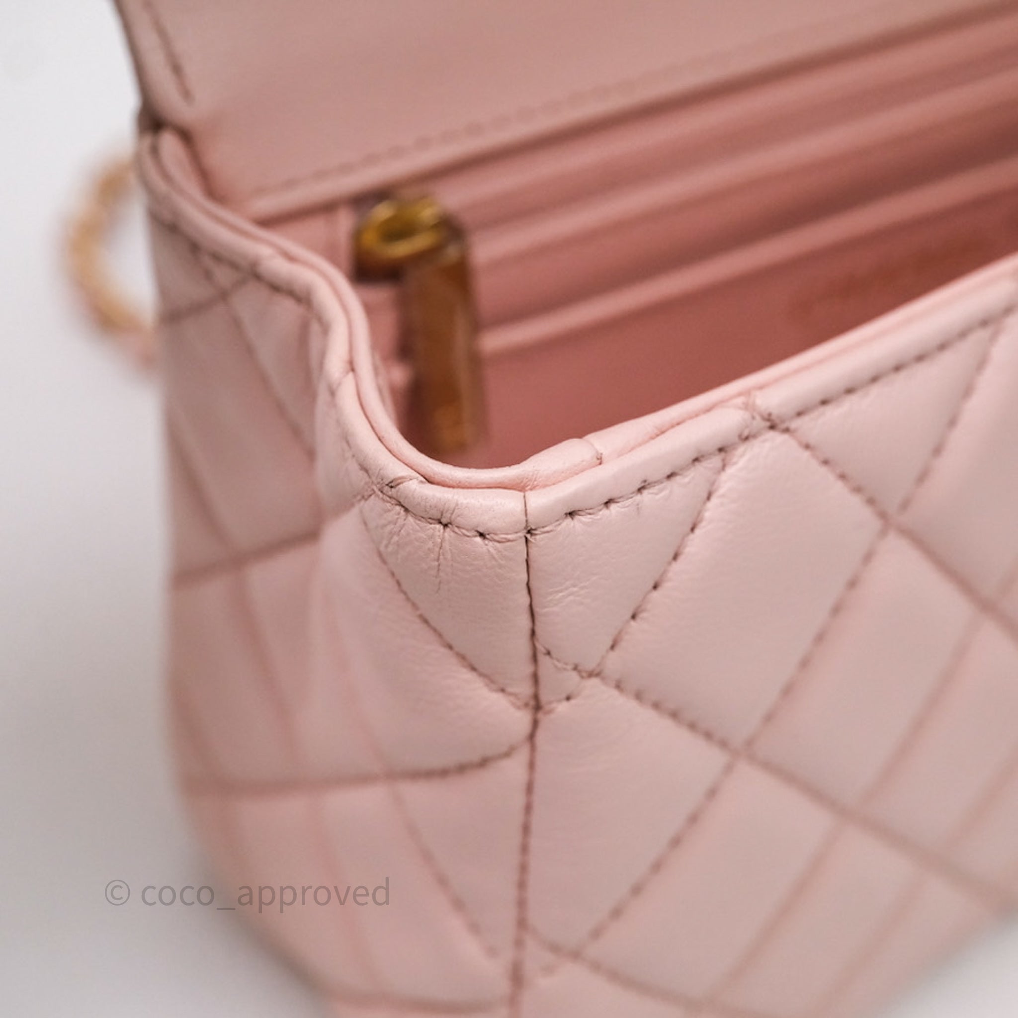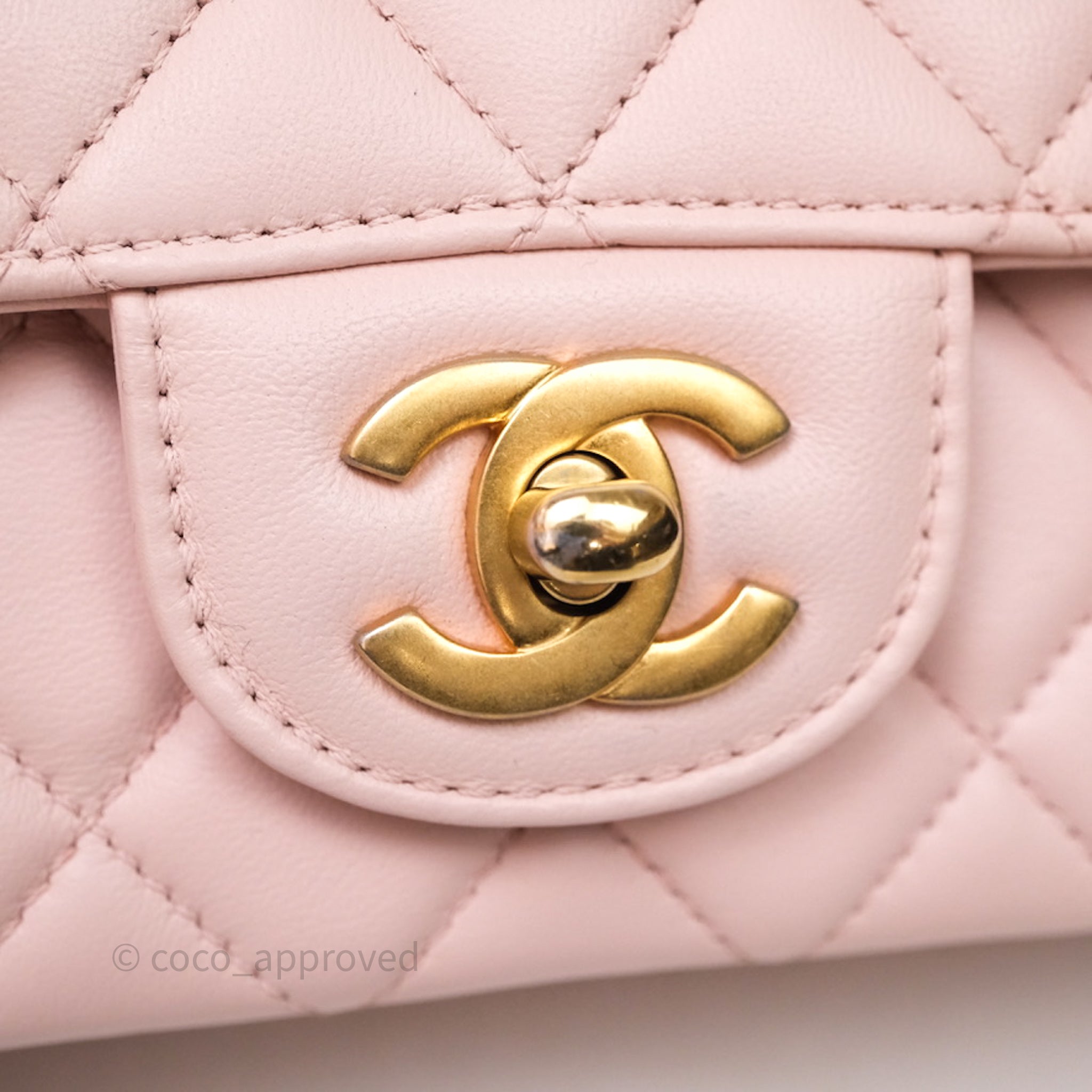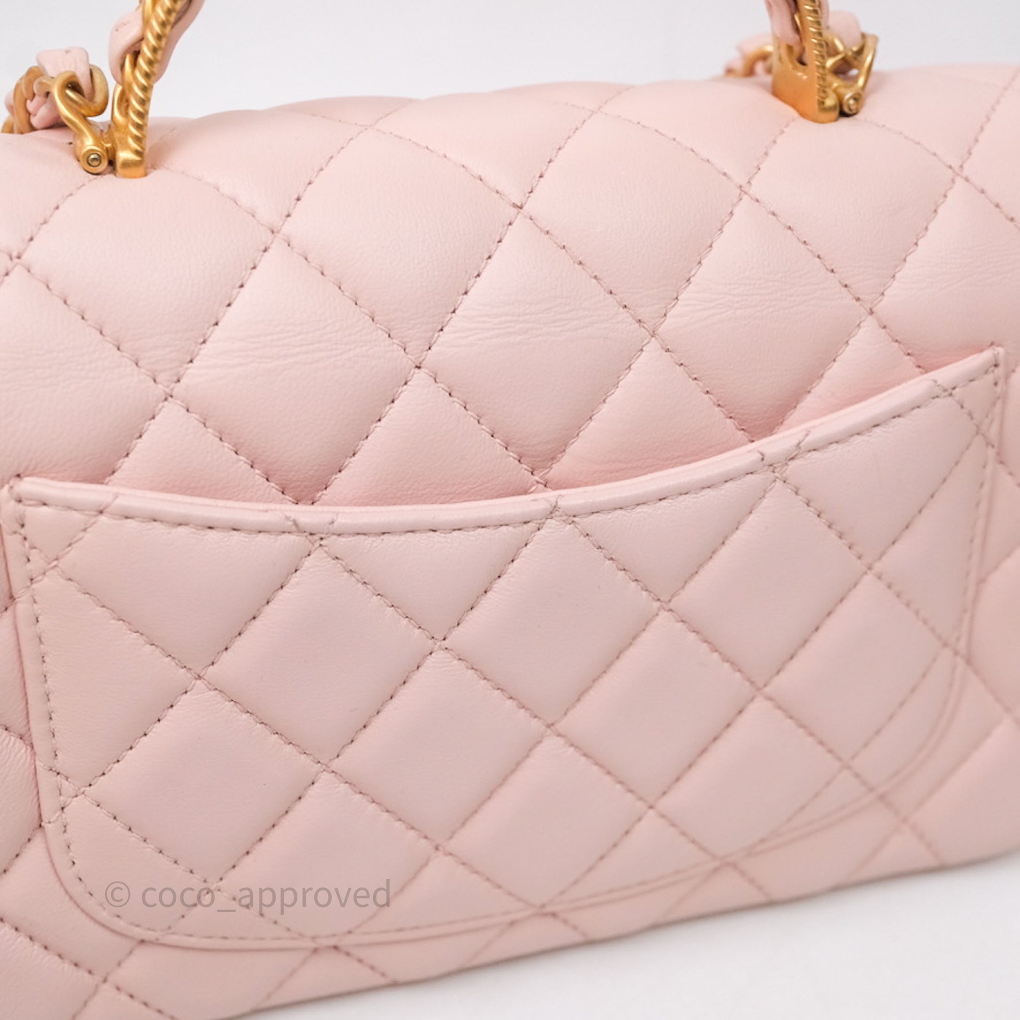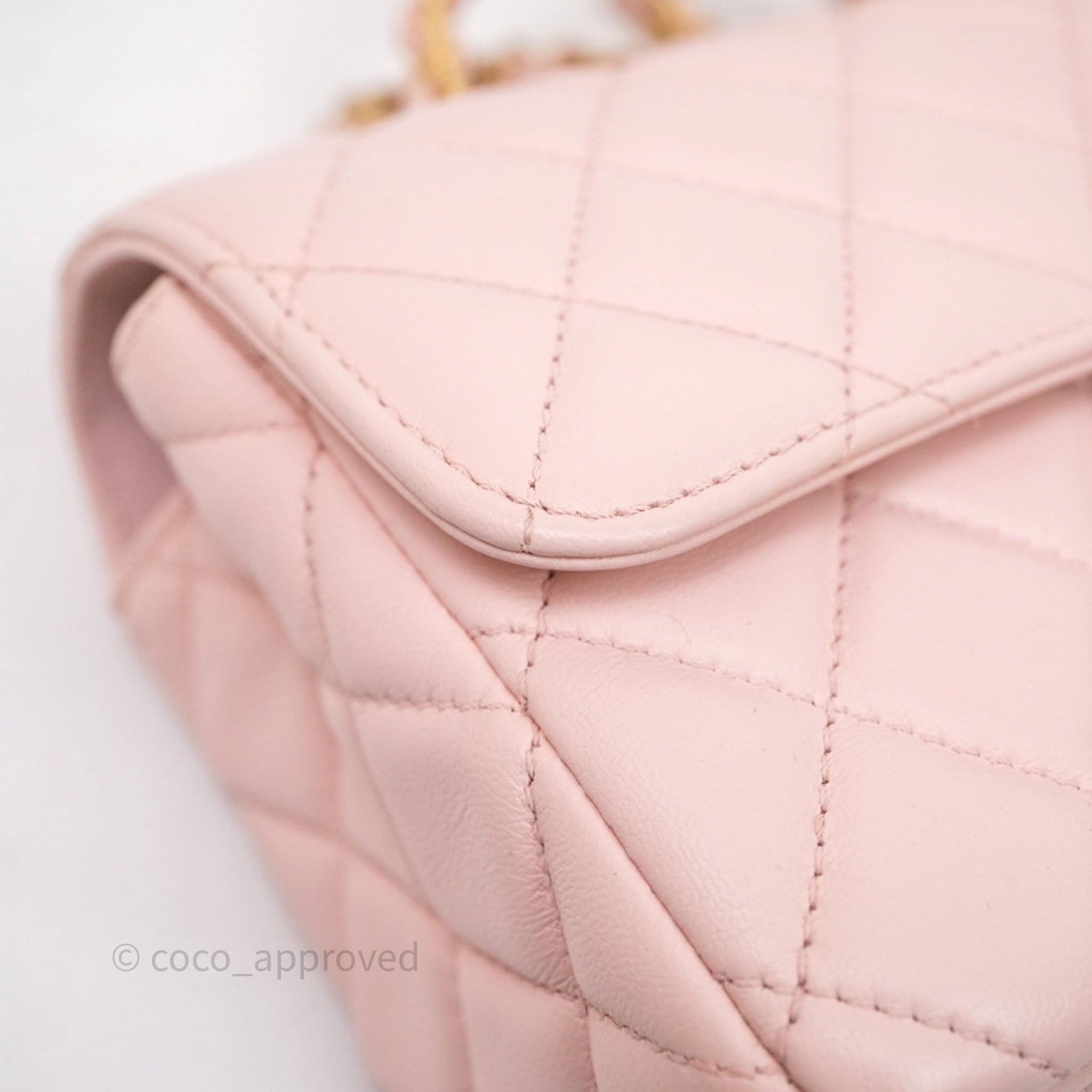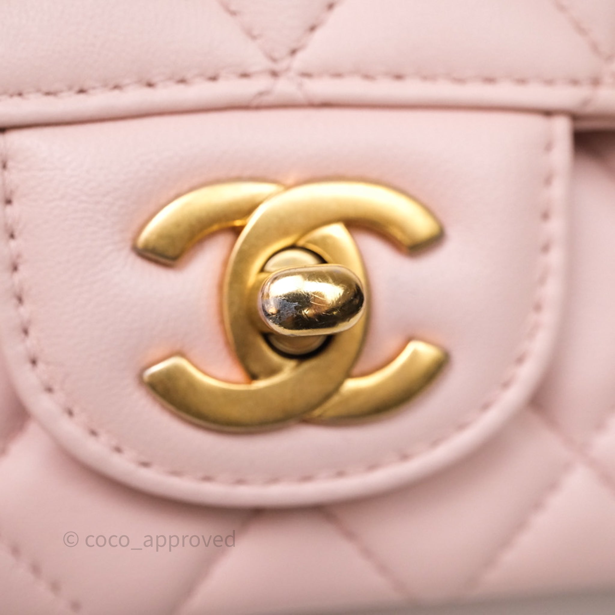 Chanel Top Handle Mini Rectangular Flap Bag Pink Lambskin Aged Gold Hardware