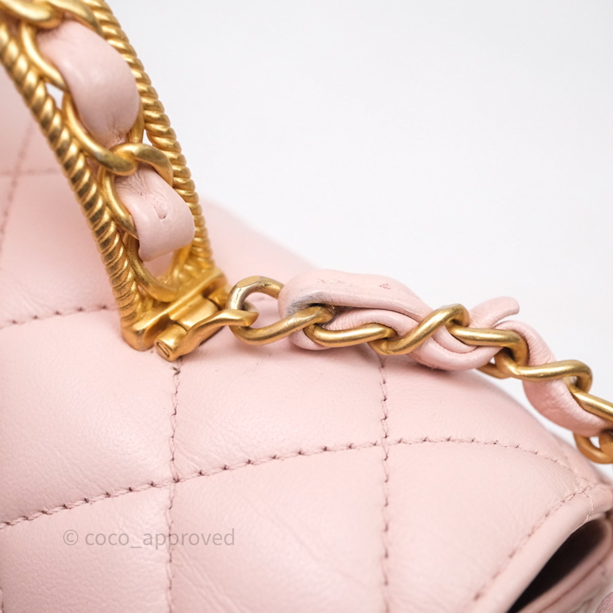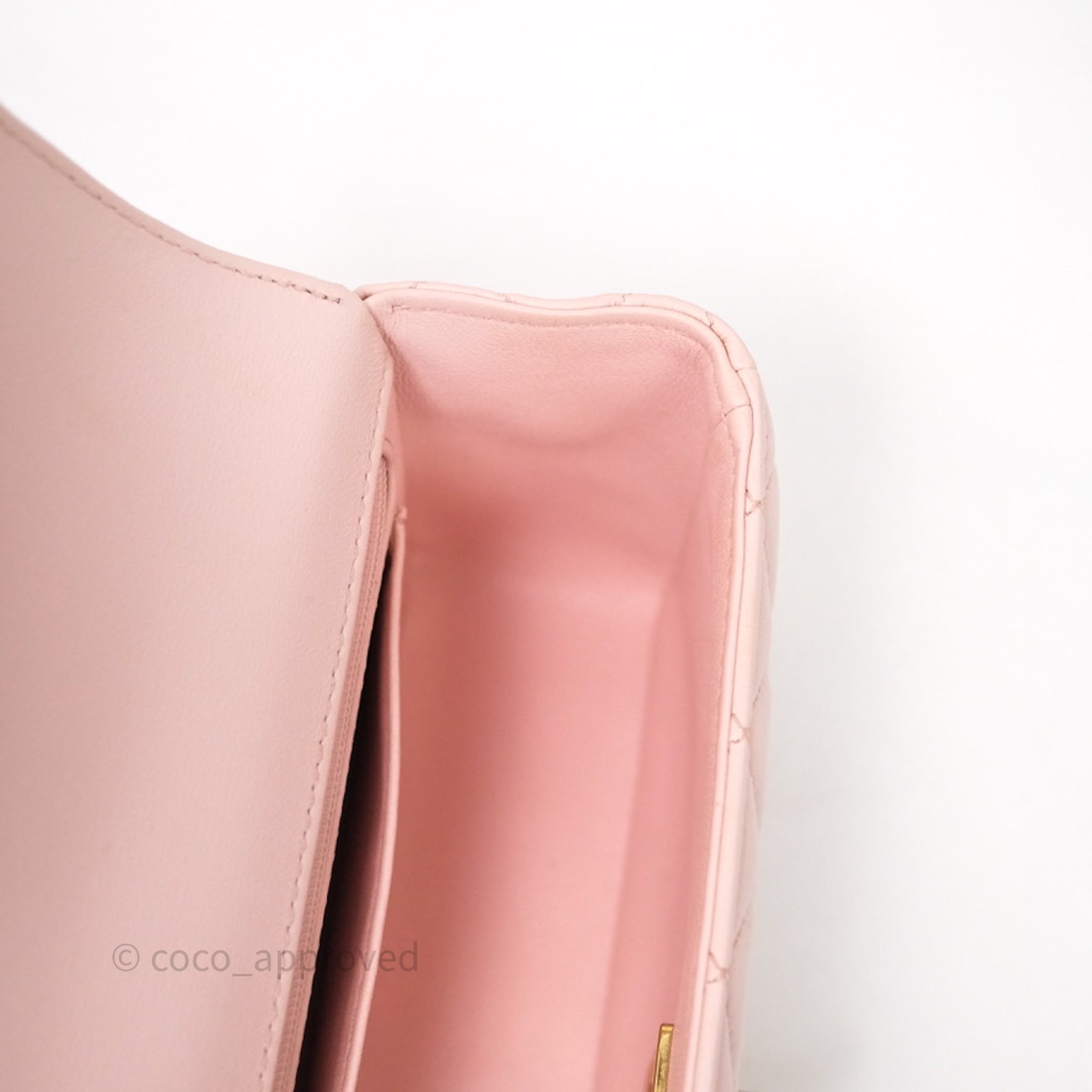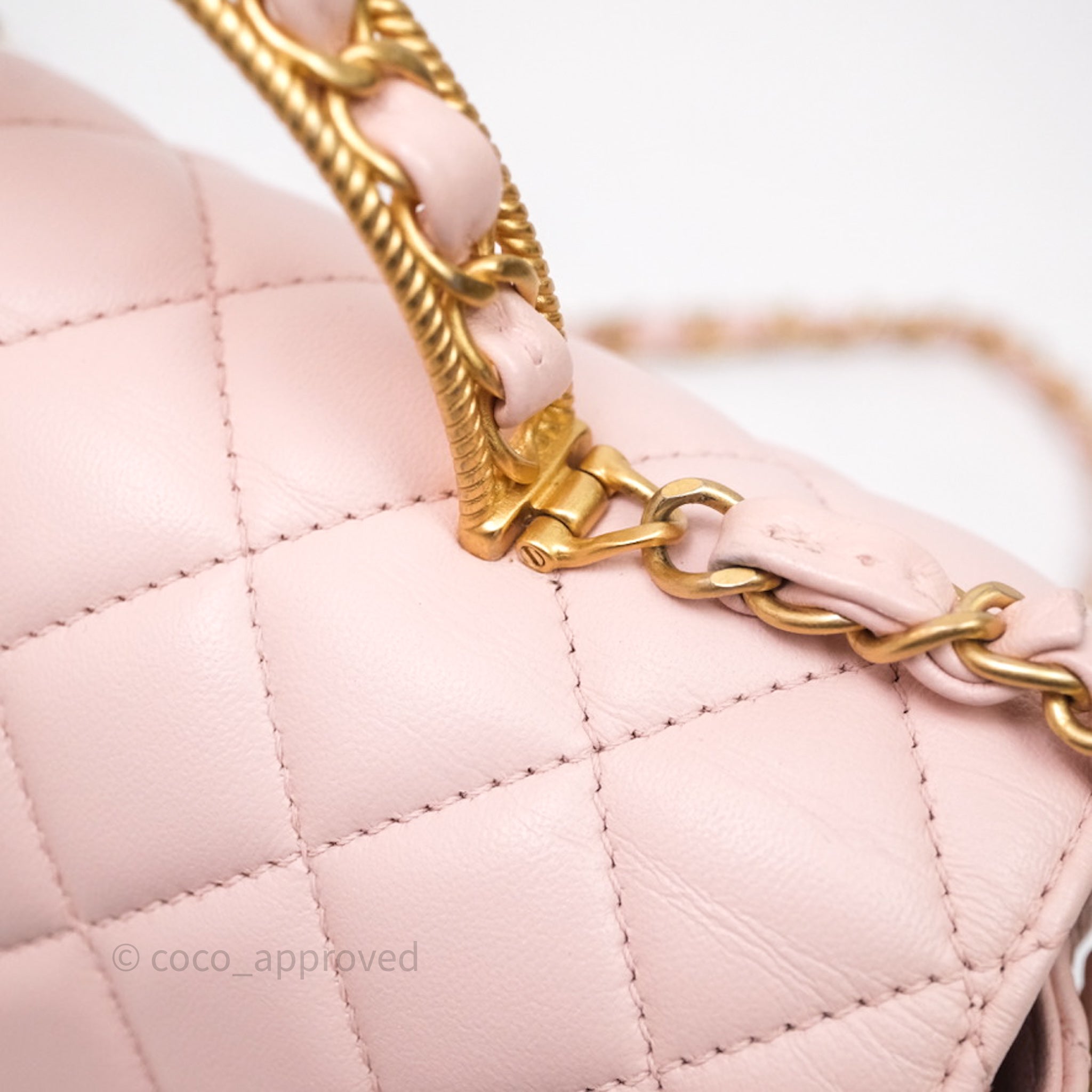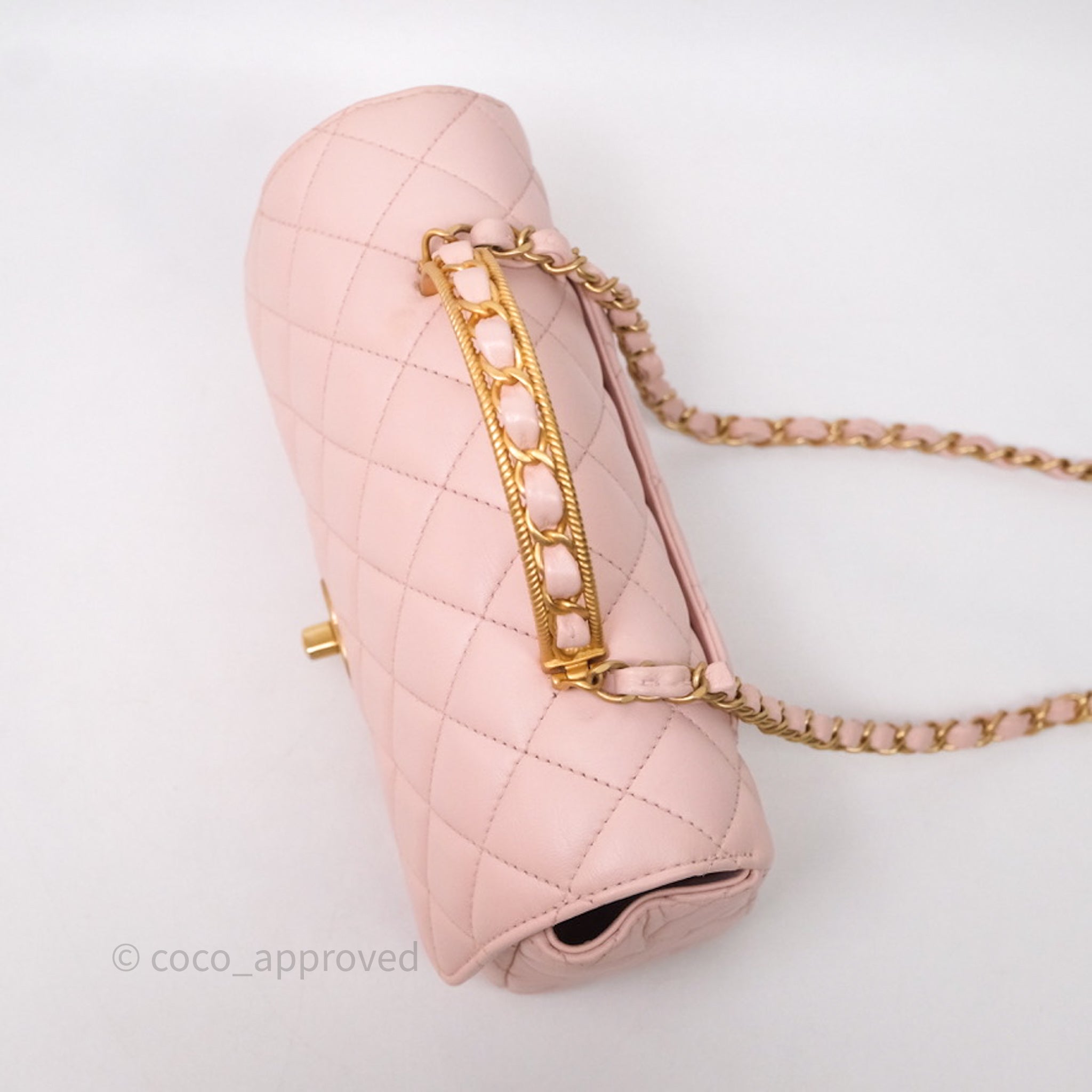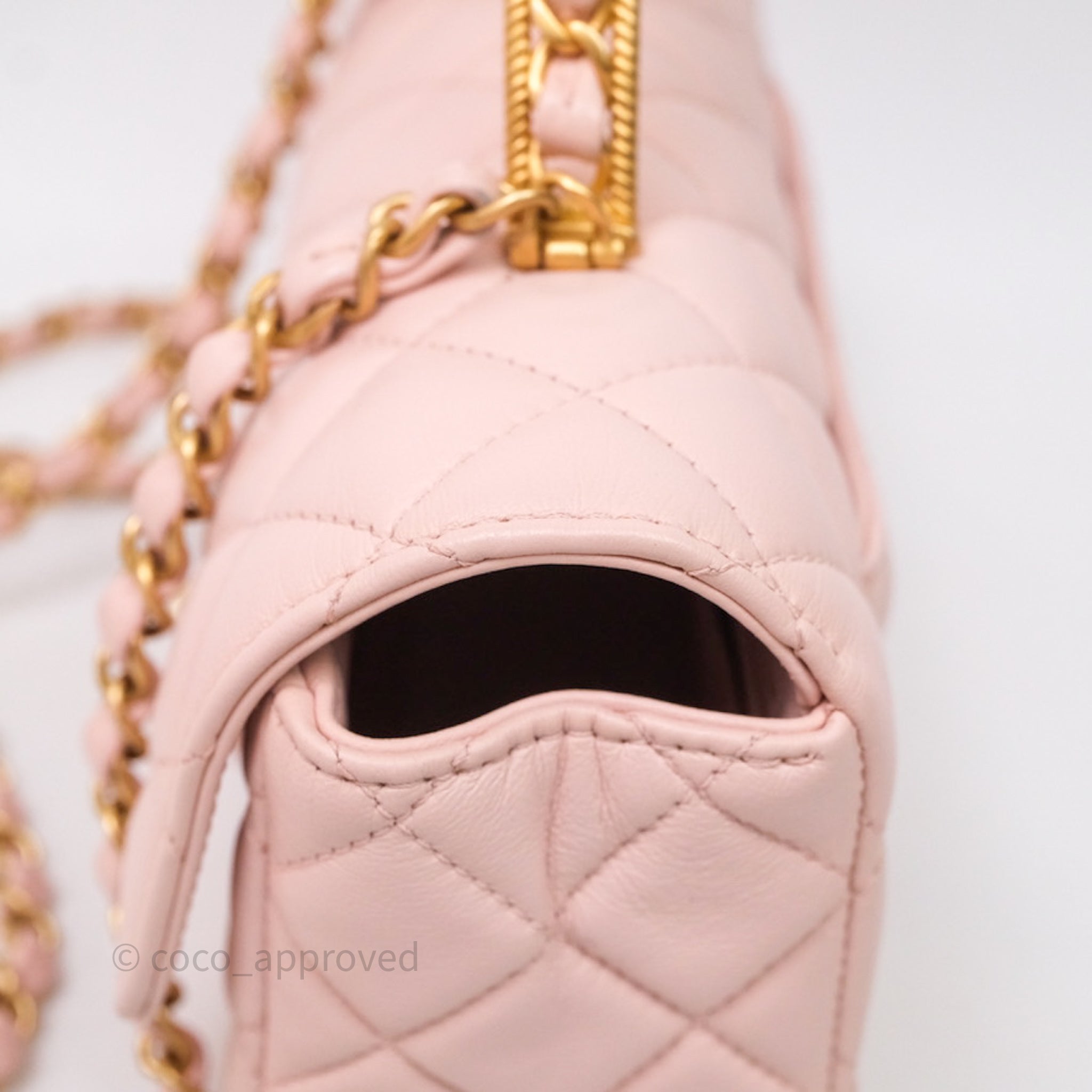 Chanel Top Handle Mini Rectangular Flap Bag Pink Lambskin Aged Gold Hardware