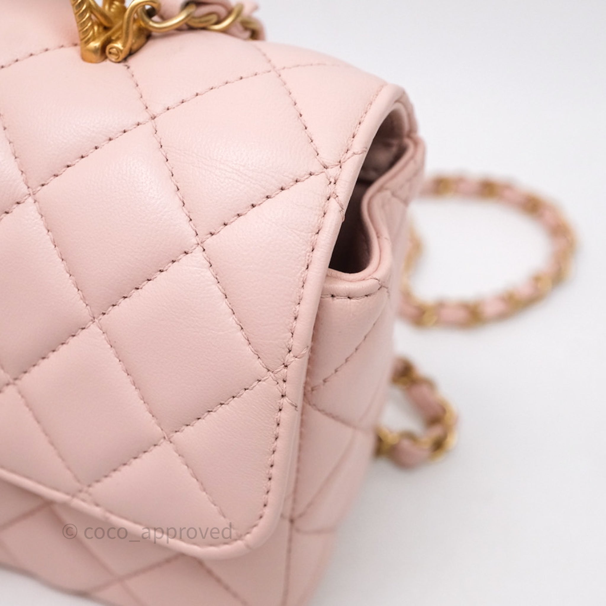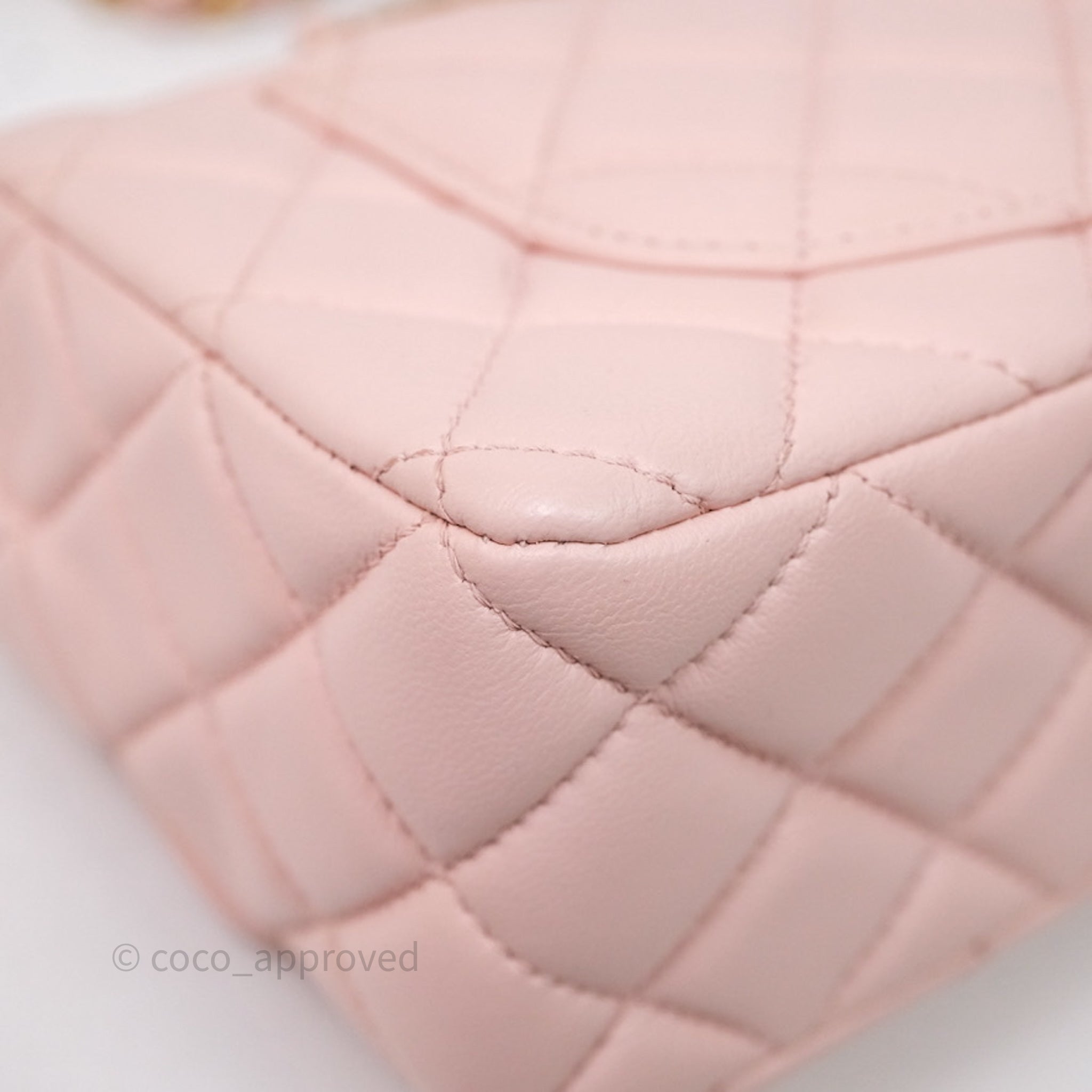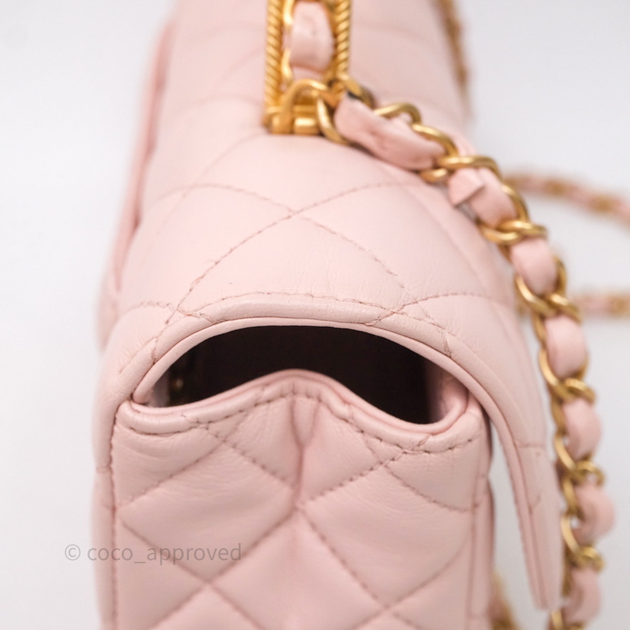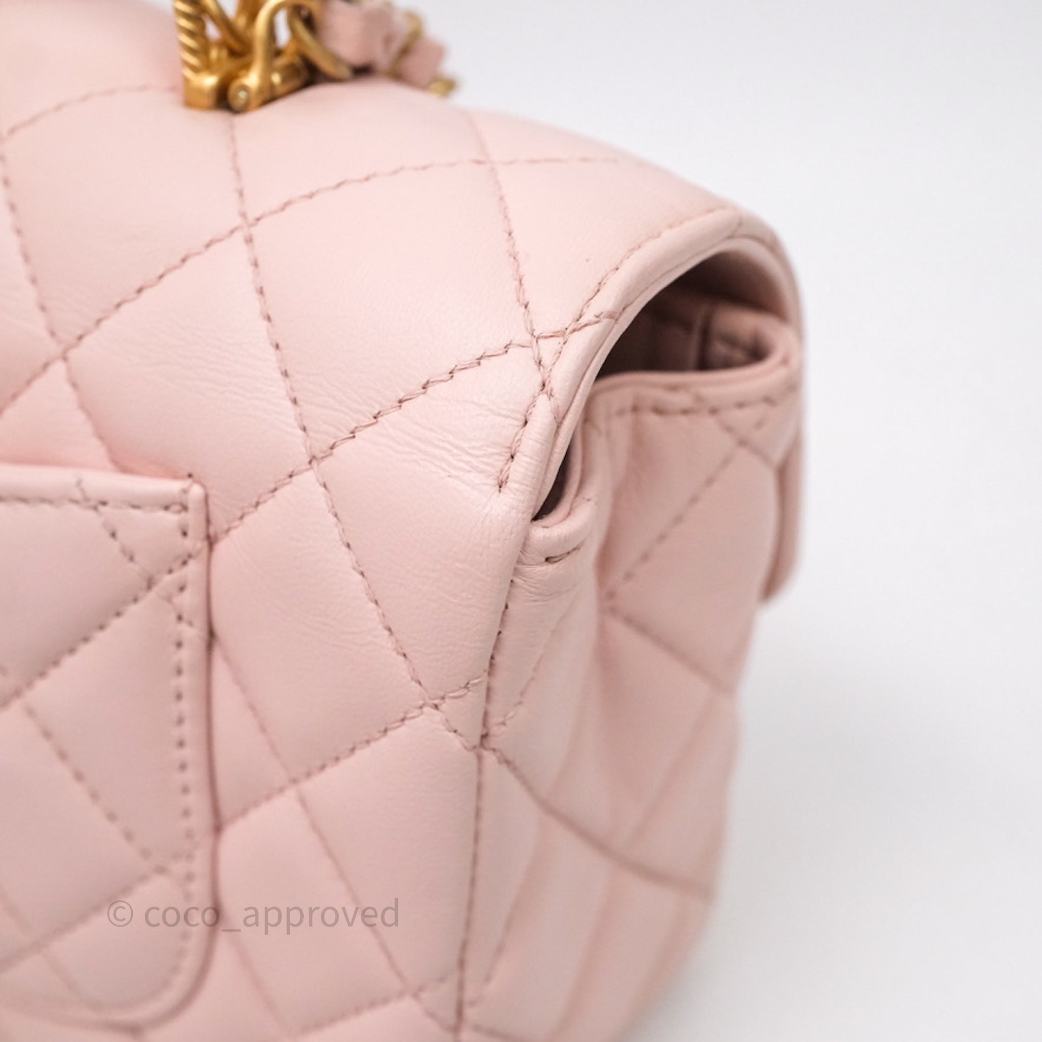 Chanel Top Handle Mini Rectangular Flap Bag Pink Lambskin Aged Gold Hardware