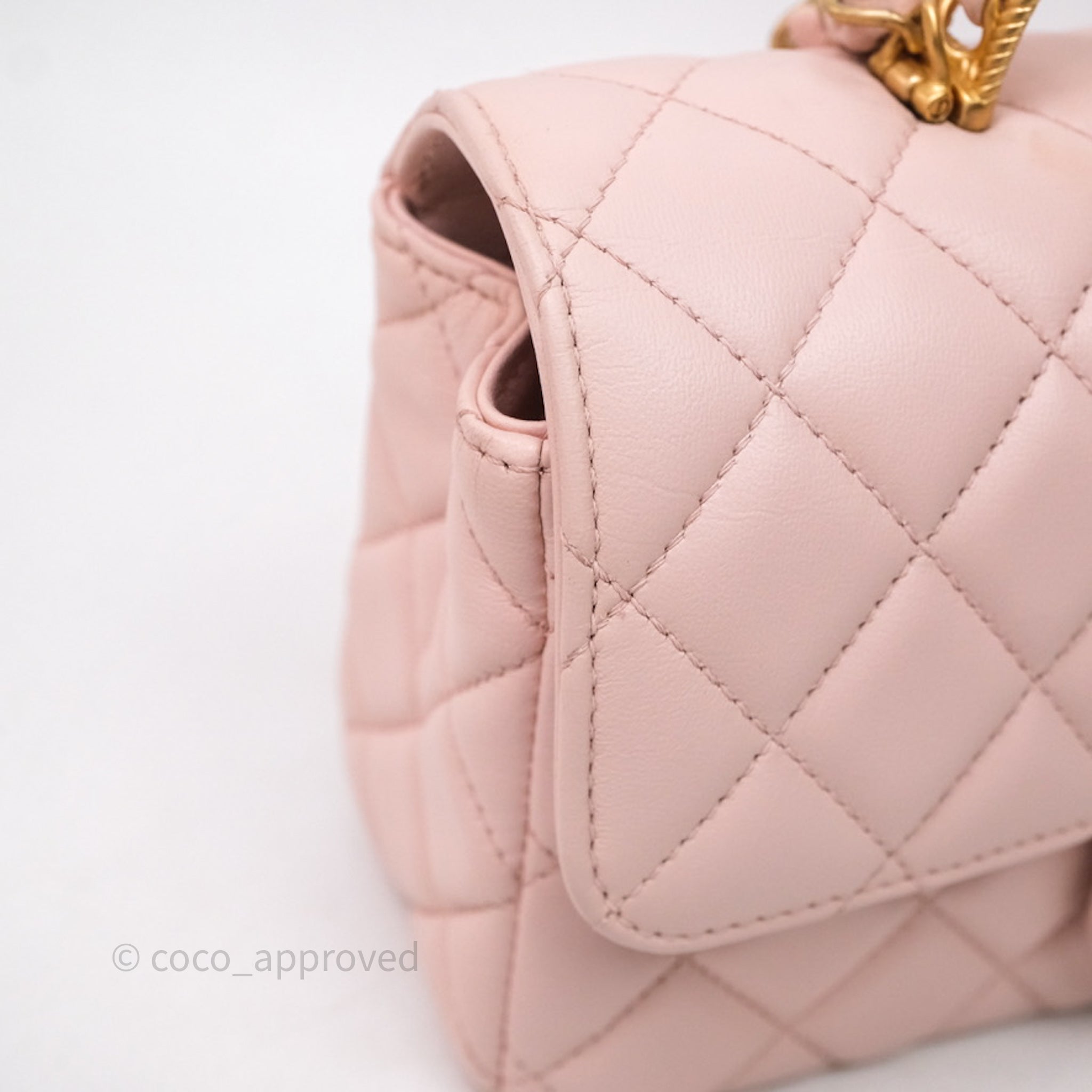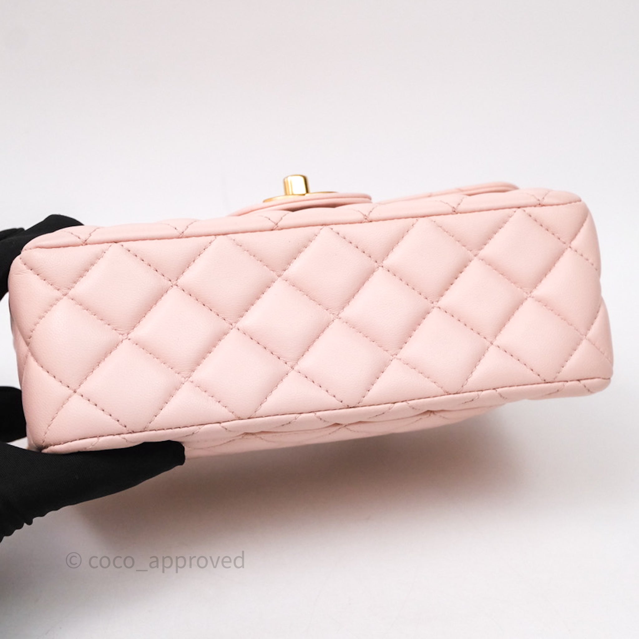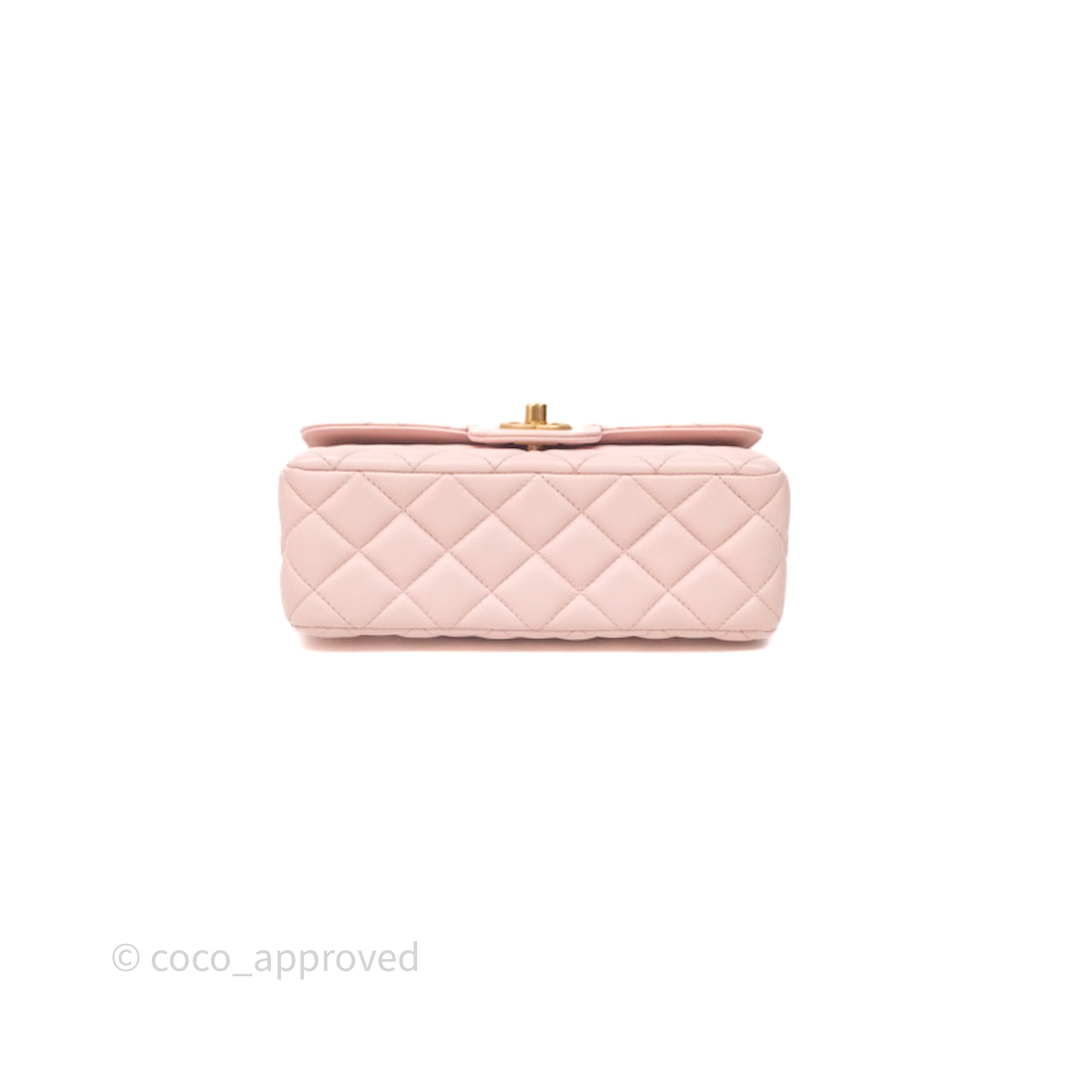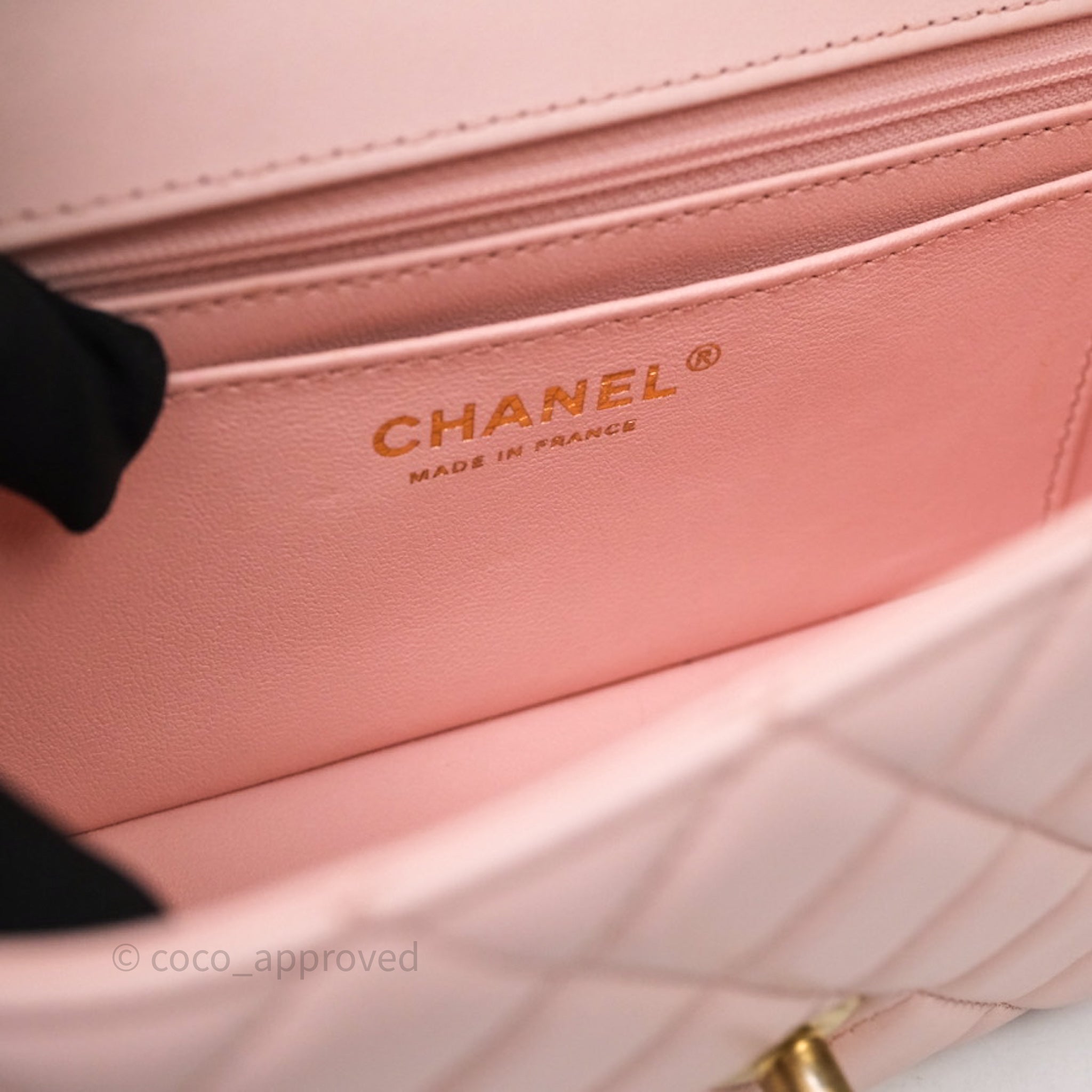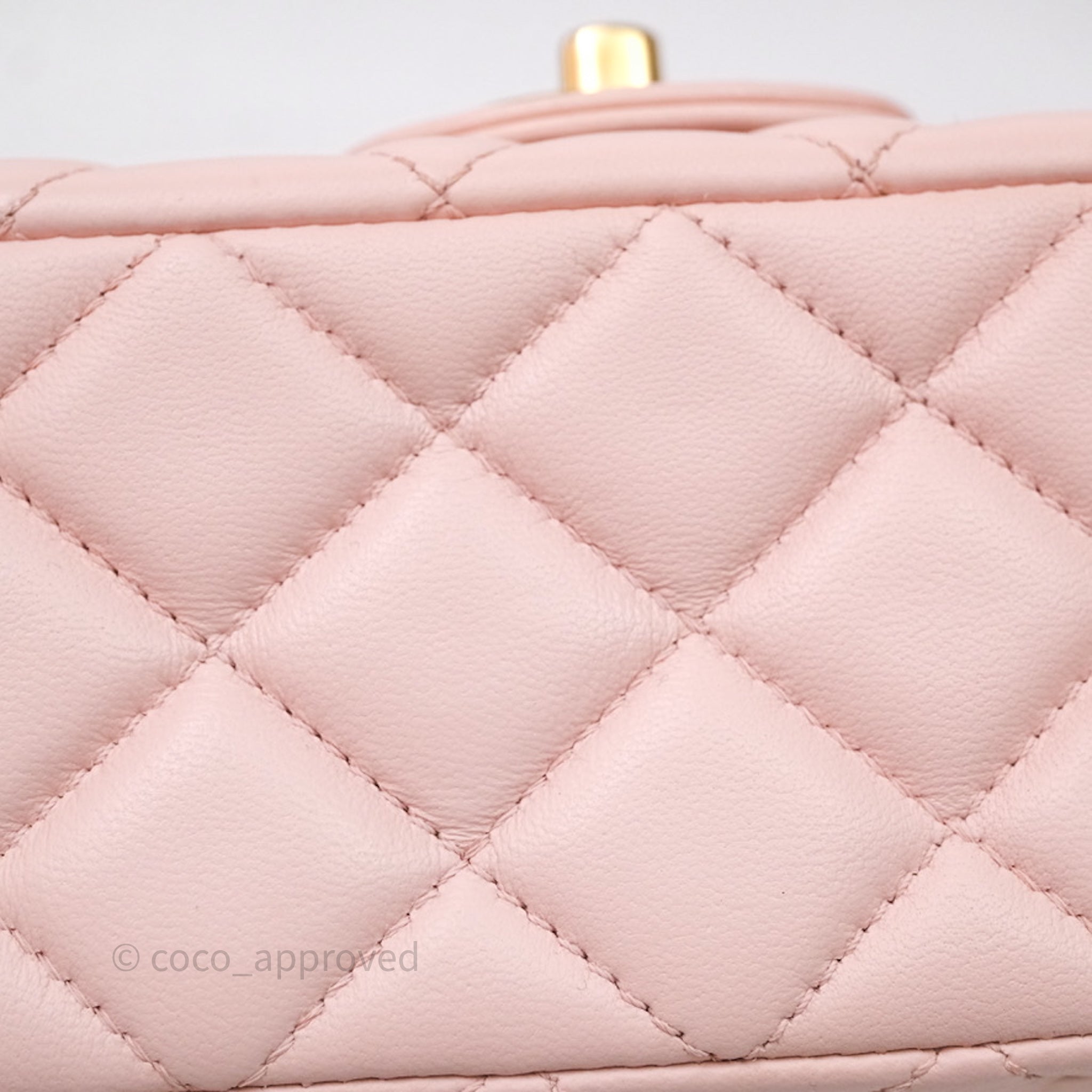 Chanel Top Handle Mini Rectangular Flap Bag Pink Lambskin Aged Gold Hardware