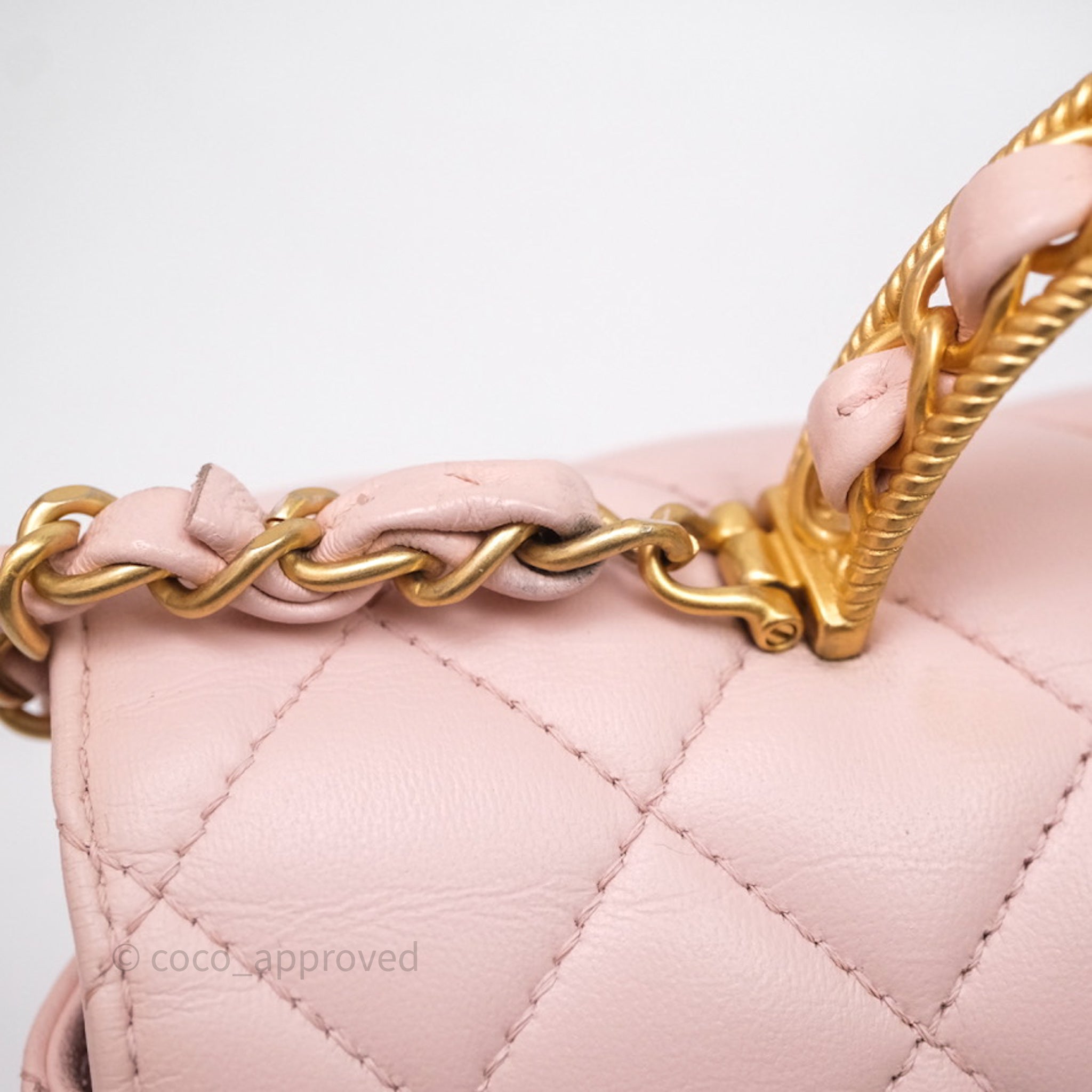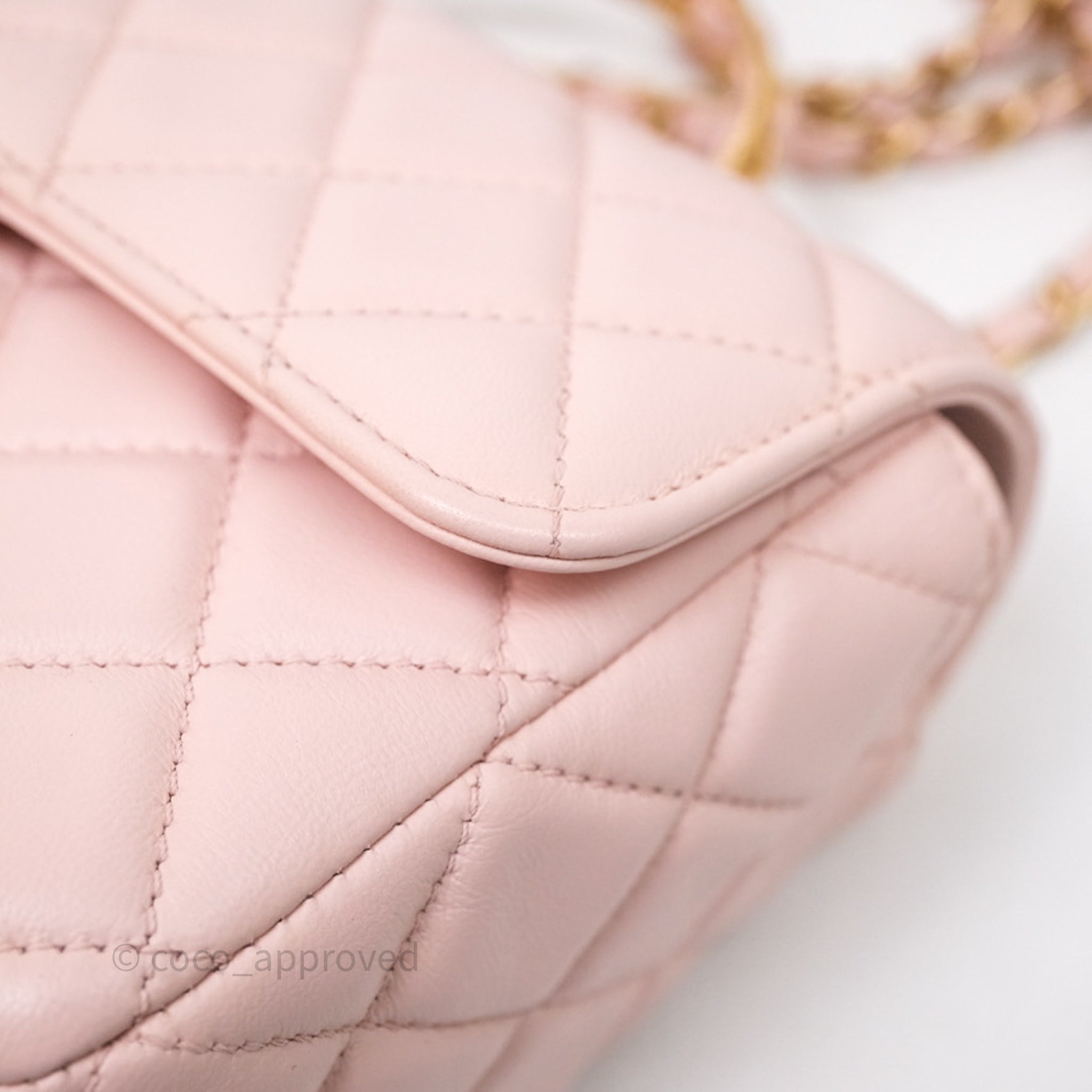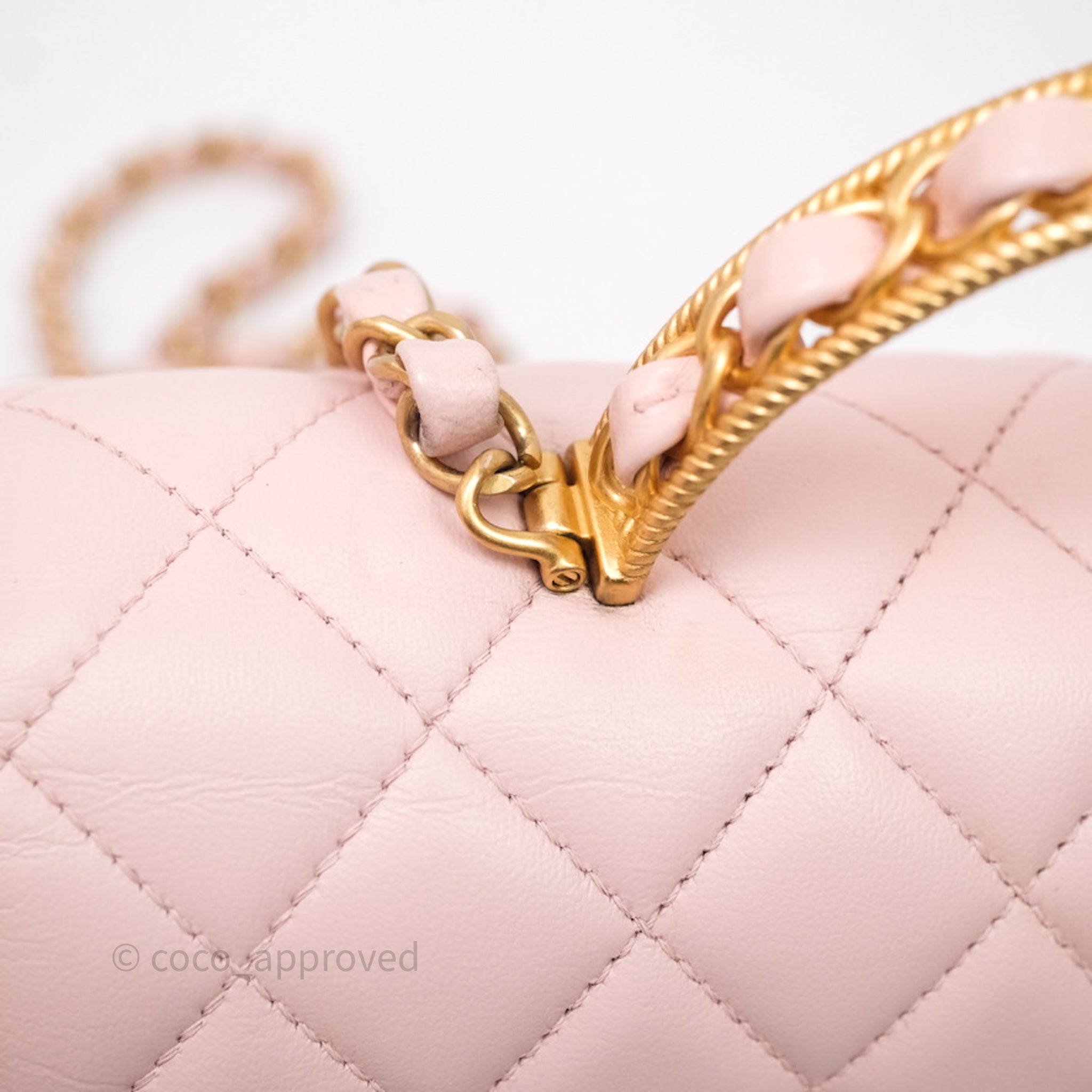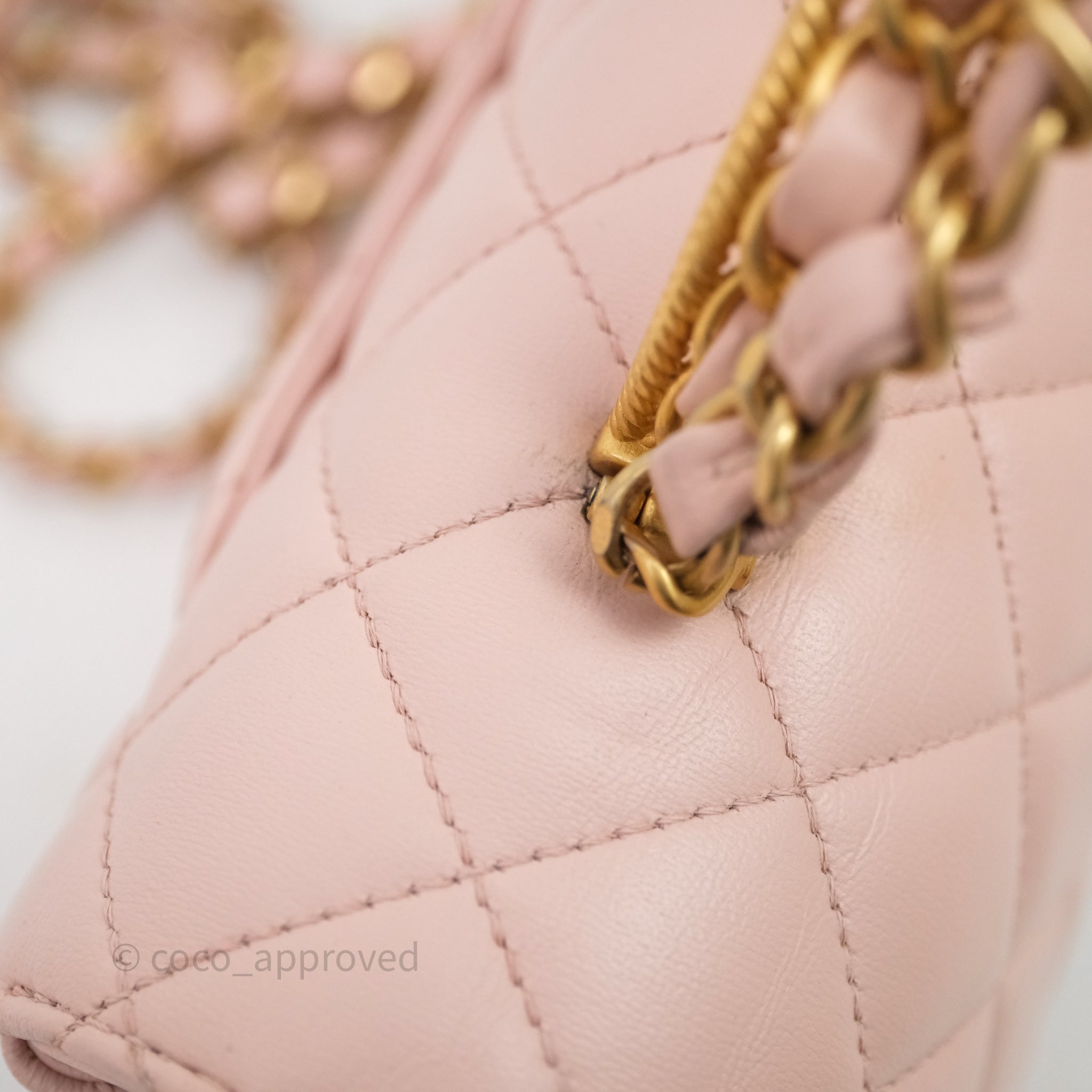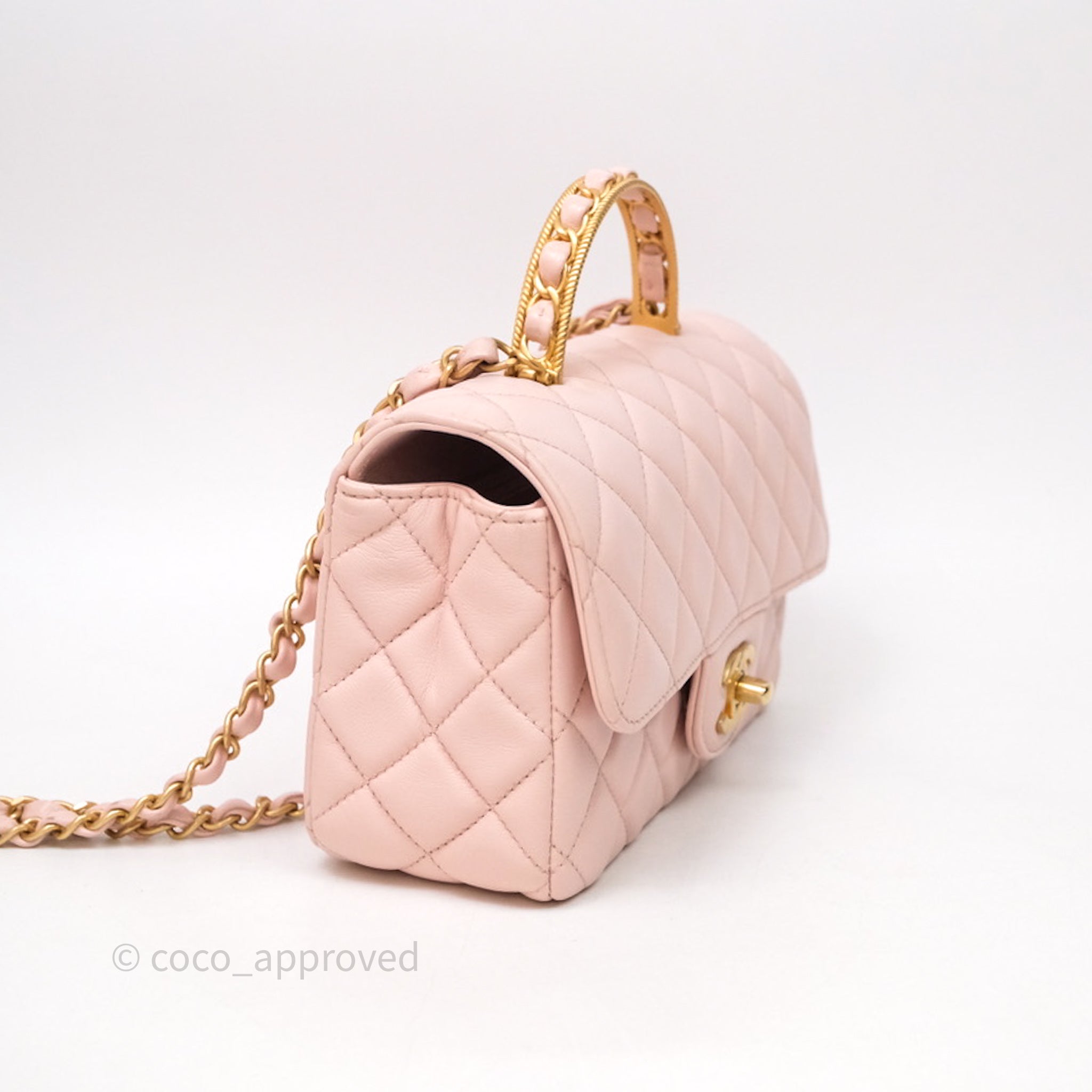 Chanel Top Handle Mini Rectangular Flap Bag Pink Lambskin Aged Gold Hardware