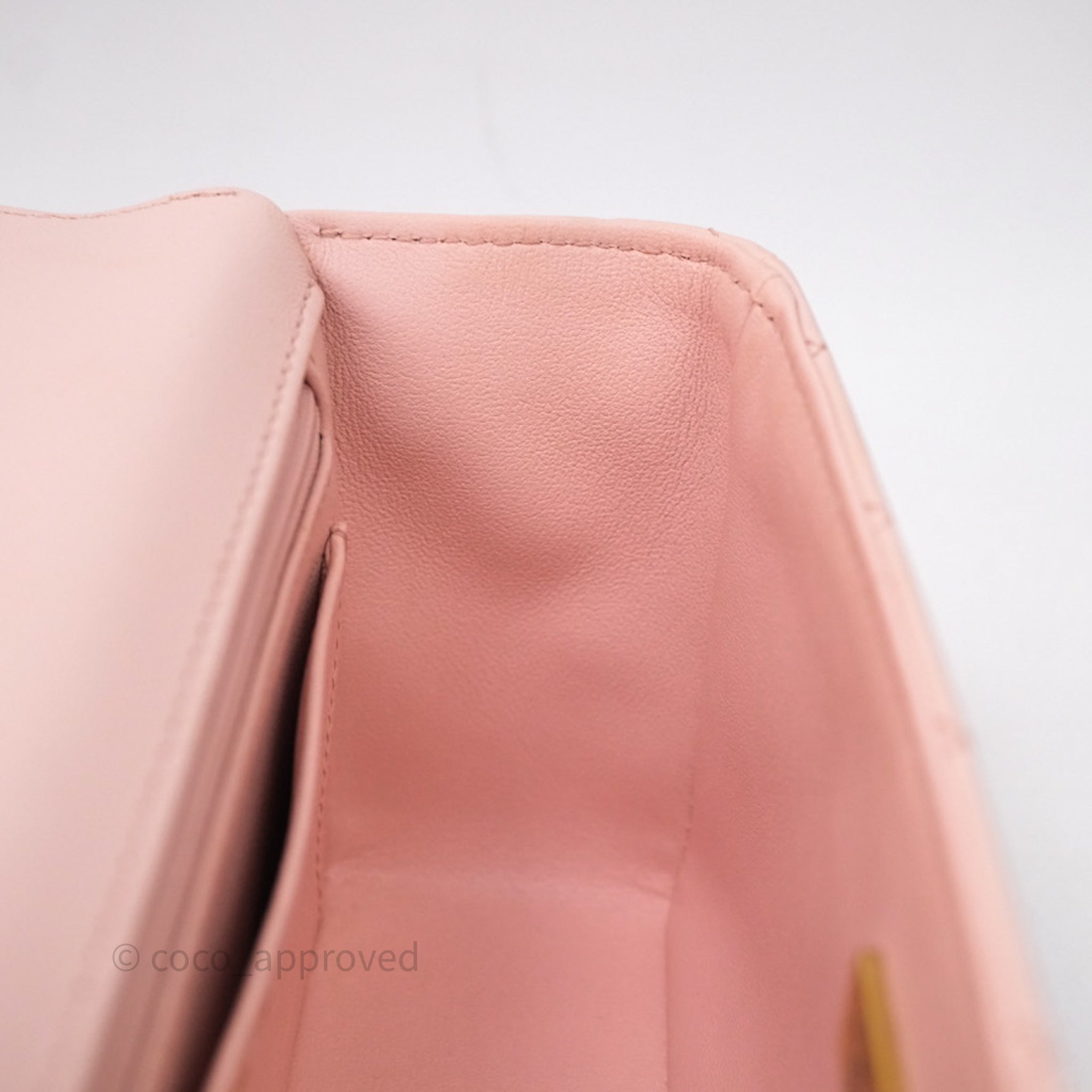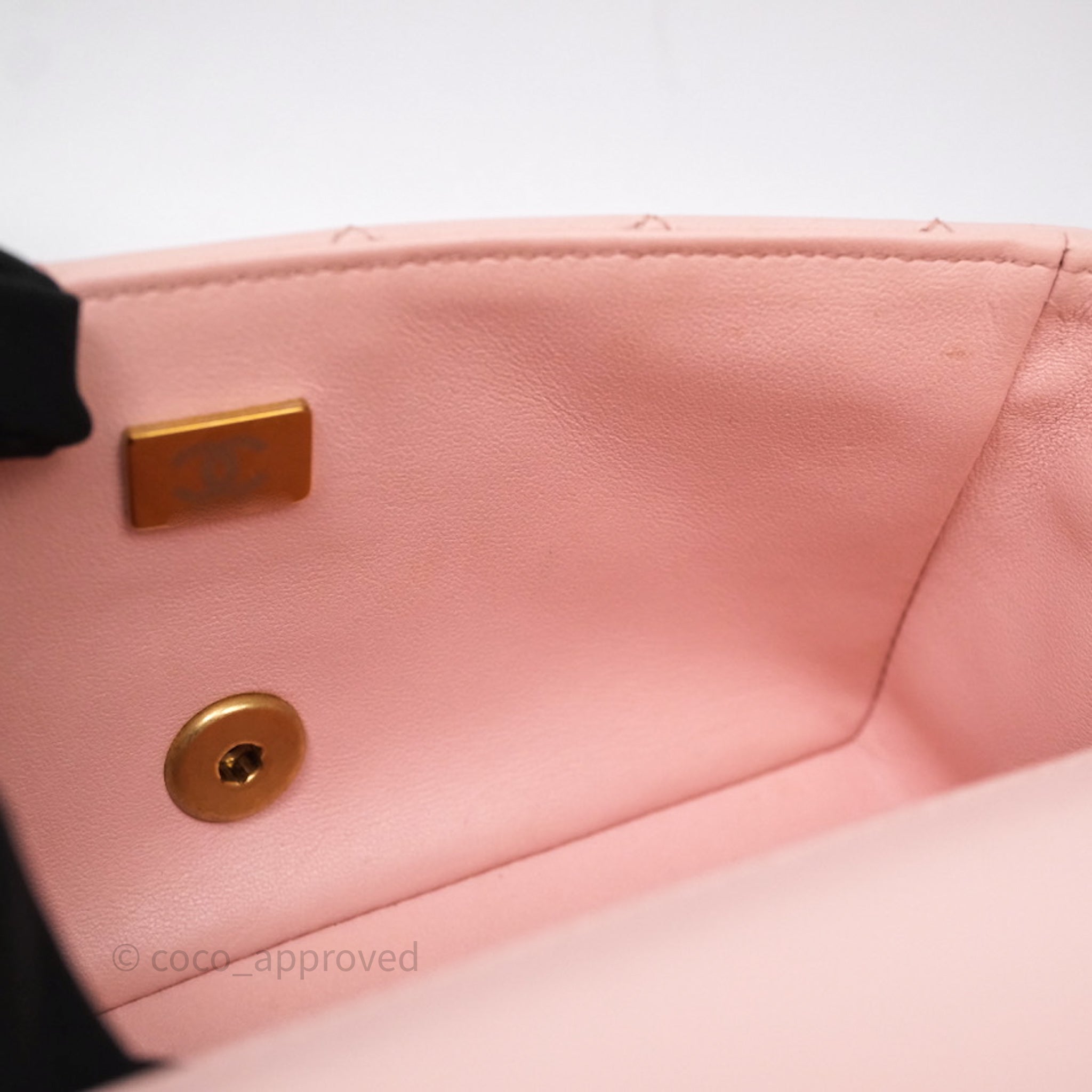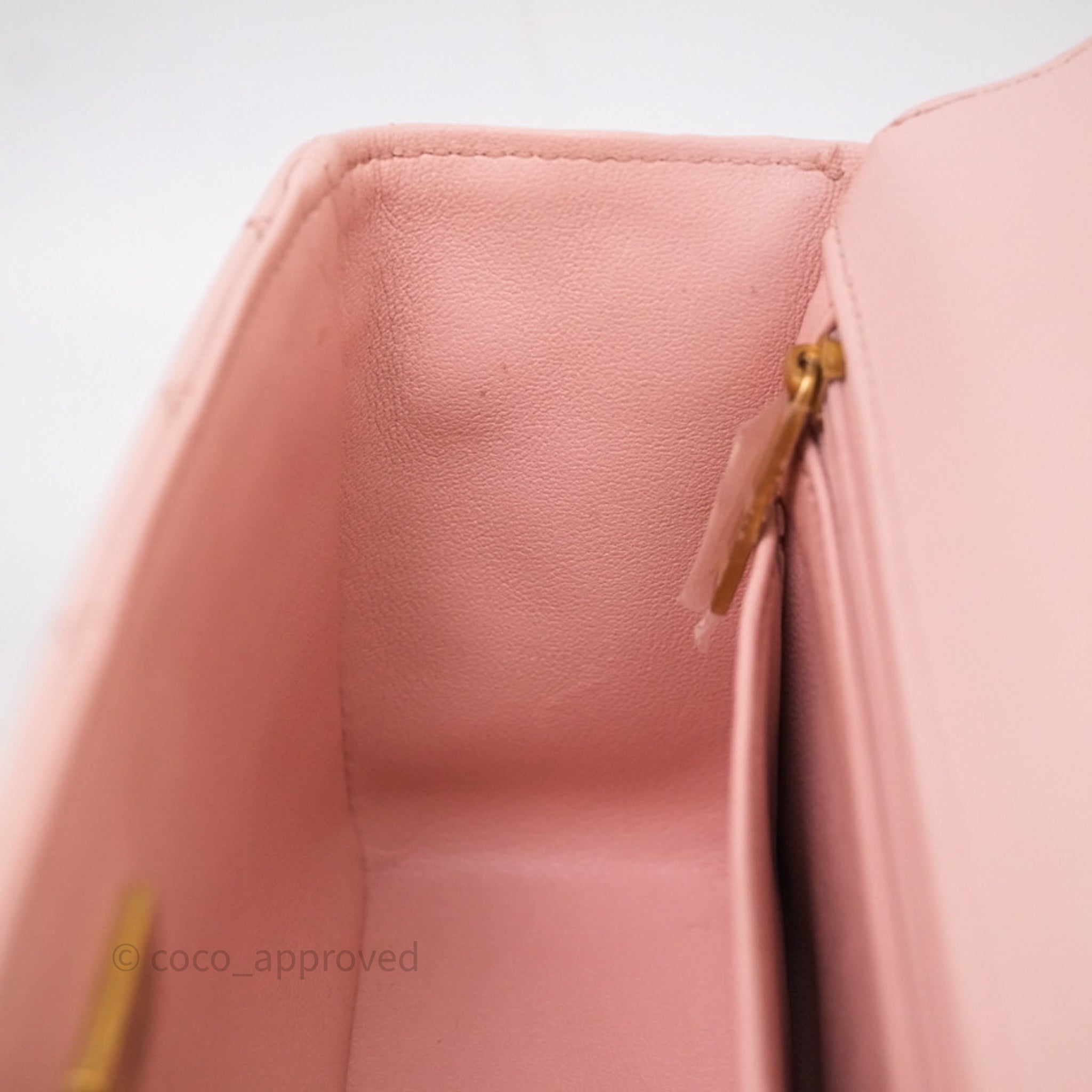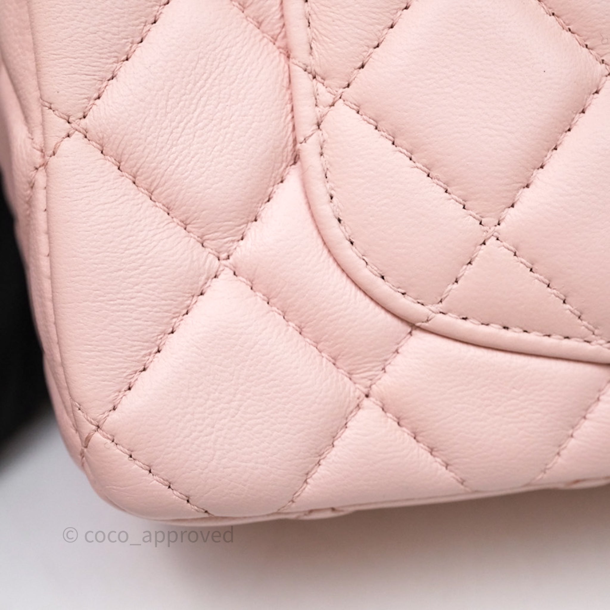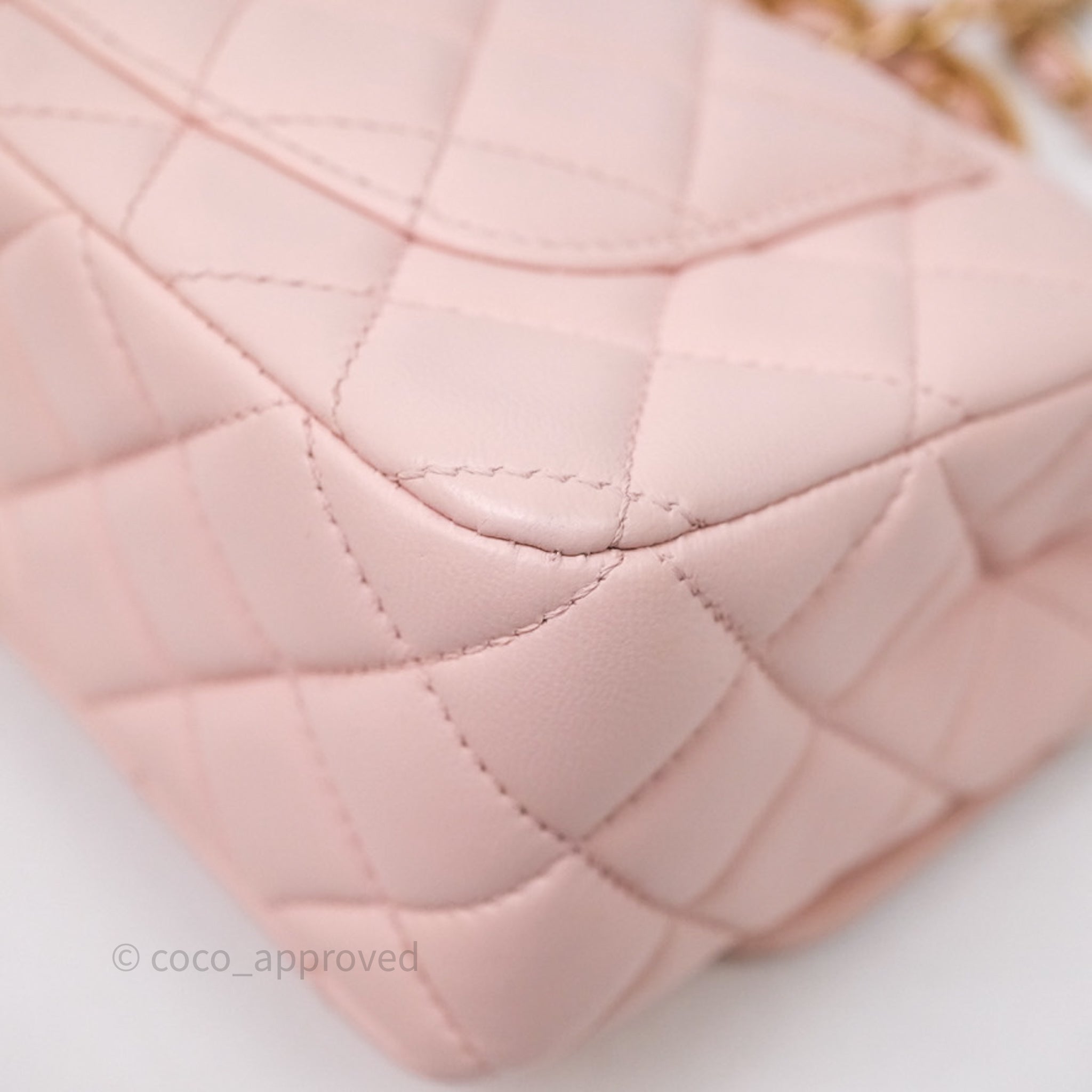 Chanel Top Handle Mini Rectangular Flap Bag Pink Lambskin Aged Gold Hardware