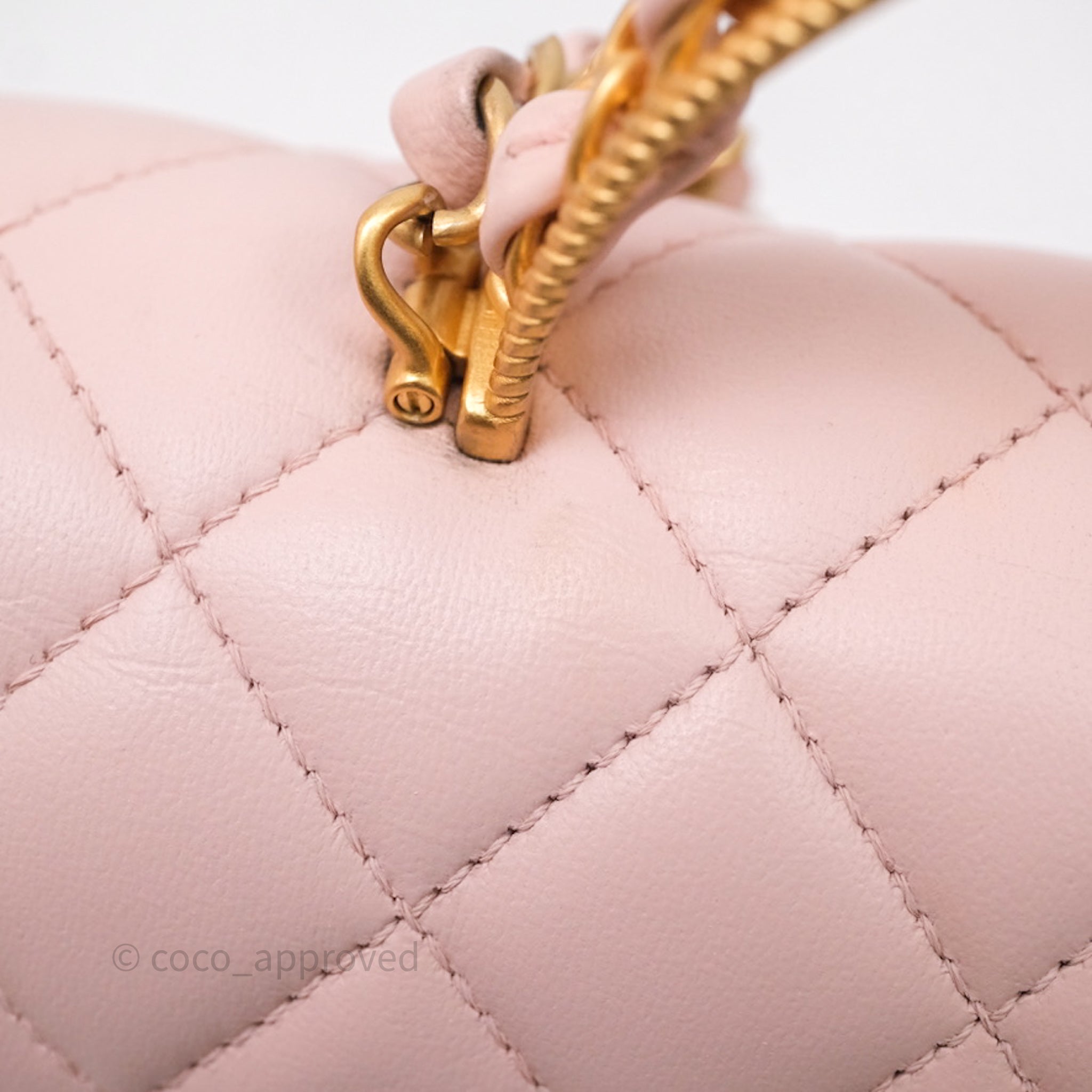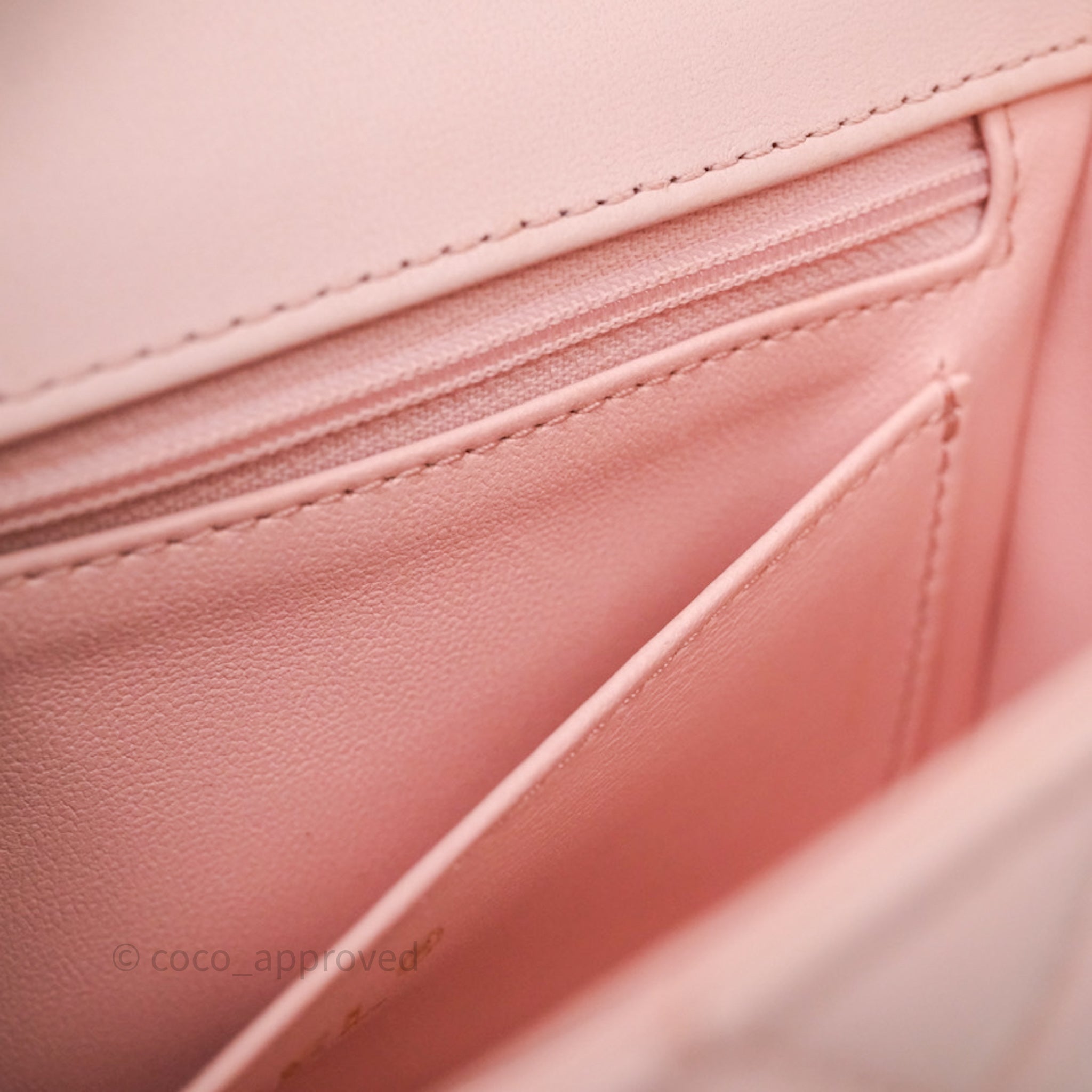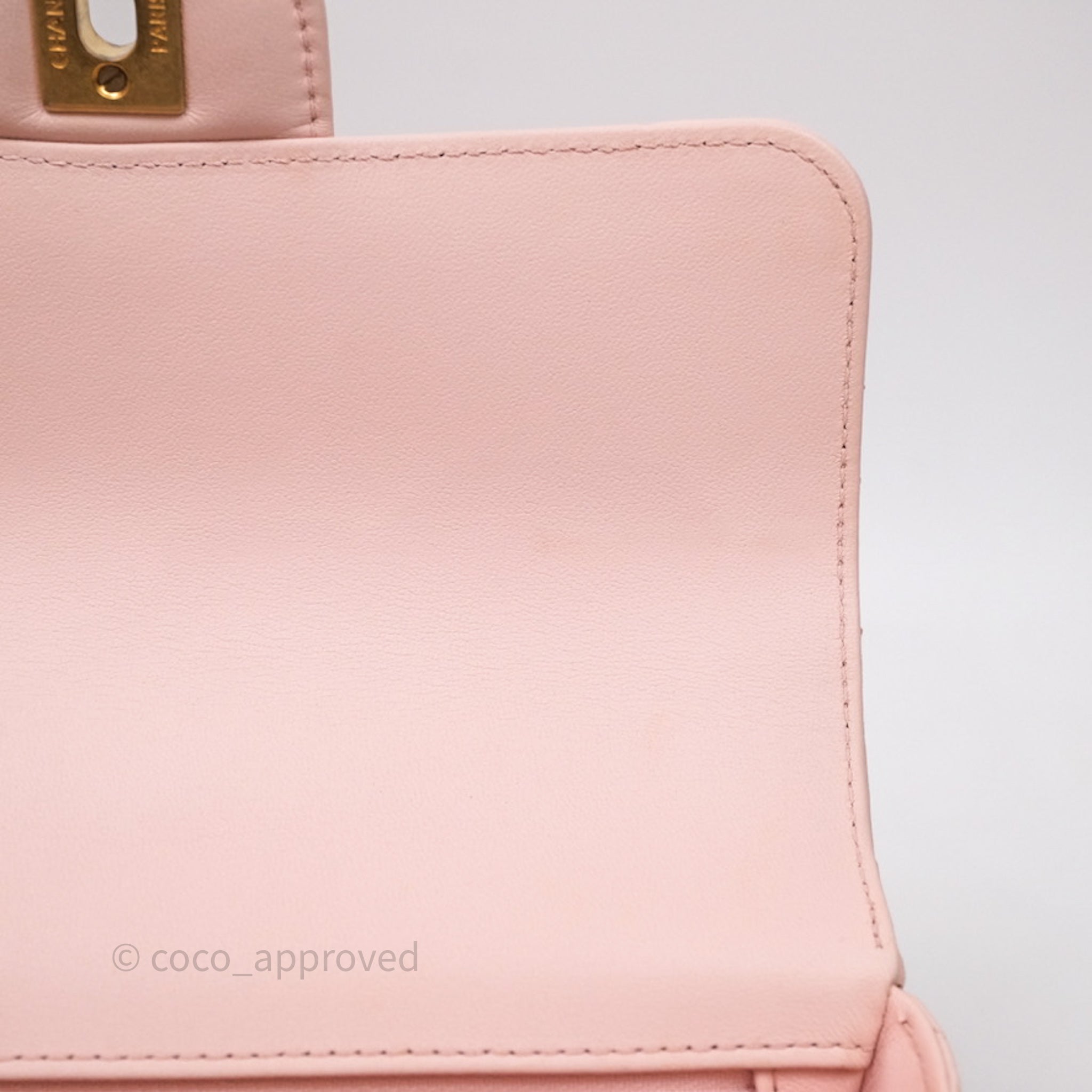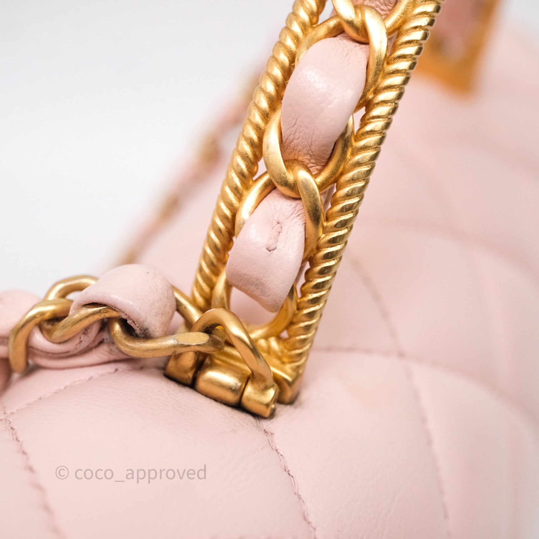 Chanel Top Handle Mini Rectangular Flap Bag Pink Lambskin Aged Gold Hardware