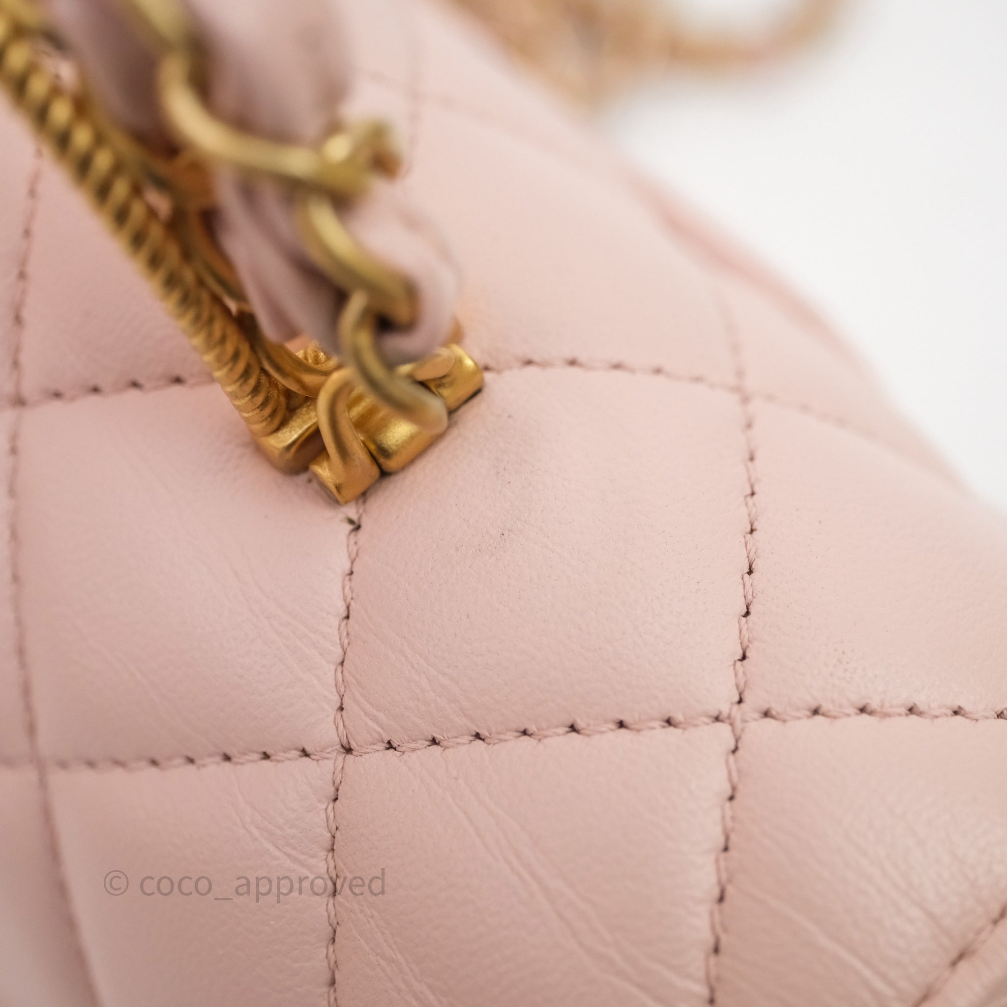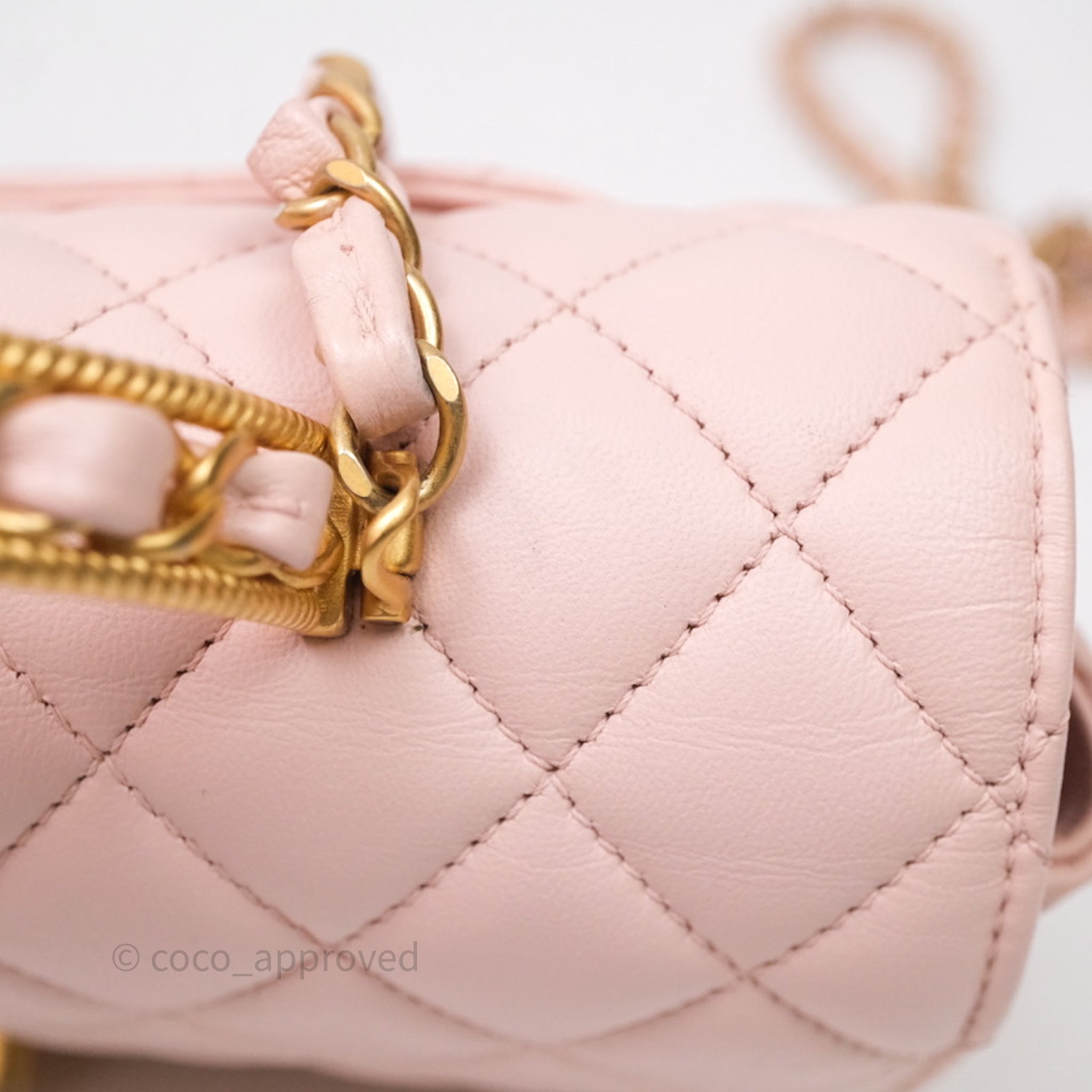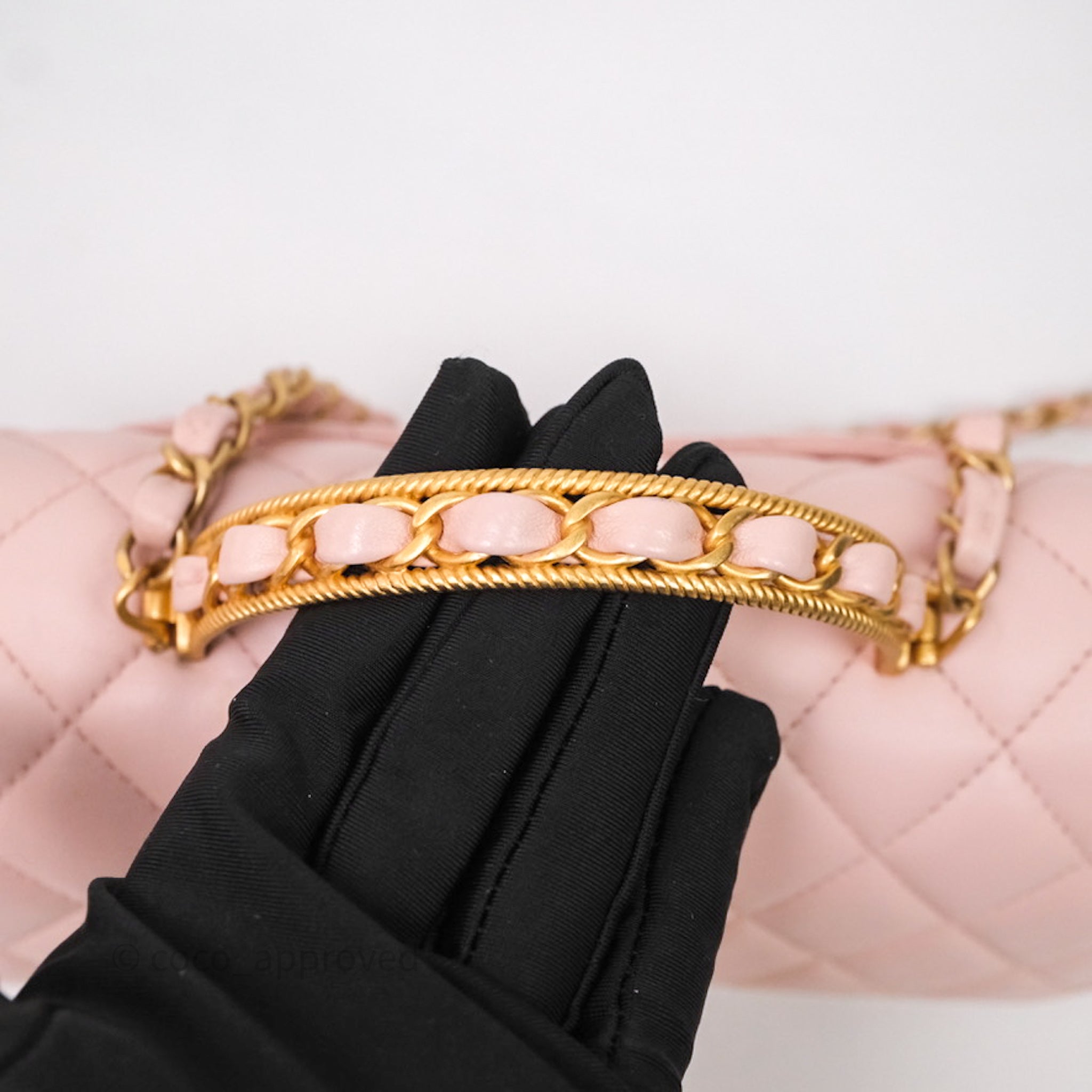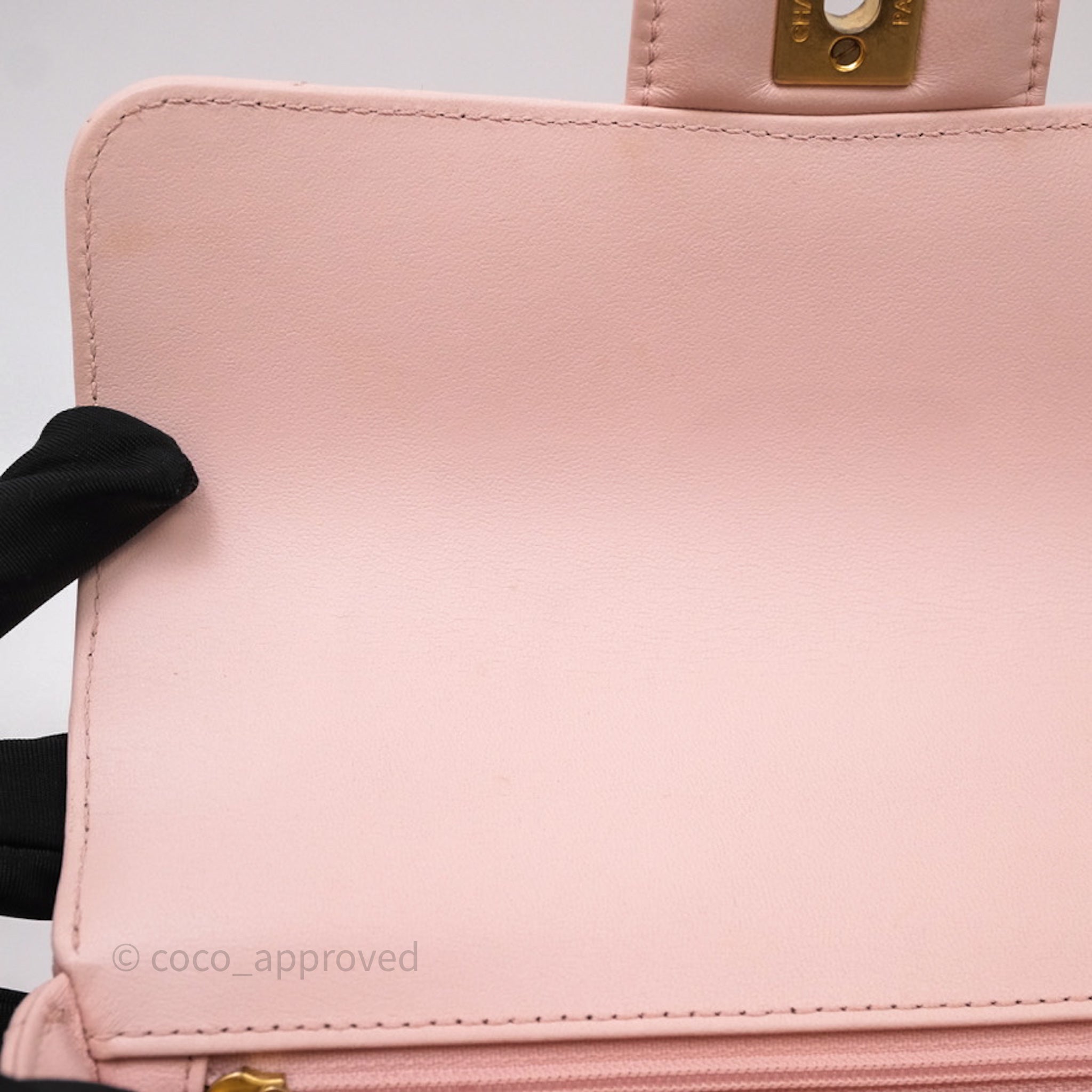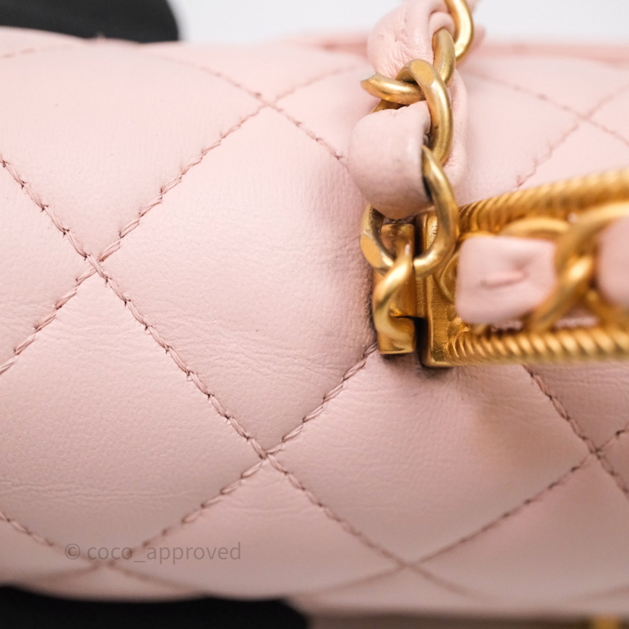 Chanel Top Handle Mini Rectangular Flap Bag Pink Lambskin Aged Gold Hardware