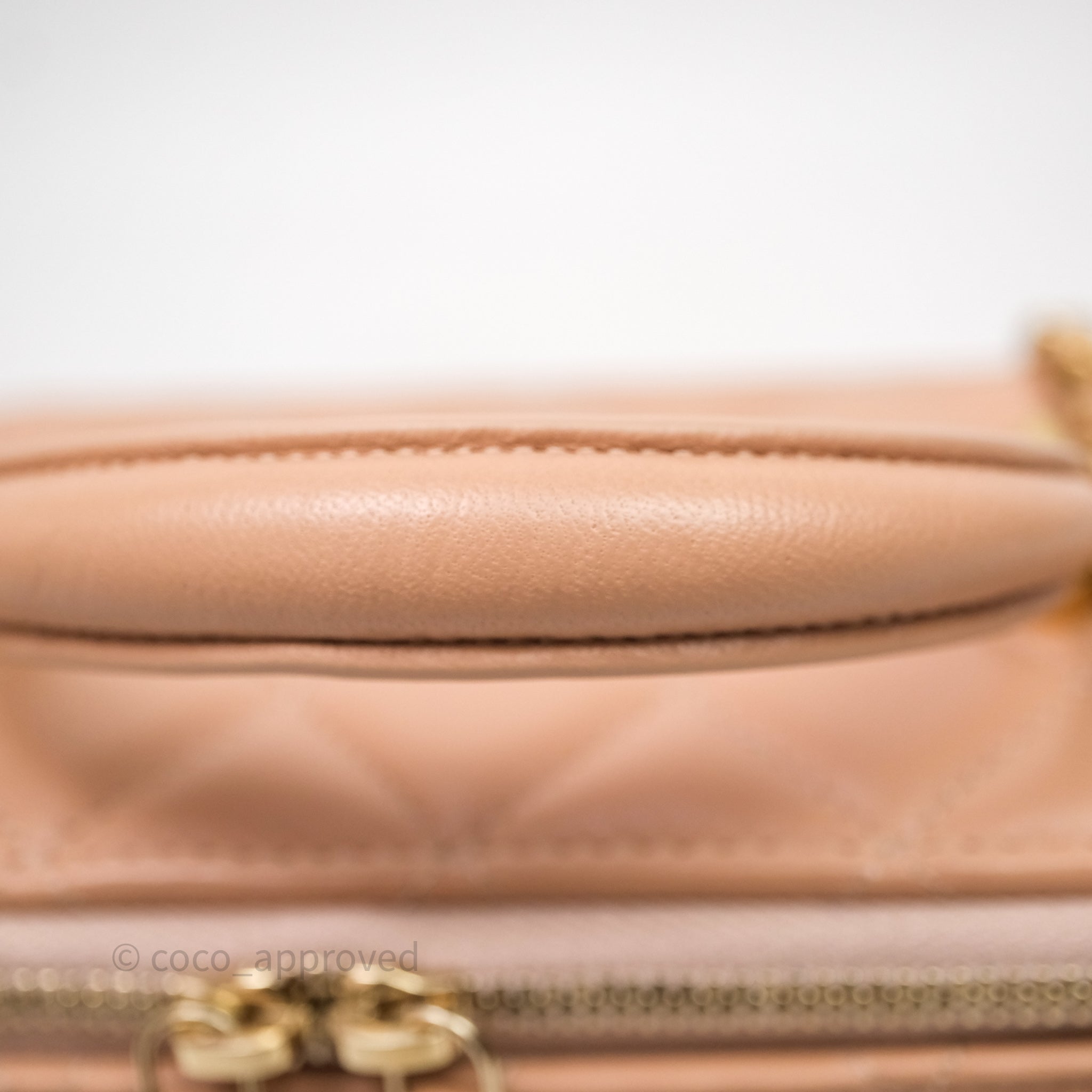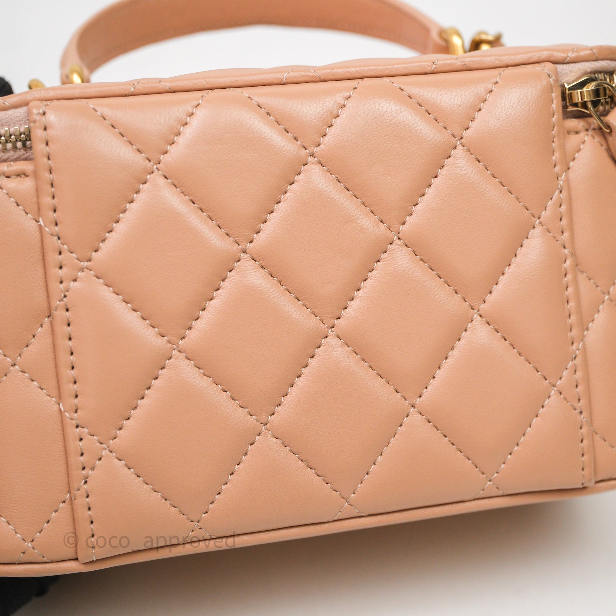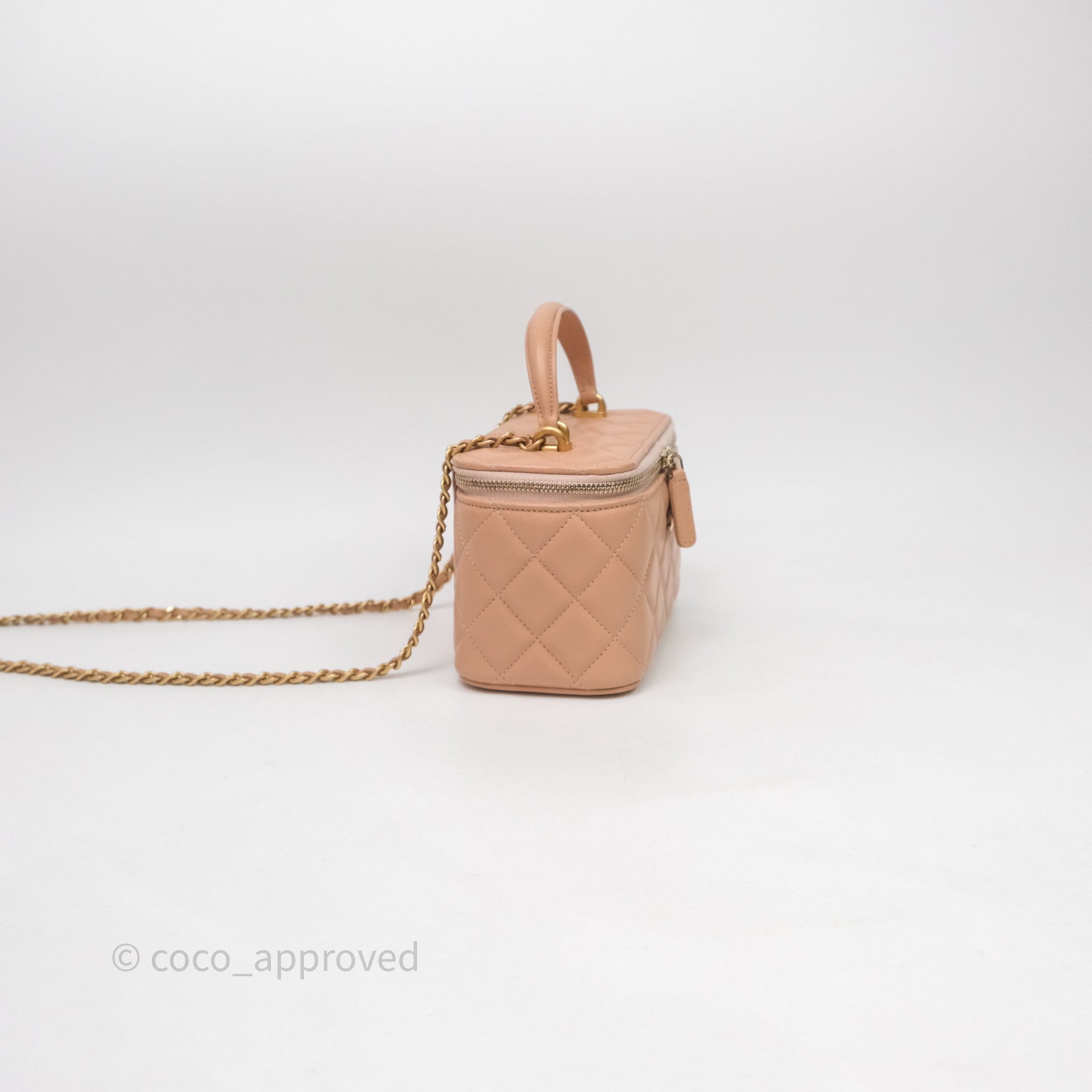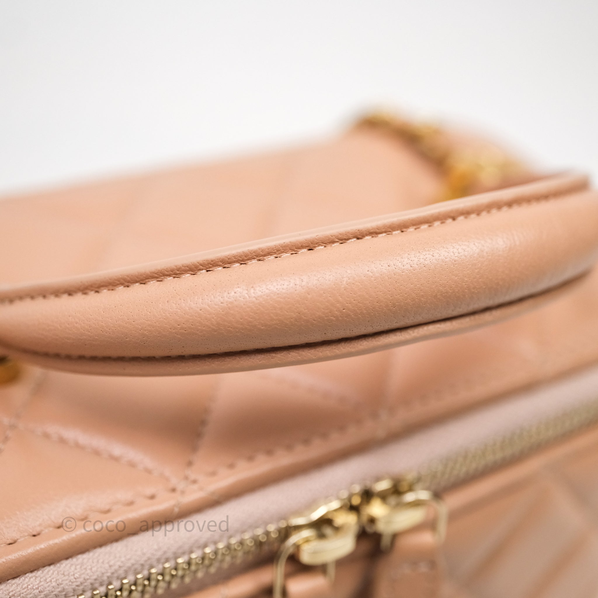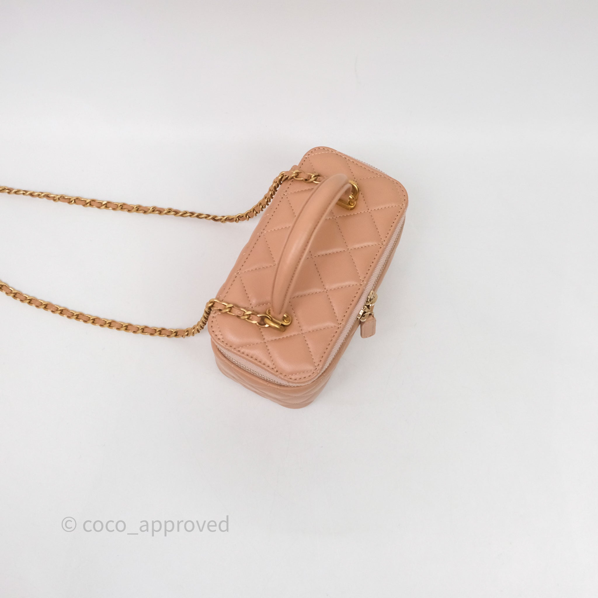 Chanel Vanity Rectangular Top Handle Beige Lambskin Aged Gold Hardware