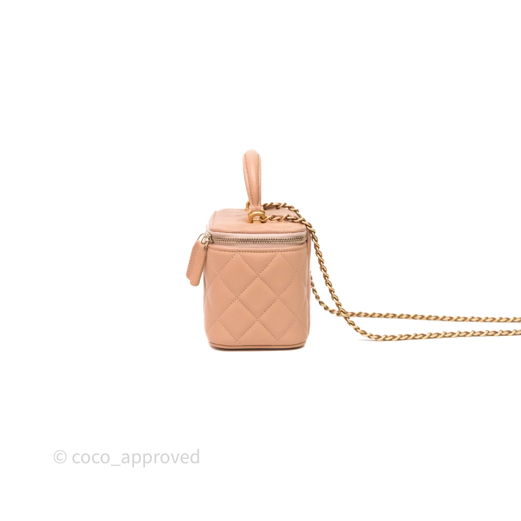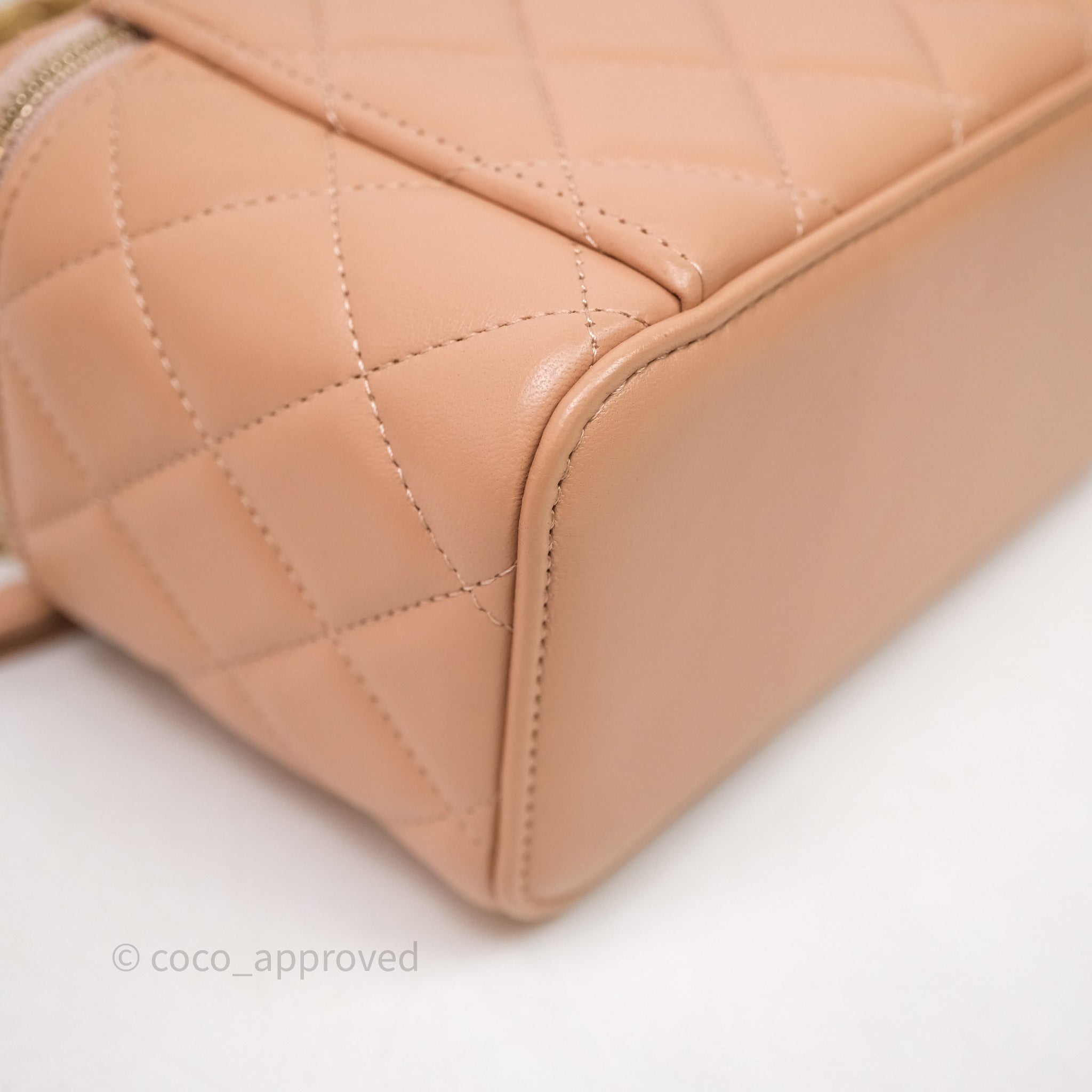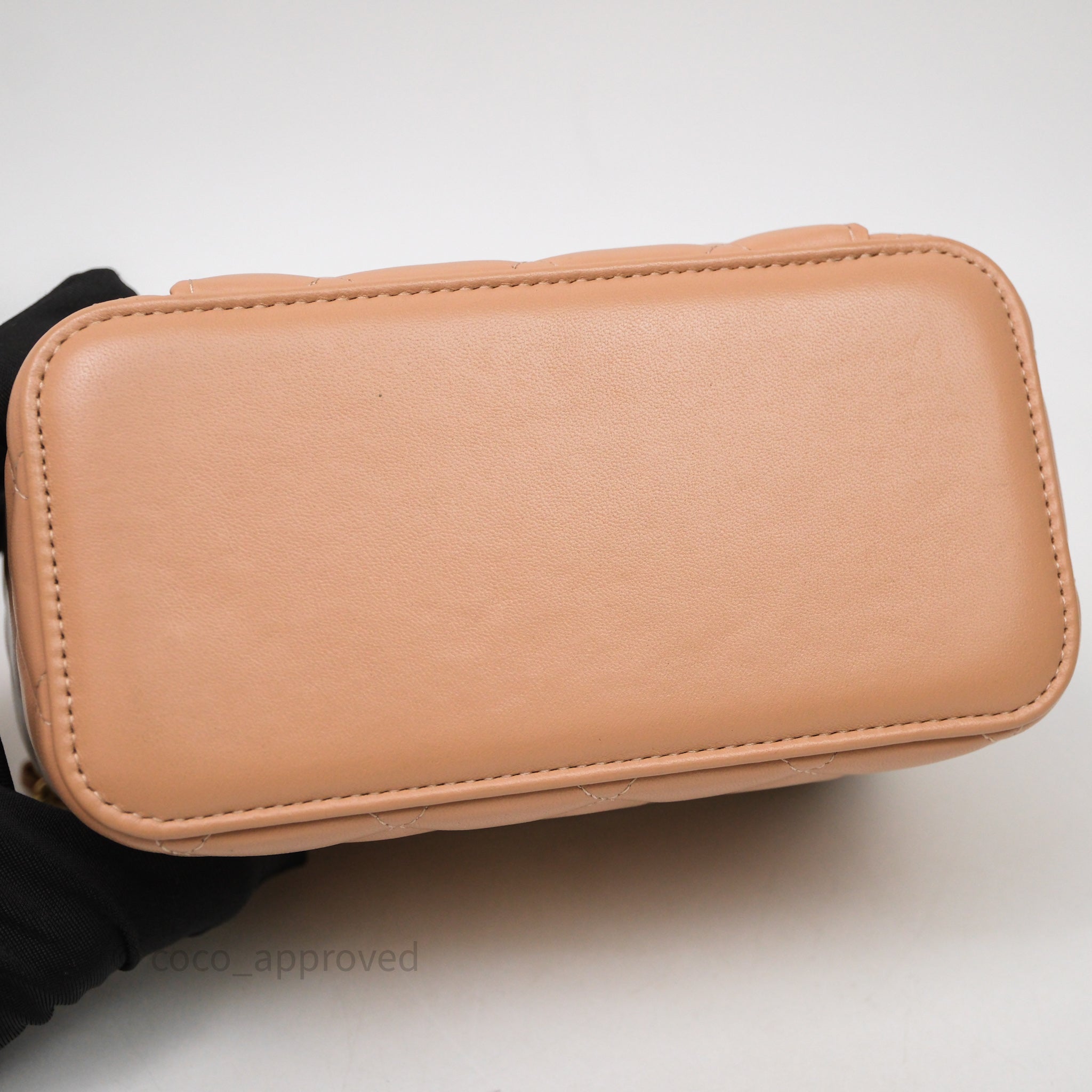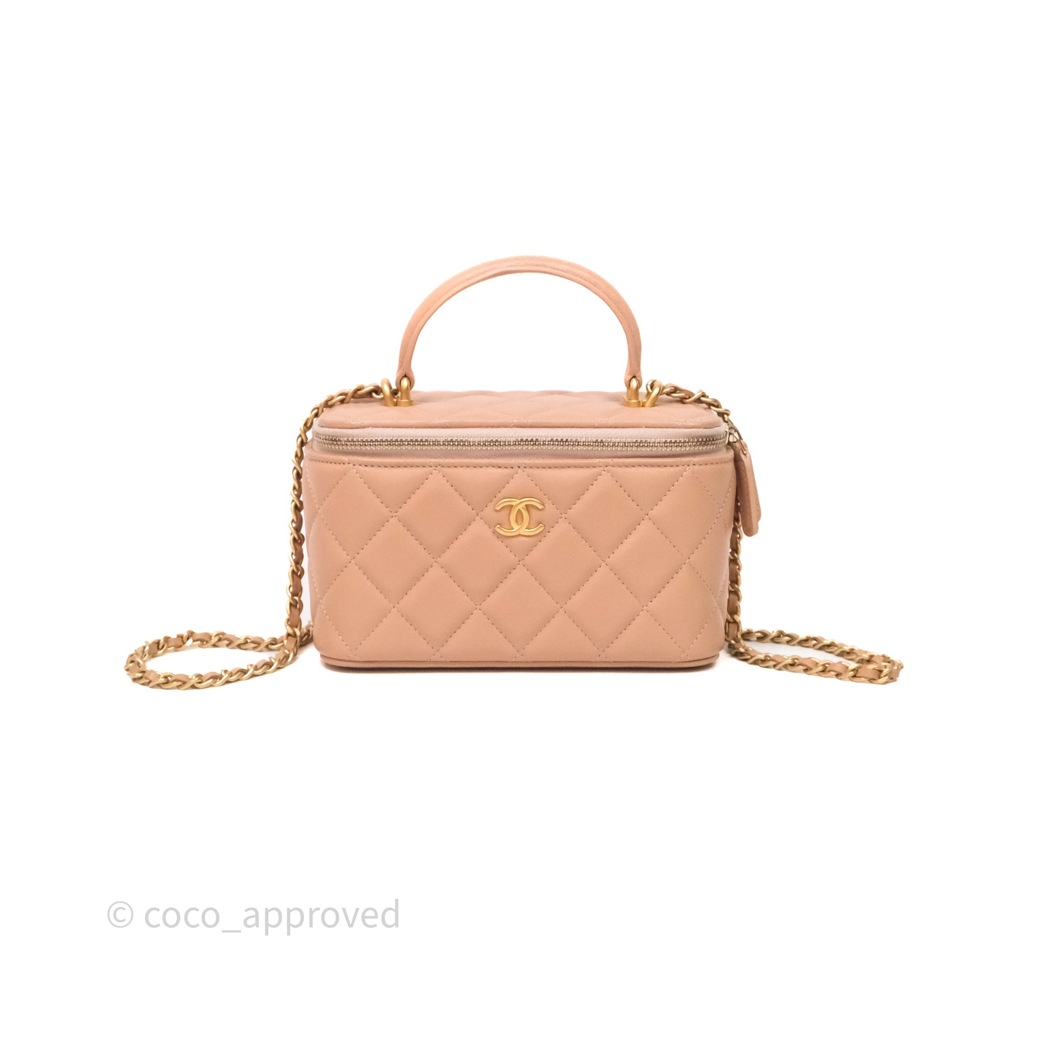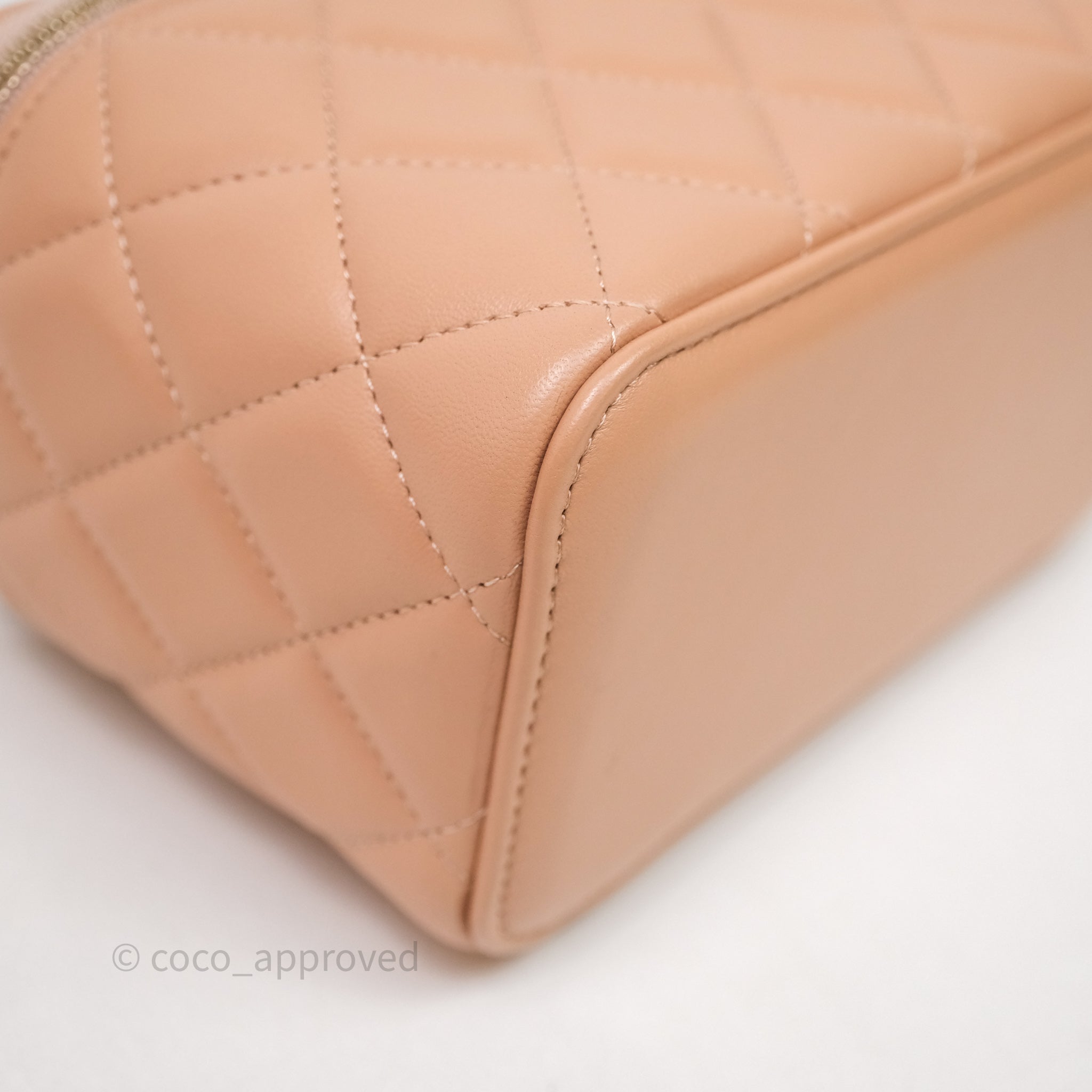 Chanel Vanity Rectangular Top Handle Beige Lambskin Aged Gold Hardware