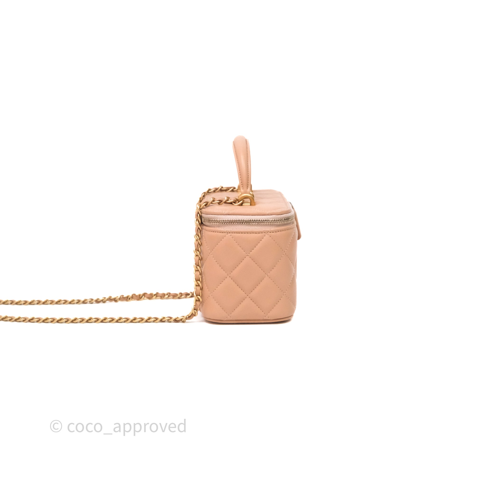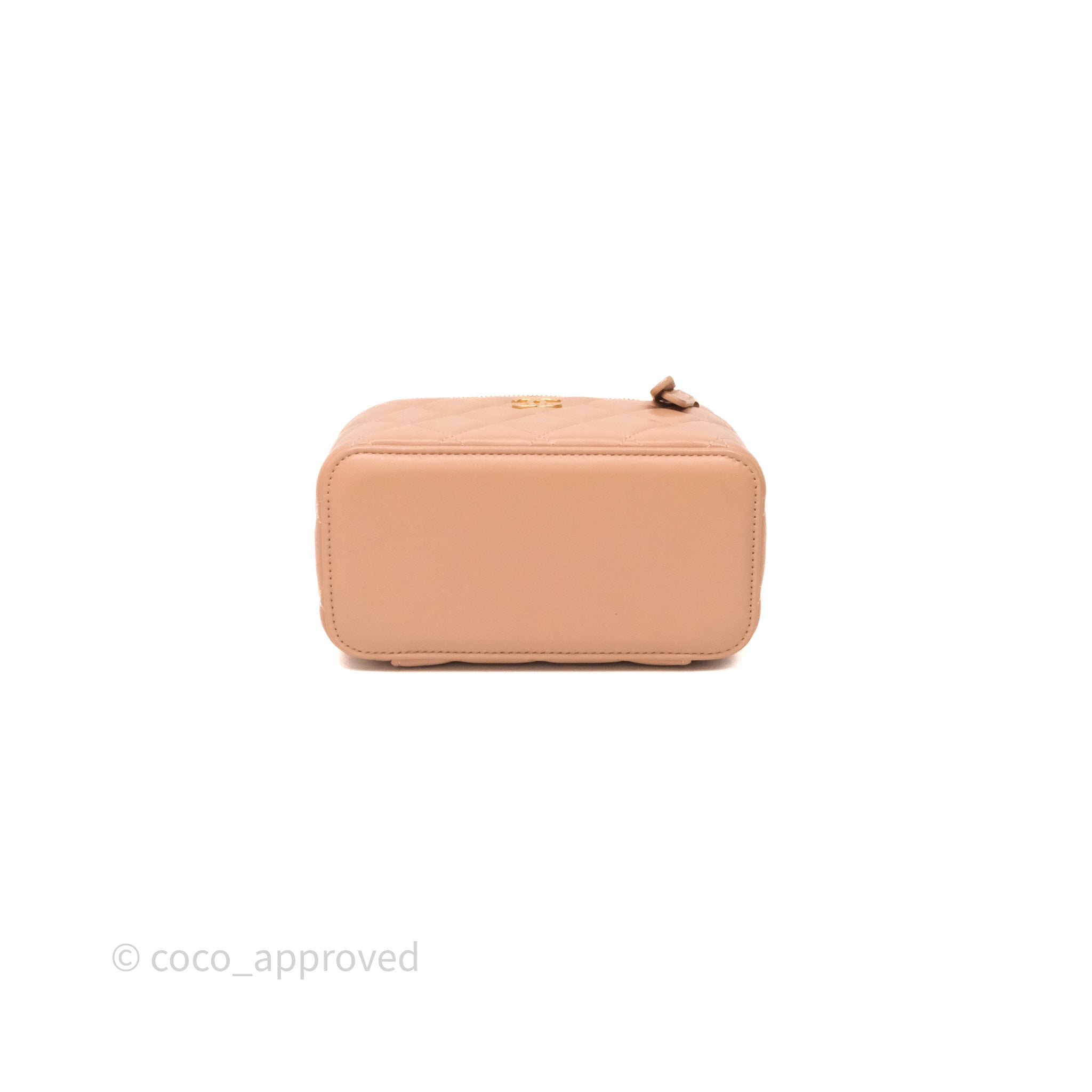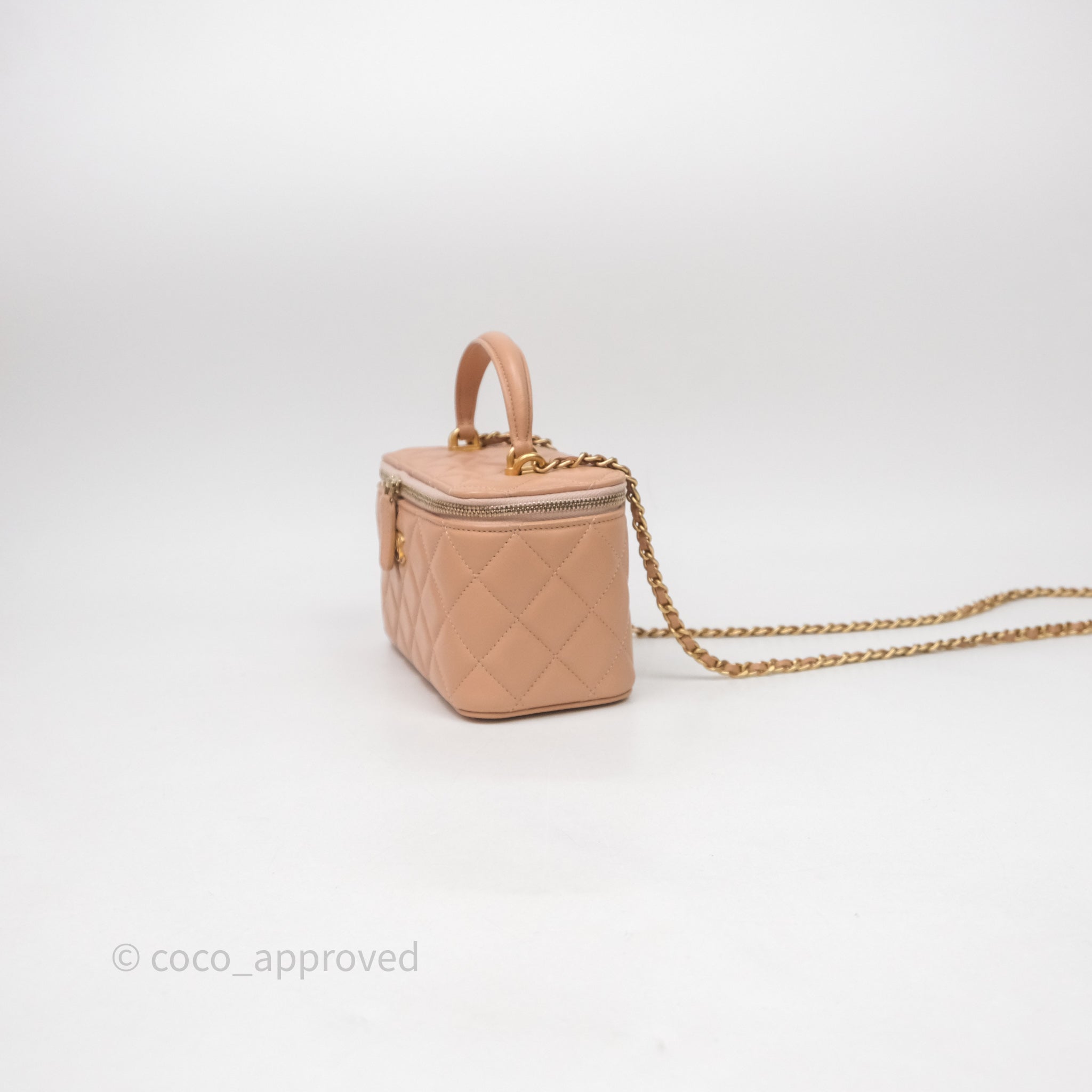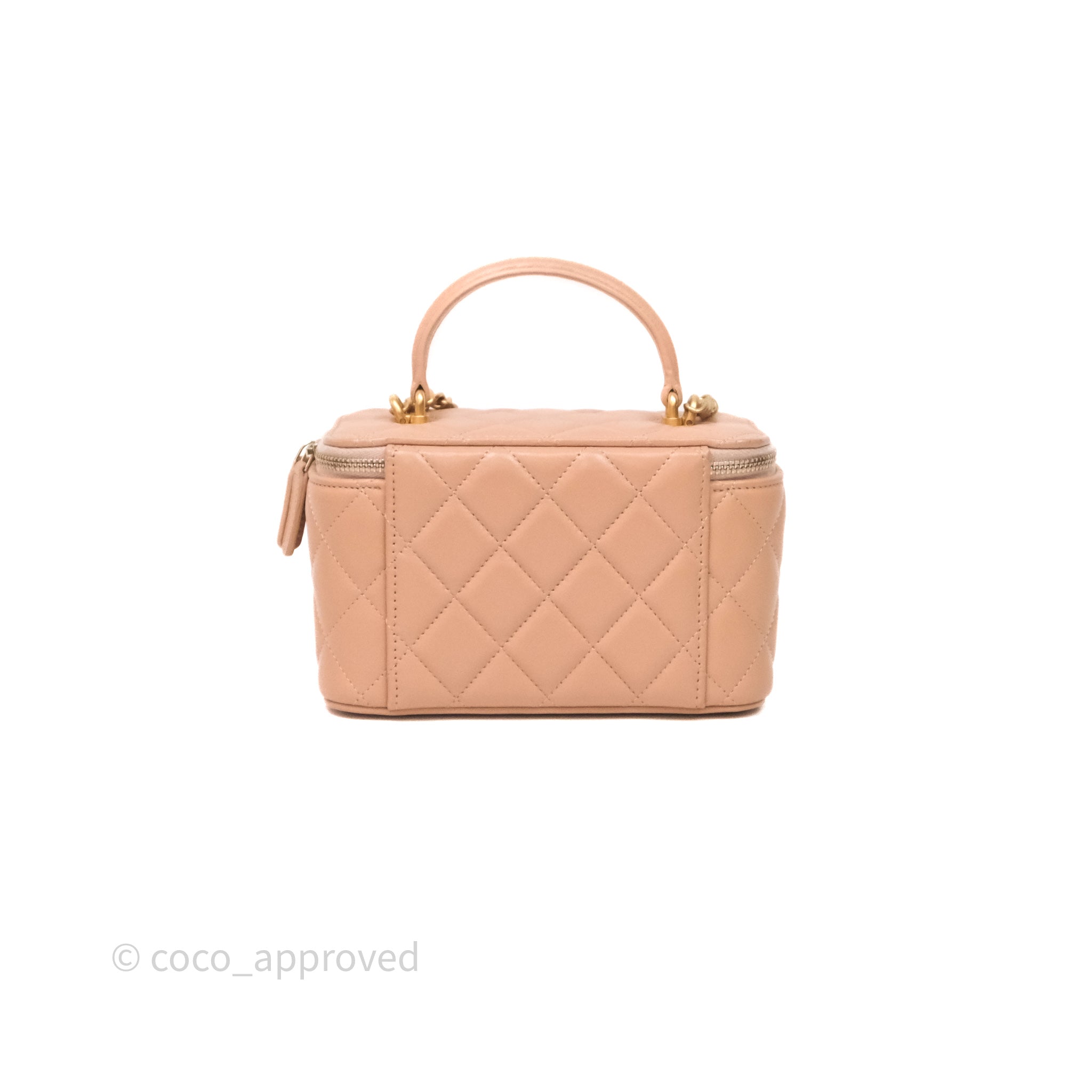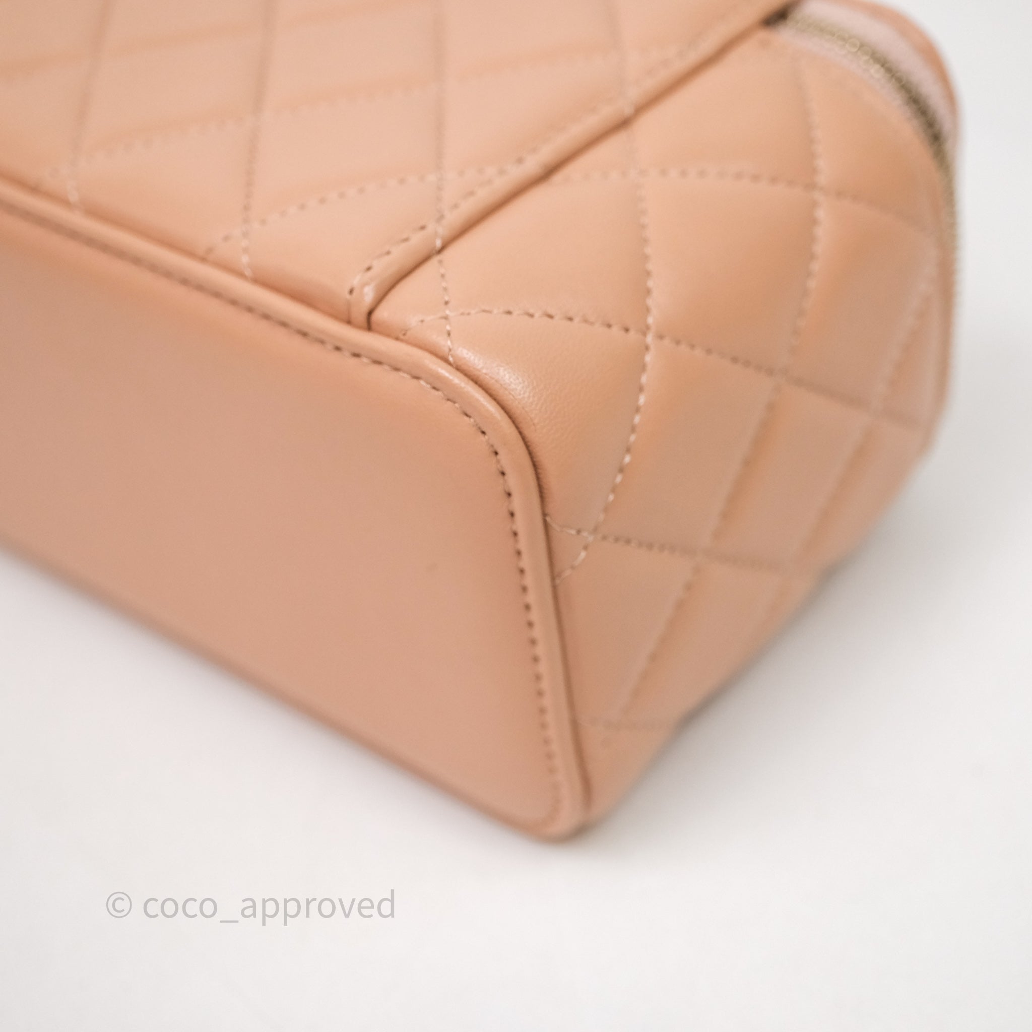 Chanel Vanity Rectangular Top Handle Beige Lambskin Aged Gold Hardware