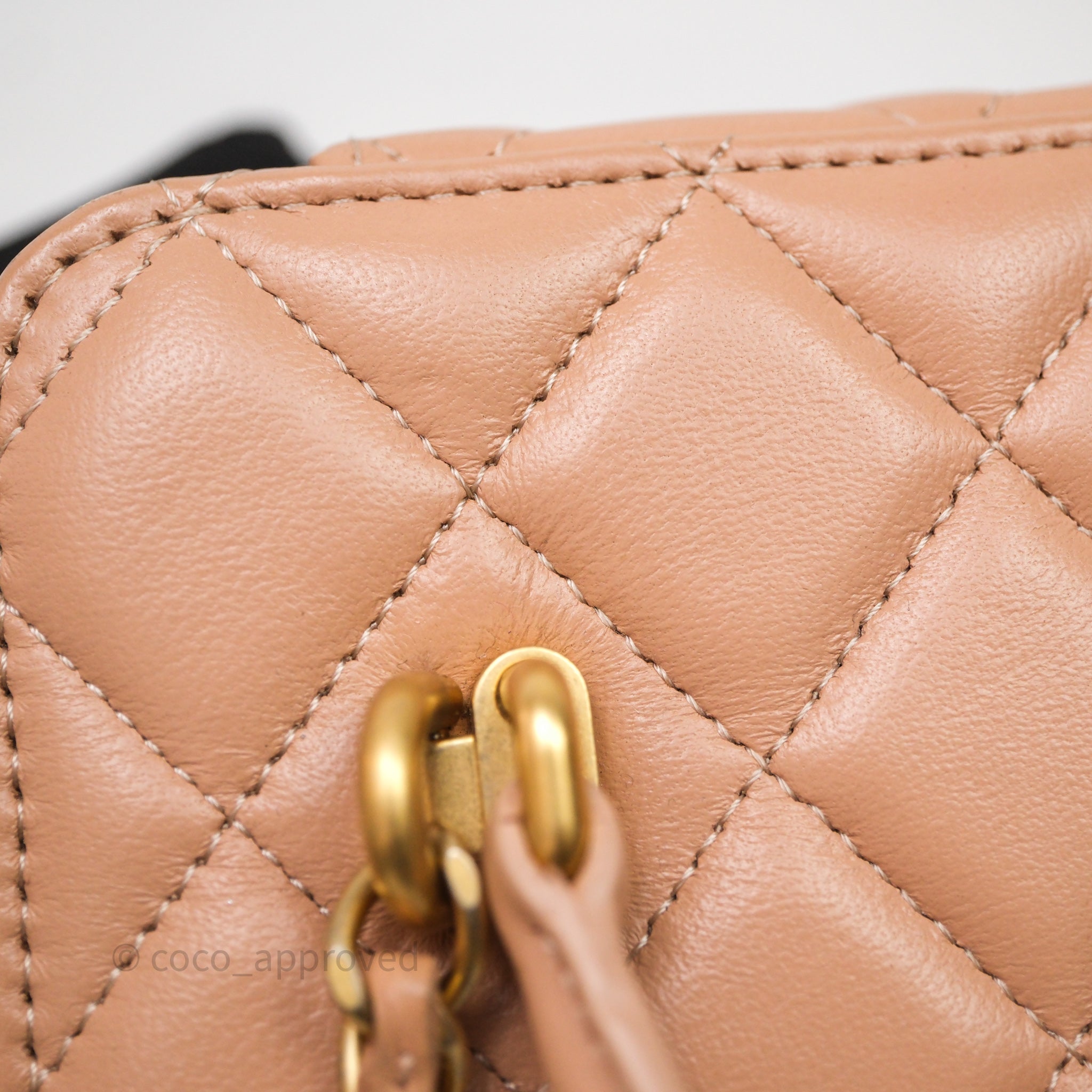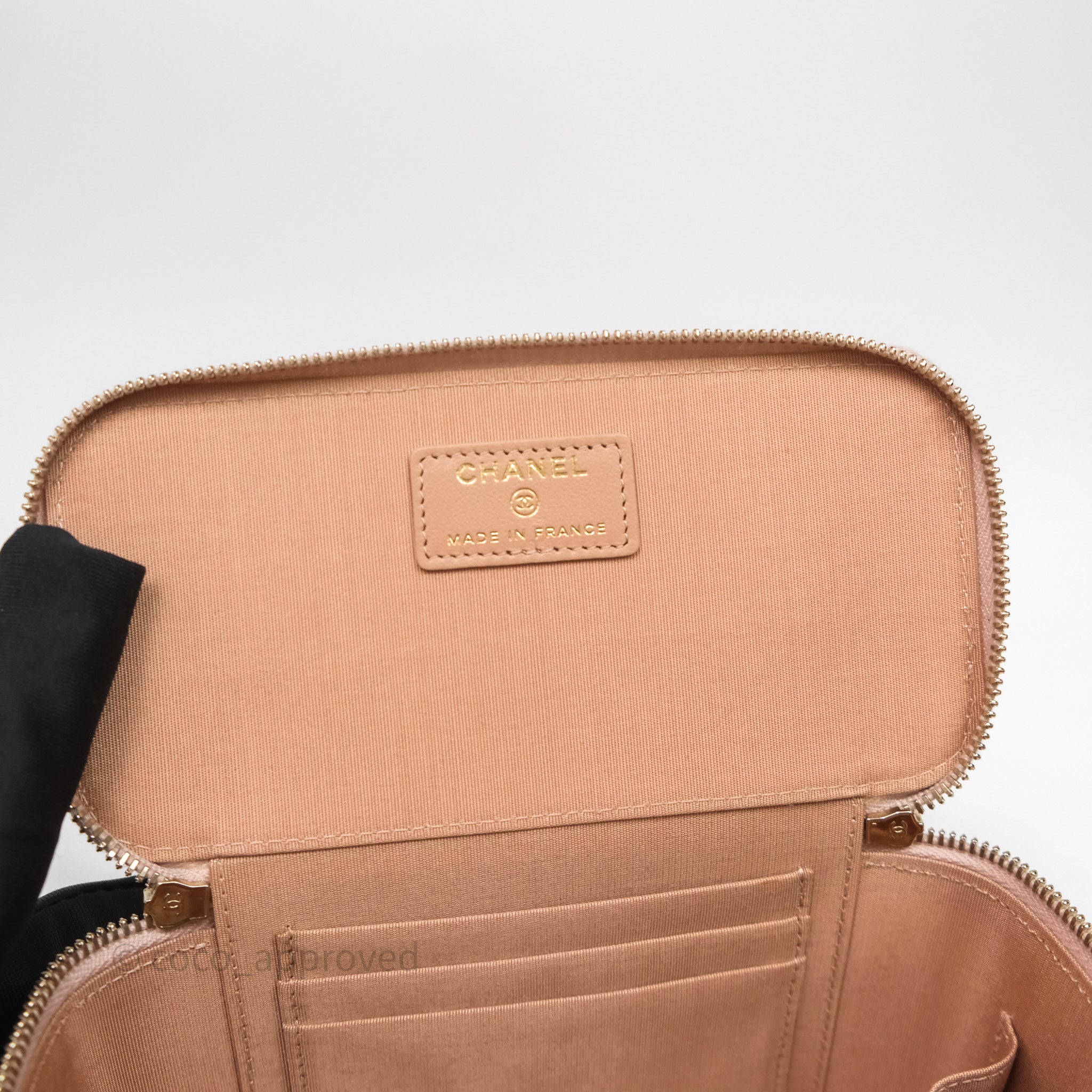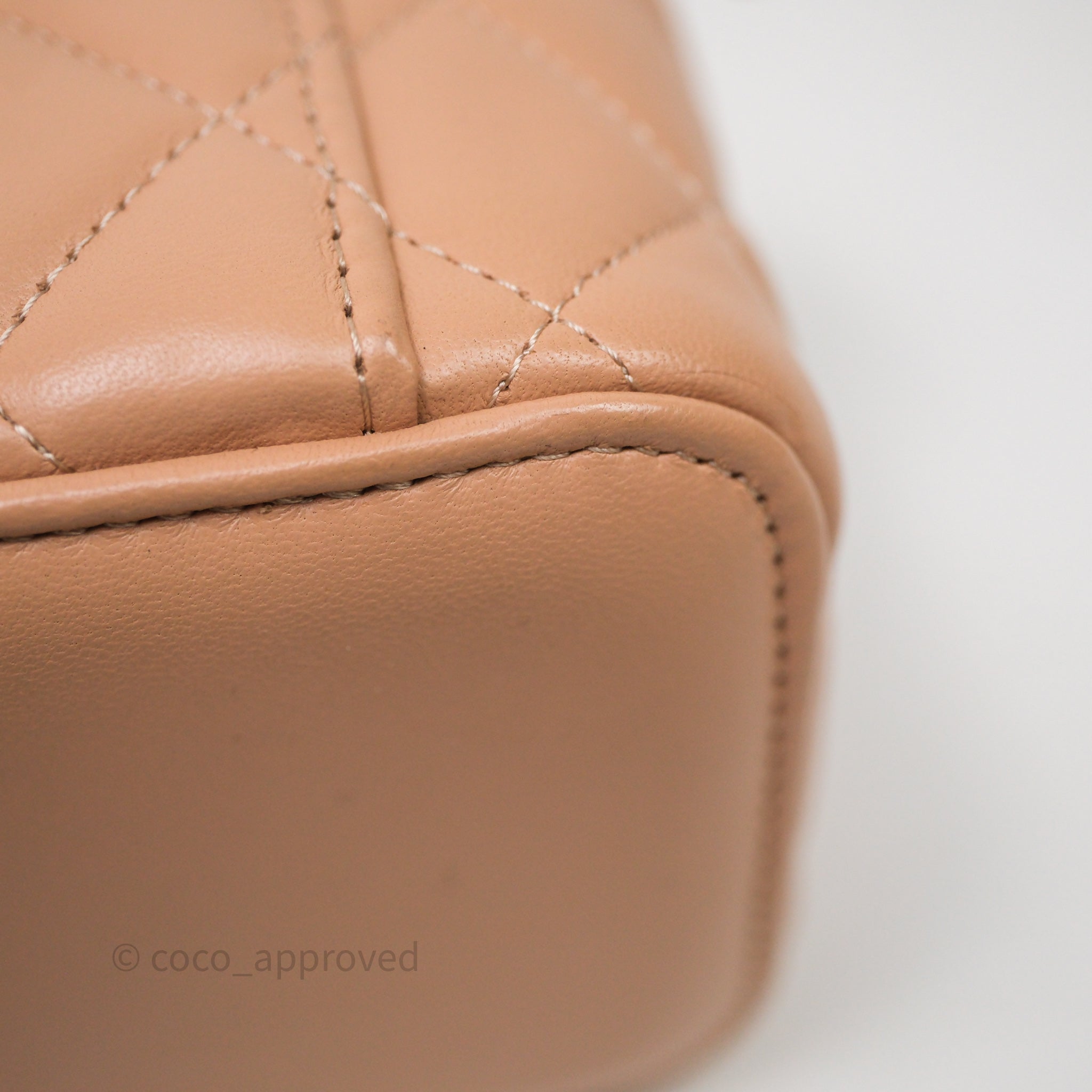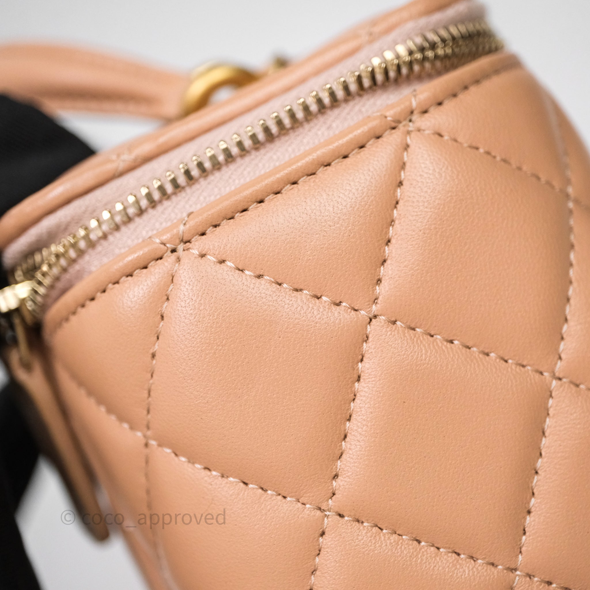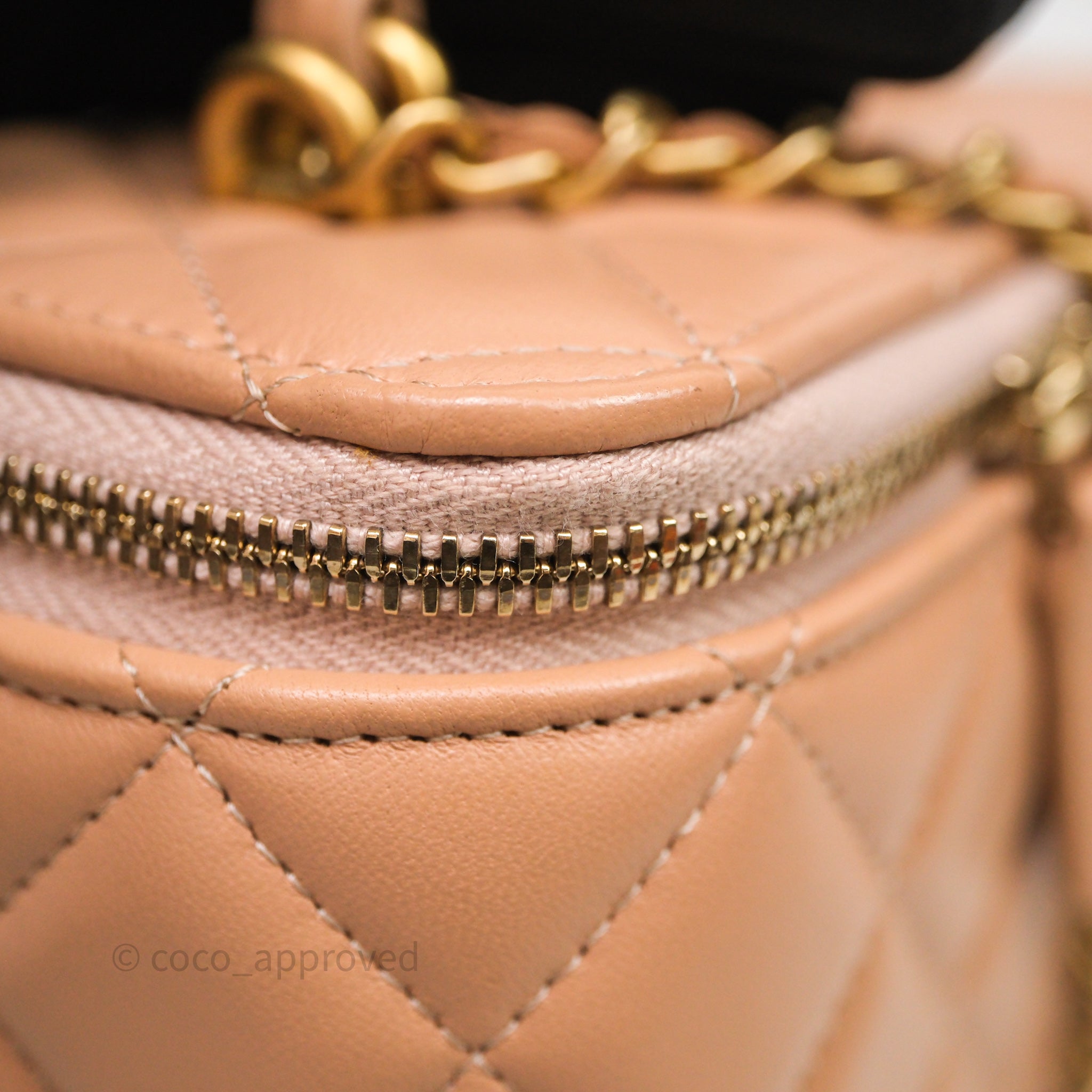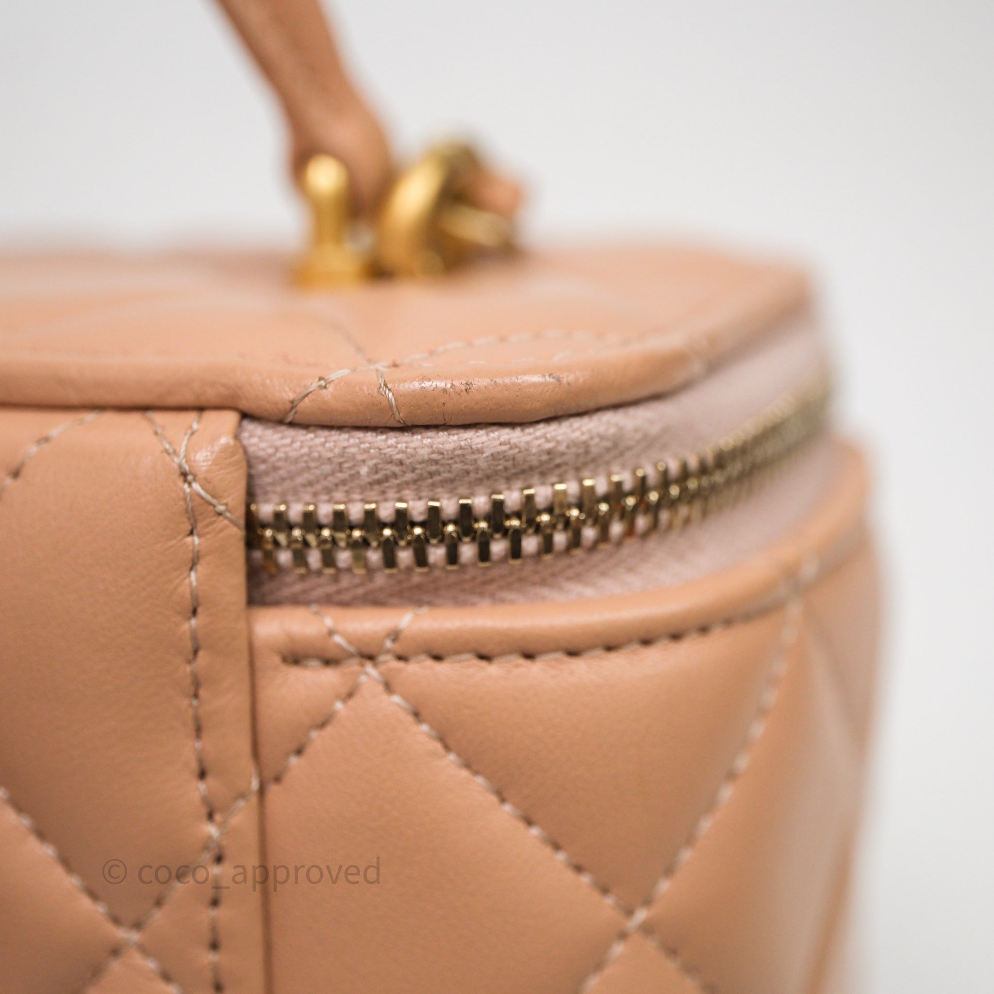 Chanel Vanity Rectangular Top Handle Beige Lambskin Aged Gold Hardware