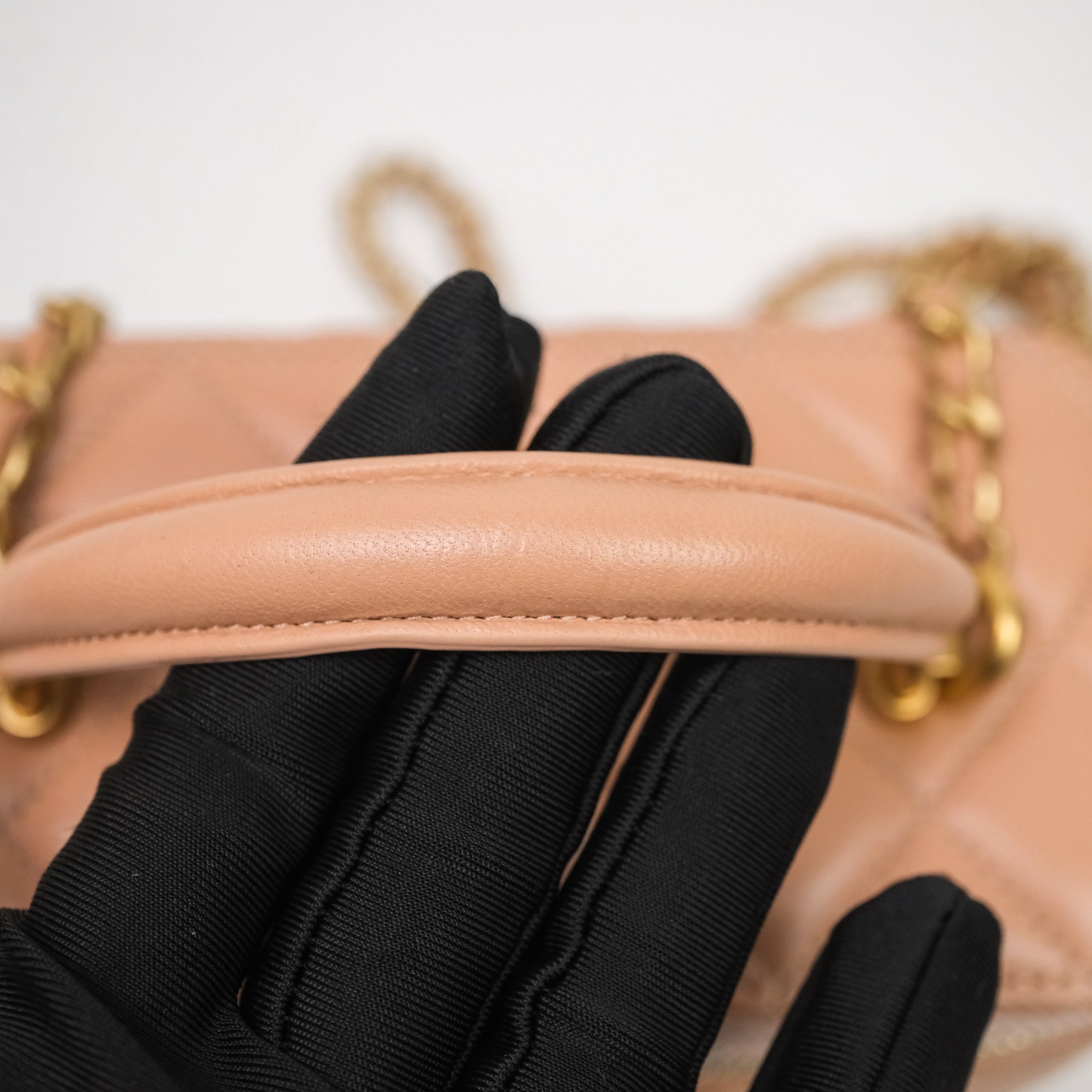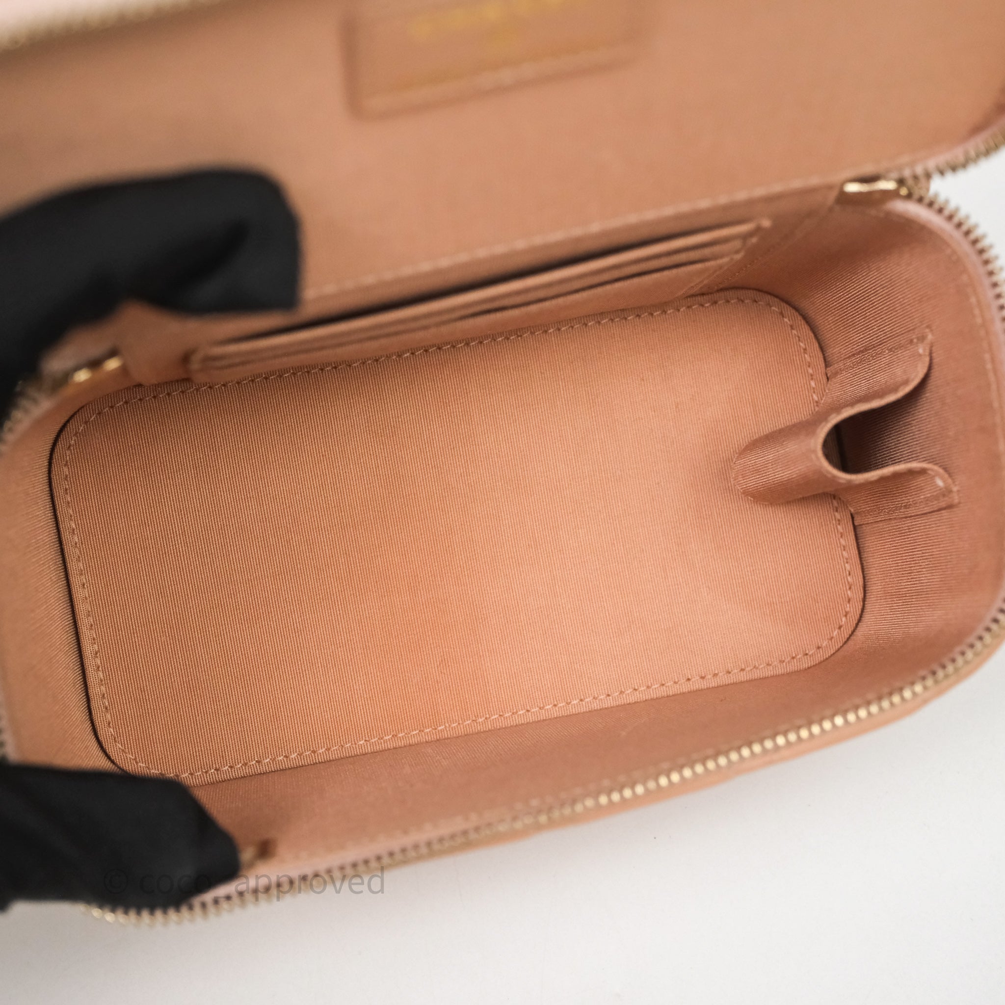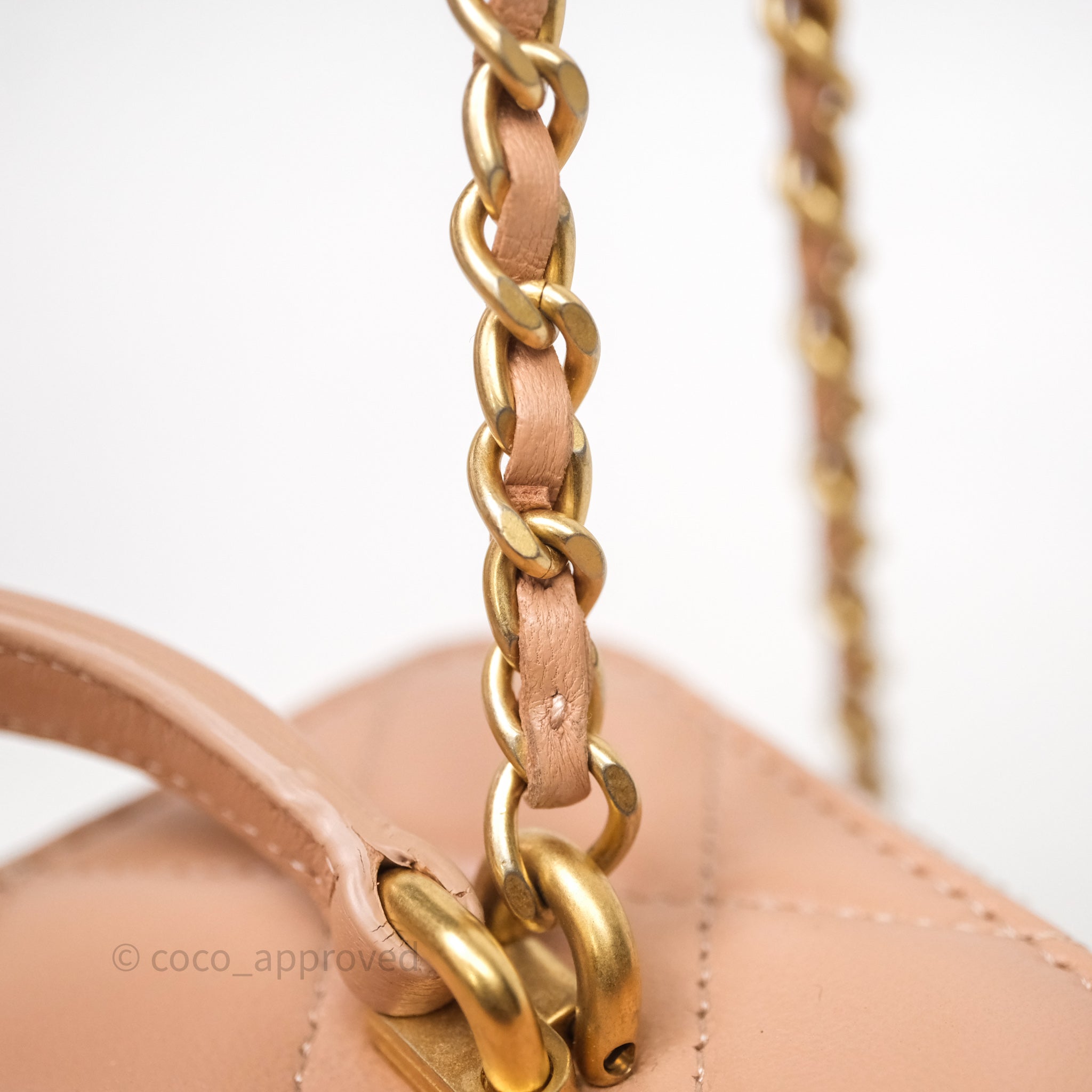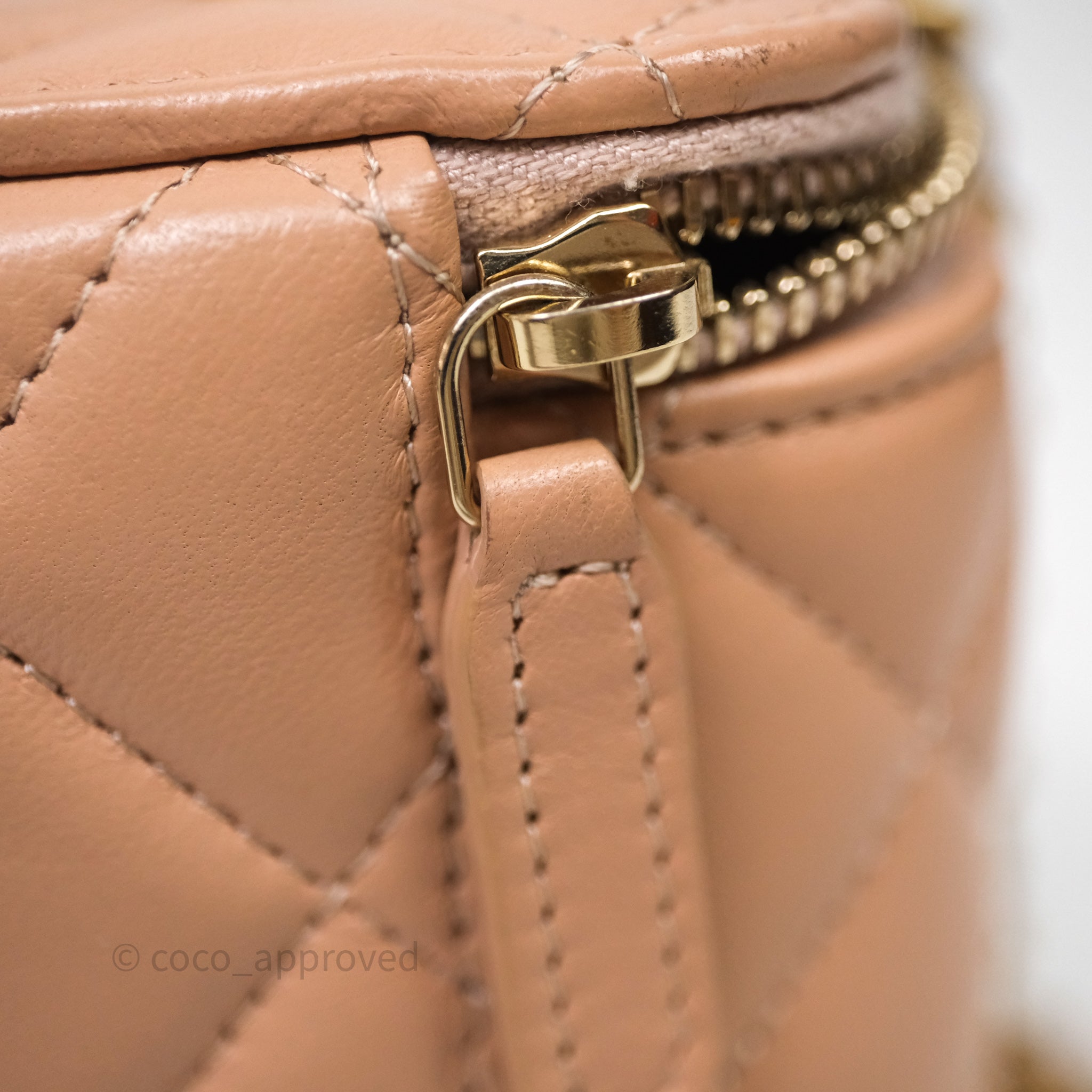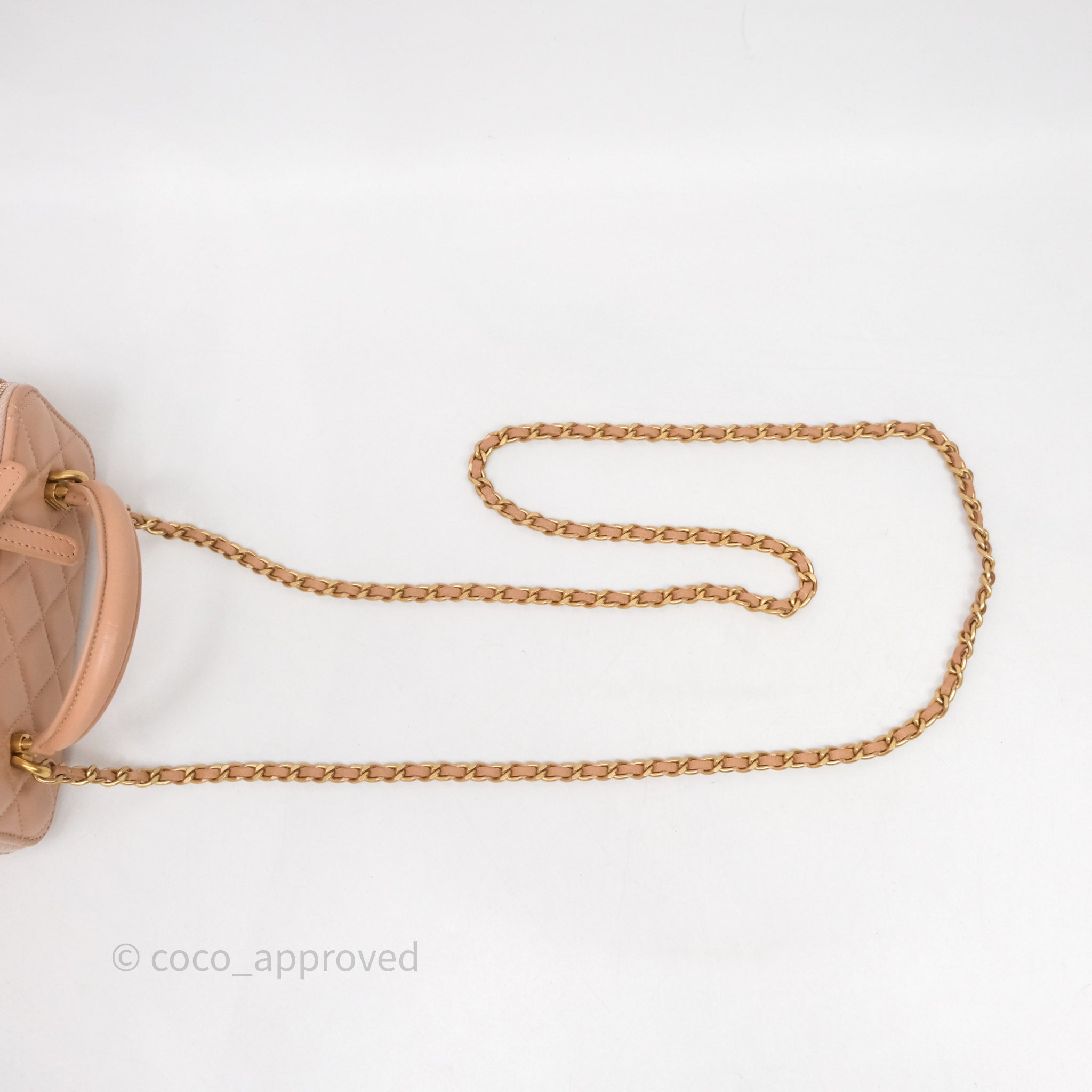 Chanel Vanity Rectangular Top Handle Beige Lambskin Aged Gold Hardware