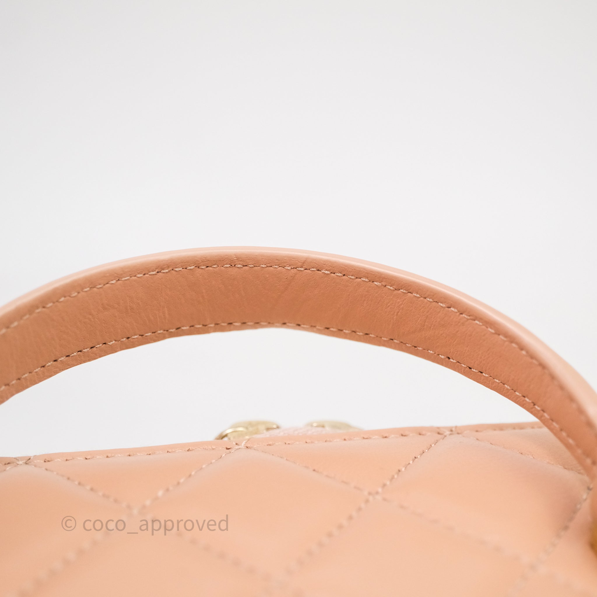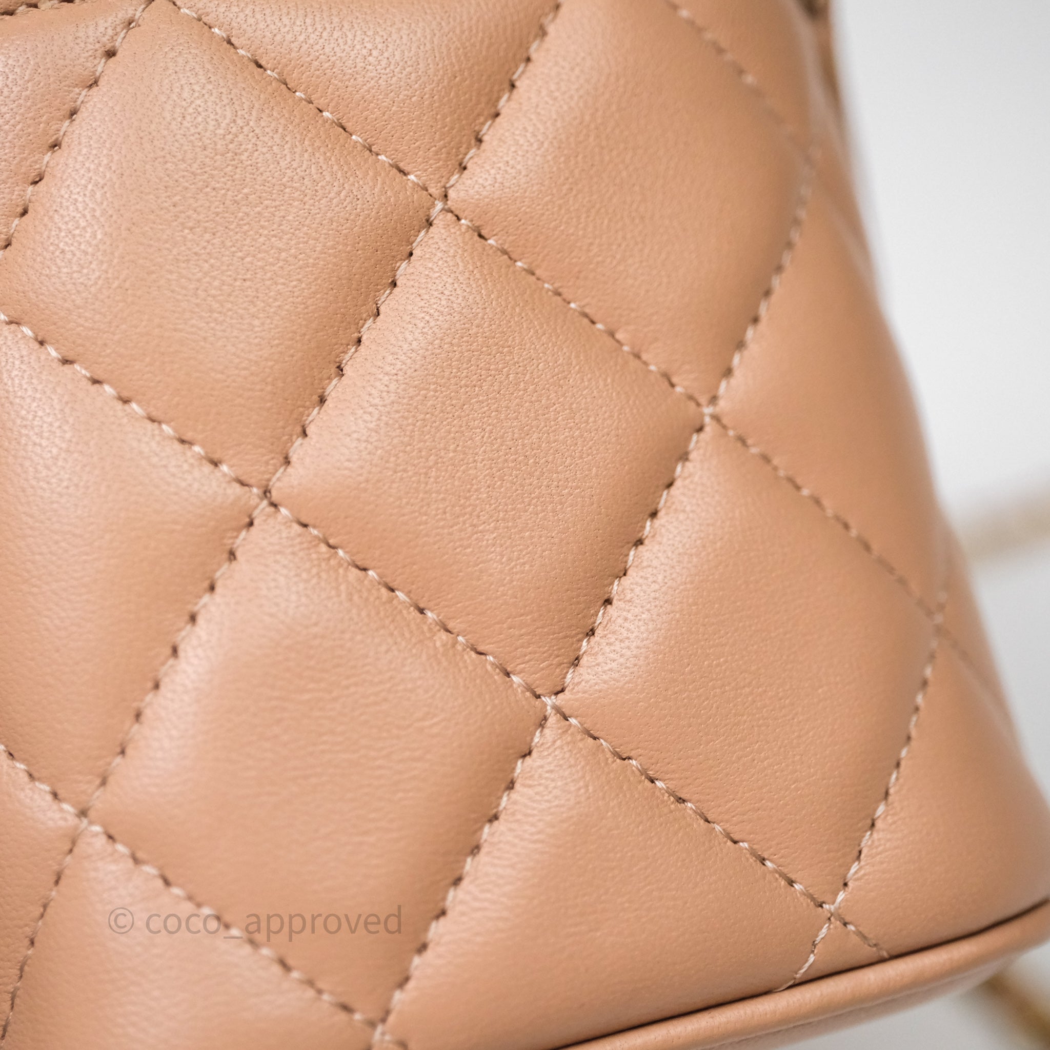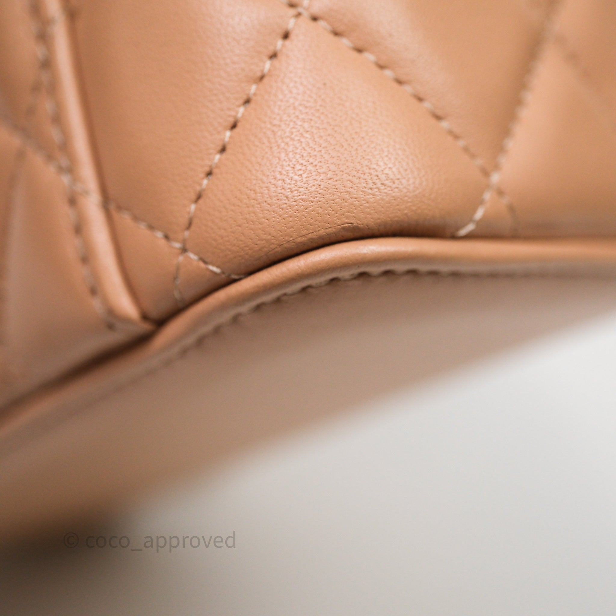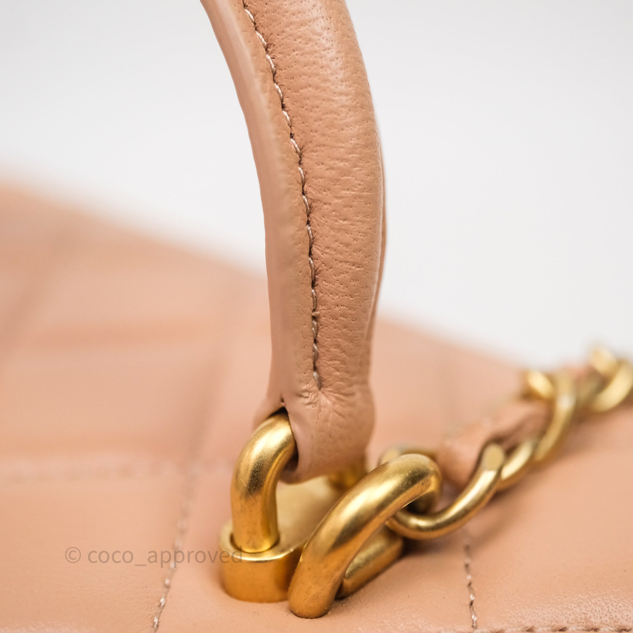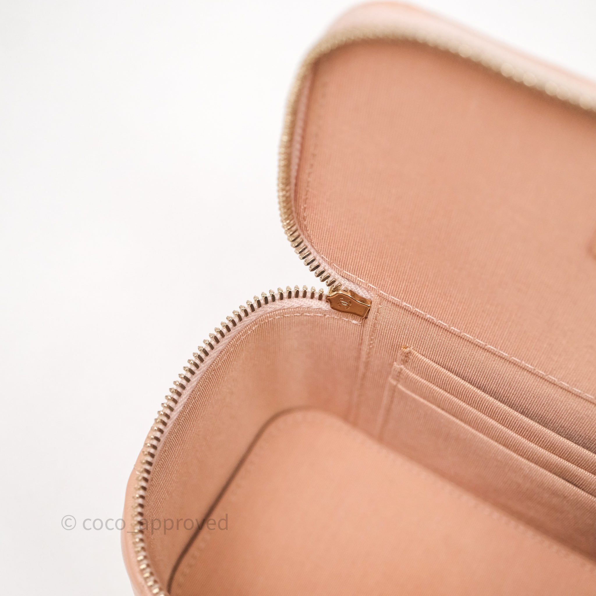 Chanel Vanity Rectangular Top Handle Beige Lambskin Aged Gold Hardware
