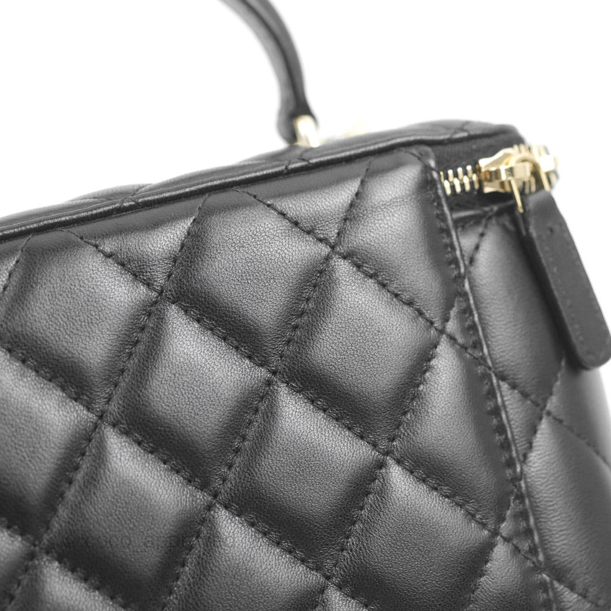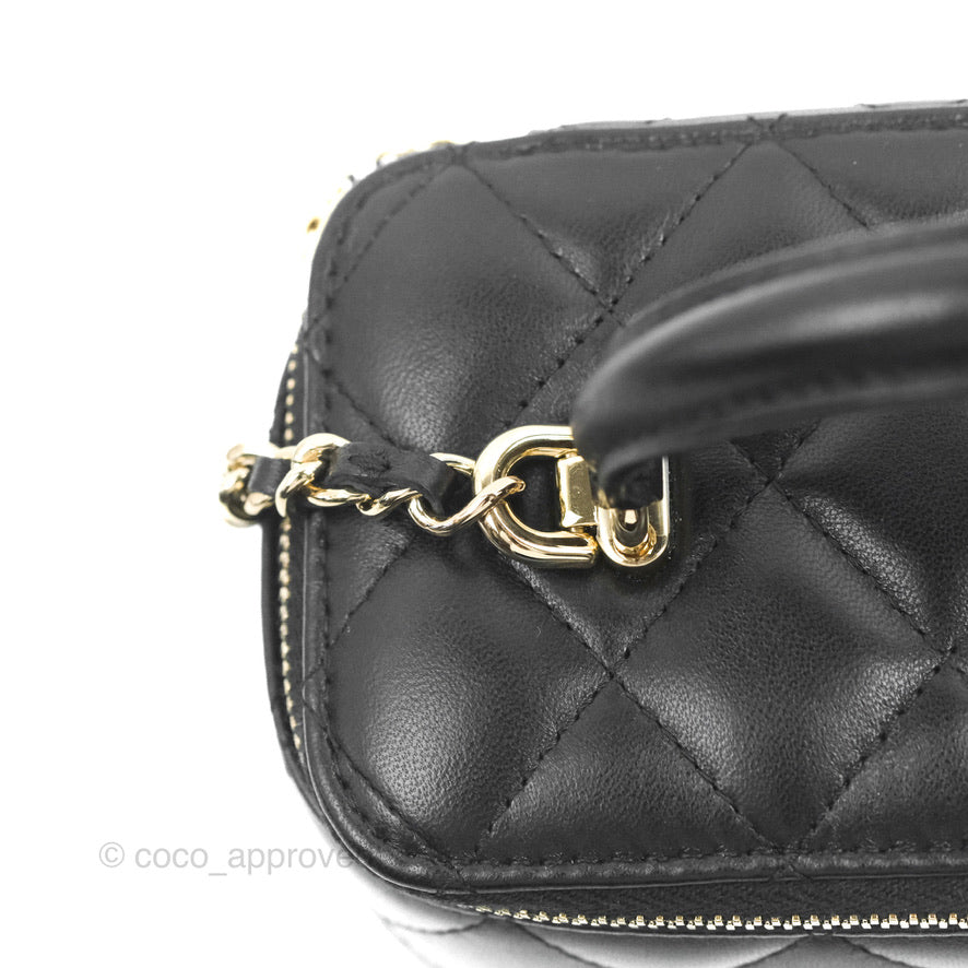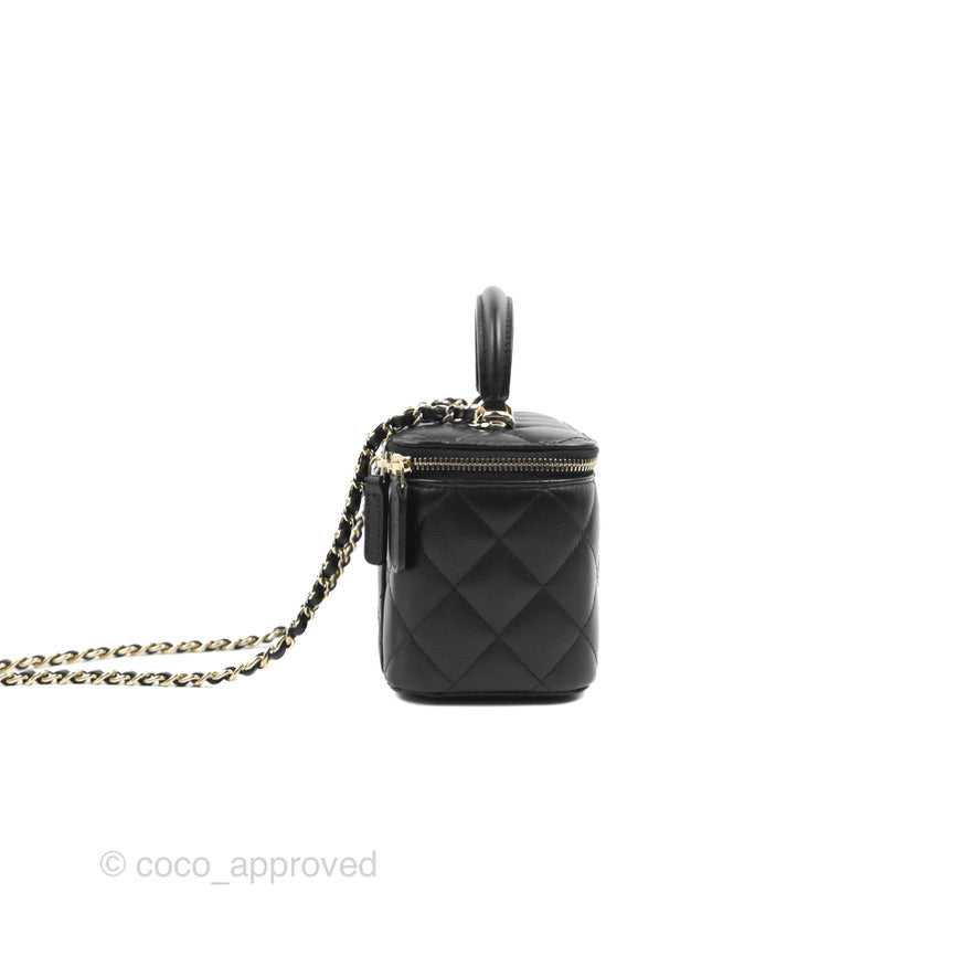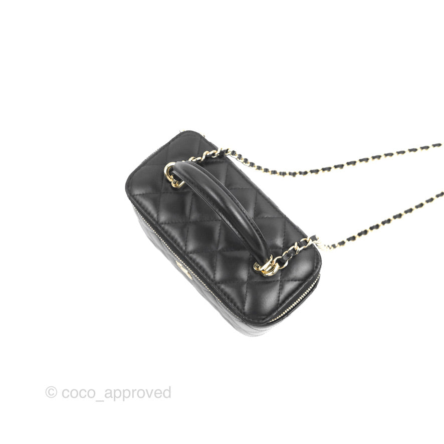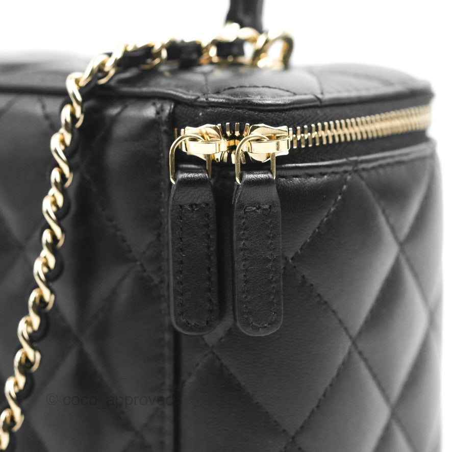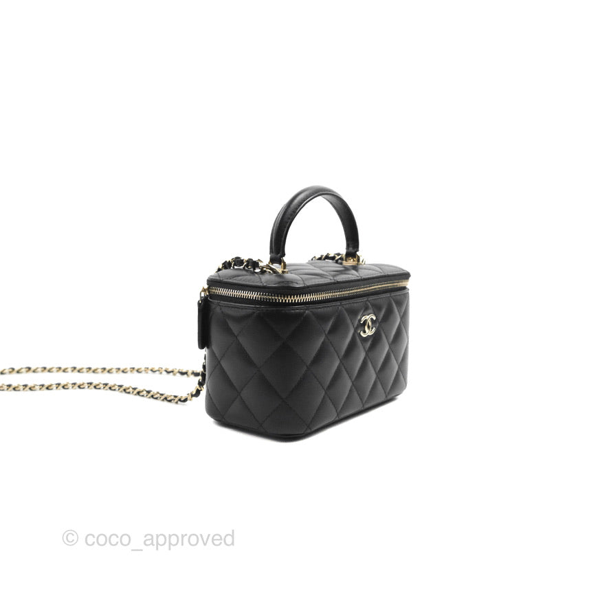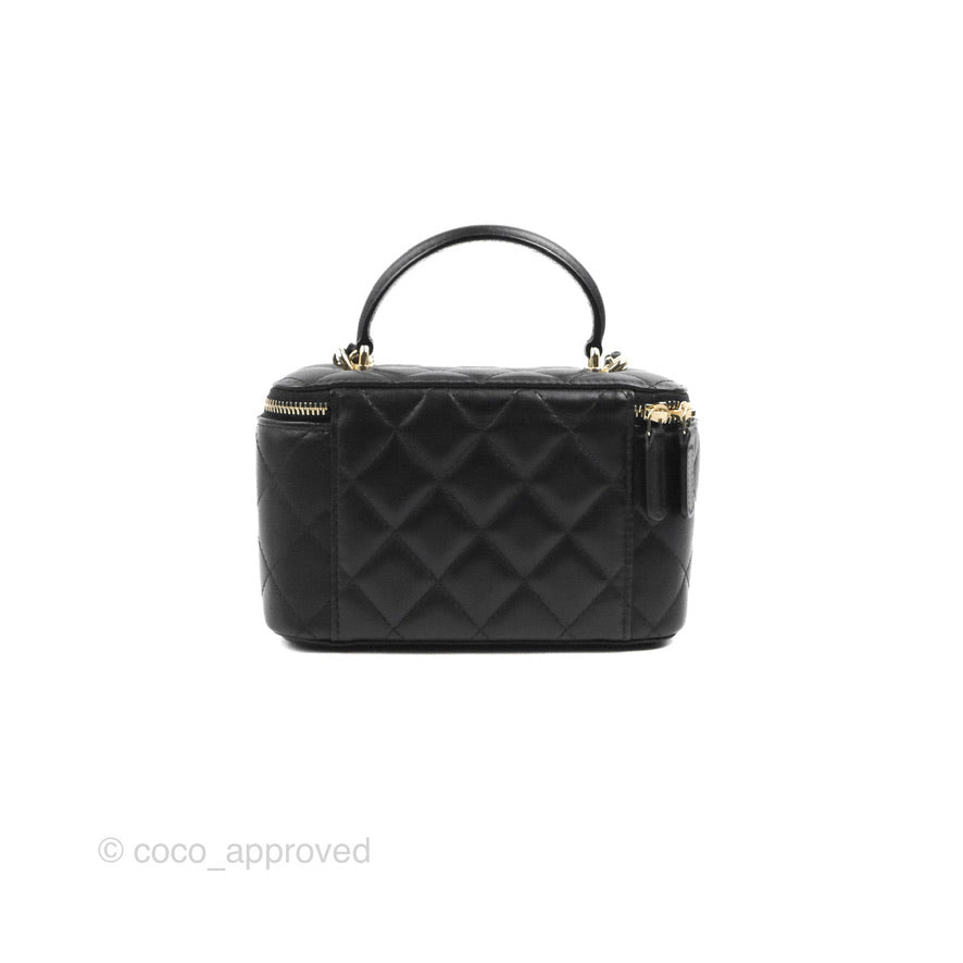 Chanel Vanity Rectangular Top Handle Black Lambskin Gold Hardware