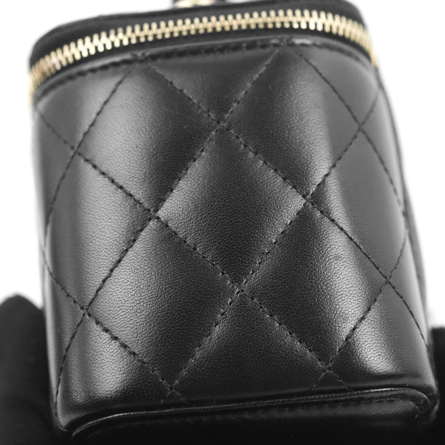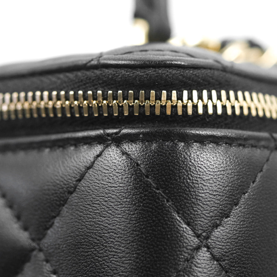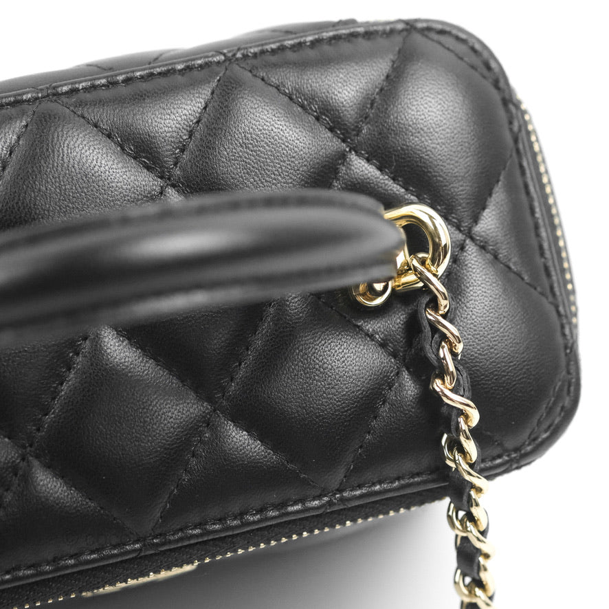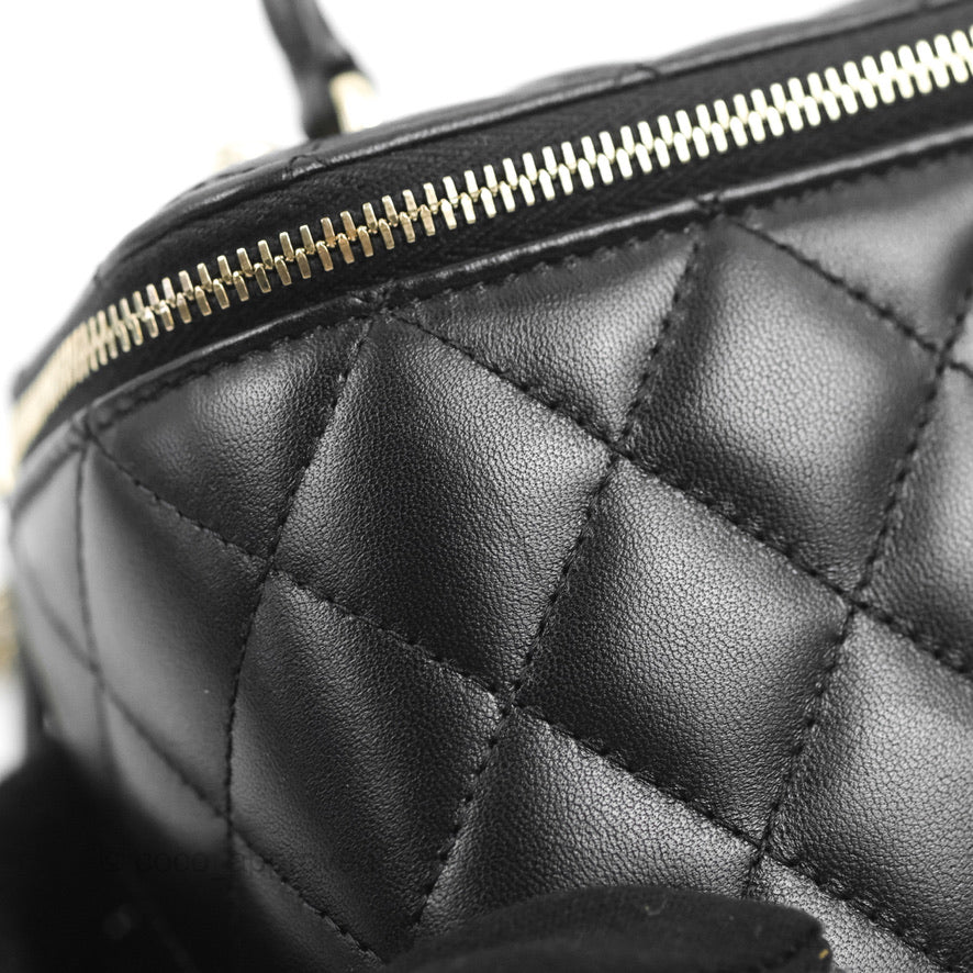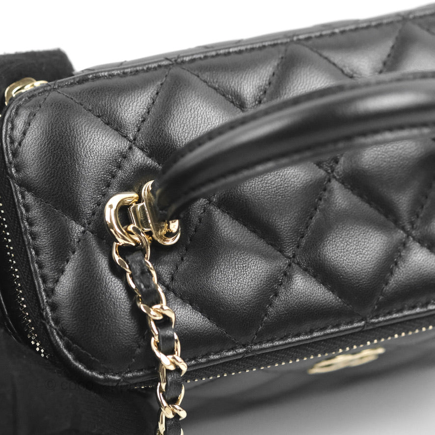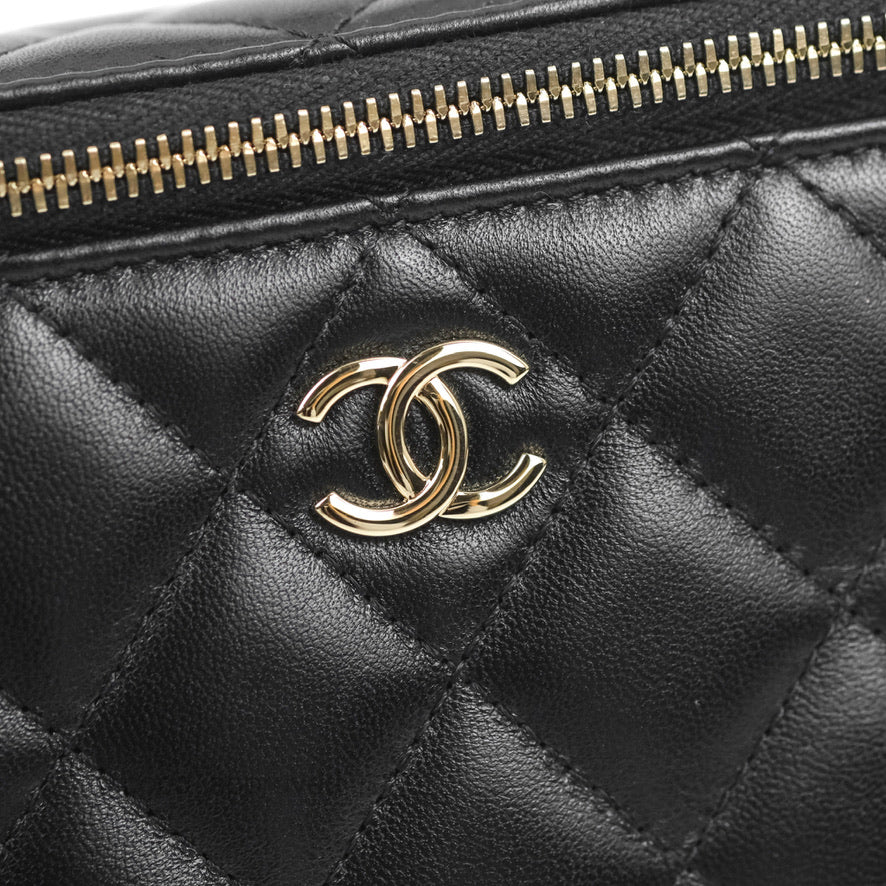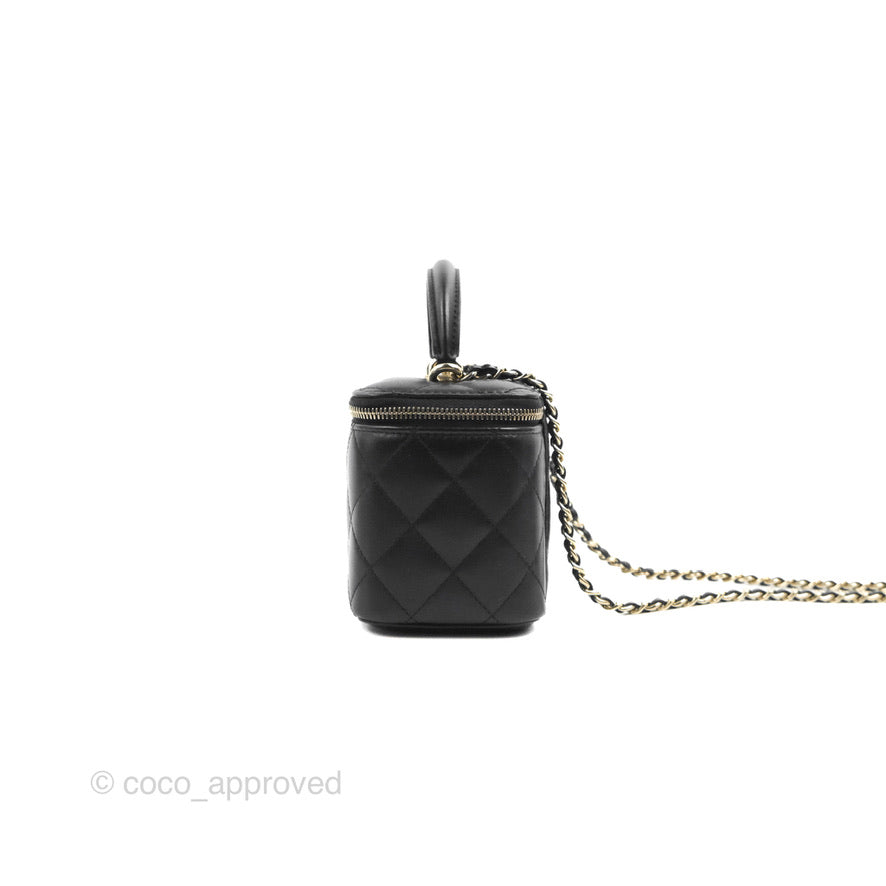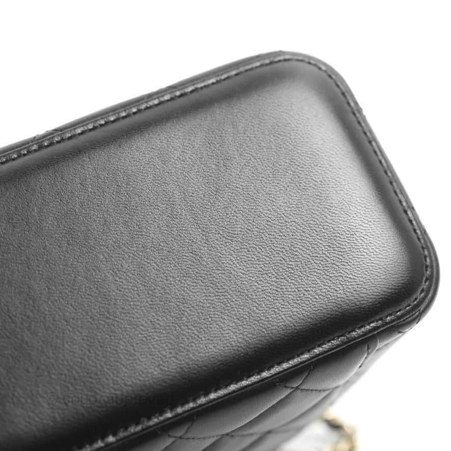 Chanel Vanity Rectangular Top Handle Black Lambskin Gold Hardware