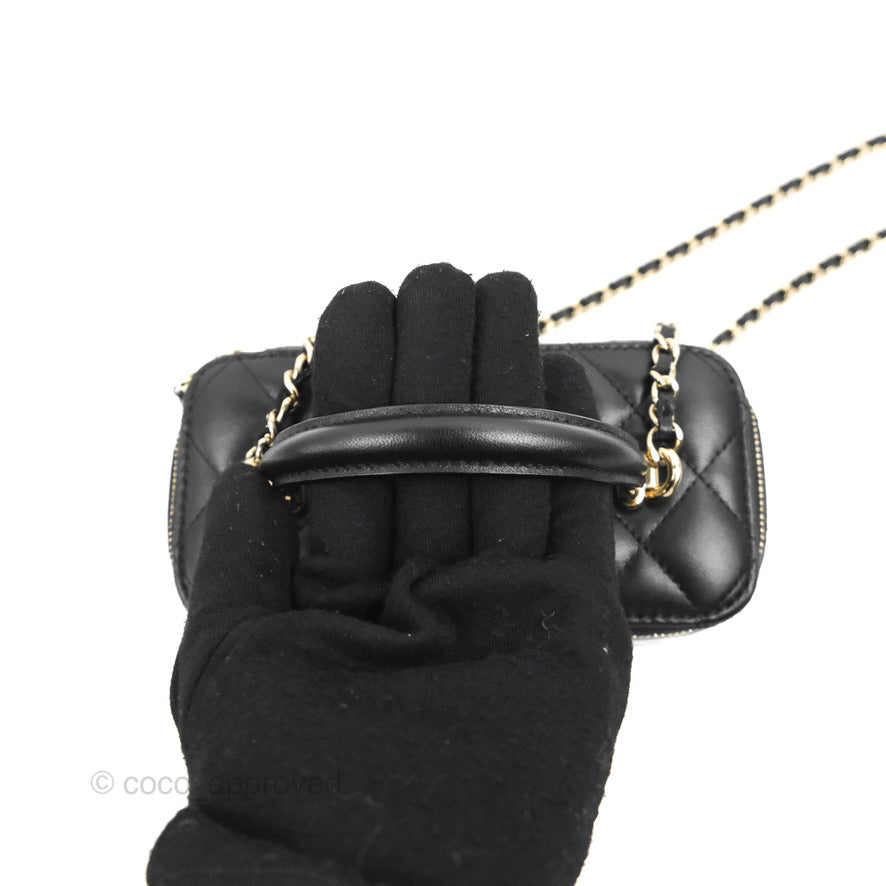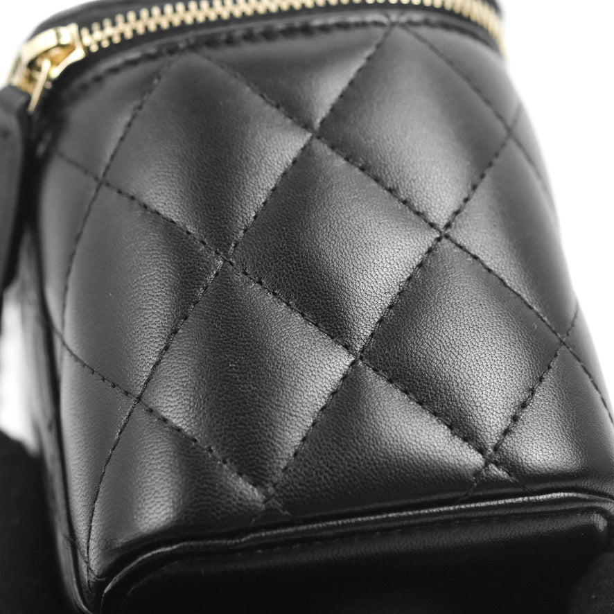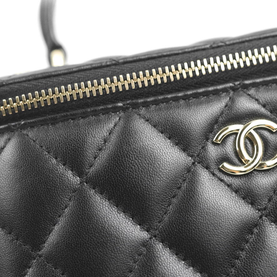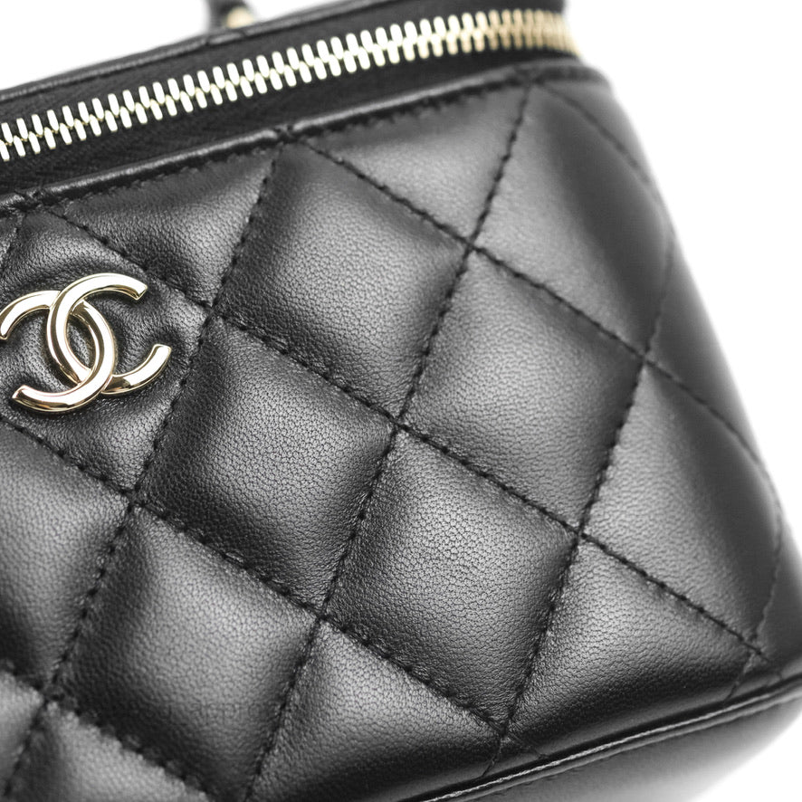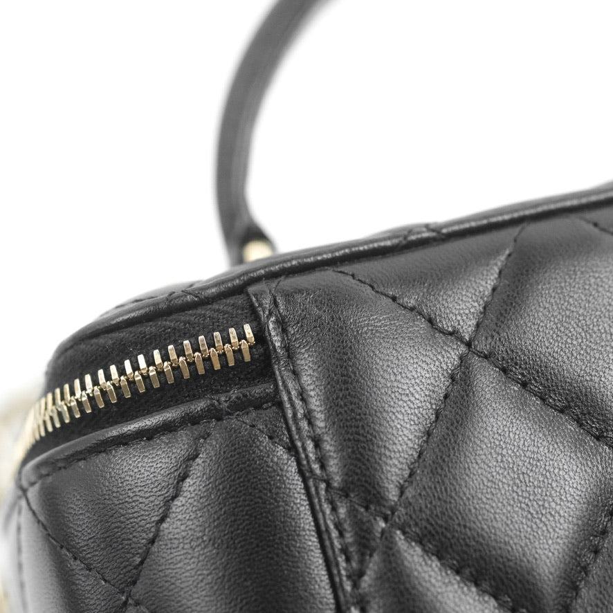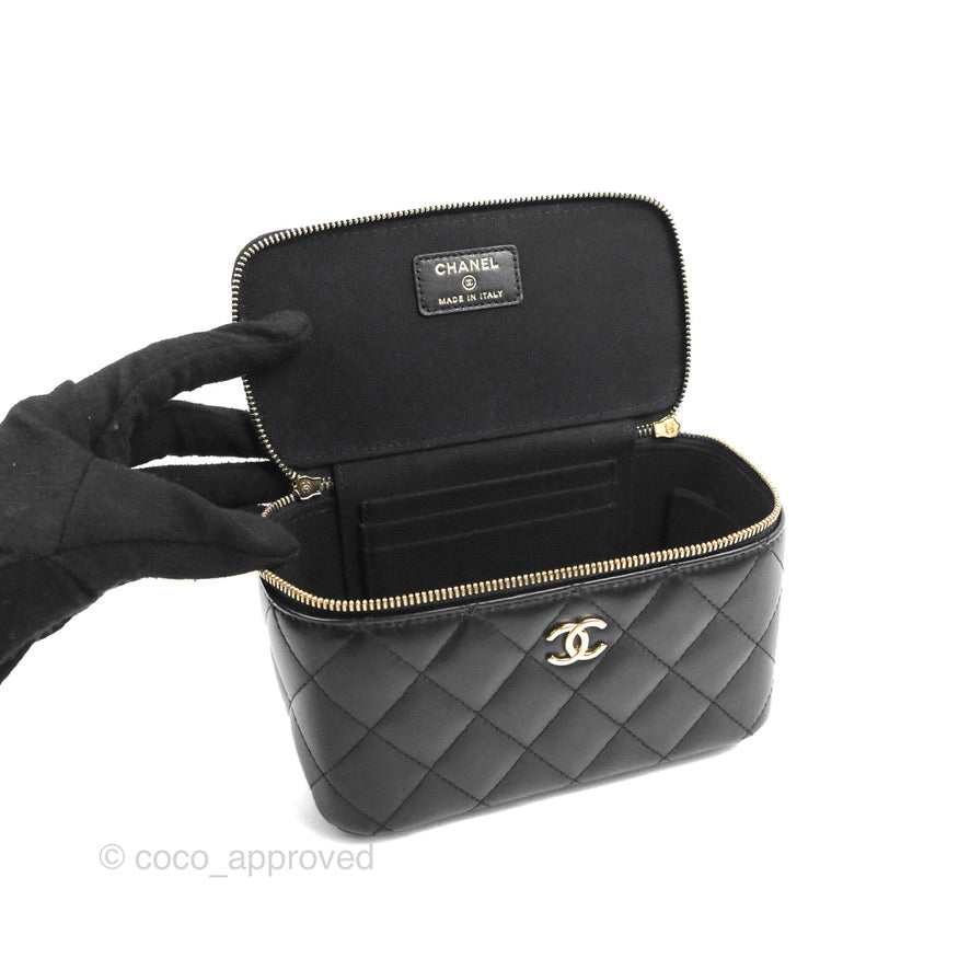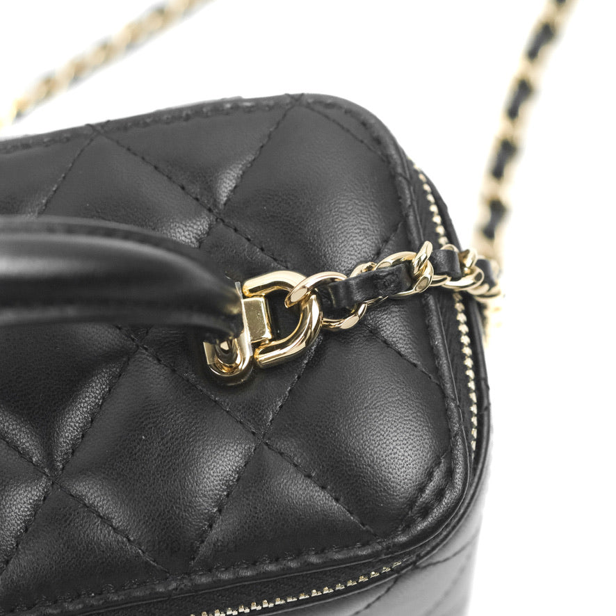 Chanel Vanity Rectangular Top Handle Black Lambskin Gold Hardware