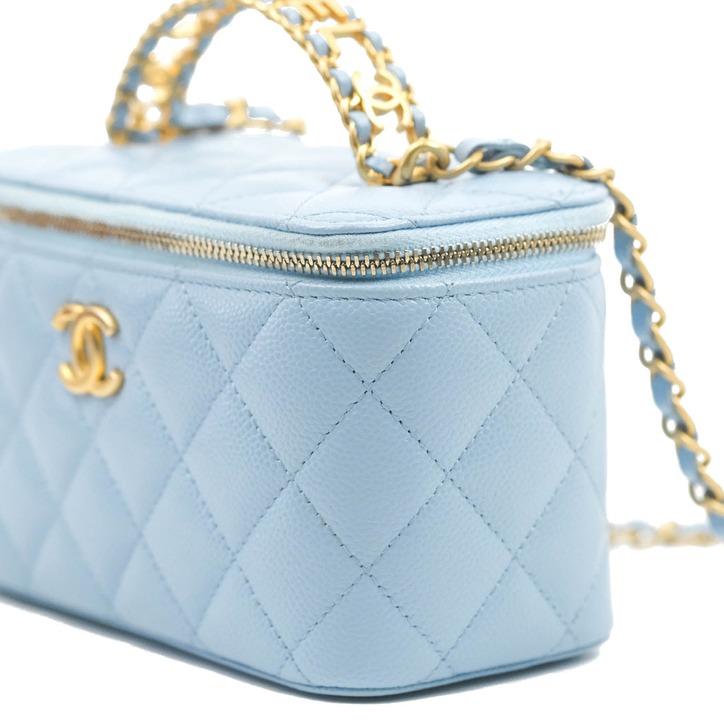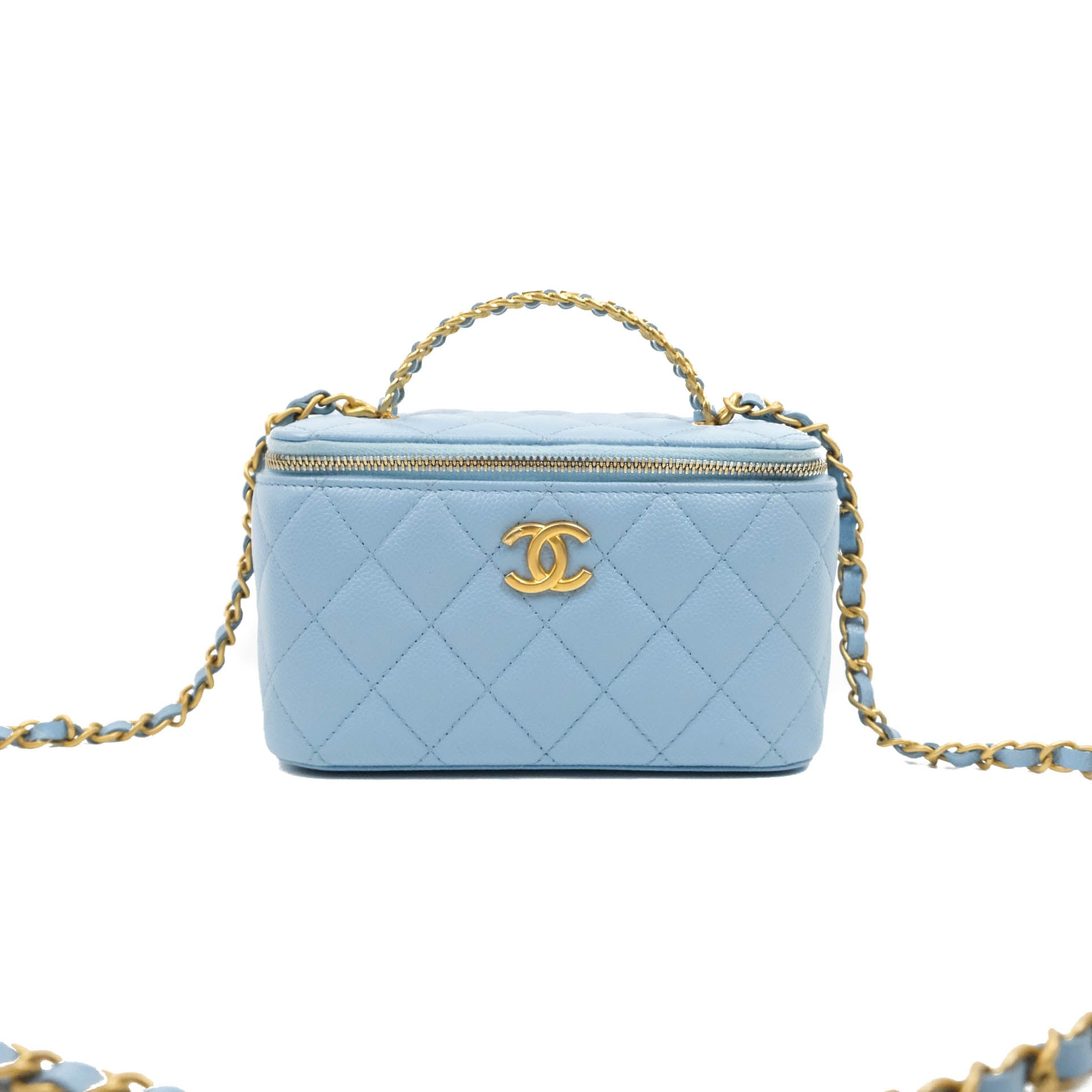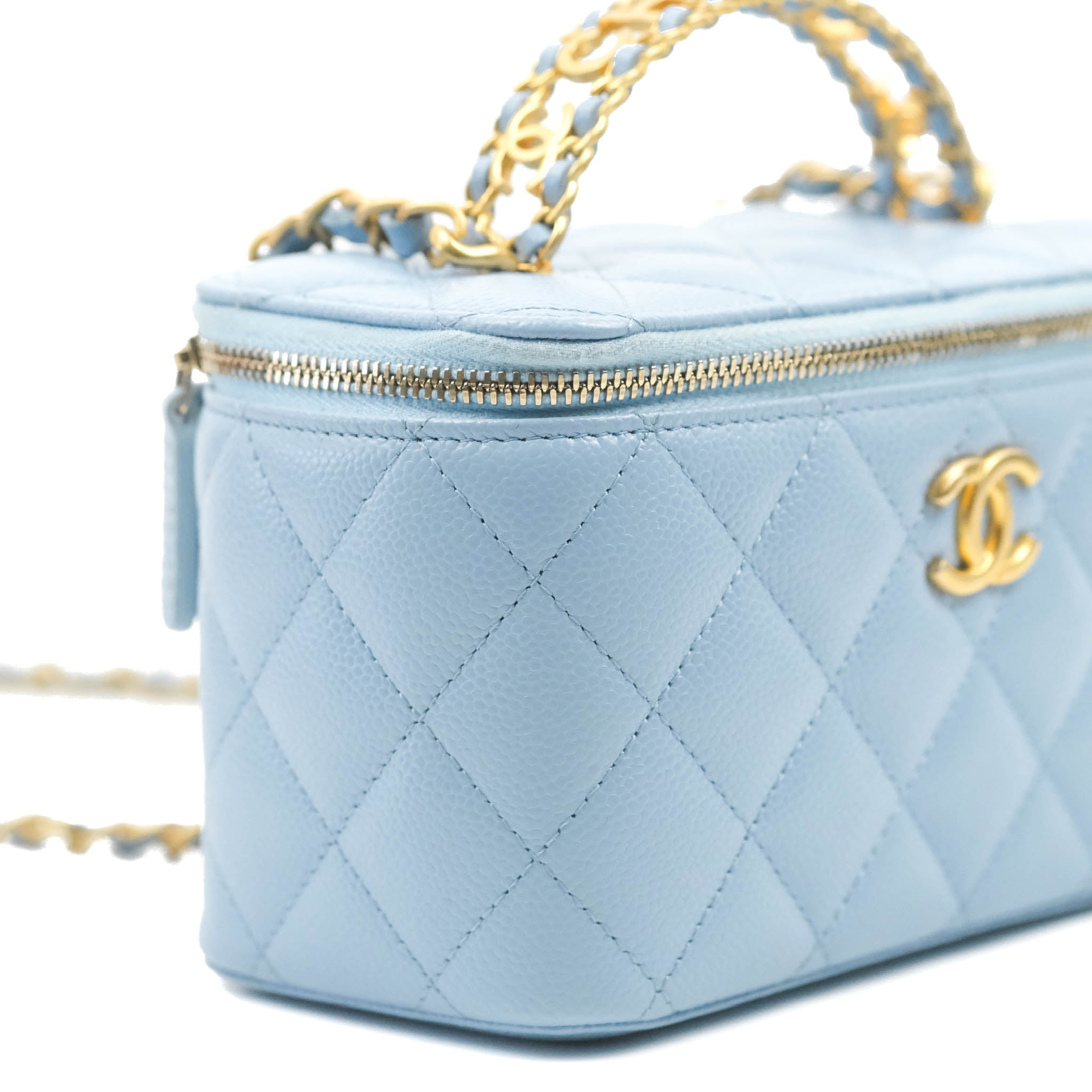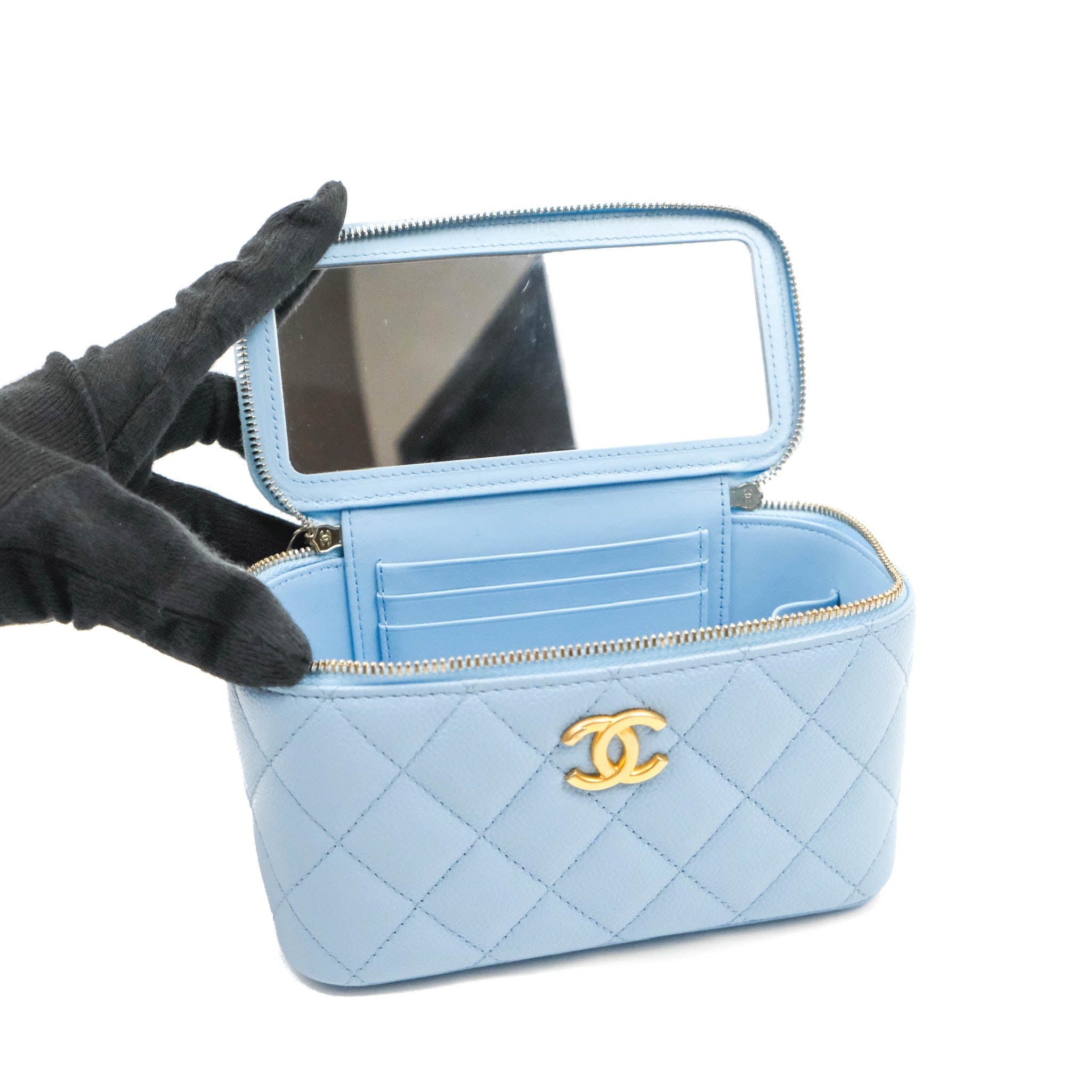Chanel Vanity Rectangular with Top Handle Pick Me Up Blue Caviar Aged Gold Hardware 22S