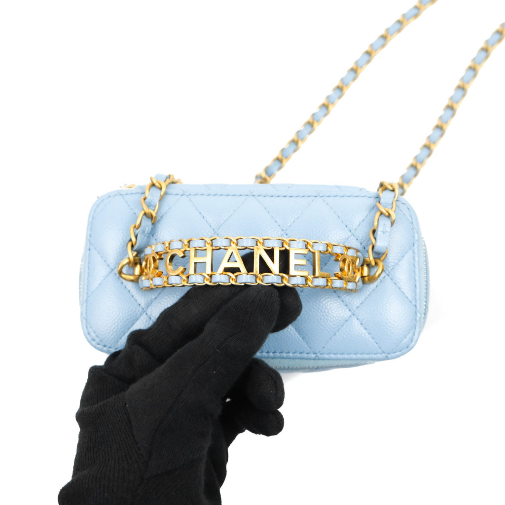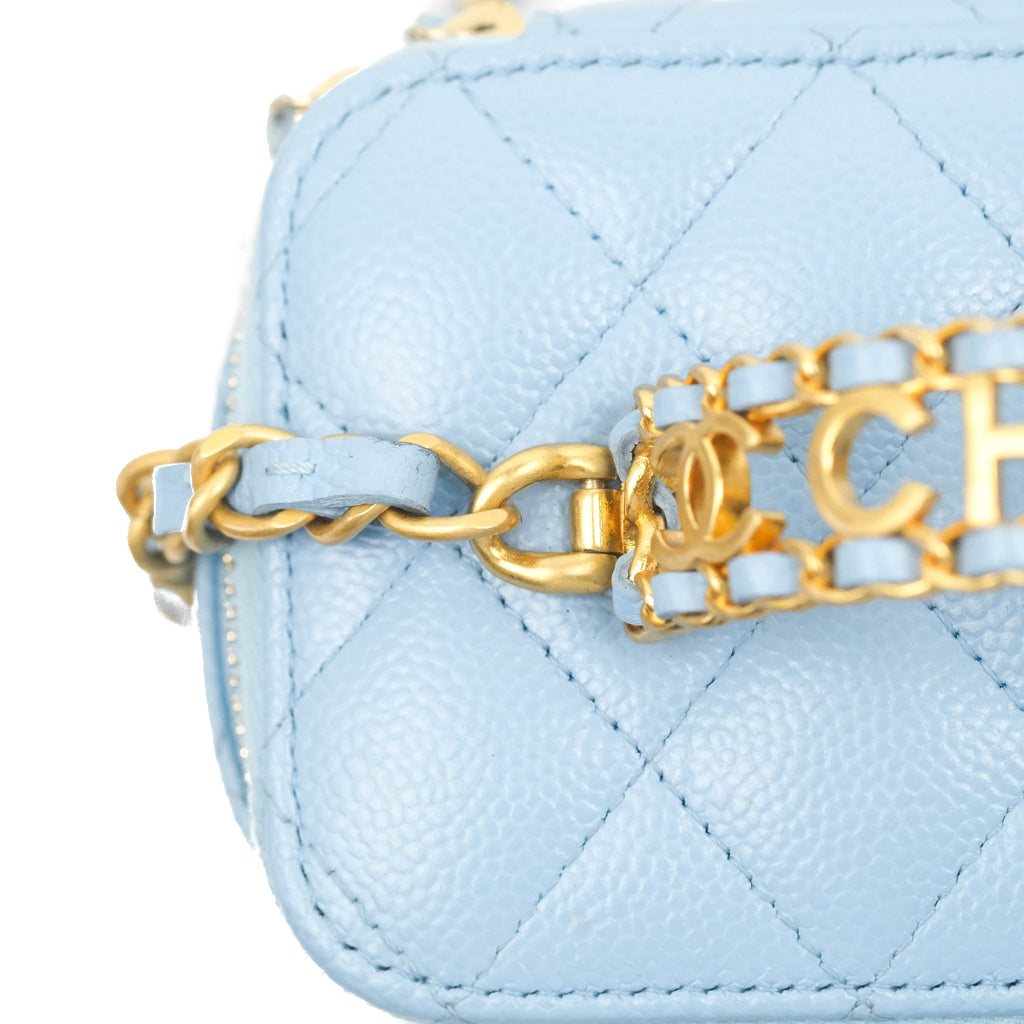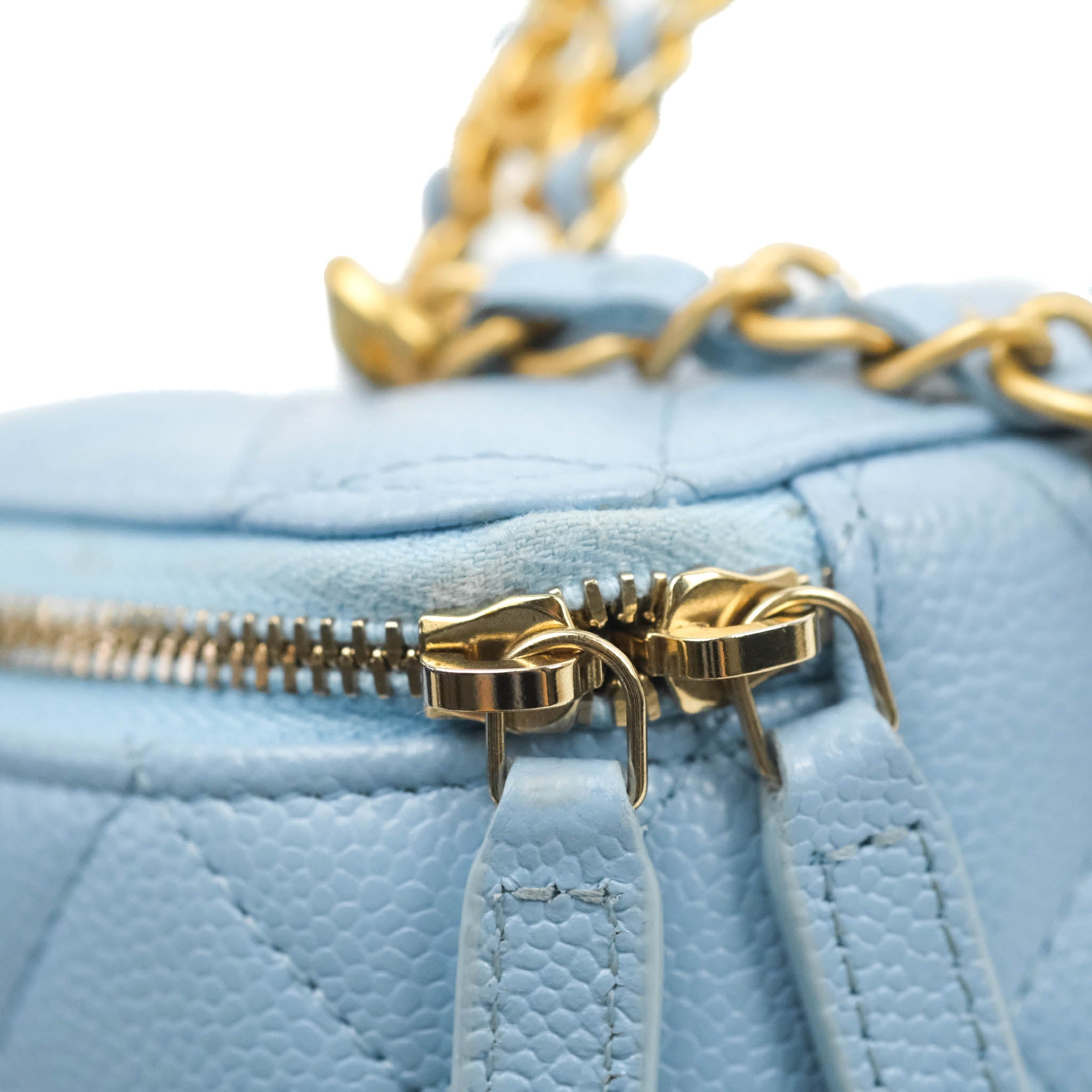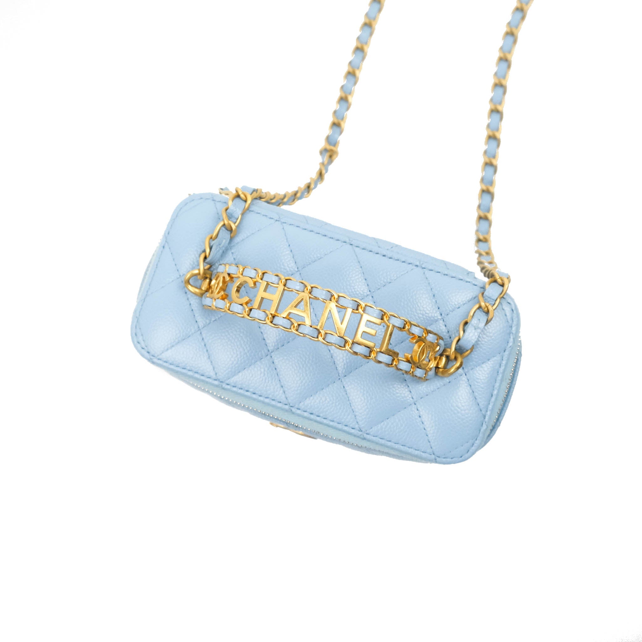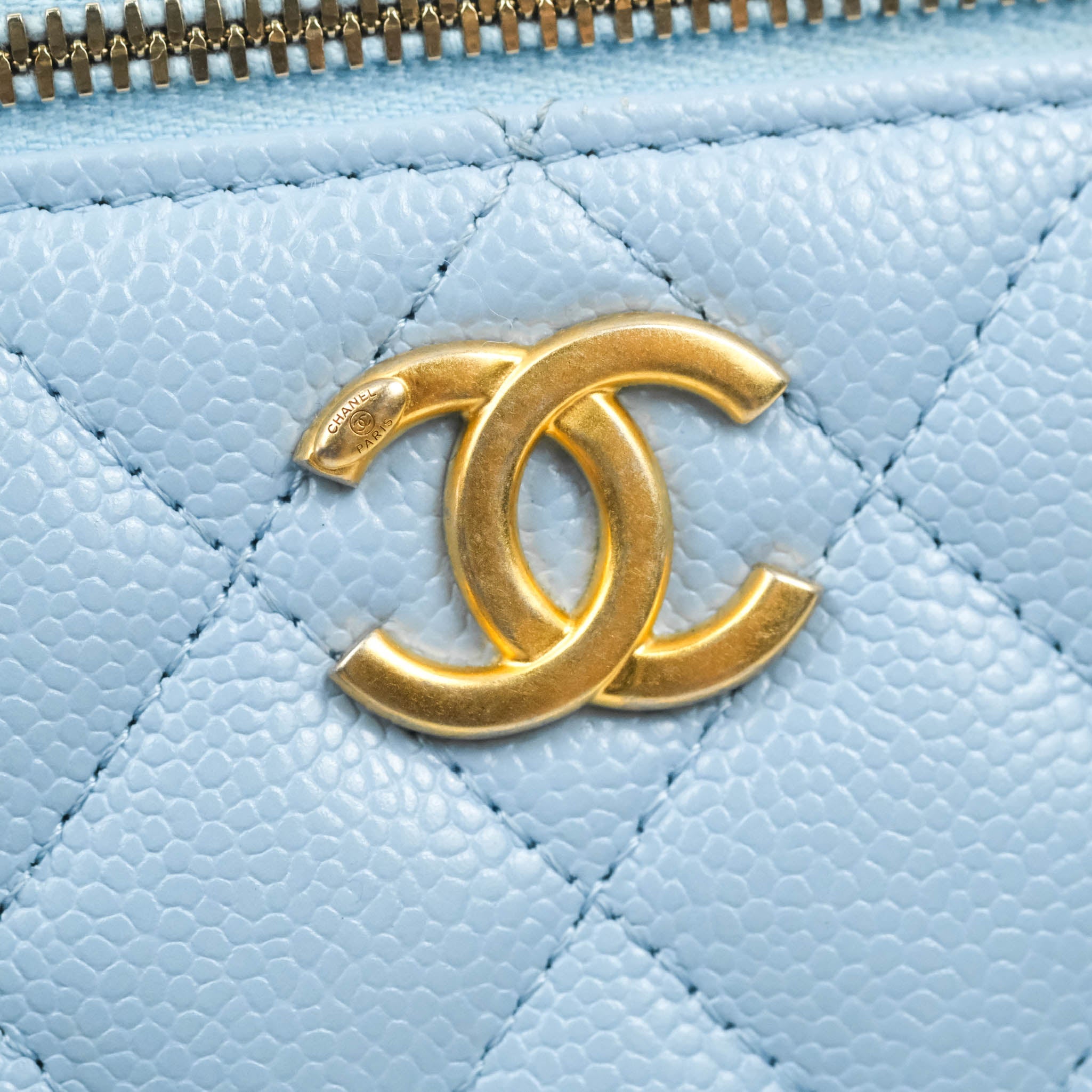 Chanel Vanity Rectangular with Top Handle Pick Me Up Blue Caviar Aged Gold Hardware 22S