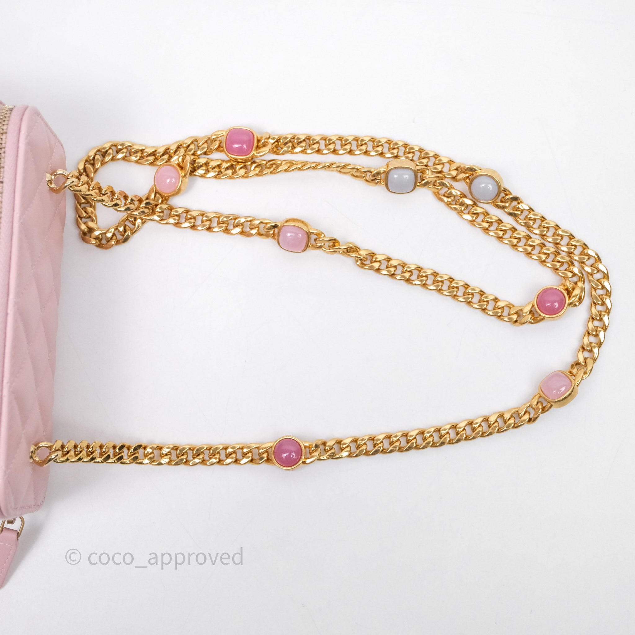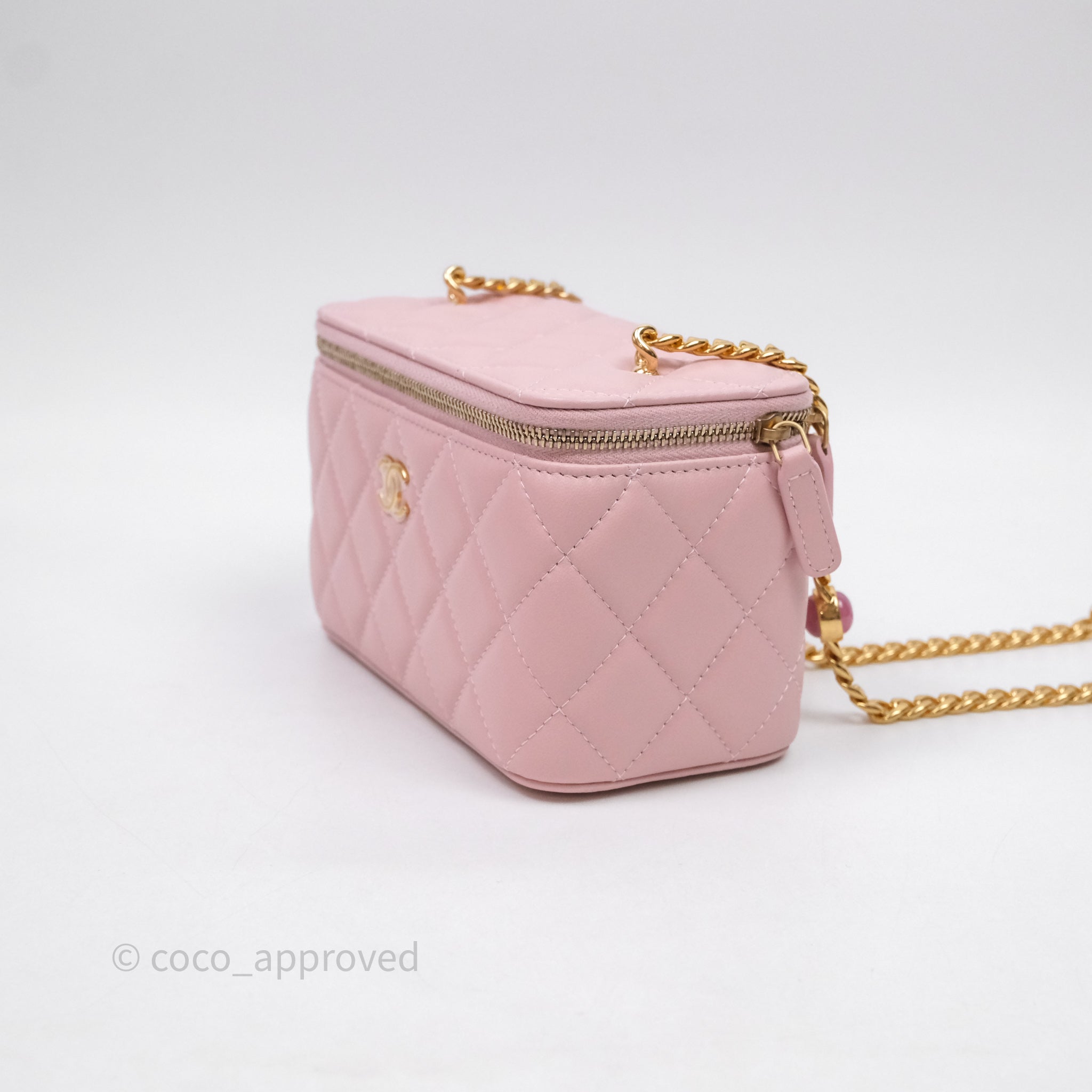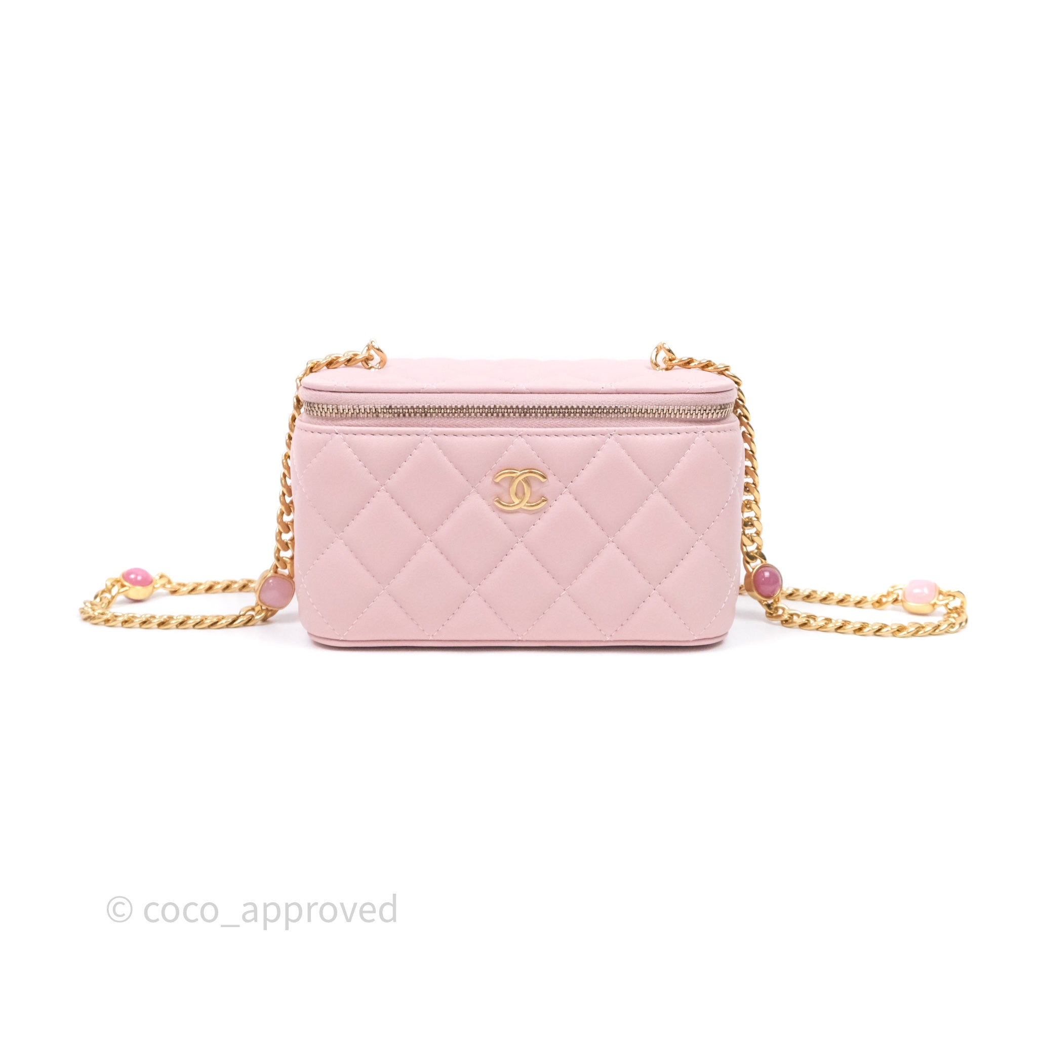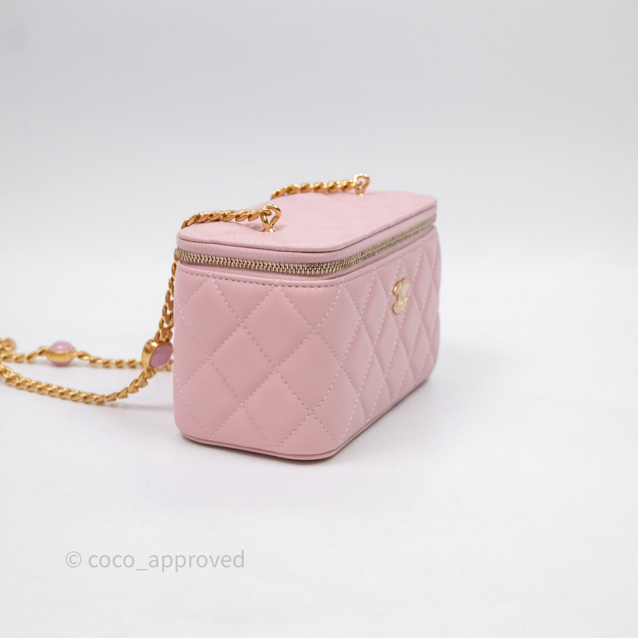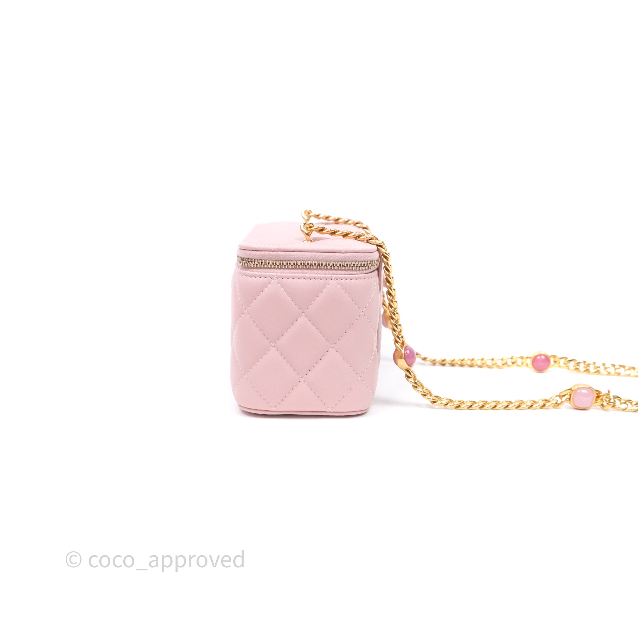 Chanel Vanity with Multicolor Resin Chain Pink Lambskin Aged Gold Hardware