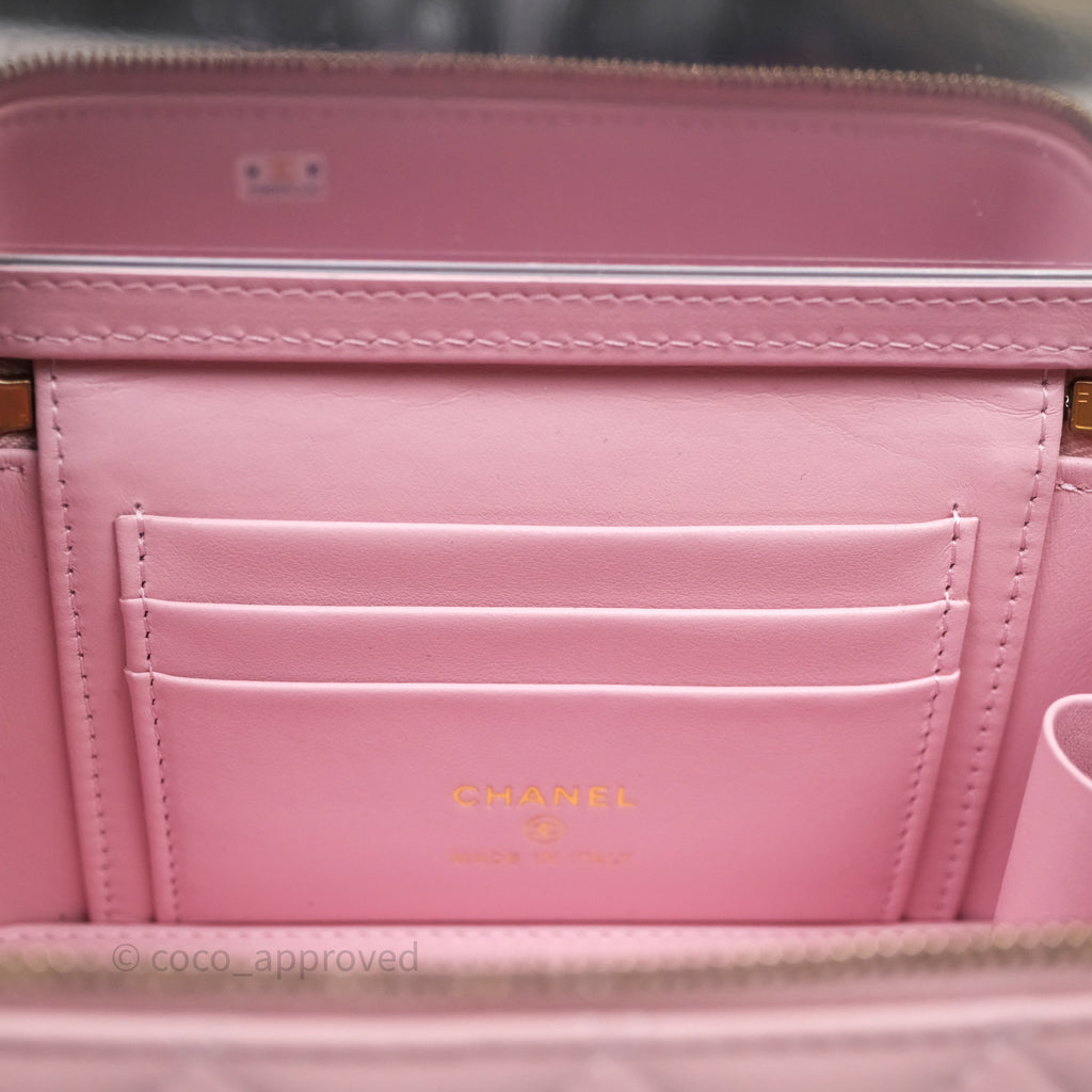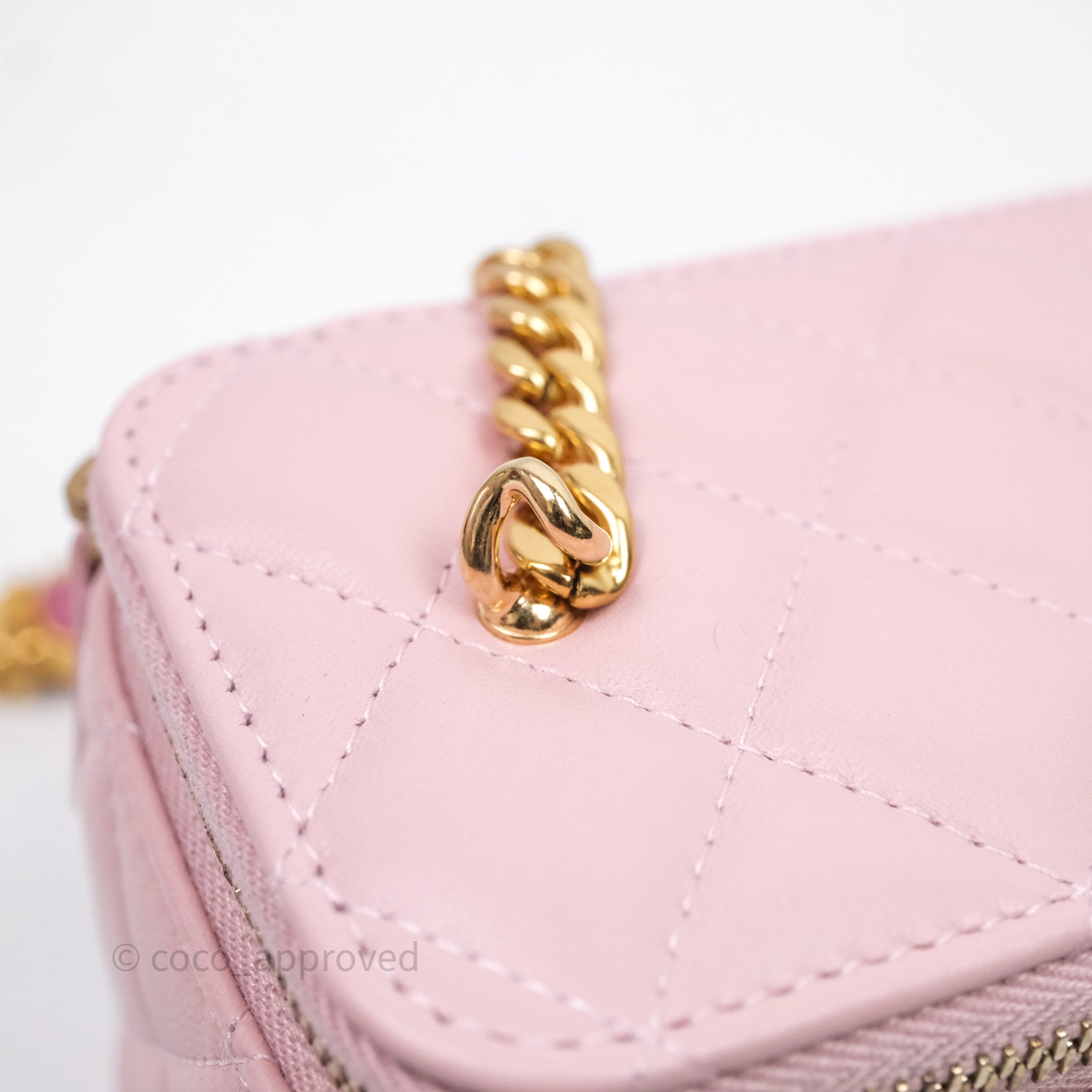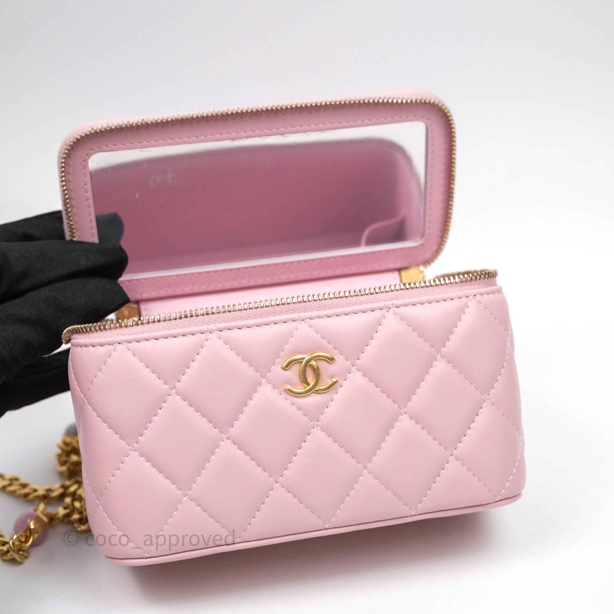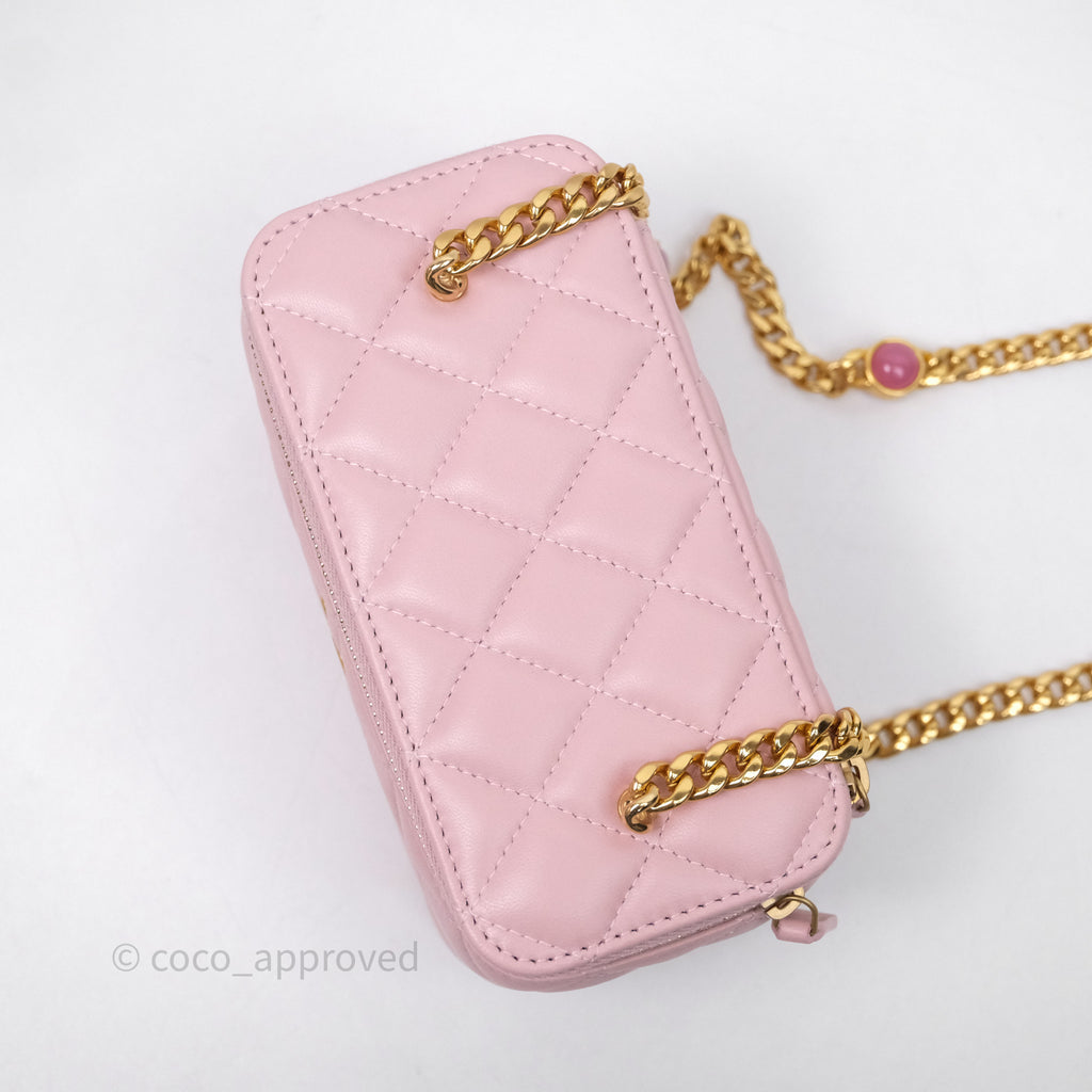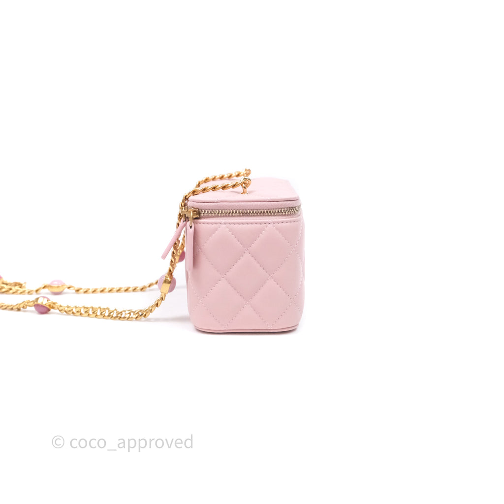 Chanel Vanity with Multicolor Resin Chain Pink Lambskin Aged Gold Hardware