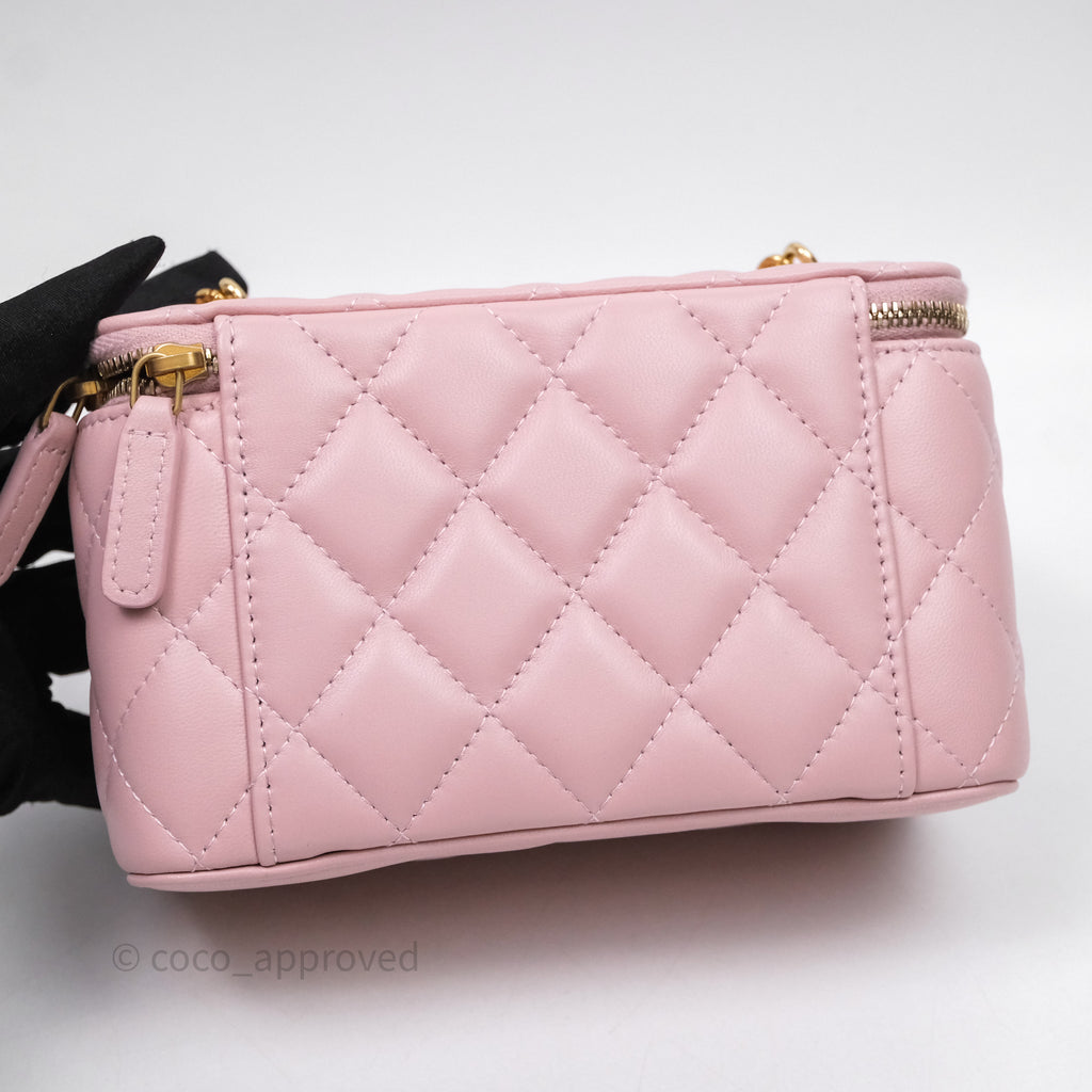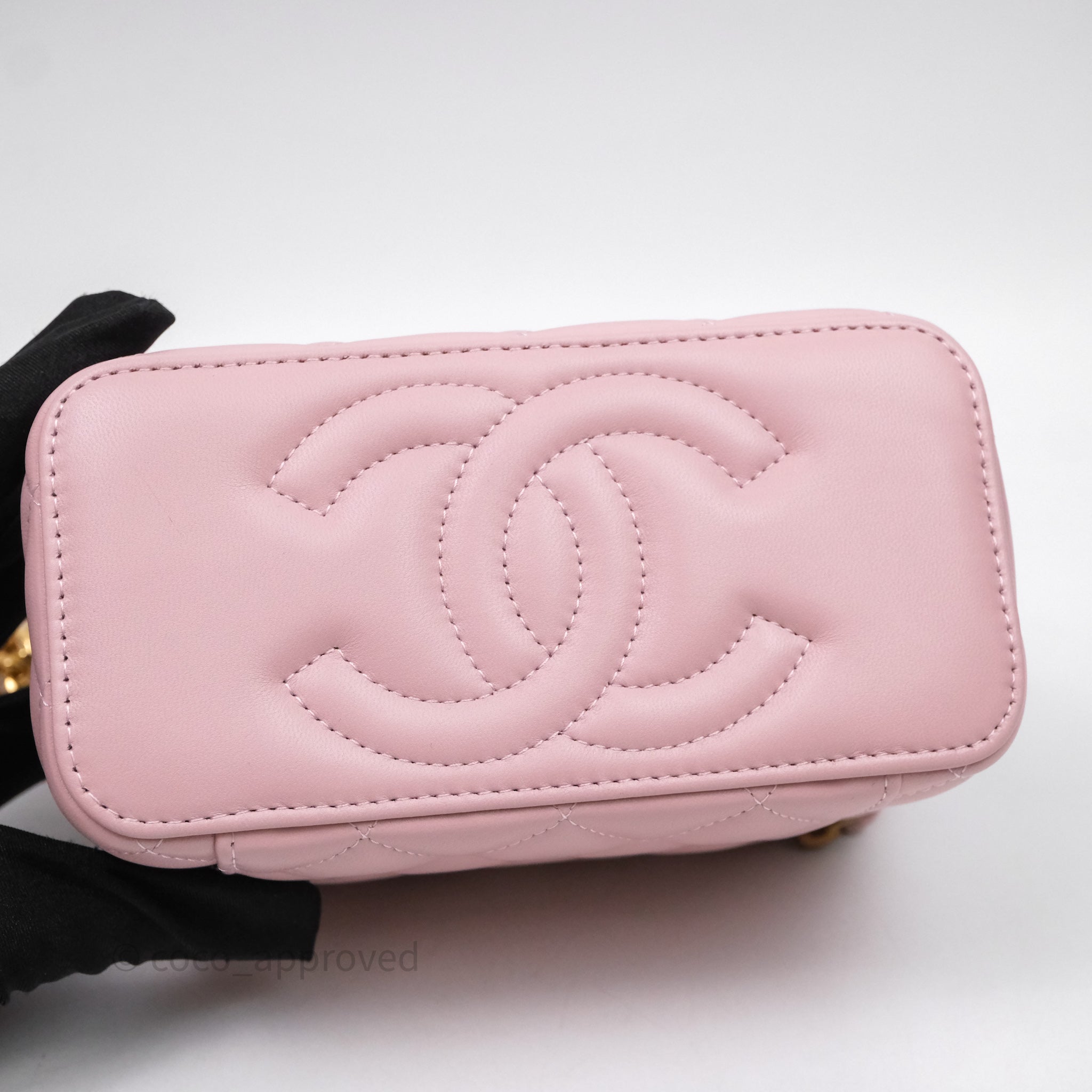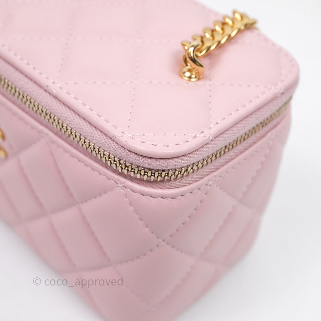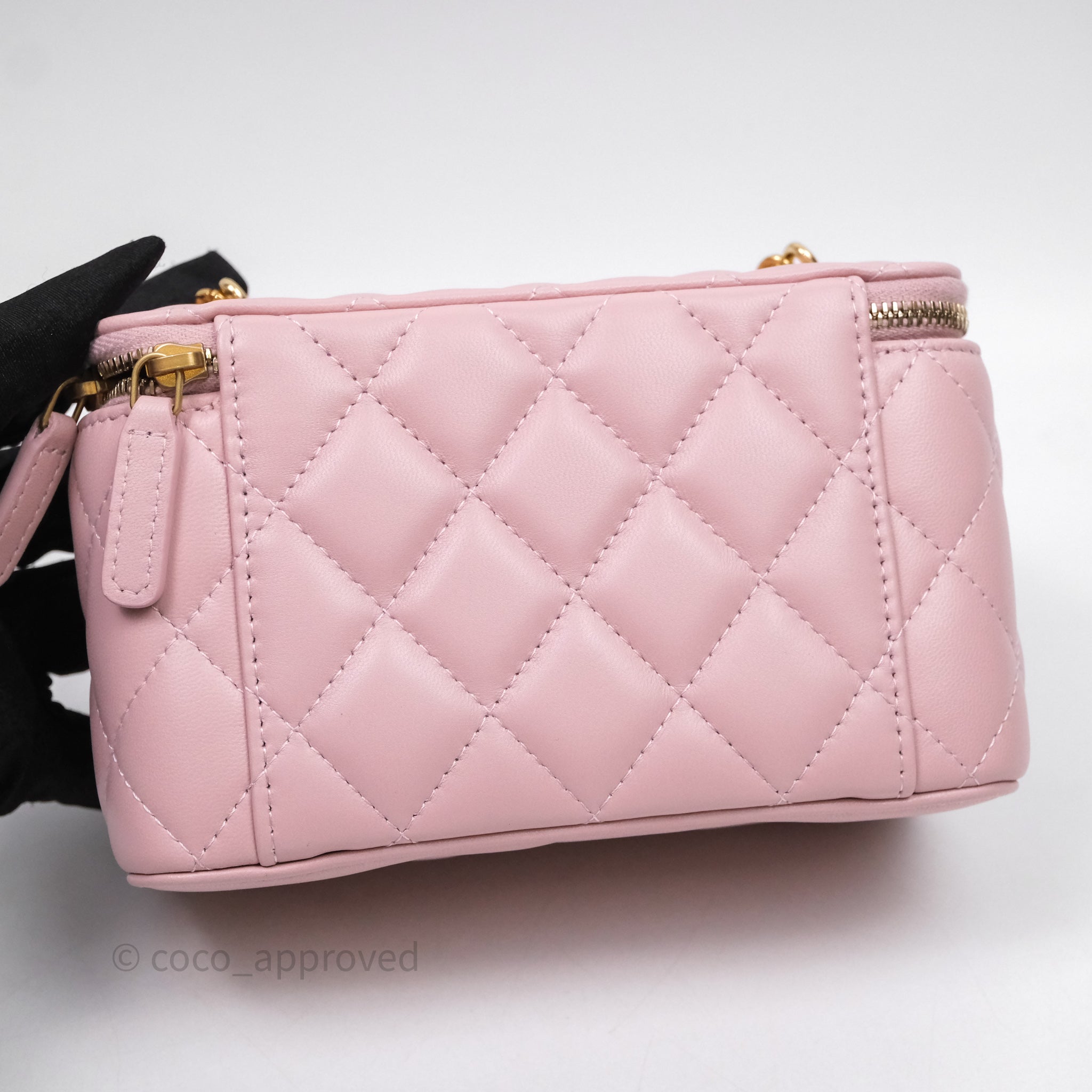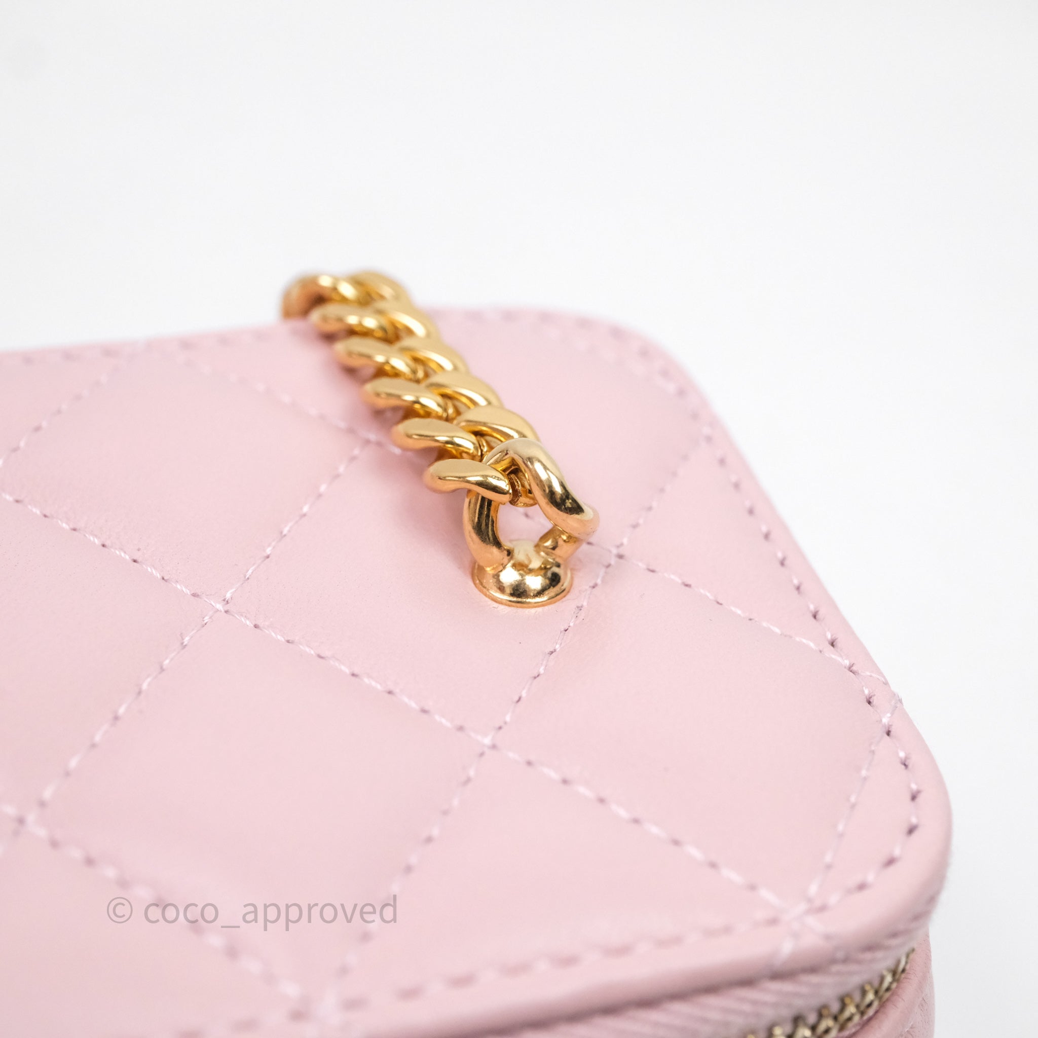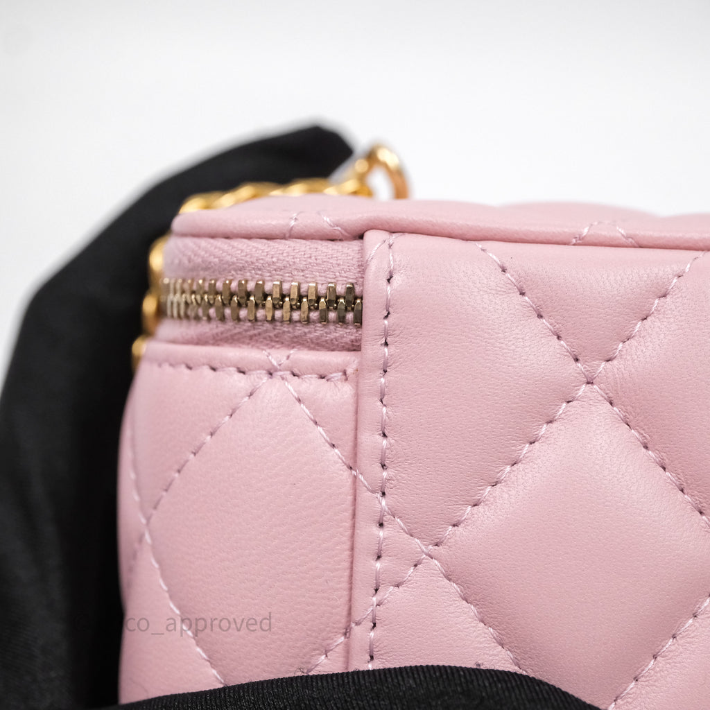 Chanel Vanity with Multicolor Resin Chain Pink Lambskin Aged Gold Hardware