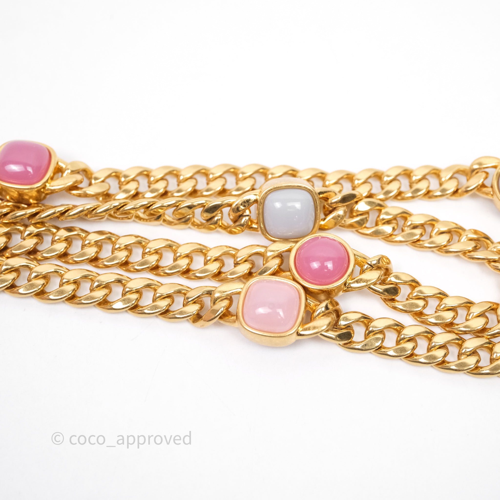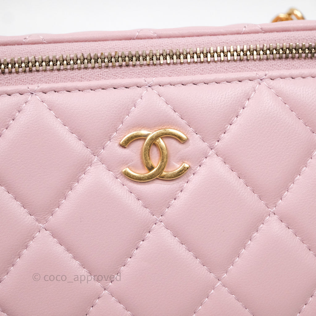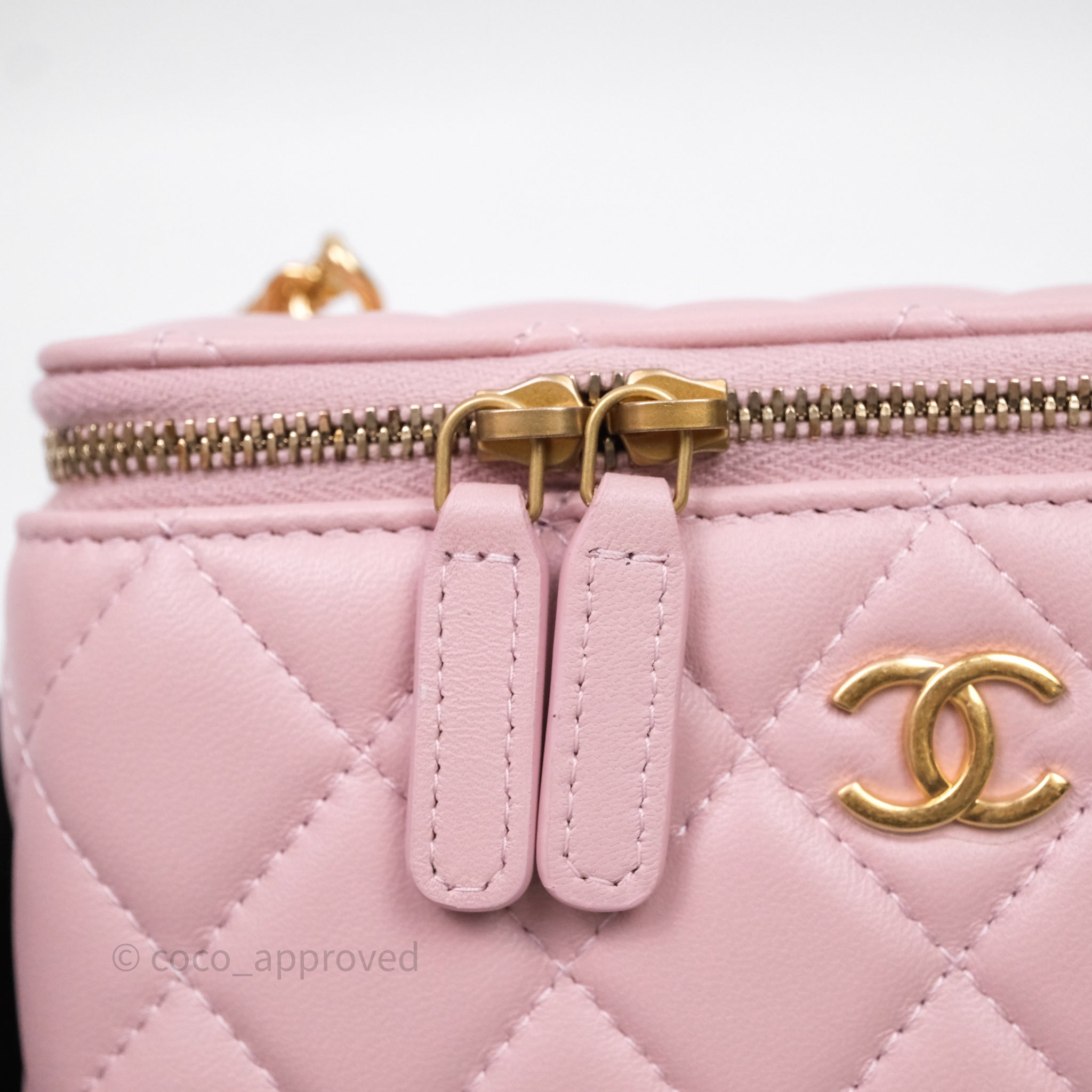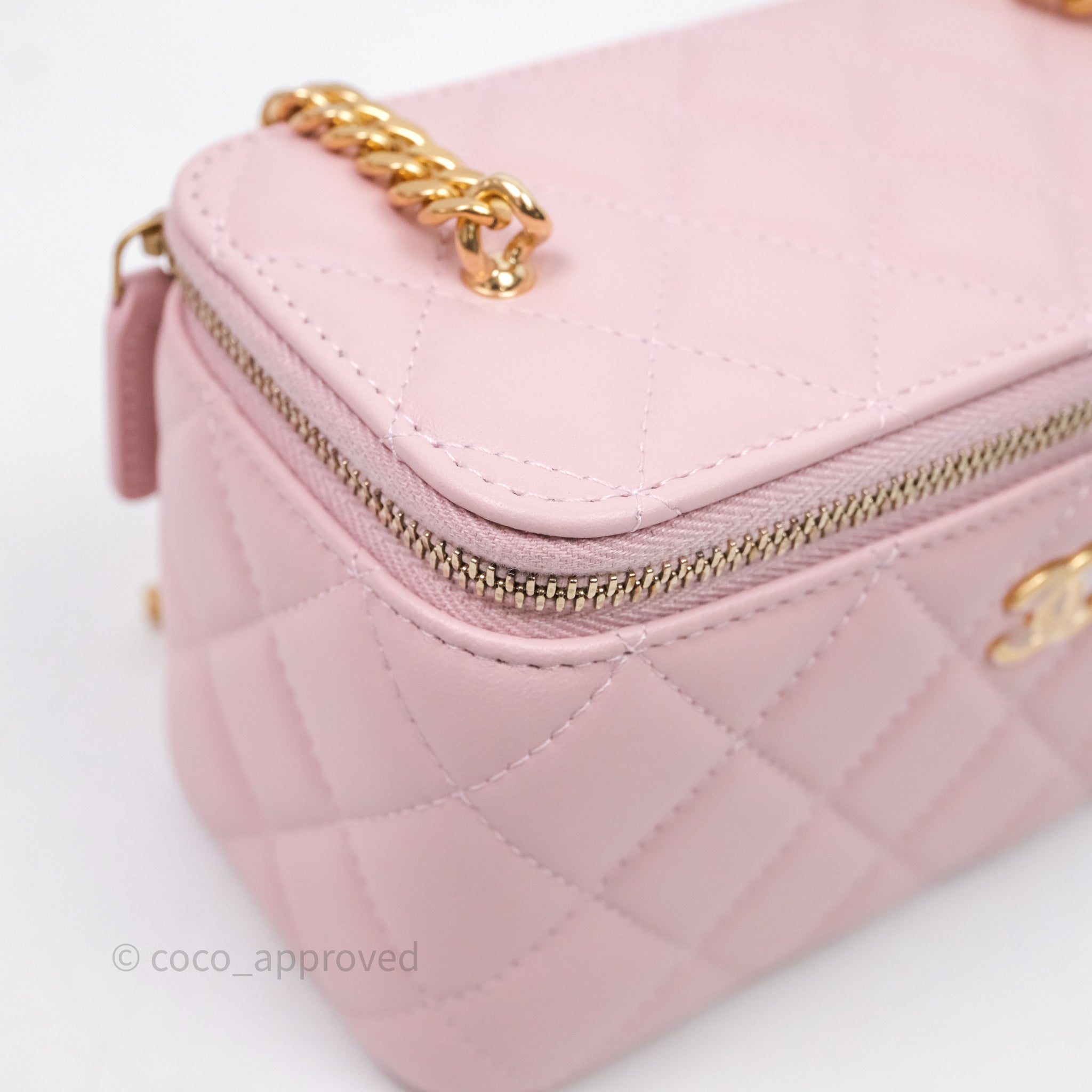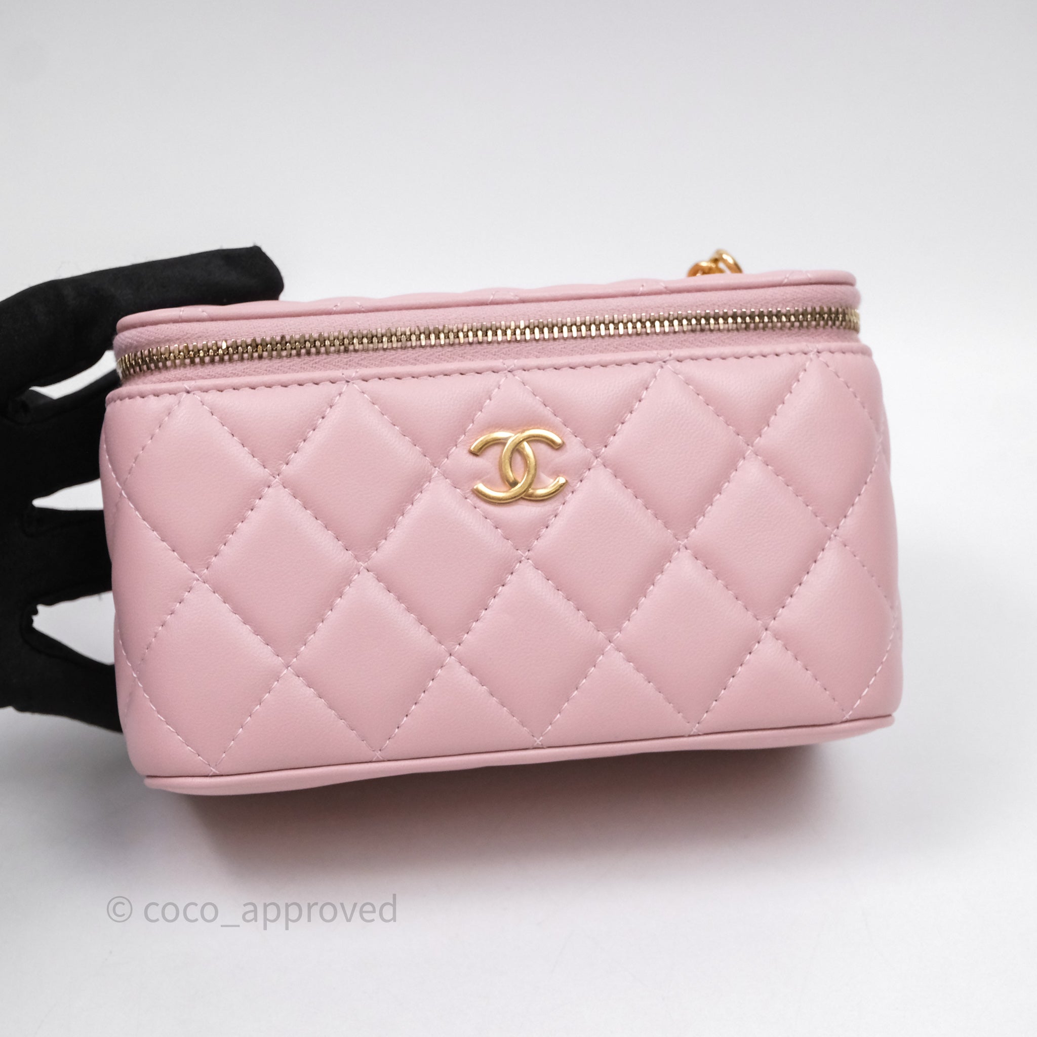 Chanel Vanity with Multicolor Resin Chain Pink Lambskin Aged Gold Hardware