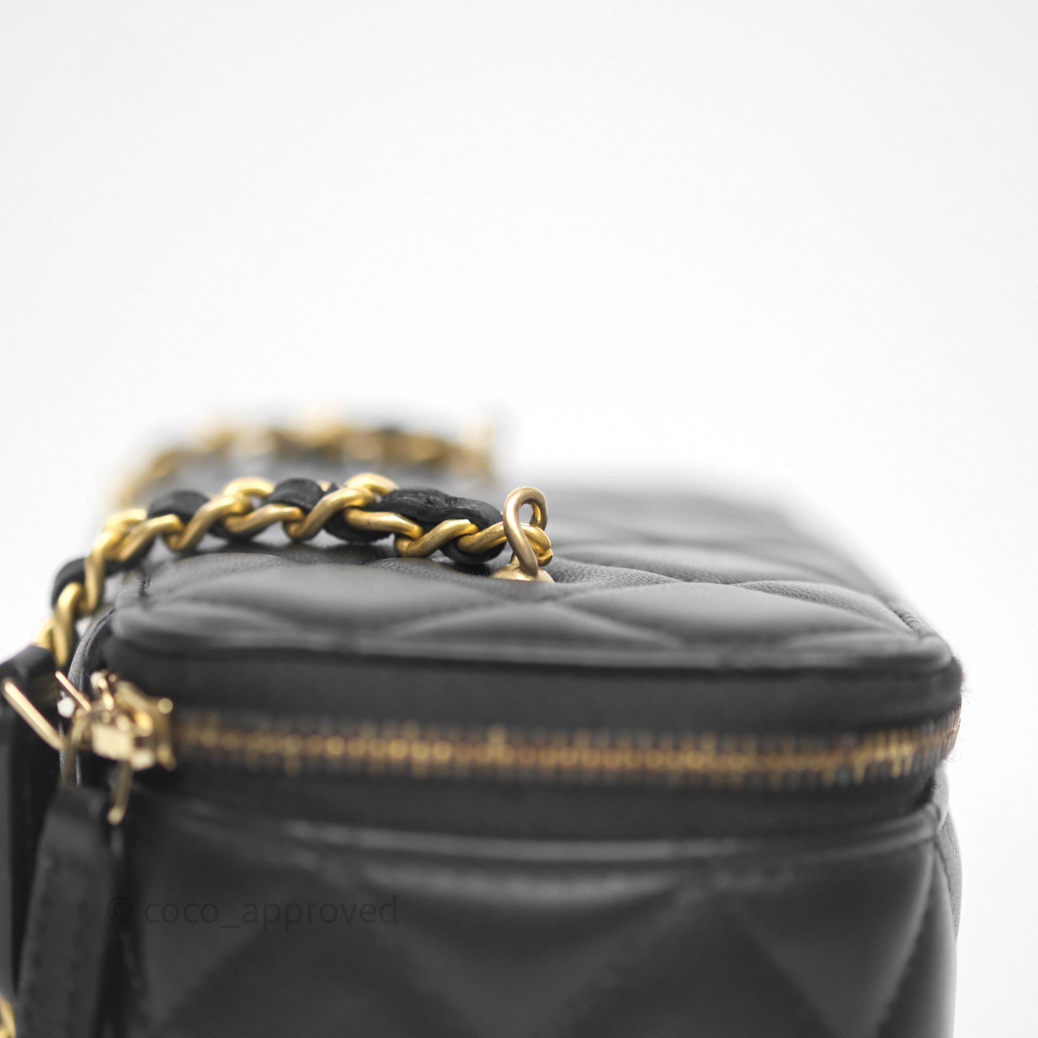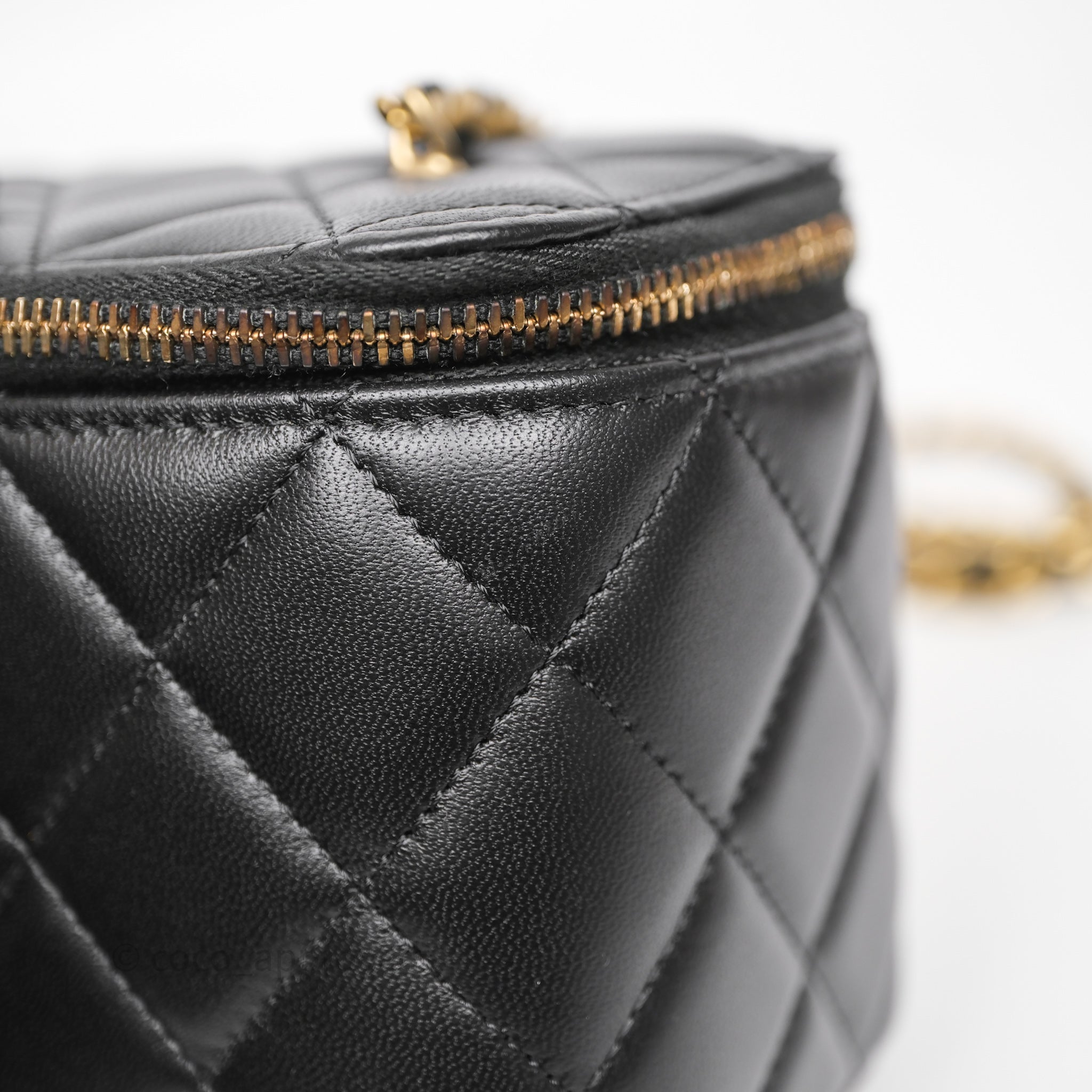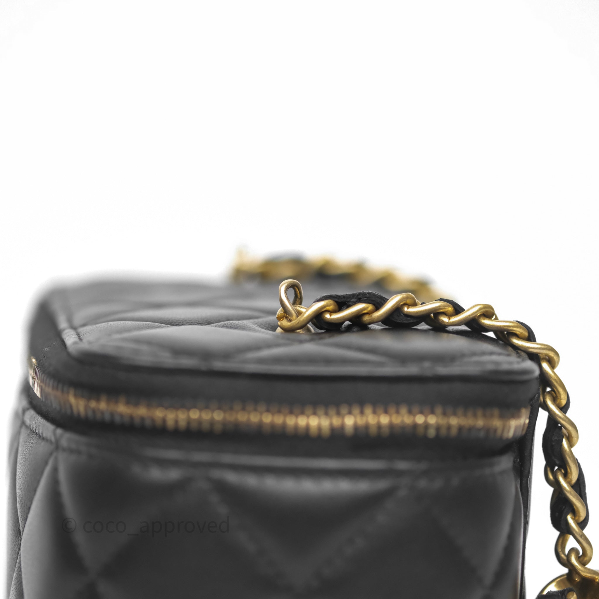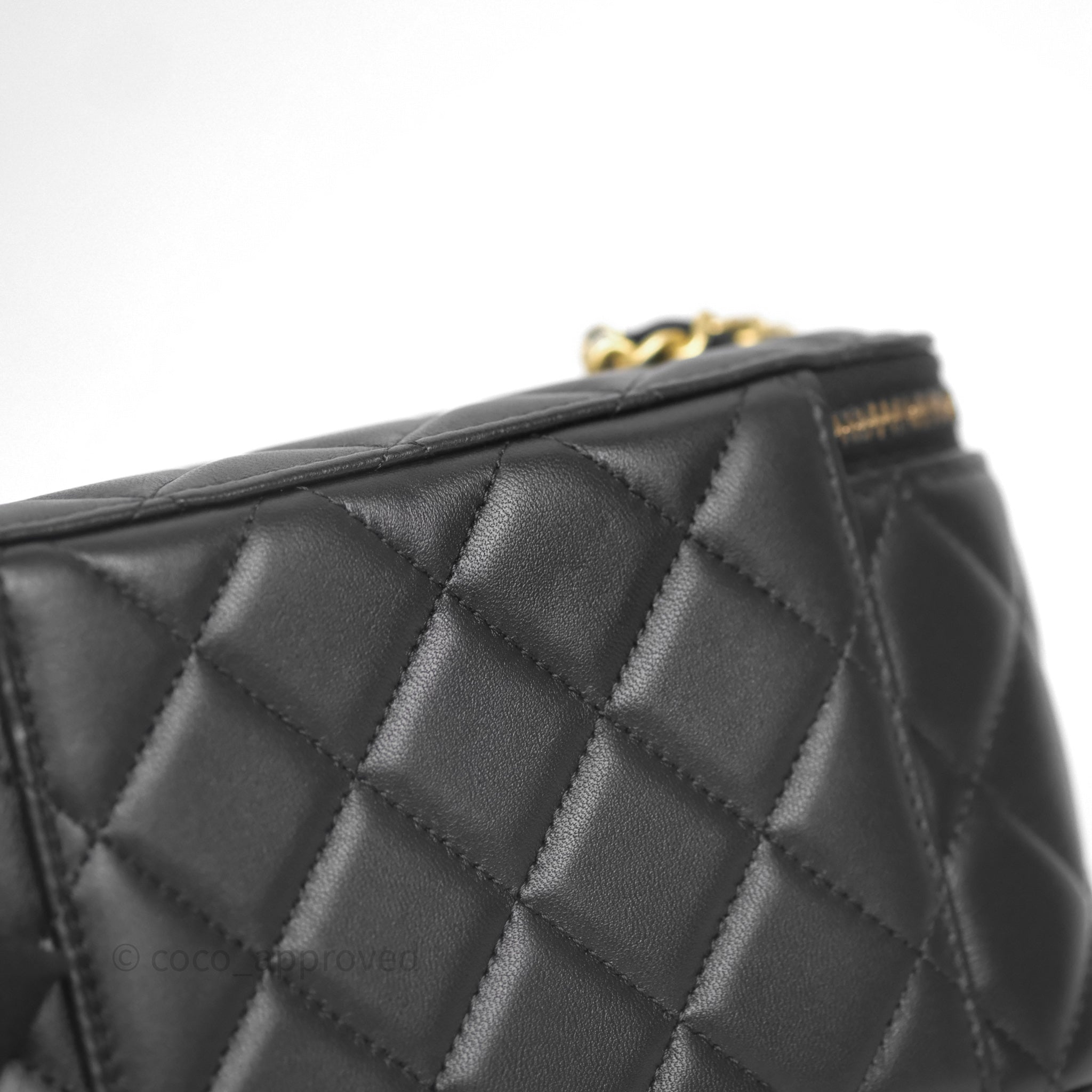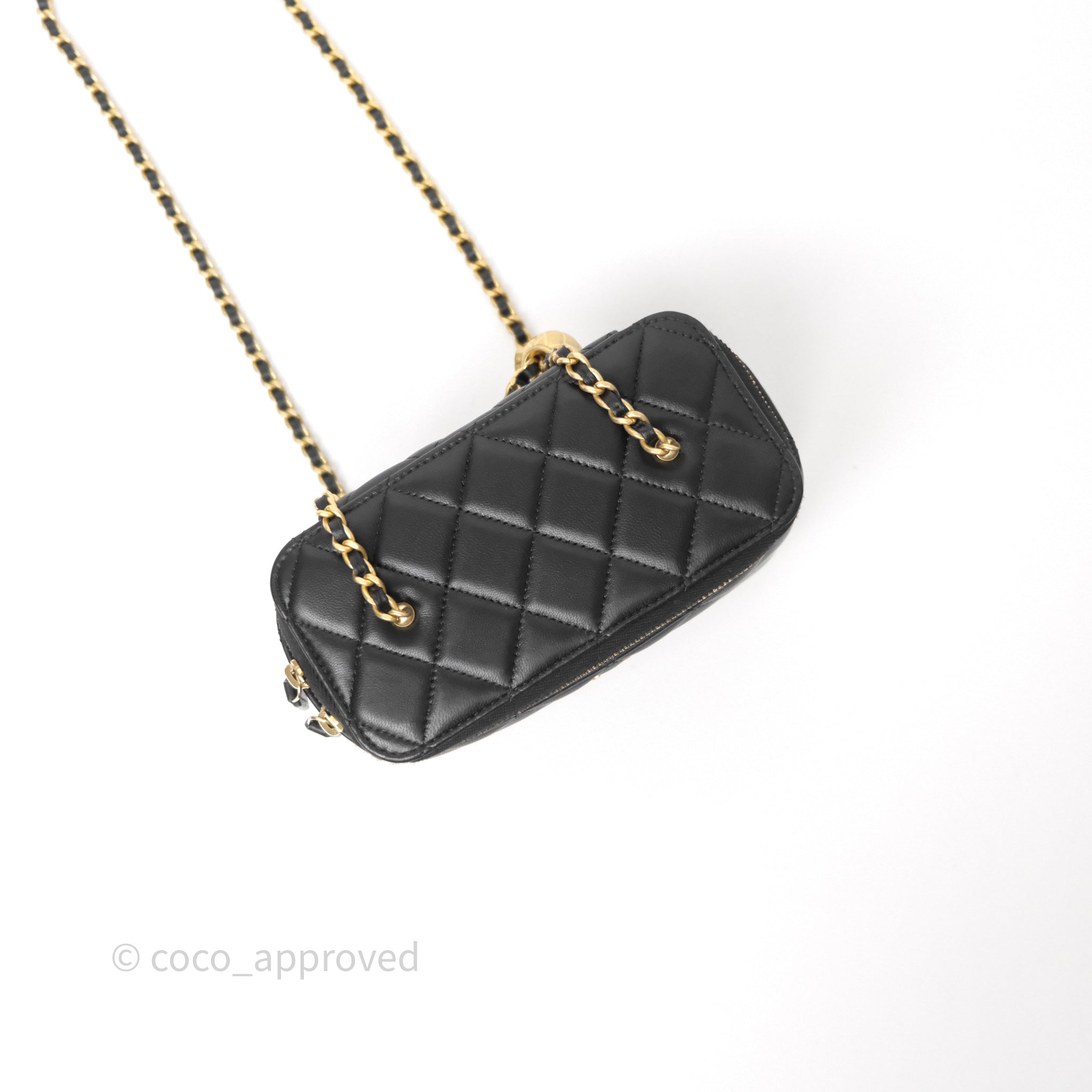 Chanel Vanity With Pearl Crush Chain Black Lambskin Aged Gold Hardware