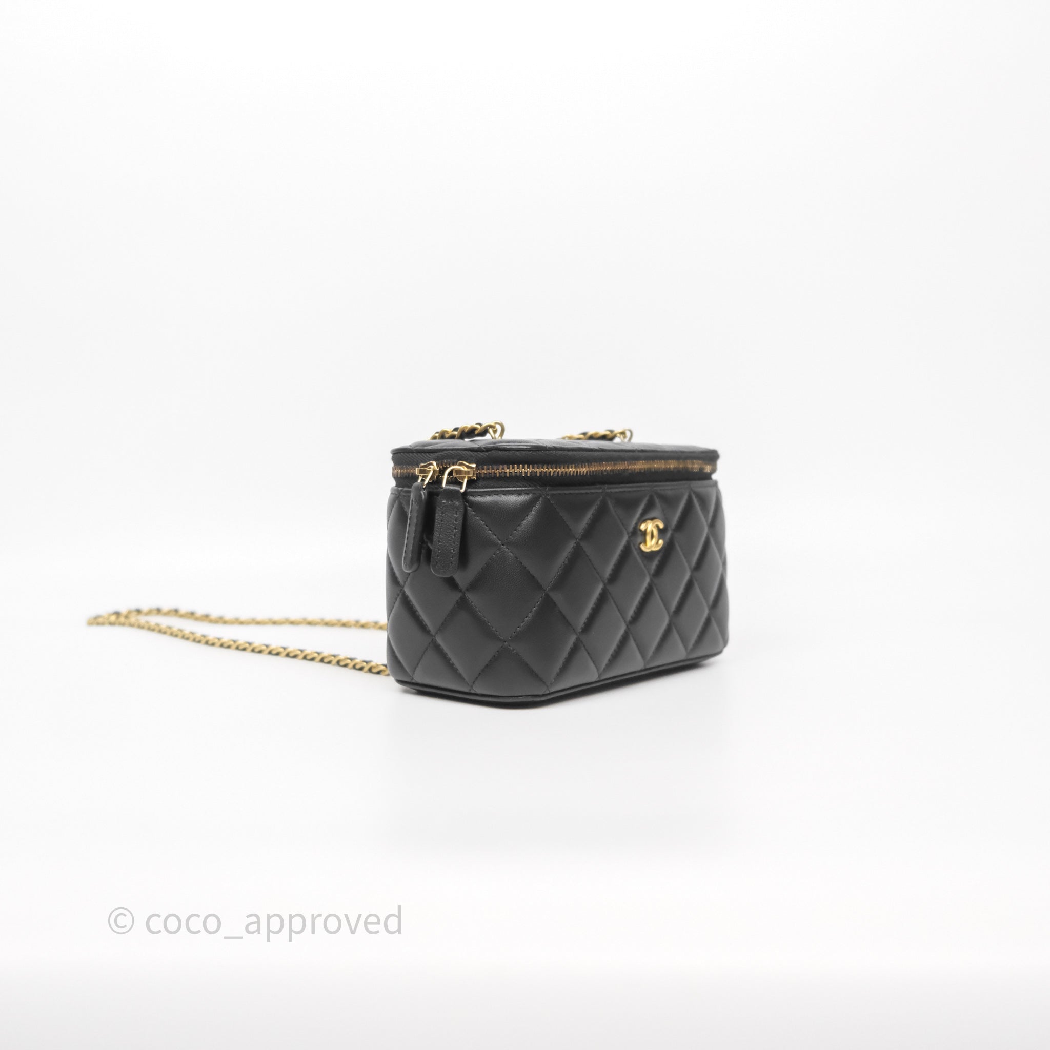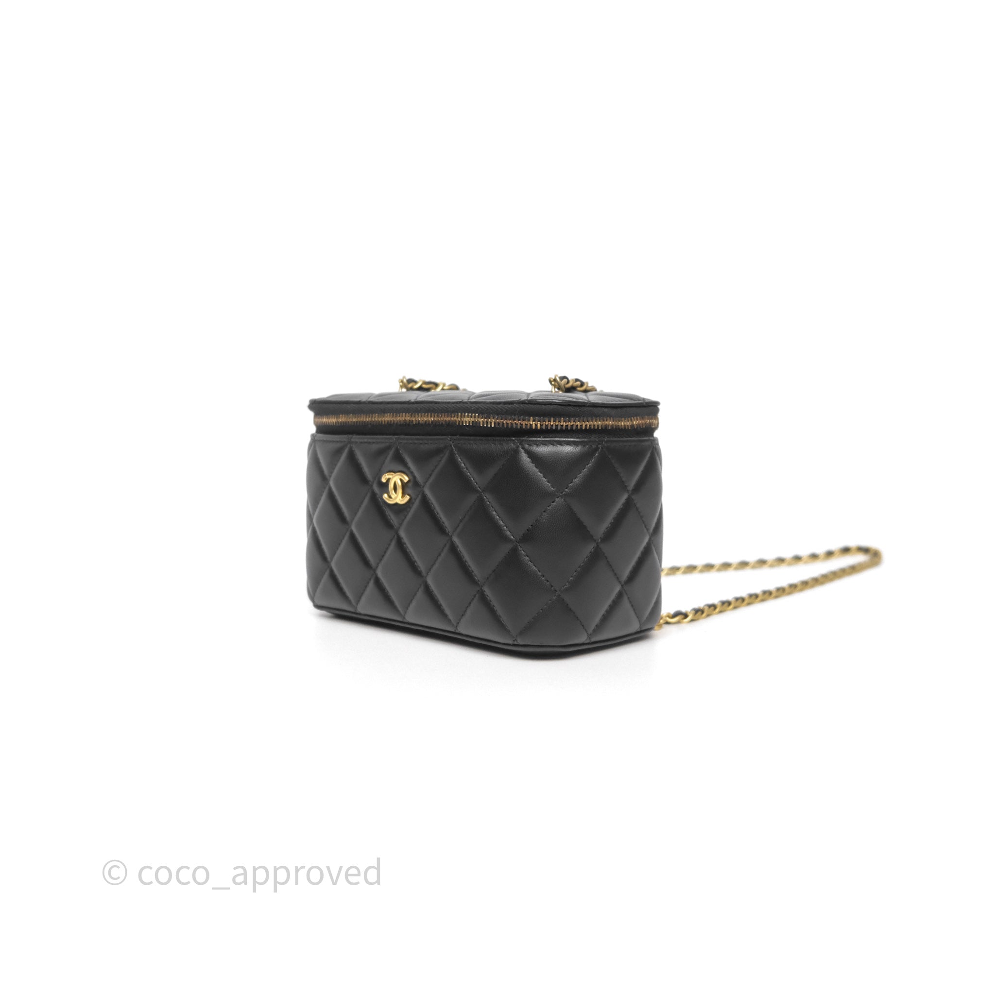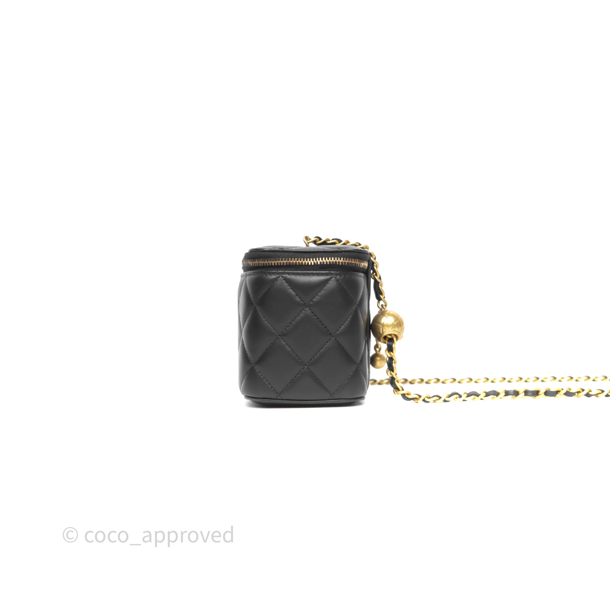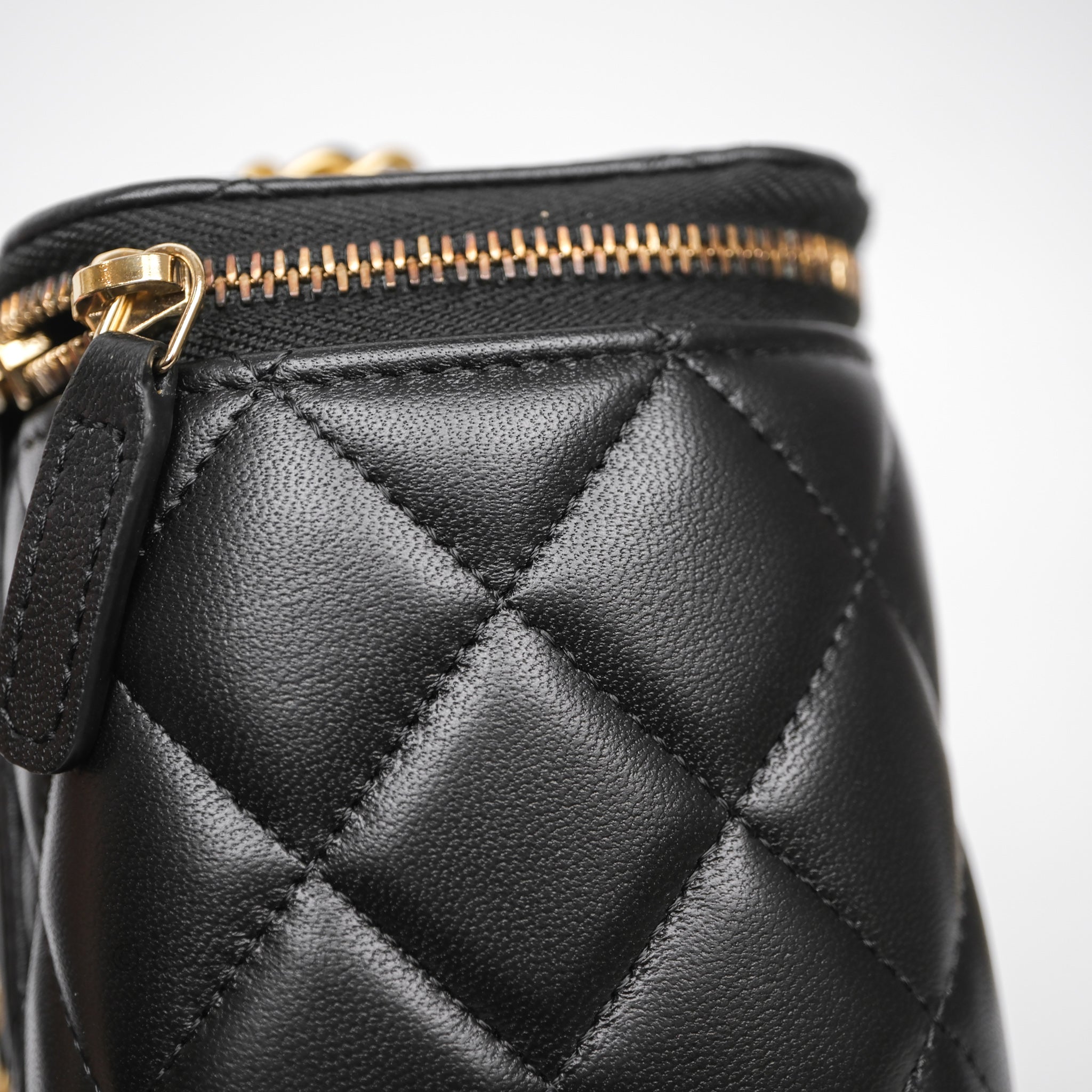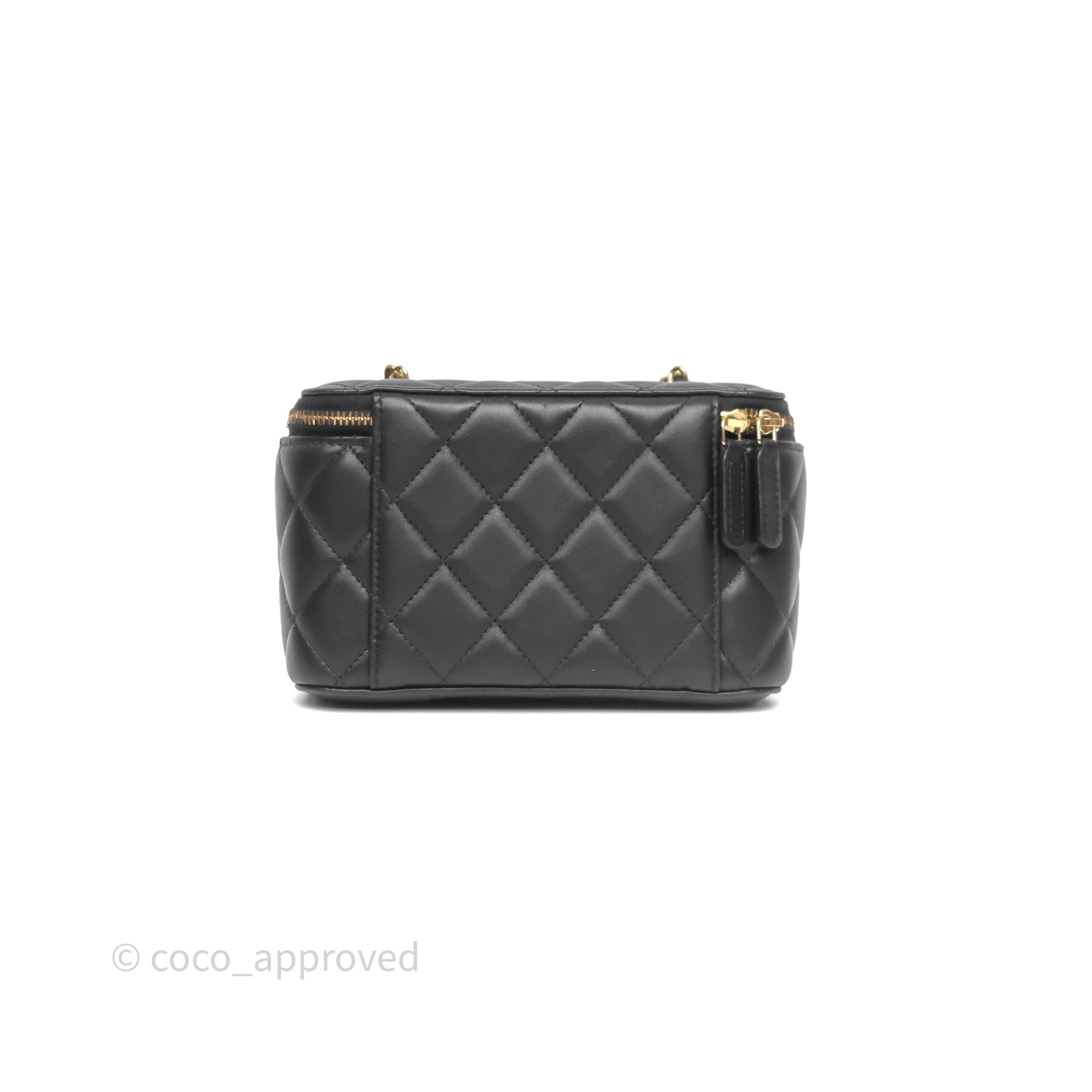 Chanel Vanity With Pearl Crush Chain Black Lambskin Aged Gold Hardware