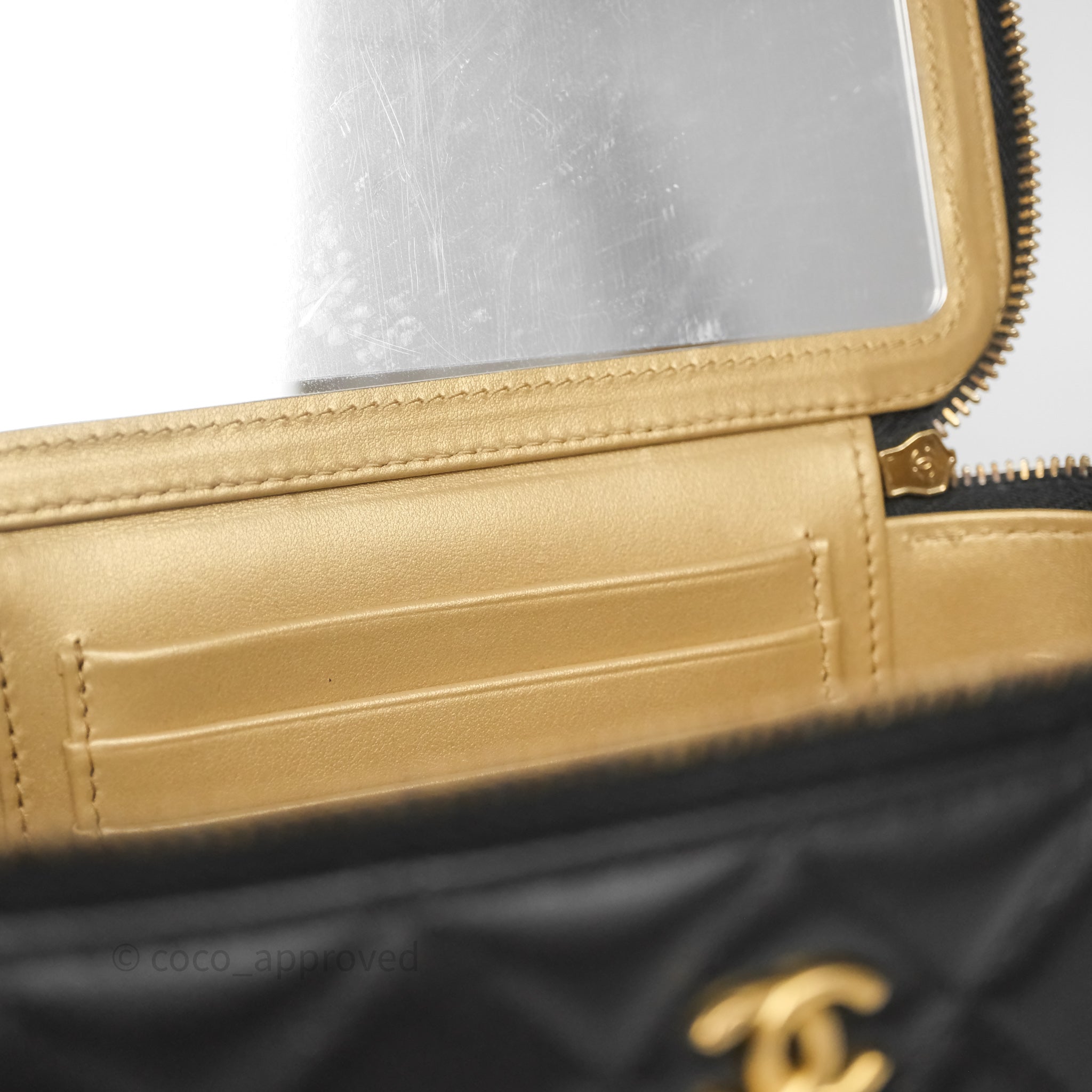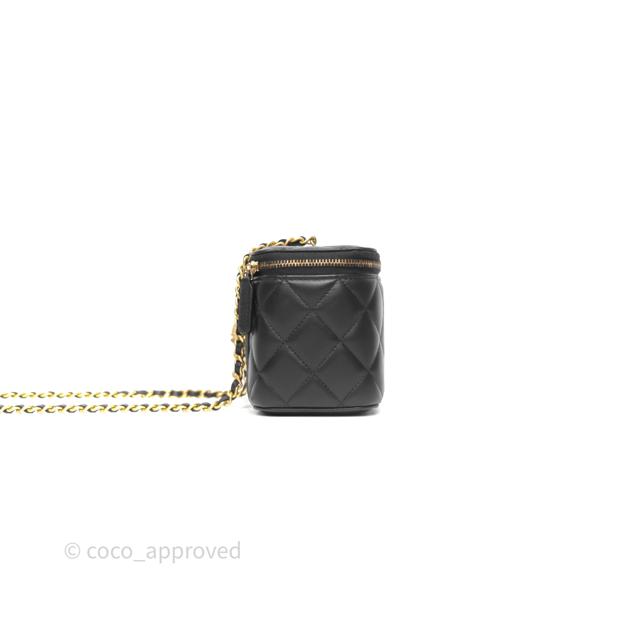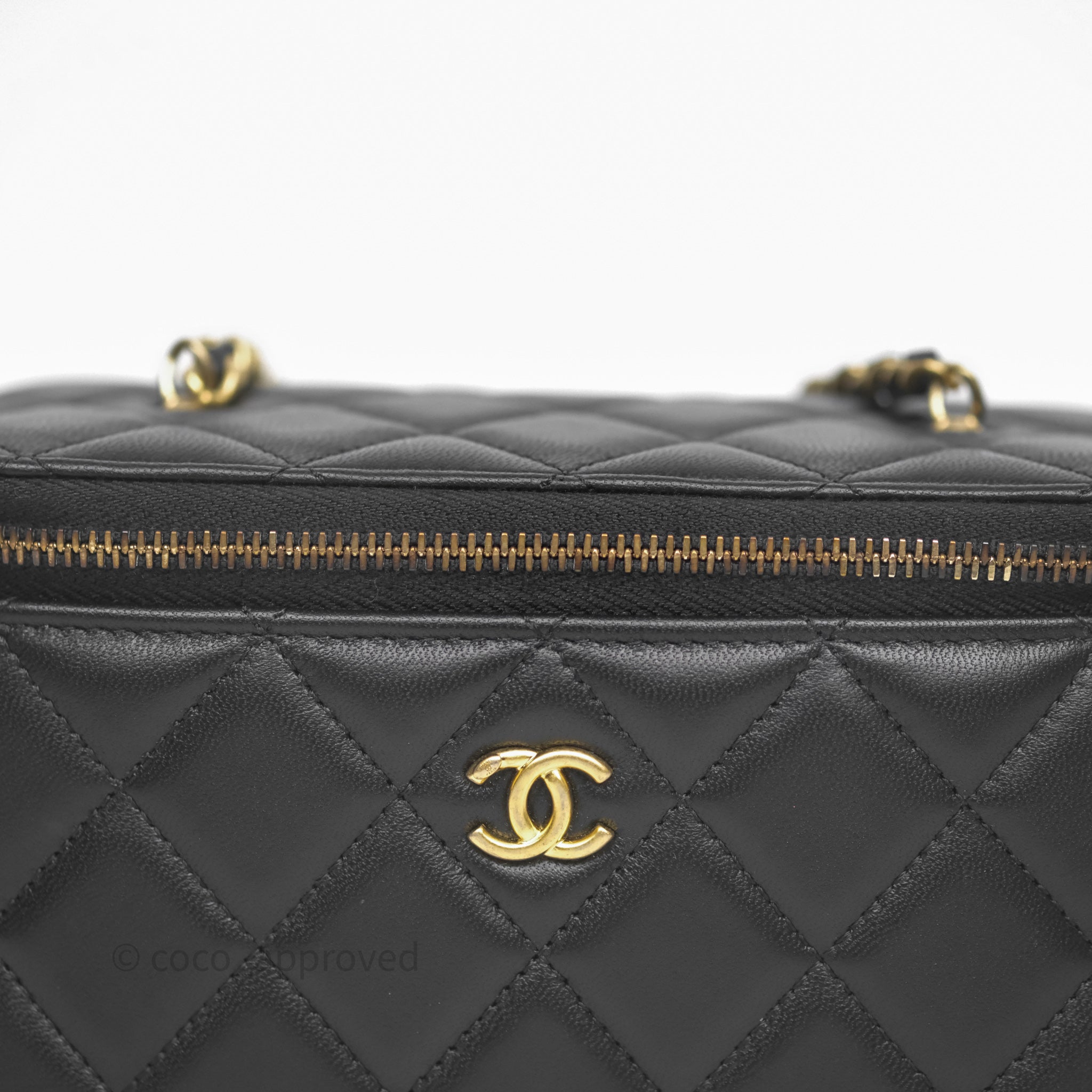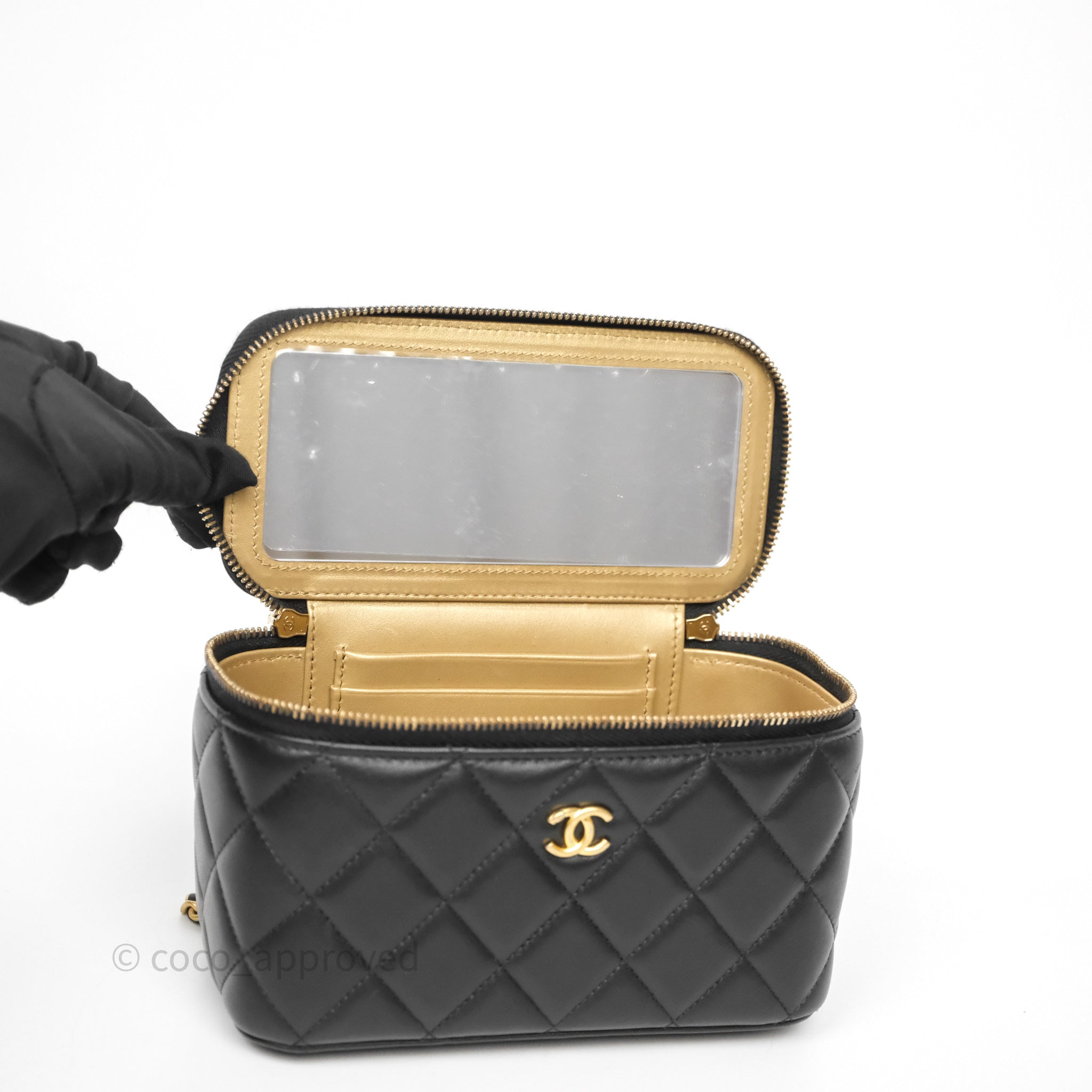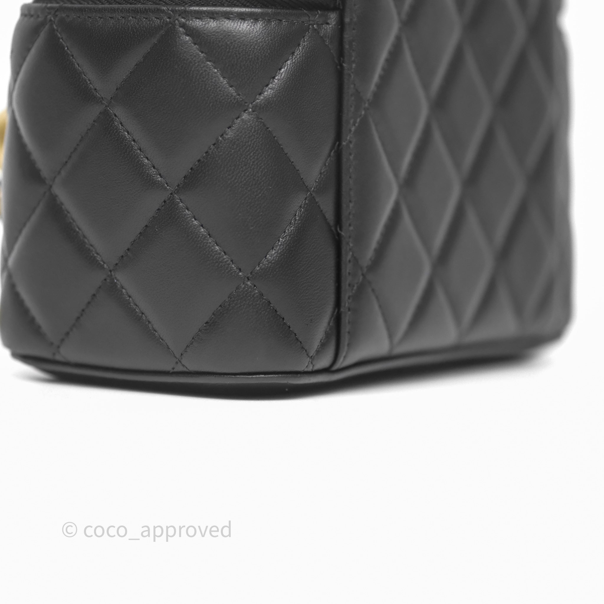 Chanel Vanity With Pearl Crush Chain Black Lambskin Aged Gold Hardware