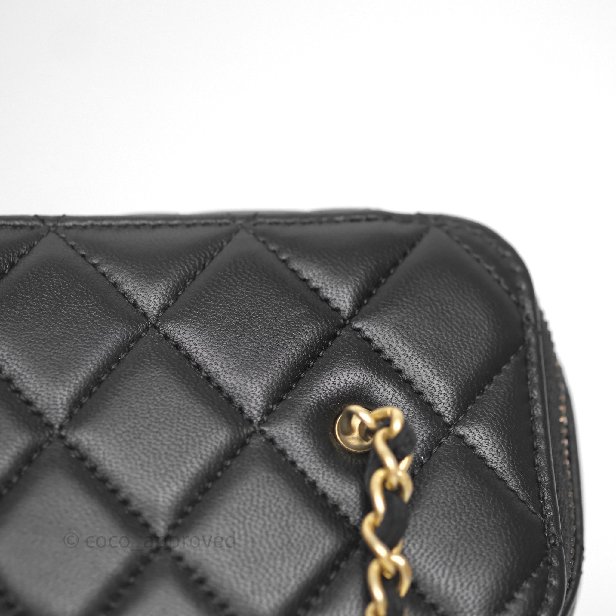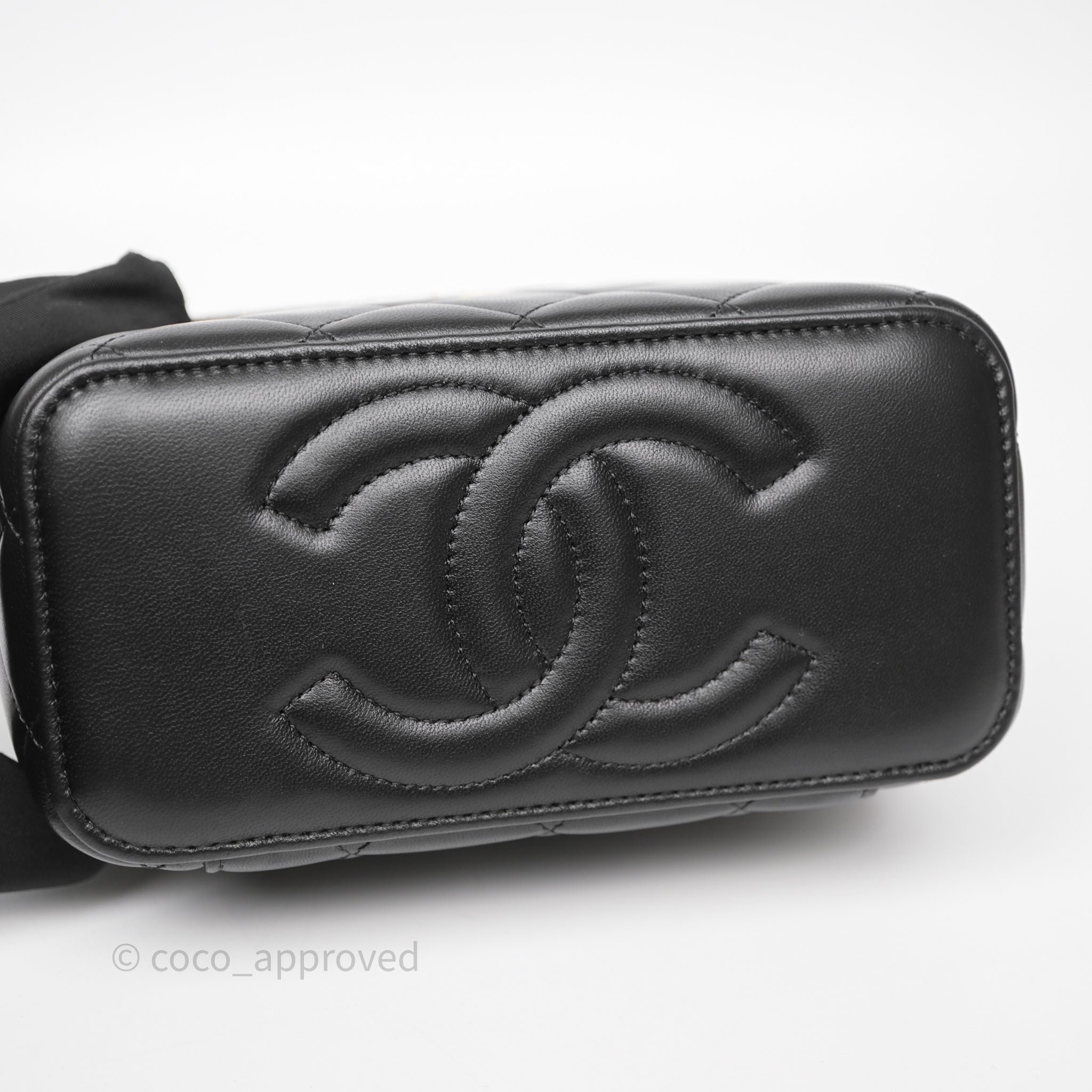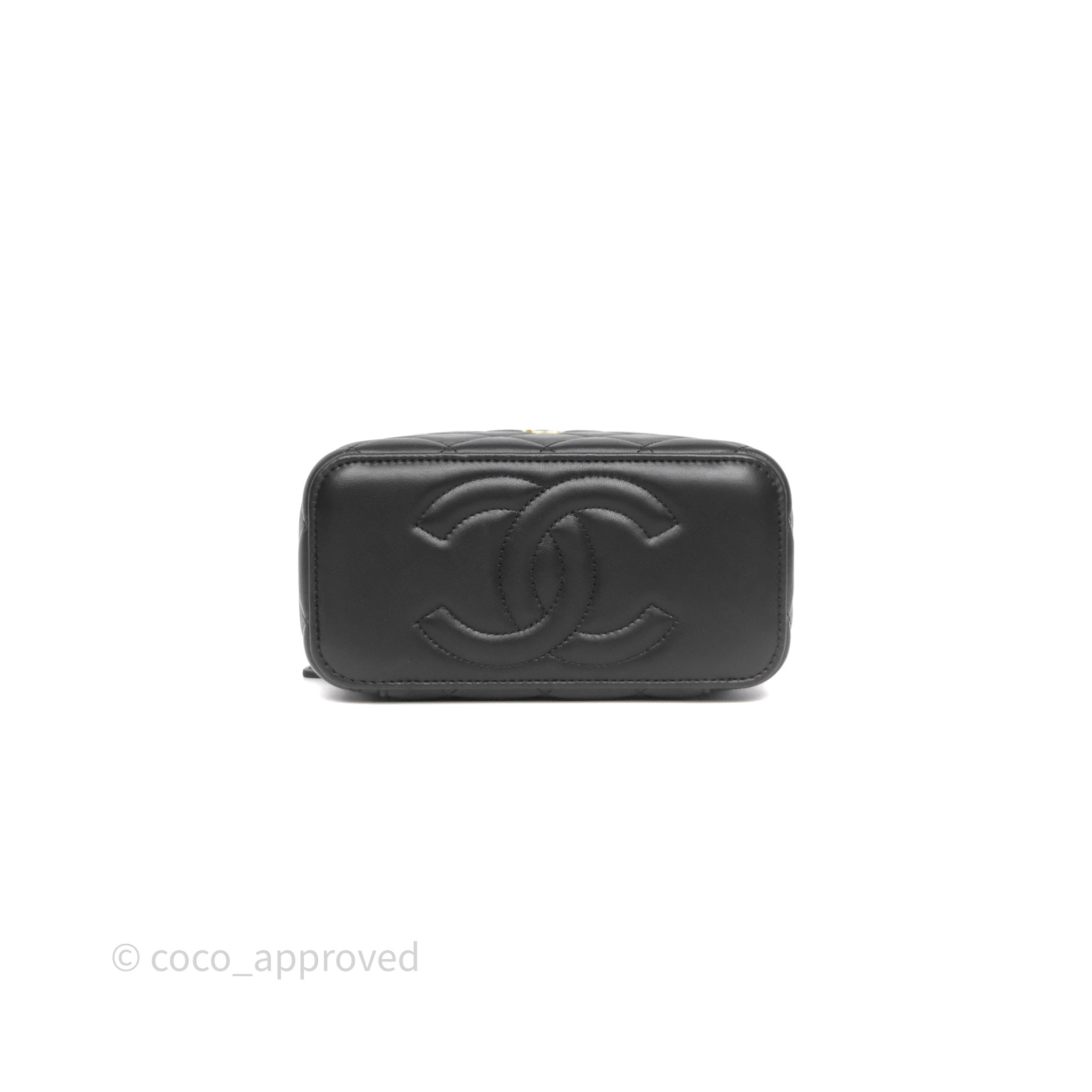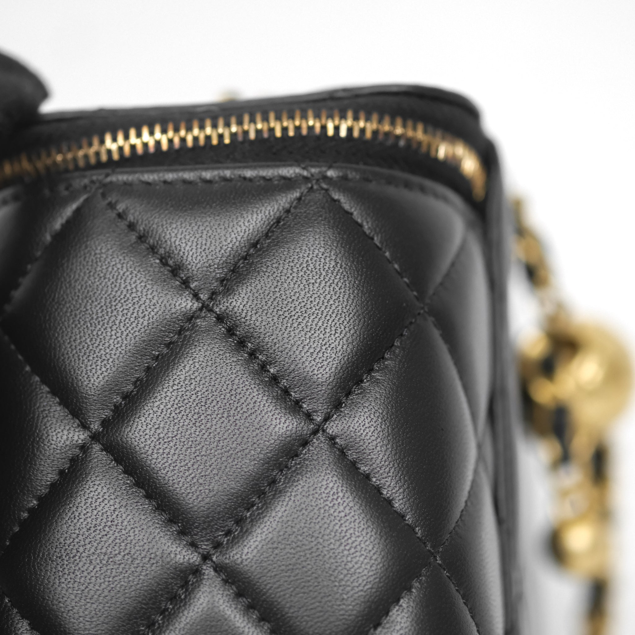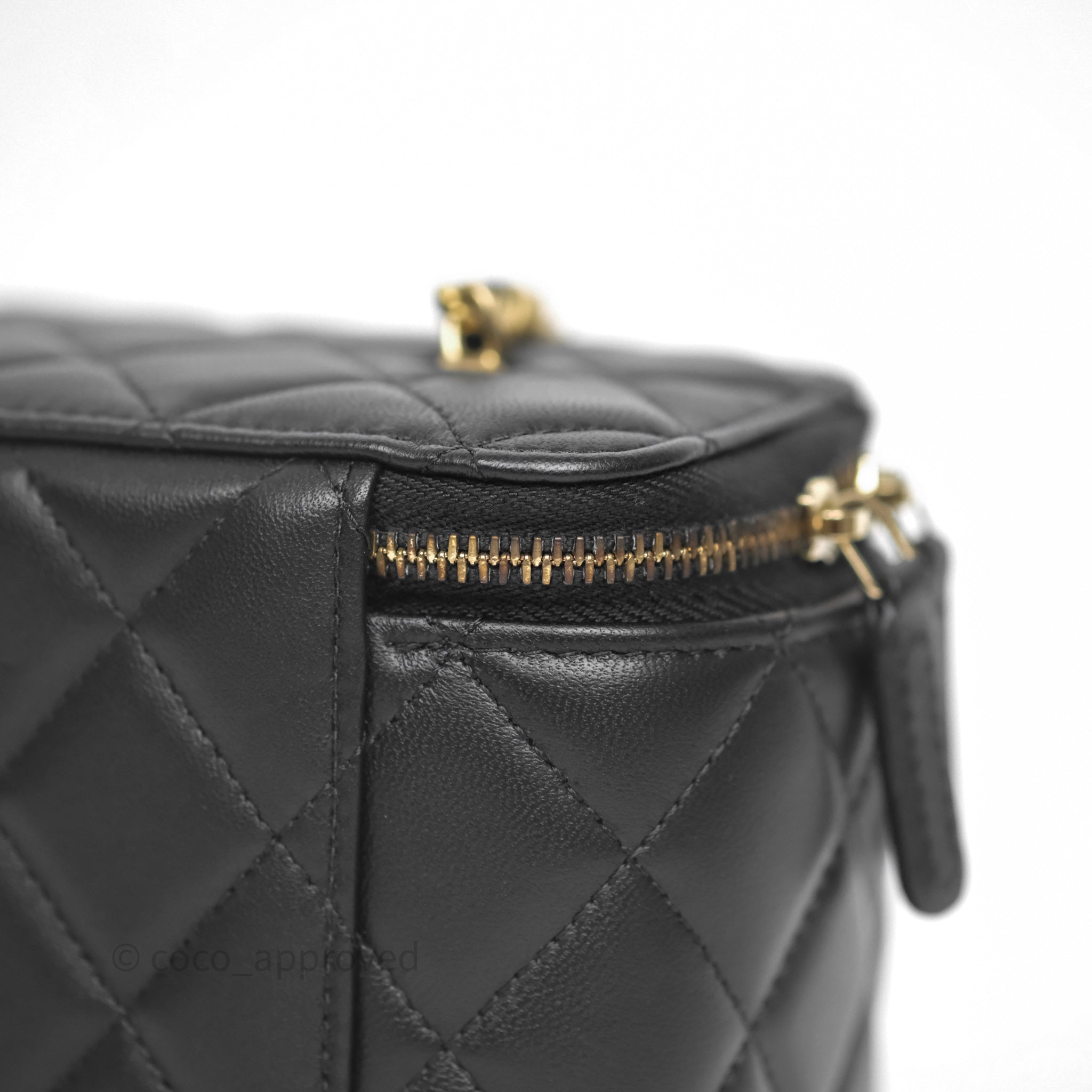 Chanel Vanity With Pearl Crush Chain Black Lambskin Aged Gold Hardware