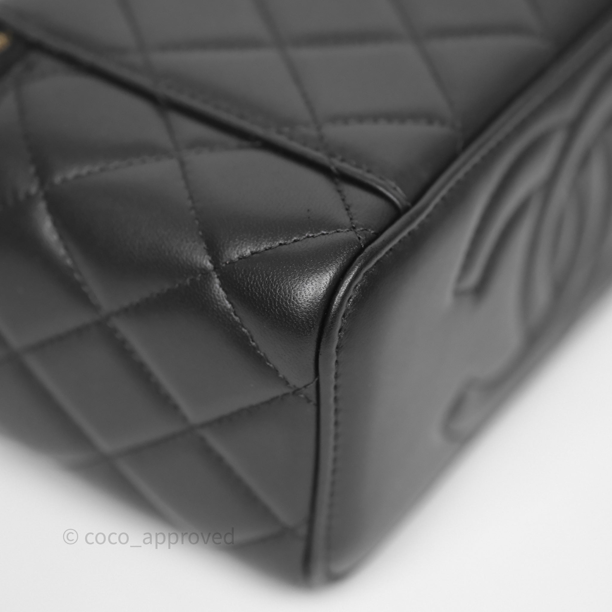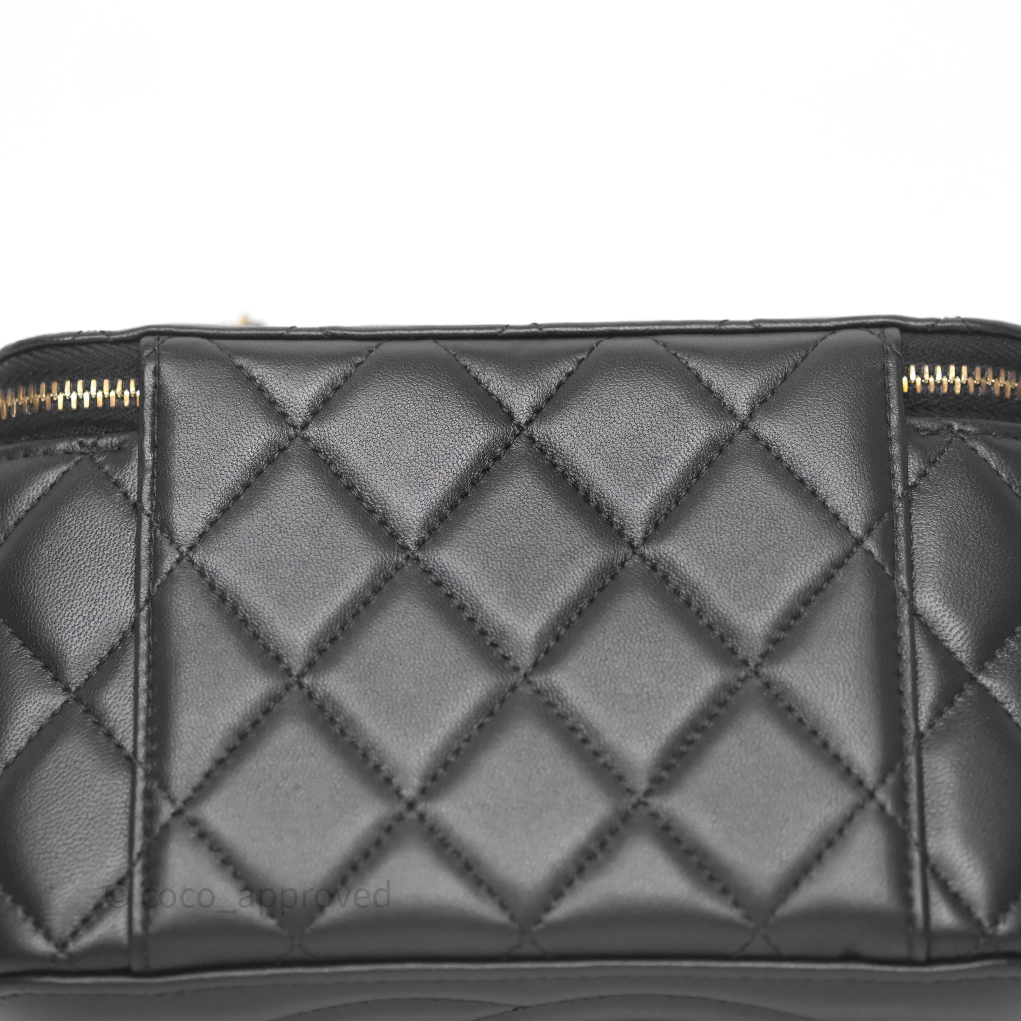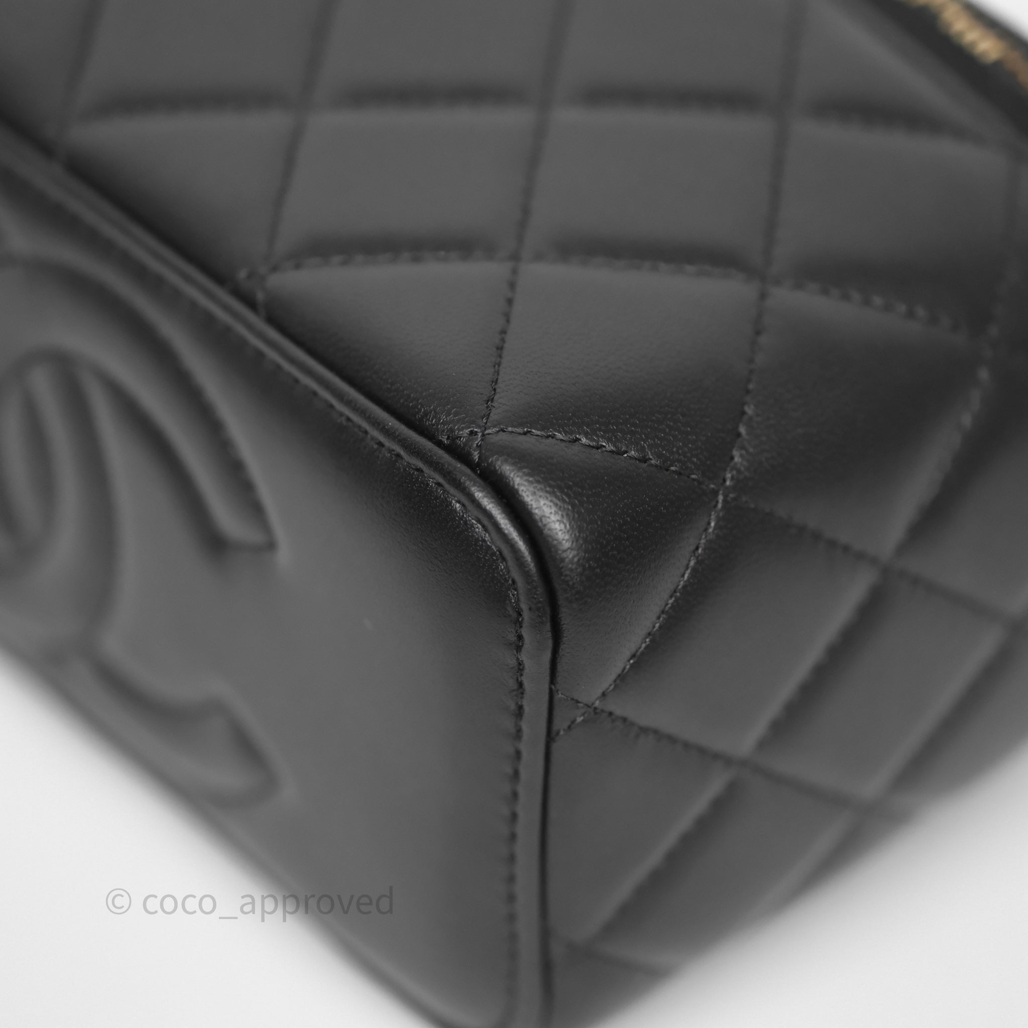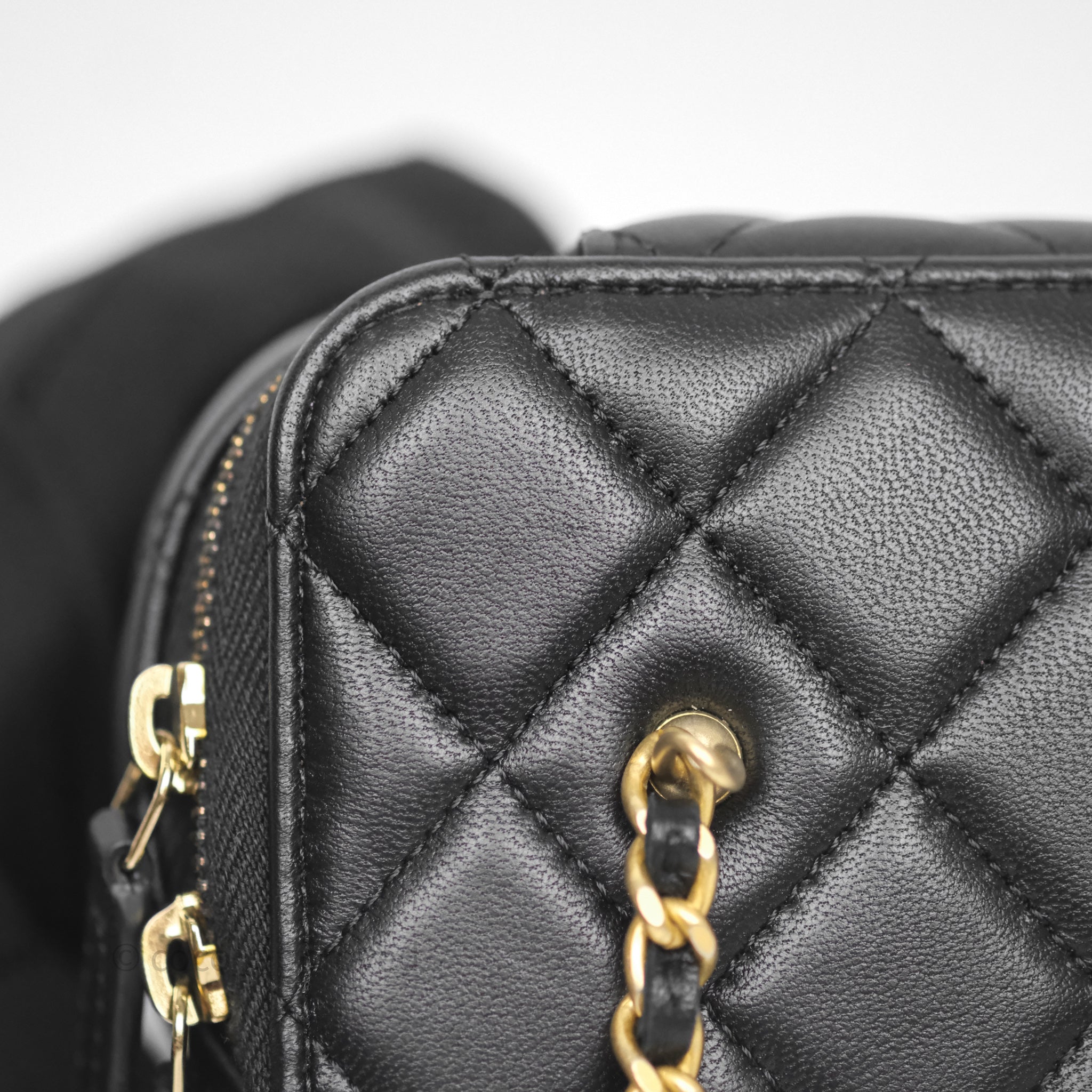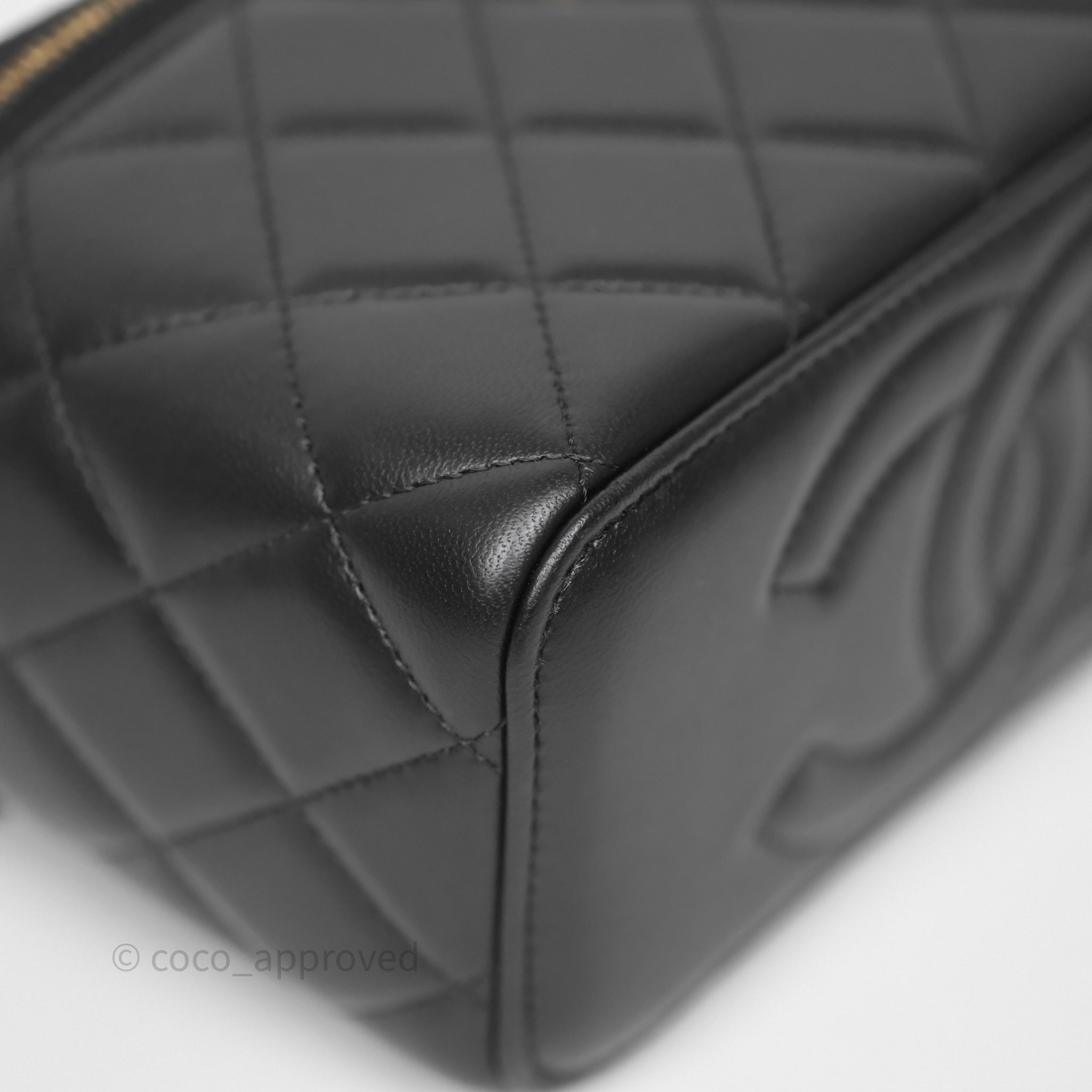 Chanel Vanity With Pearl Crush Chain Black Lambskin Aged Gold Hardware