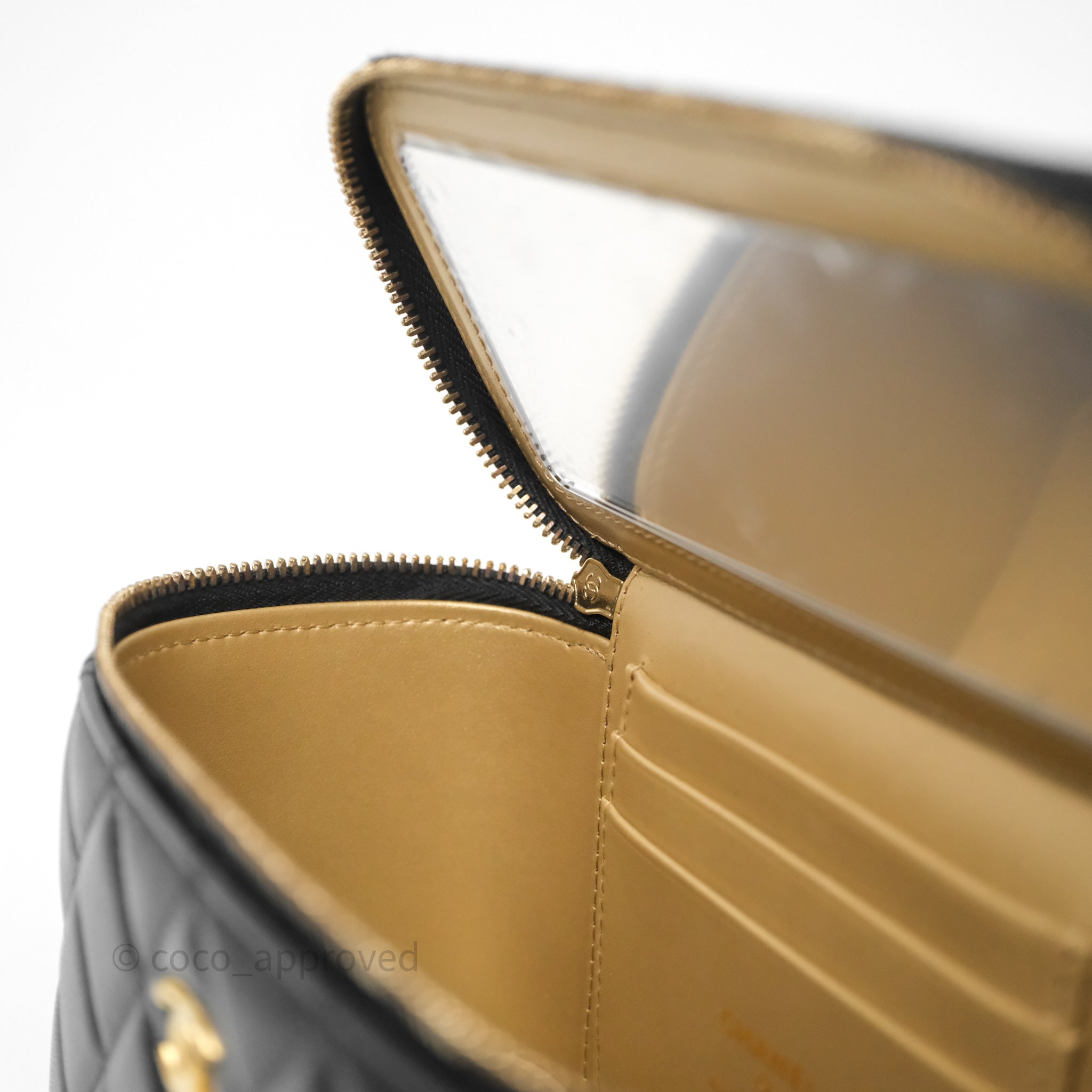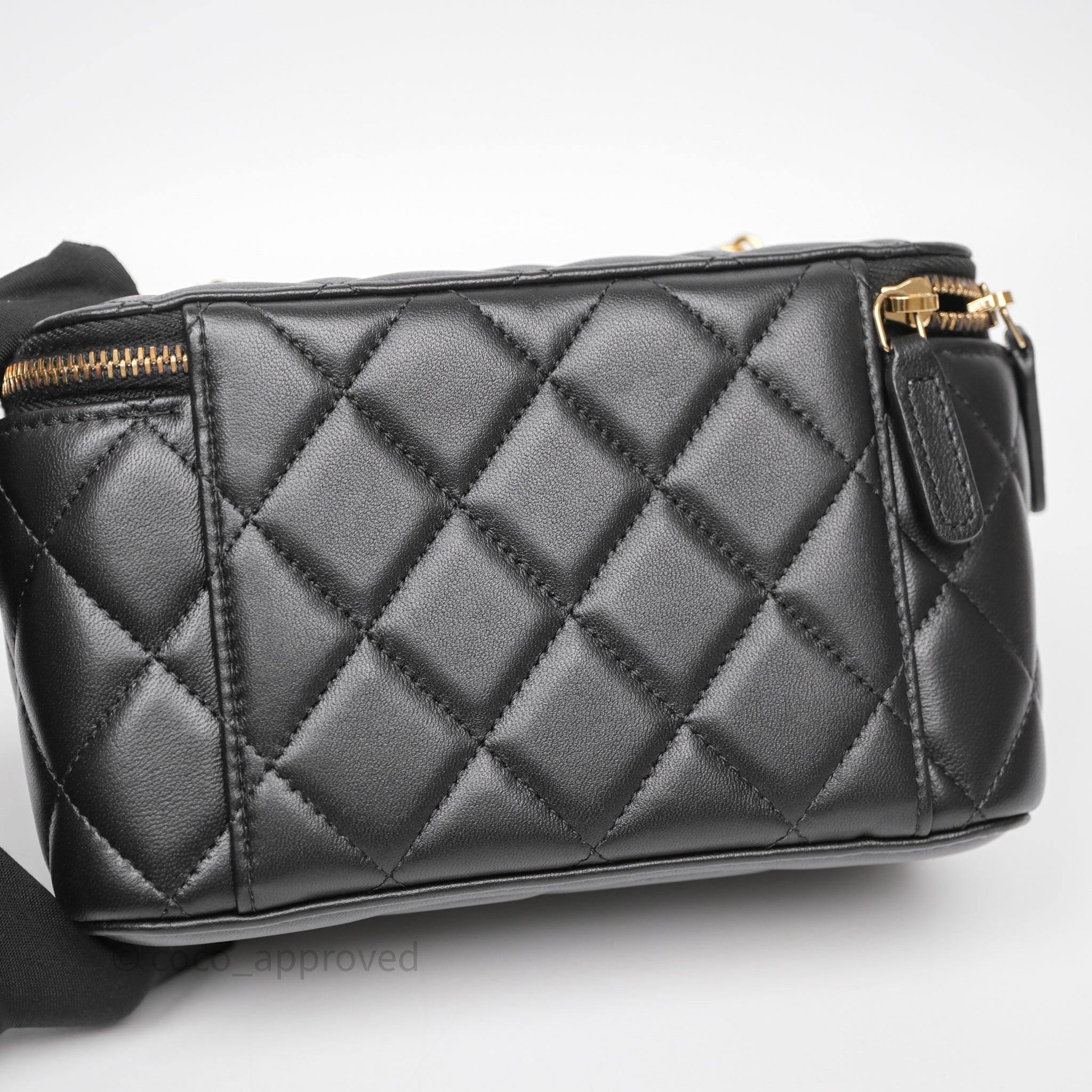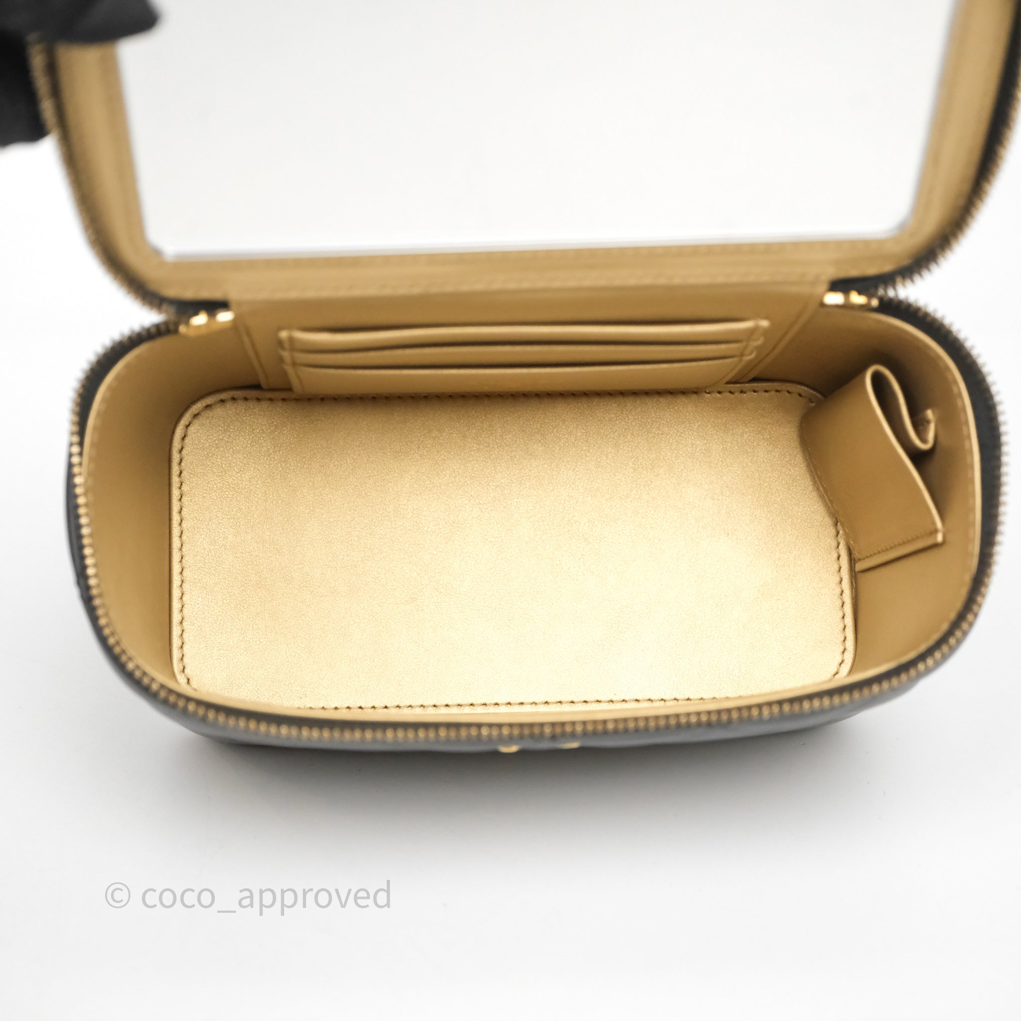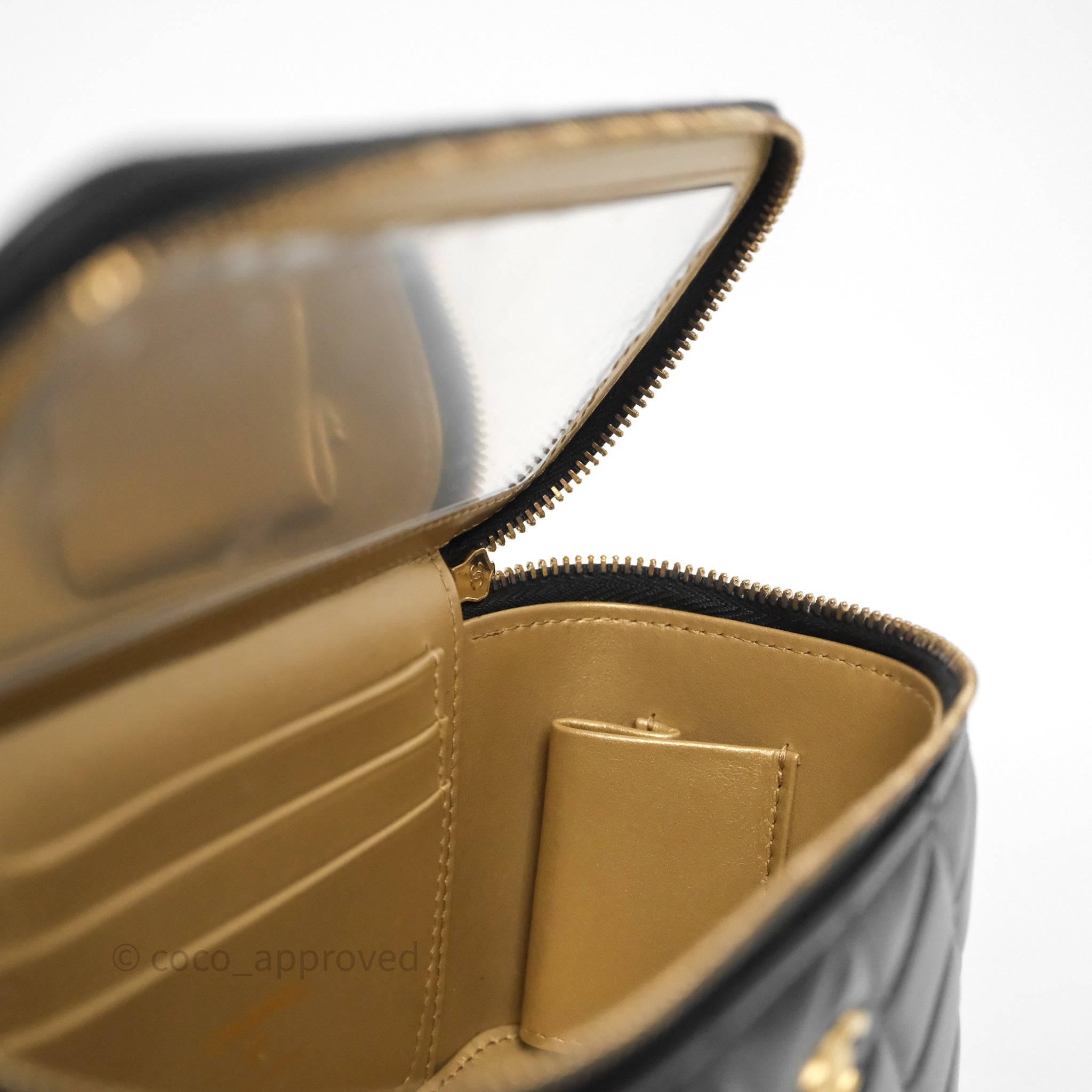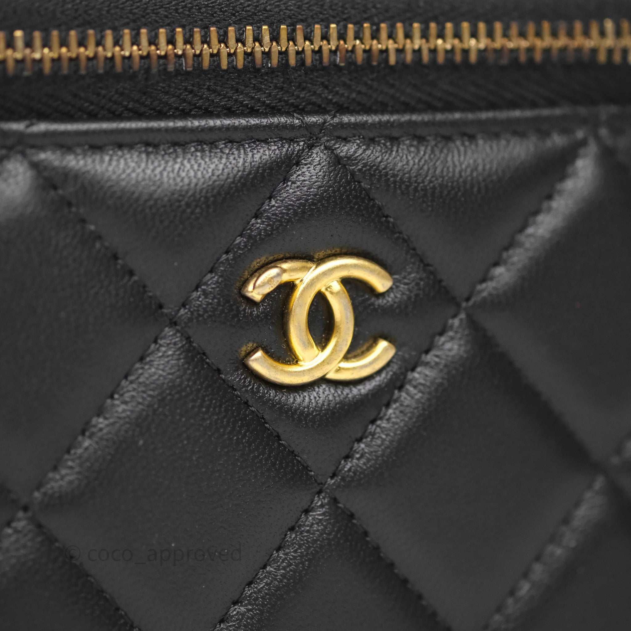Chanel Vanity With Pearl Crush Chain Black Lambskin Aged Gold Hardware