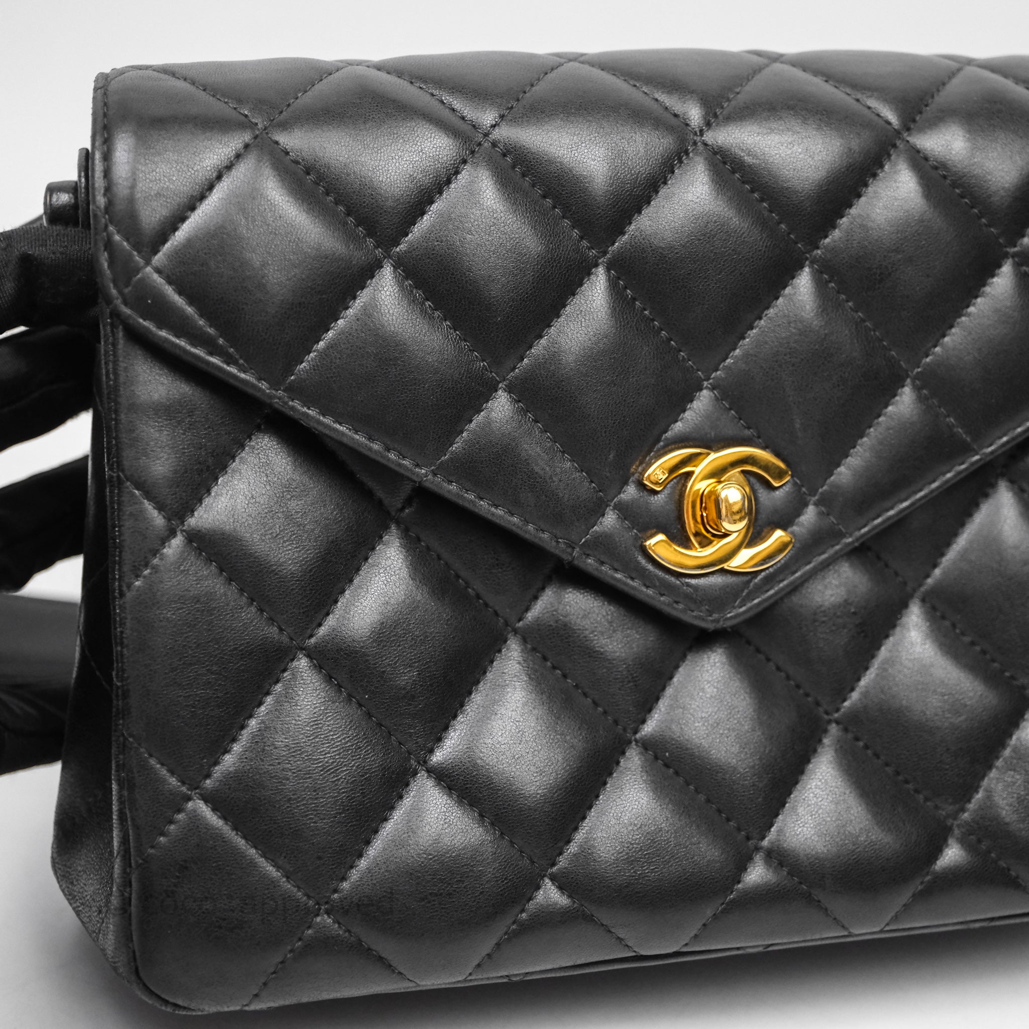 Chanel Vintage Black Lambskin Flap Bag 24K Gold Hardware