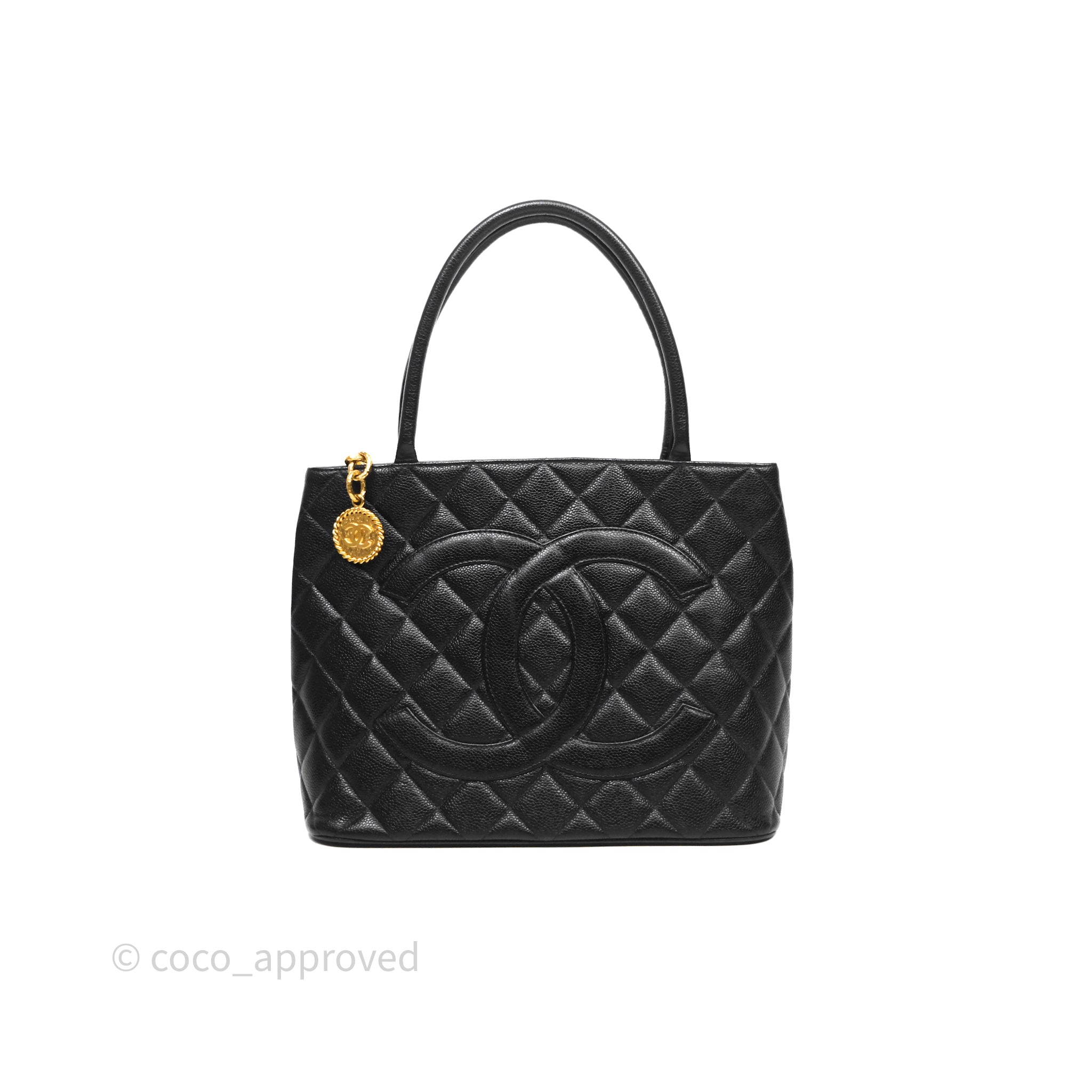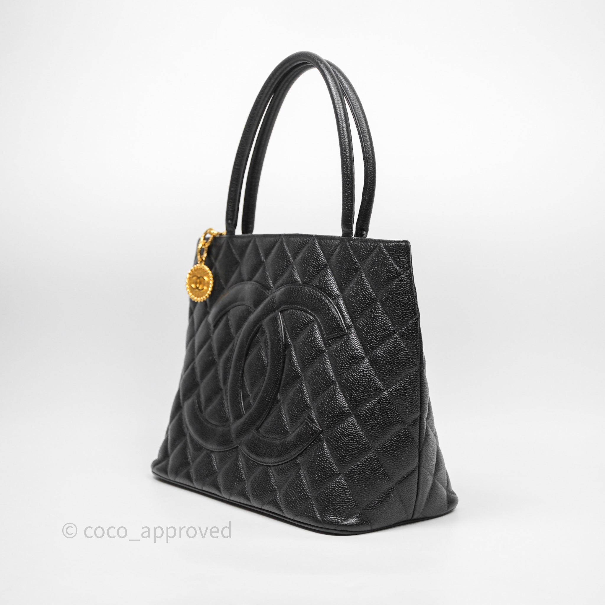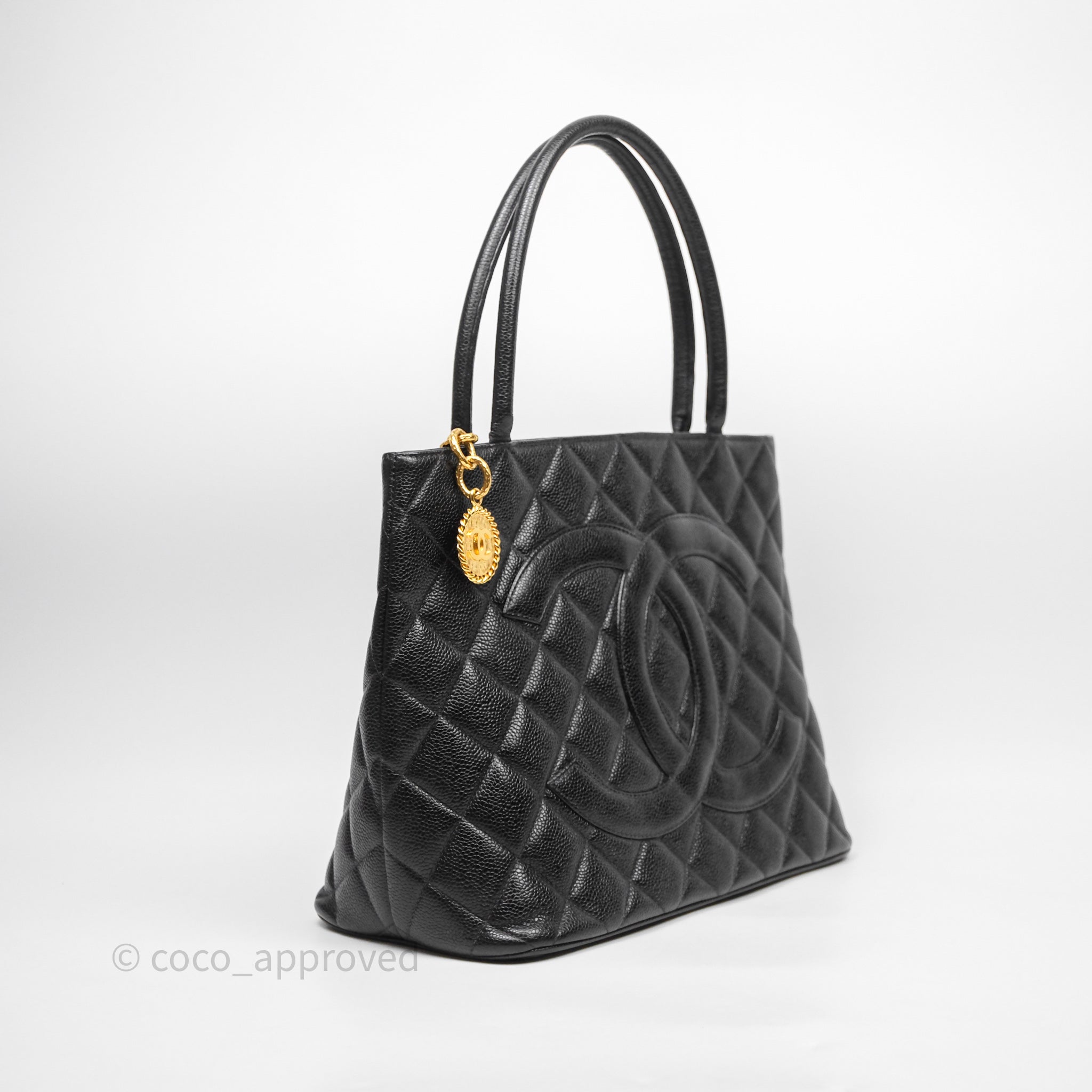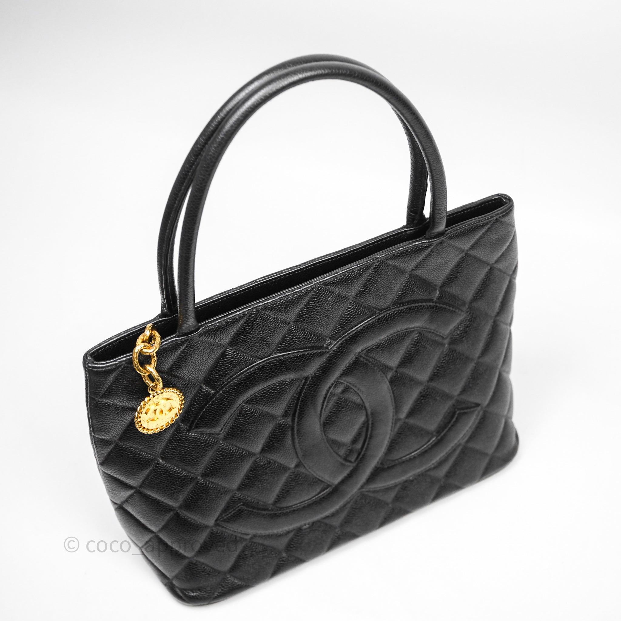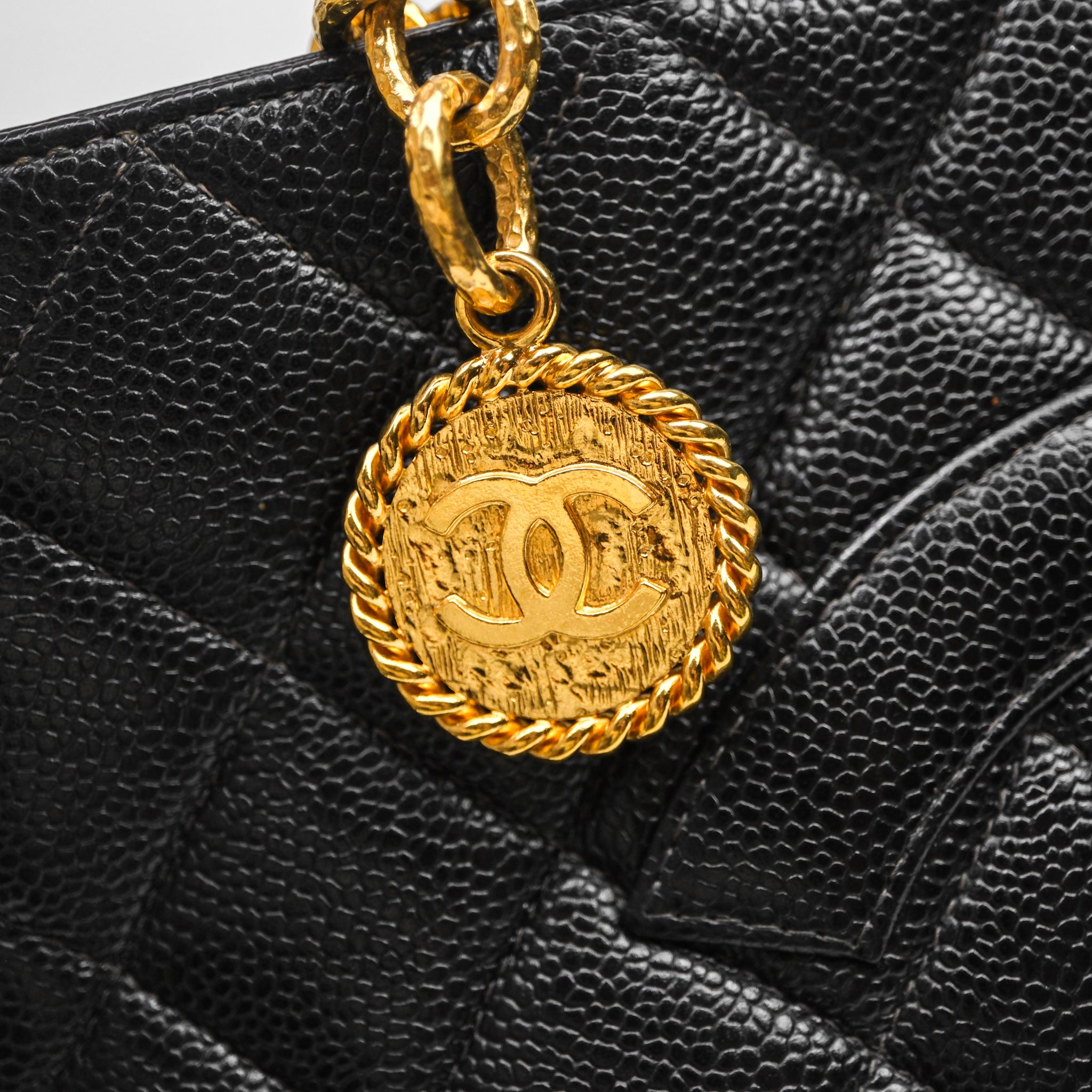 Chanel Vintage Medallion CC Tote Bag Black Caviar Gold Hardware