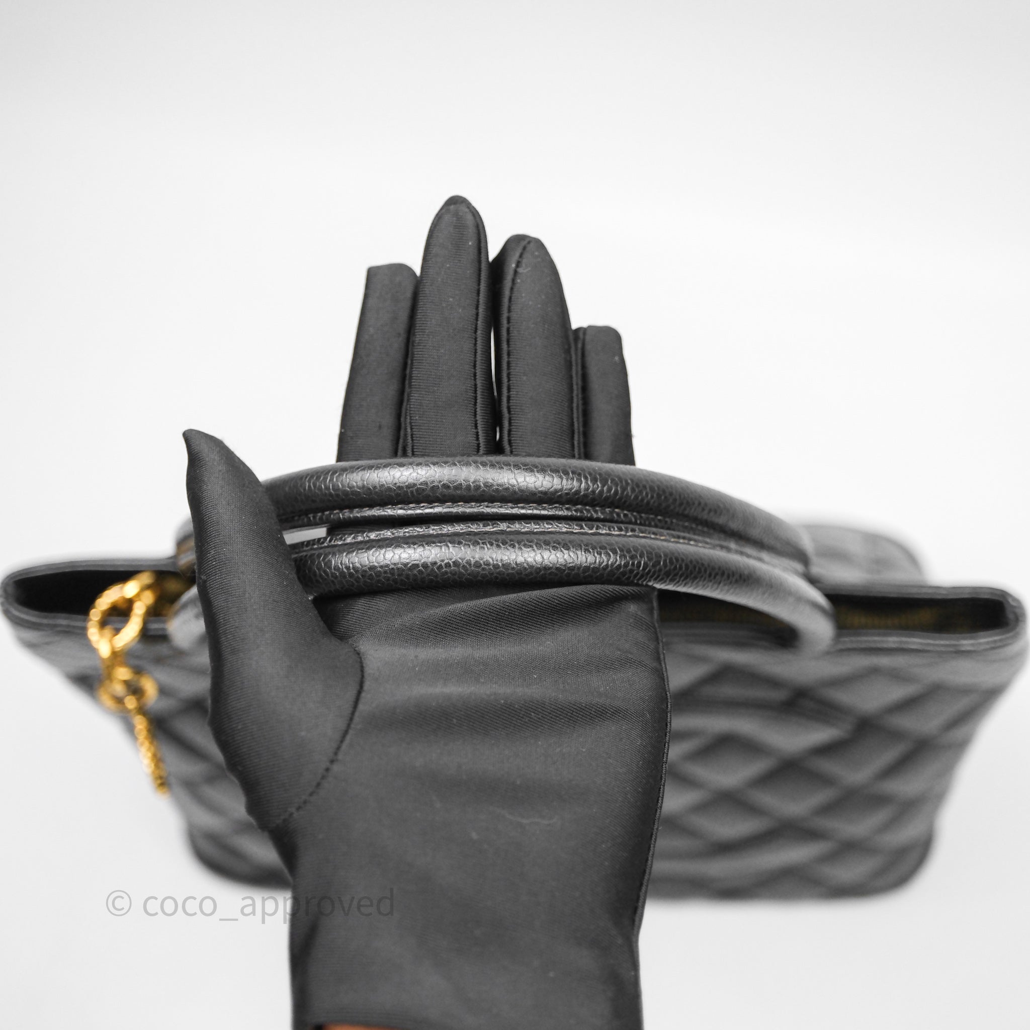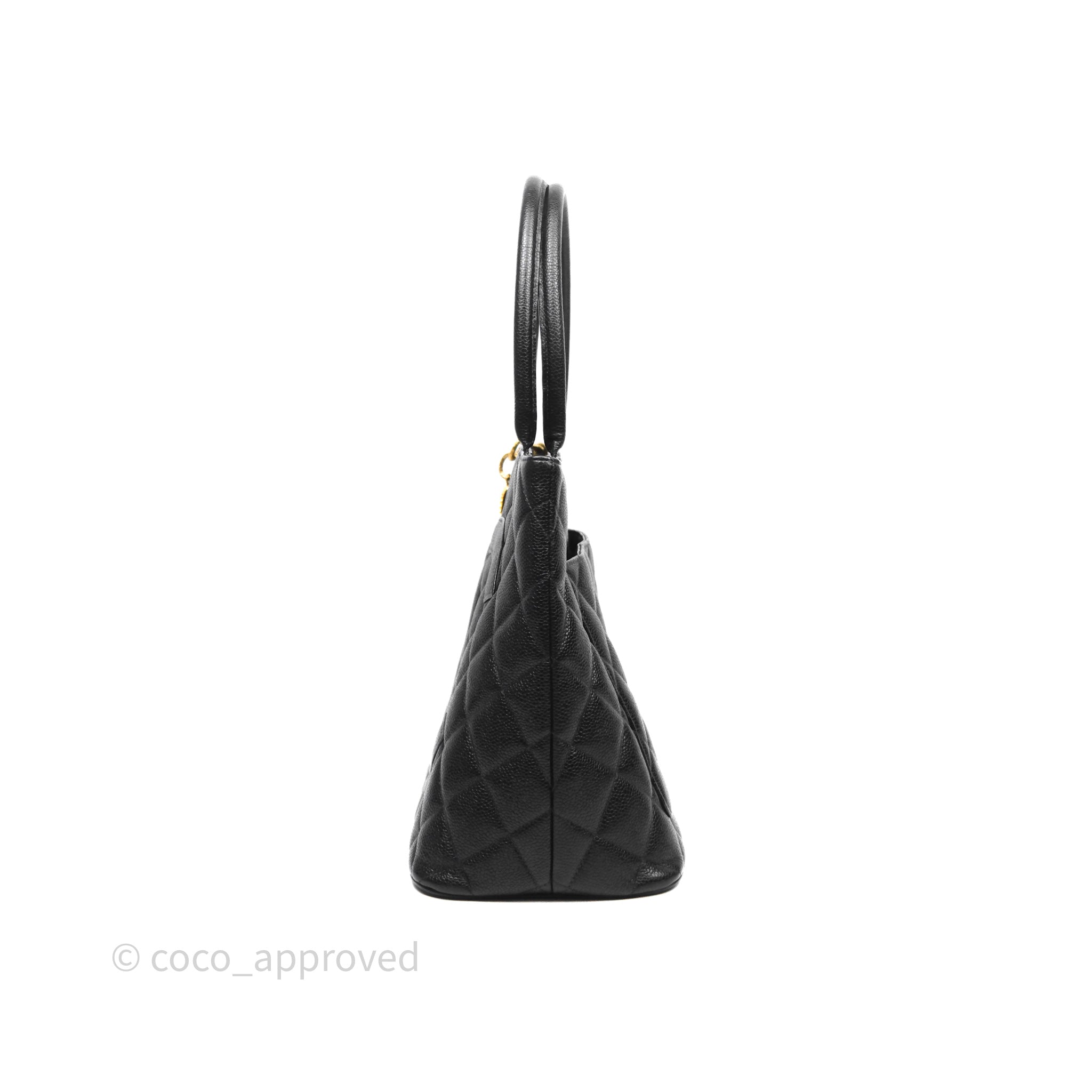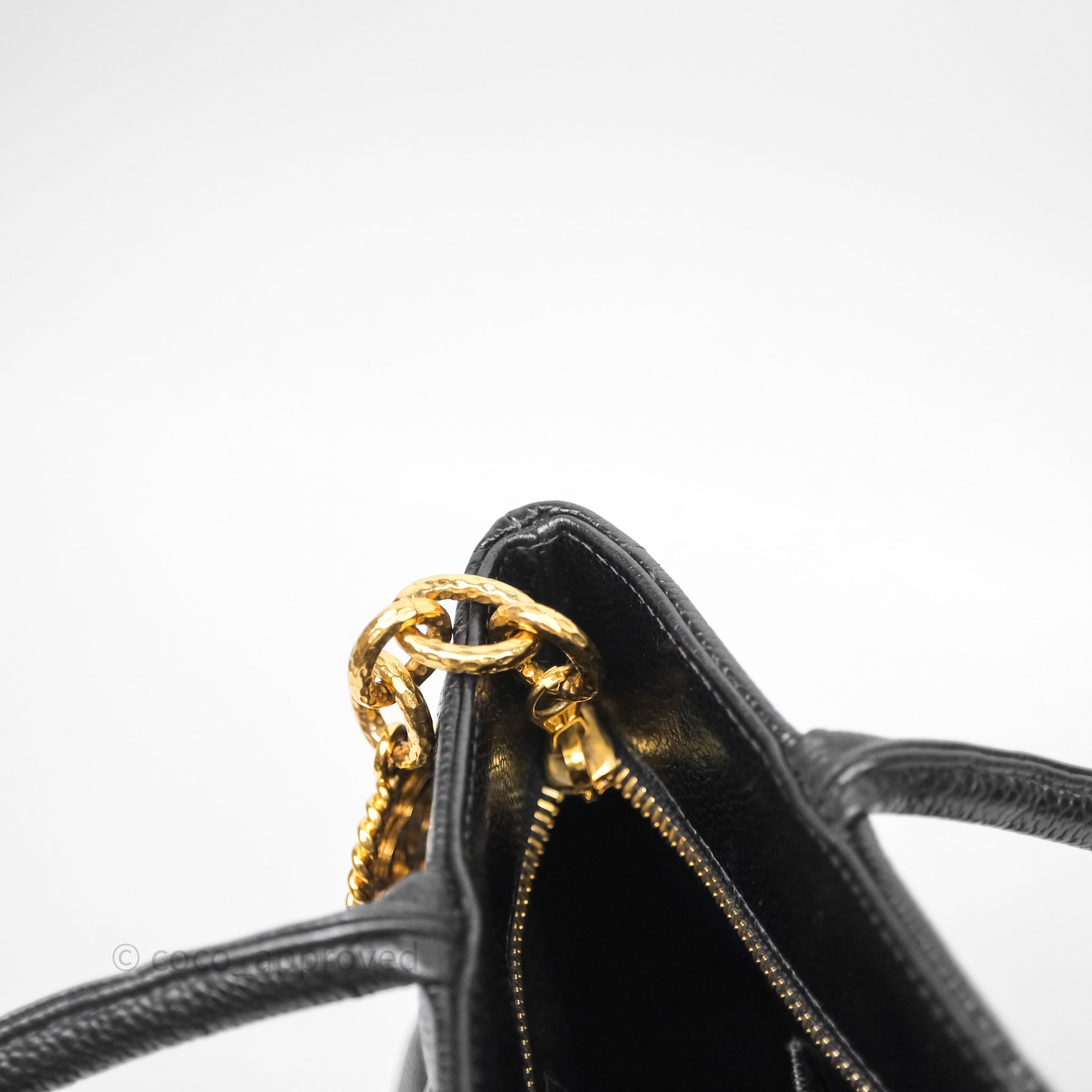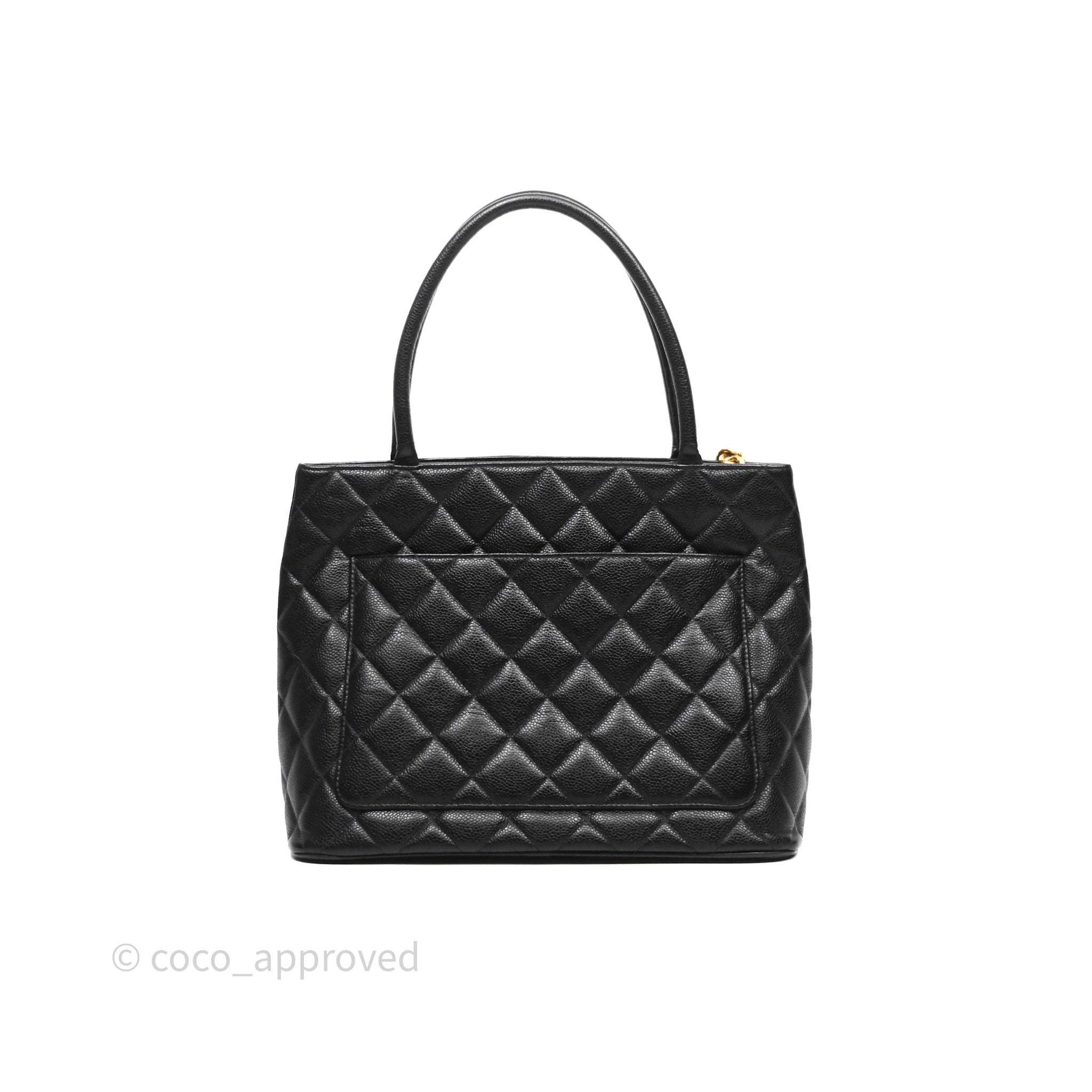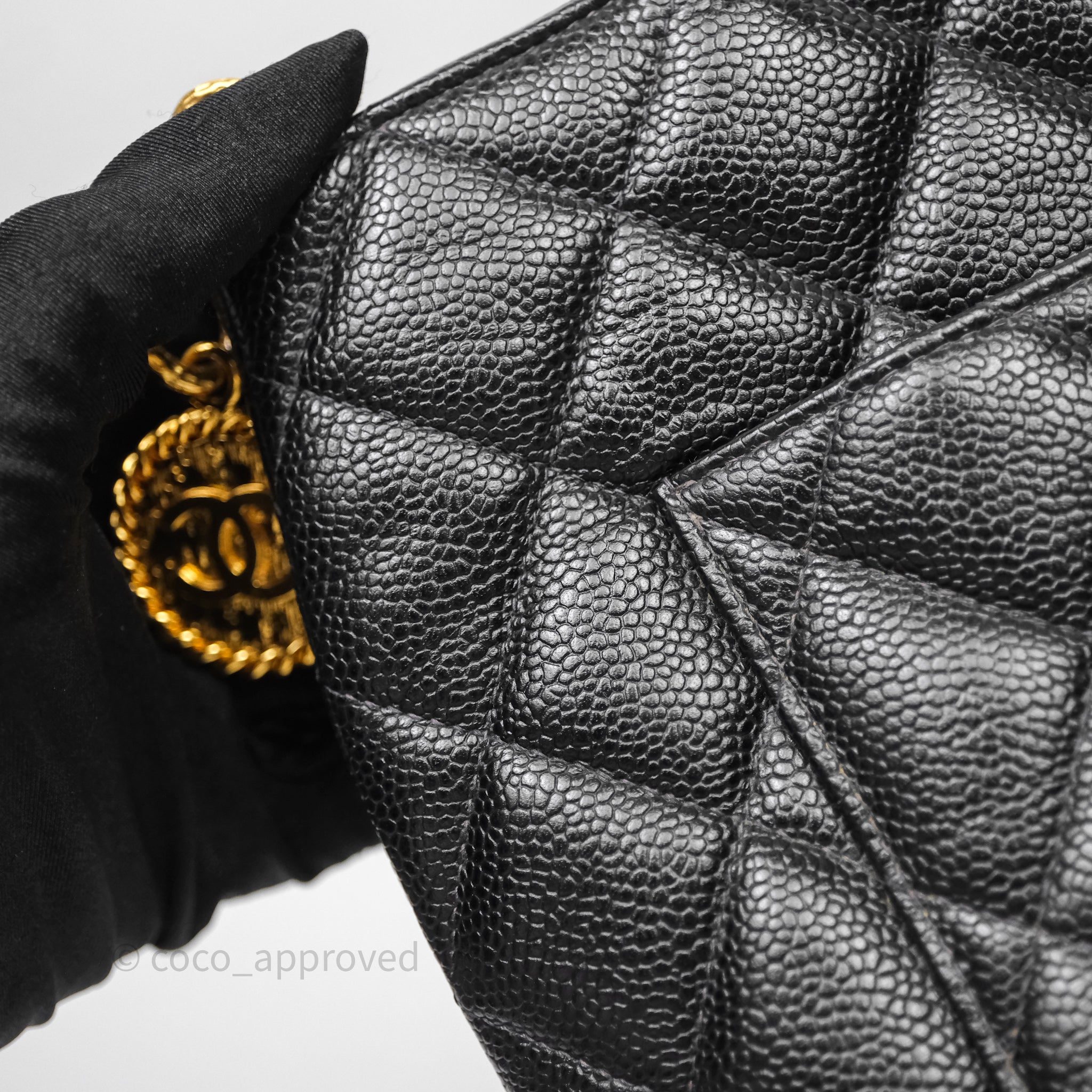 Chanel Vintage Medallion CC Tote Bag Black Caviar Gold Hardware
