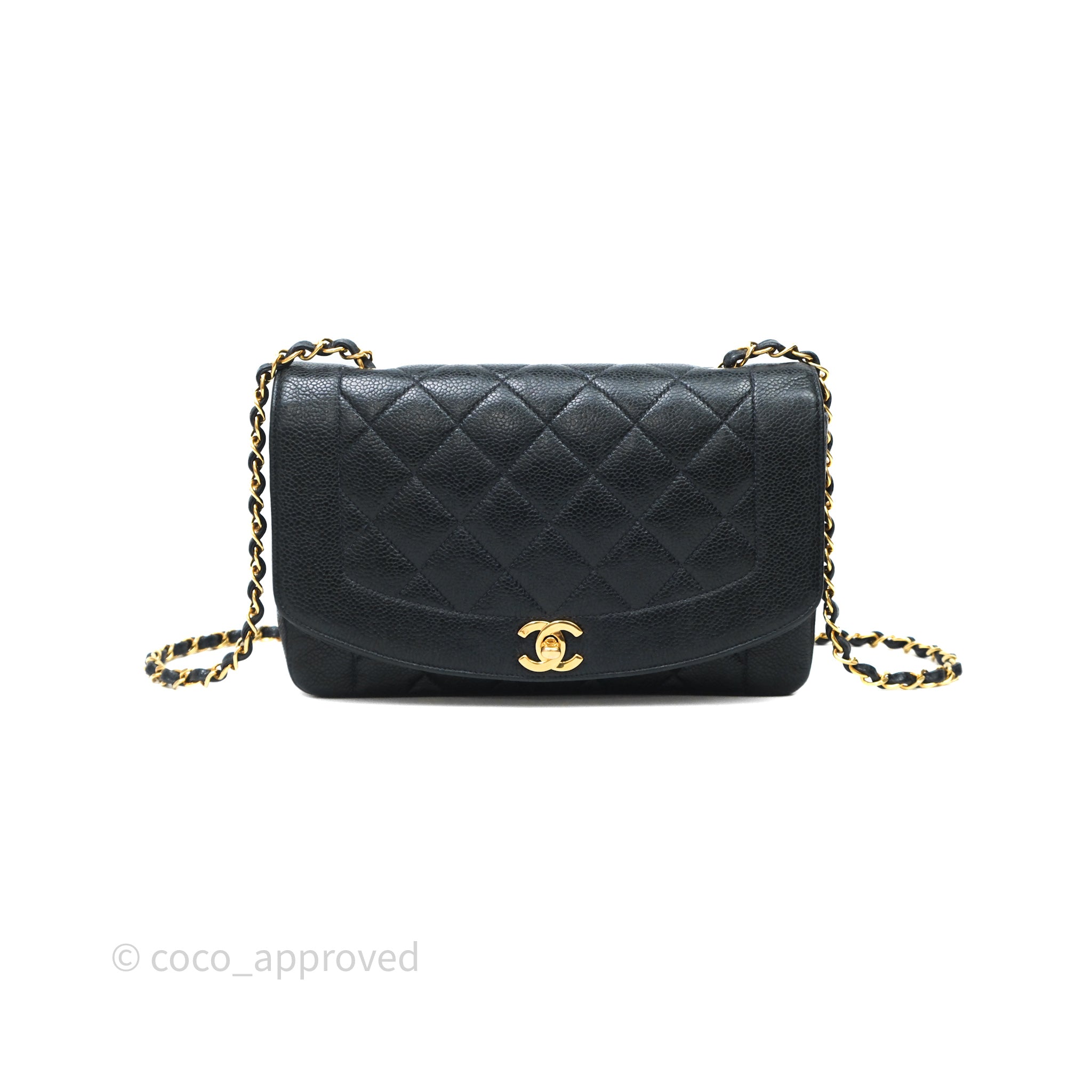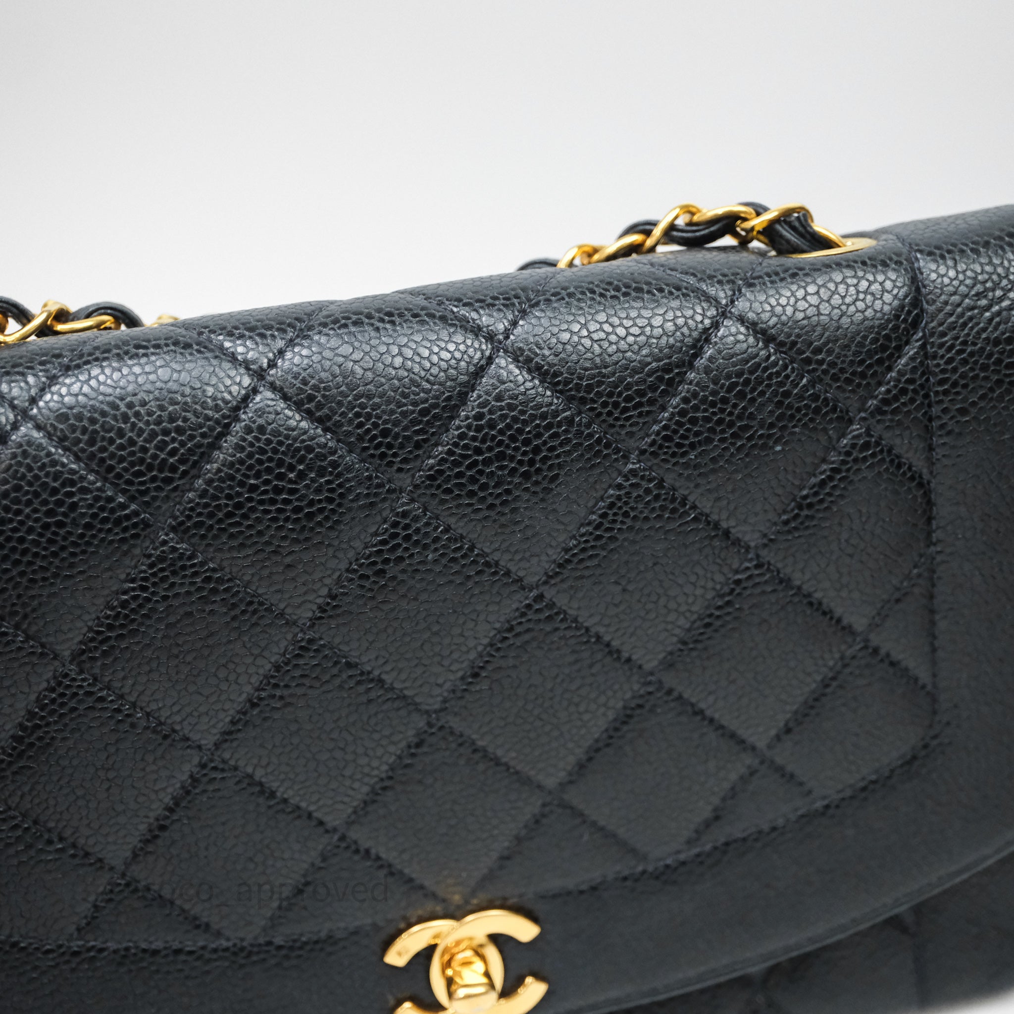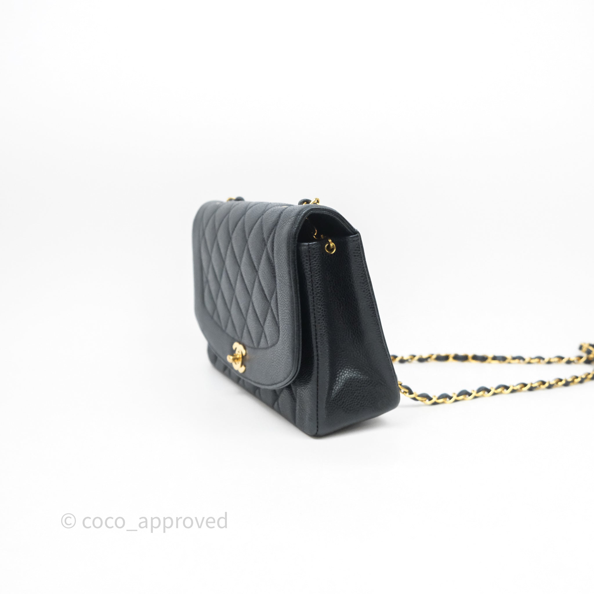 Chanel Vintage Medium Classic Diana Flap Bag Black Caviar 24K Gold Hardware