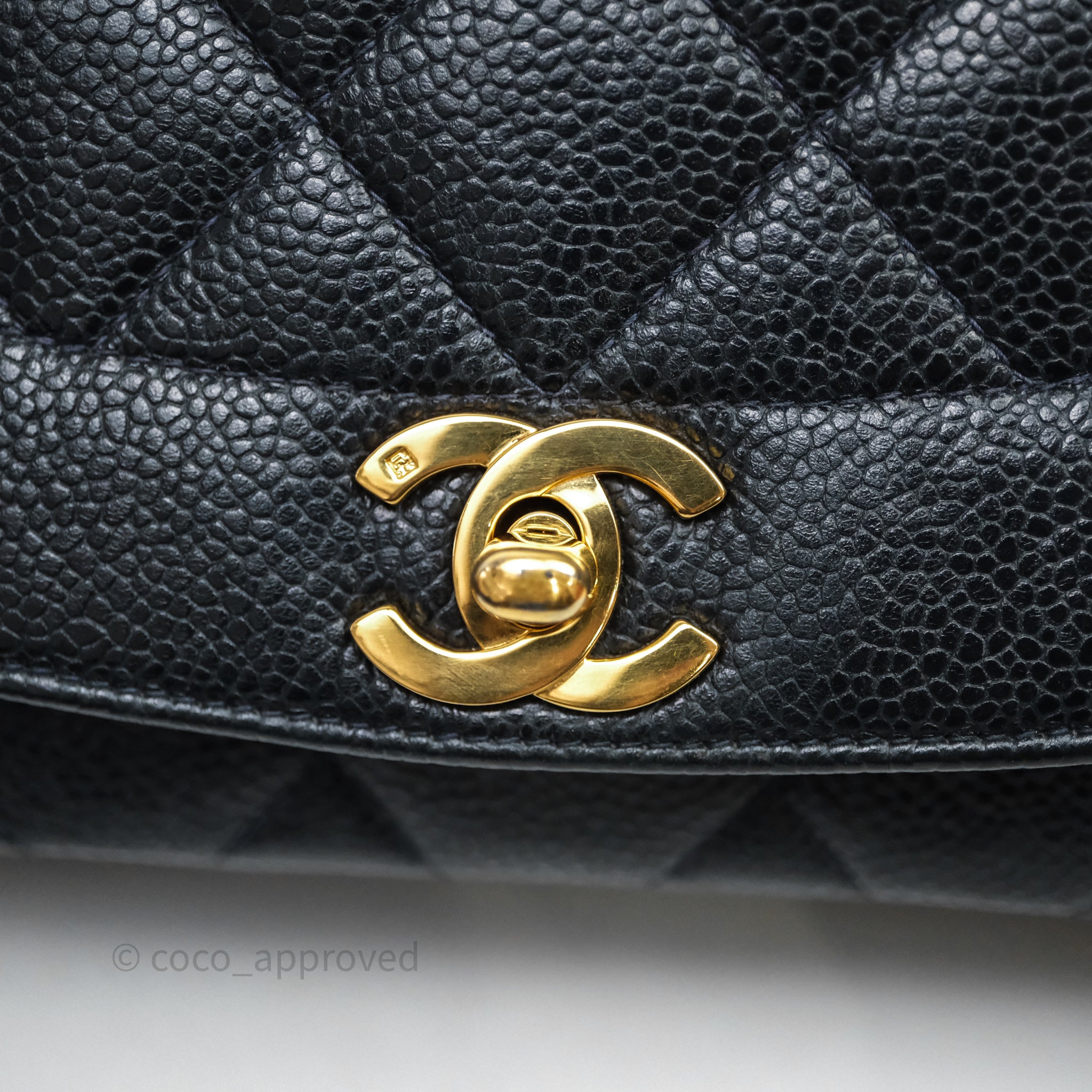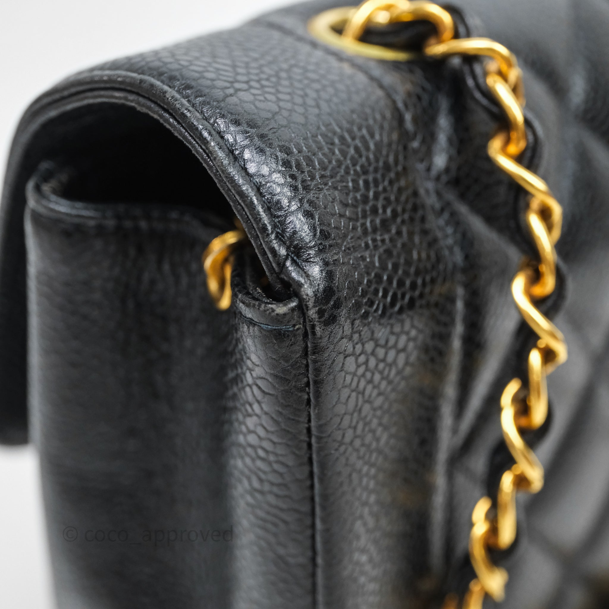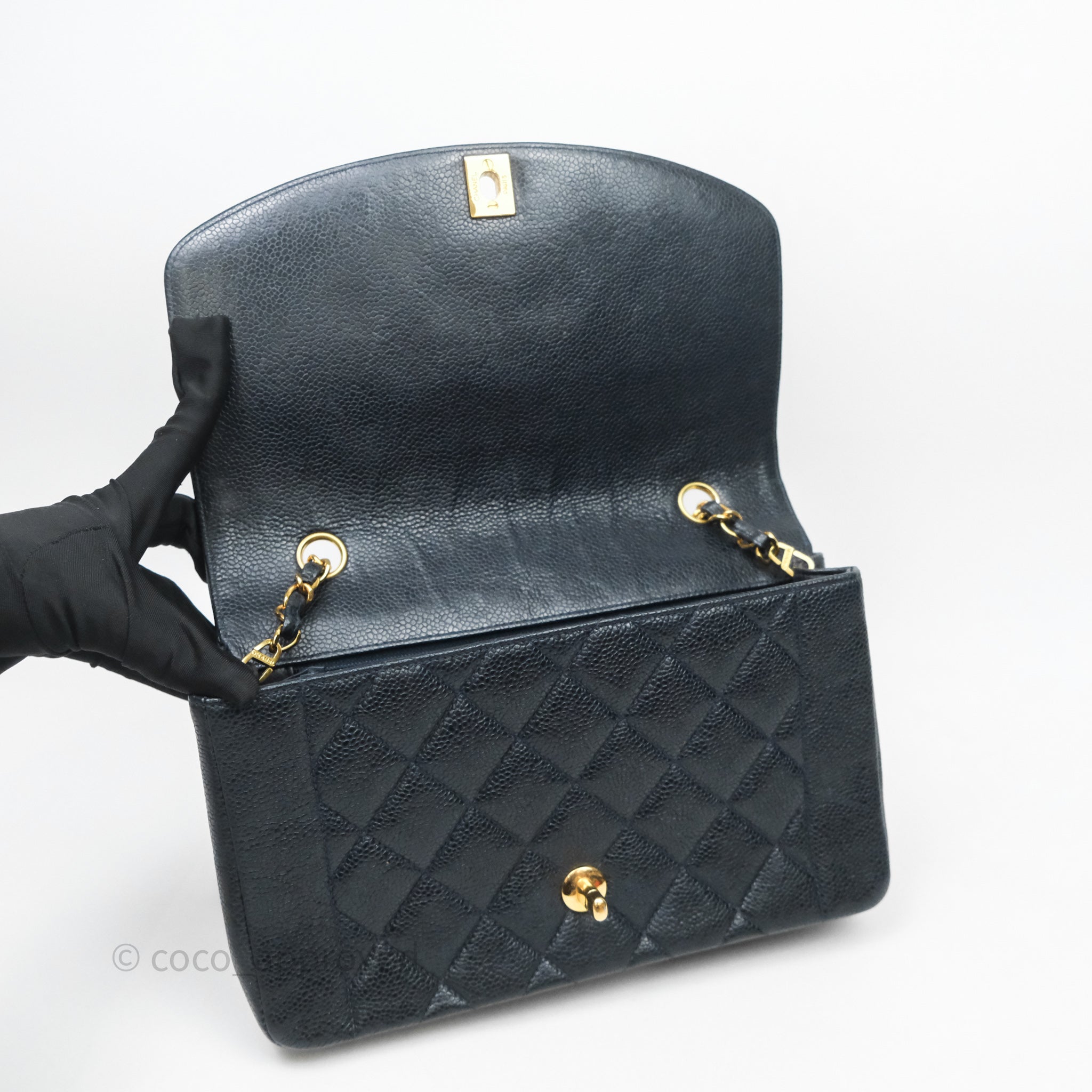 Chanel Vintage Medium Classic Diana Flap Bag Black Caviar 24K Gold Hardware
