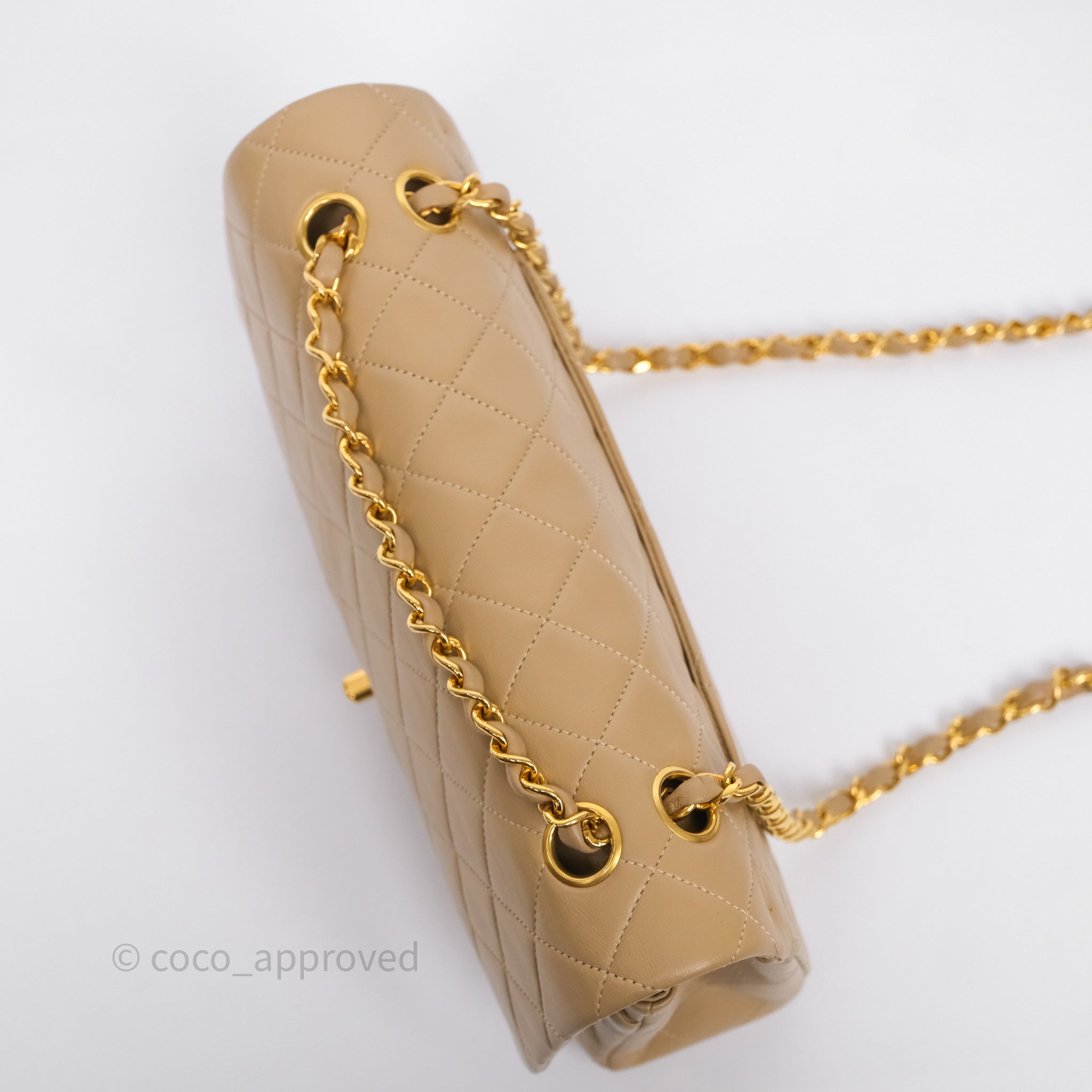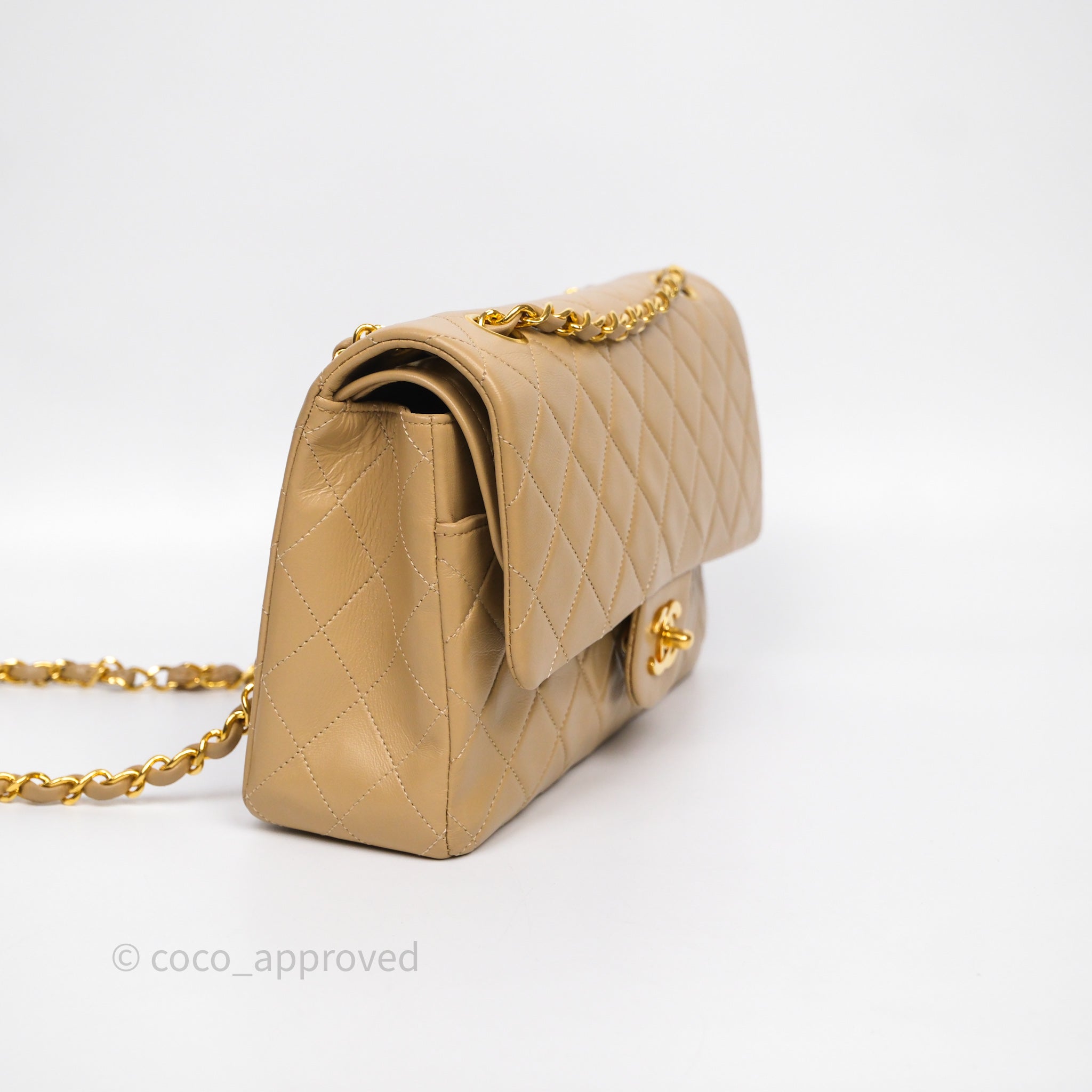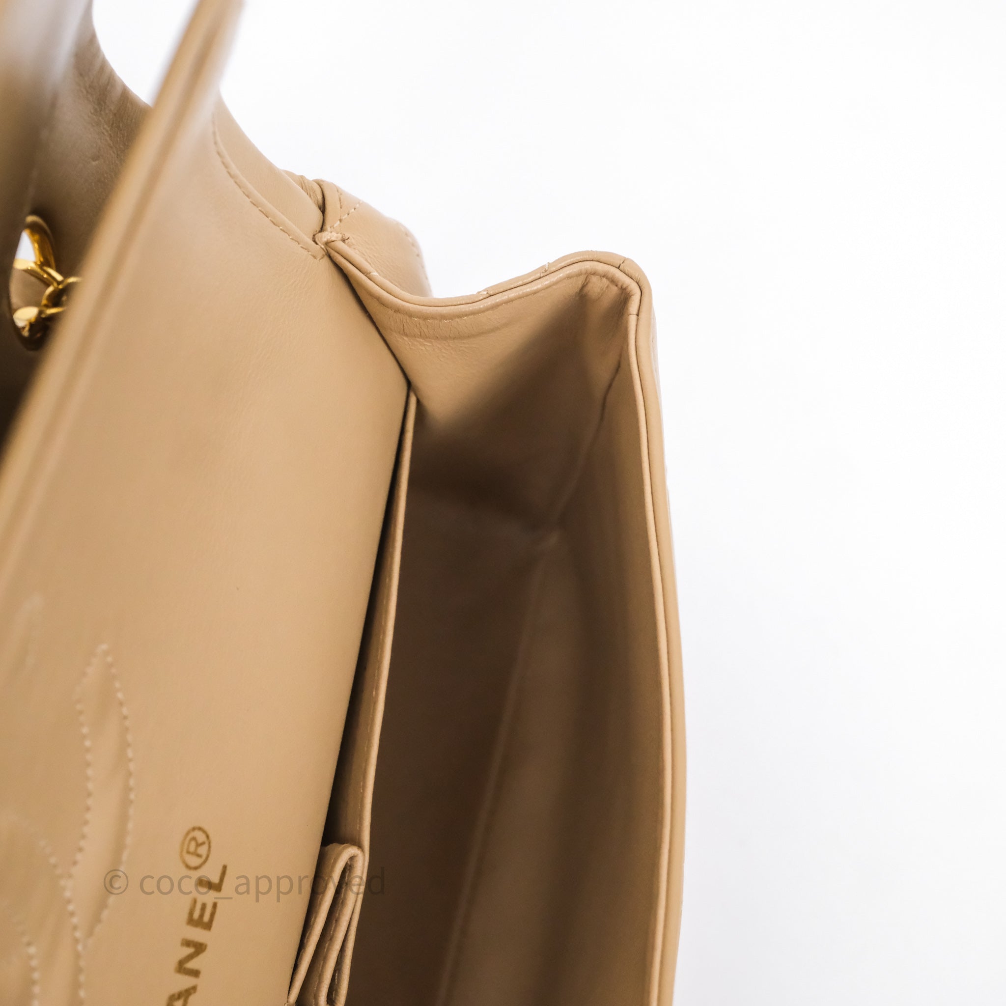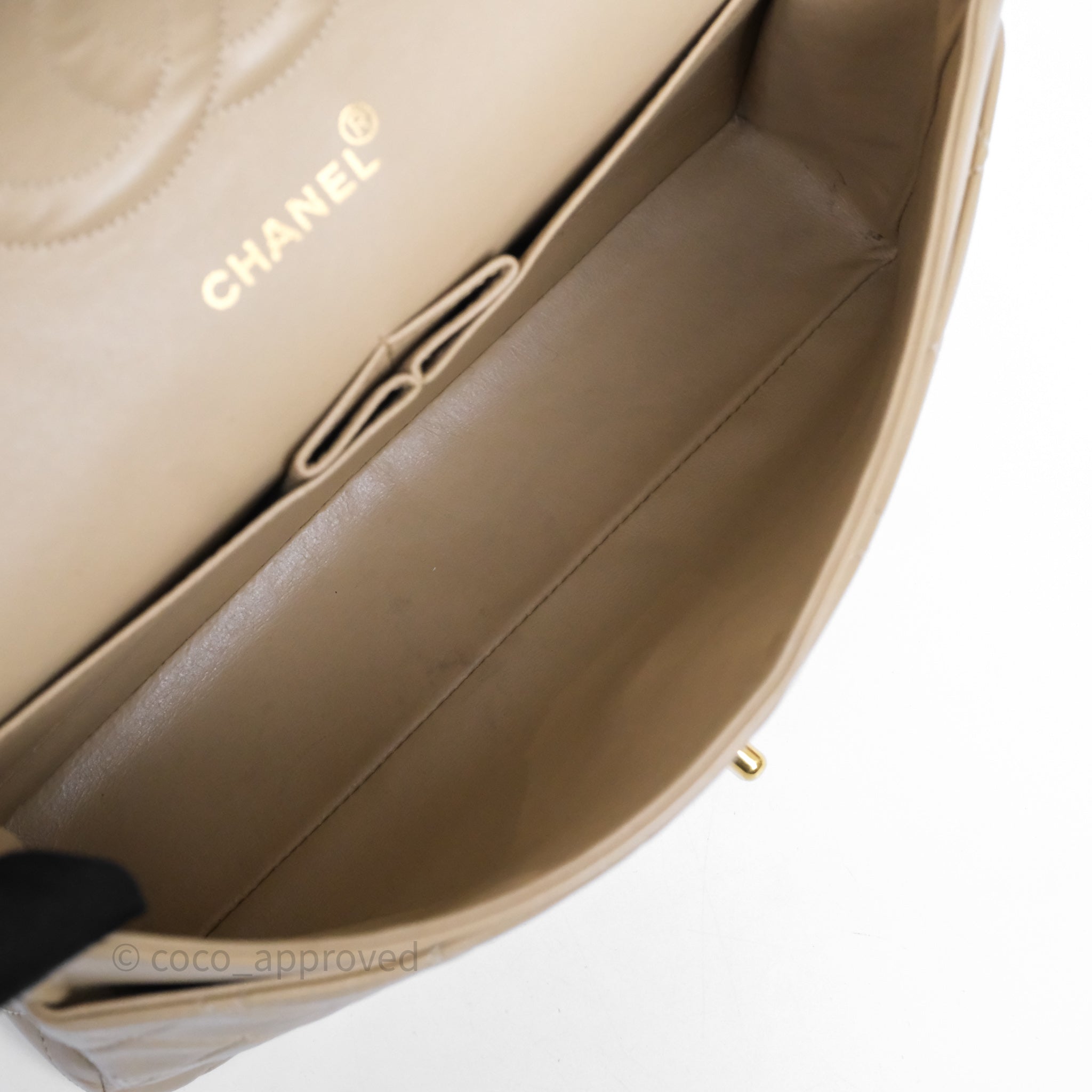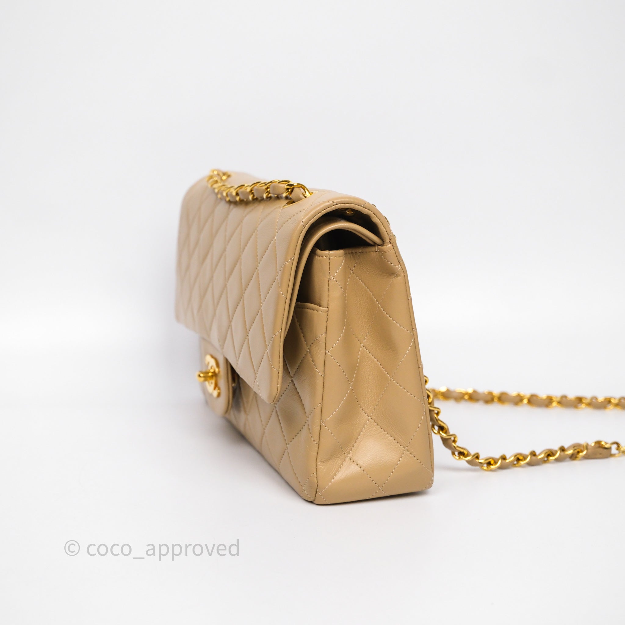 Chanel Vintage Medium Classic Flap Beige Lambskin 24K Gold Hardware