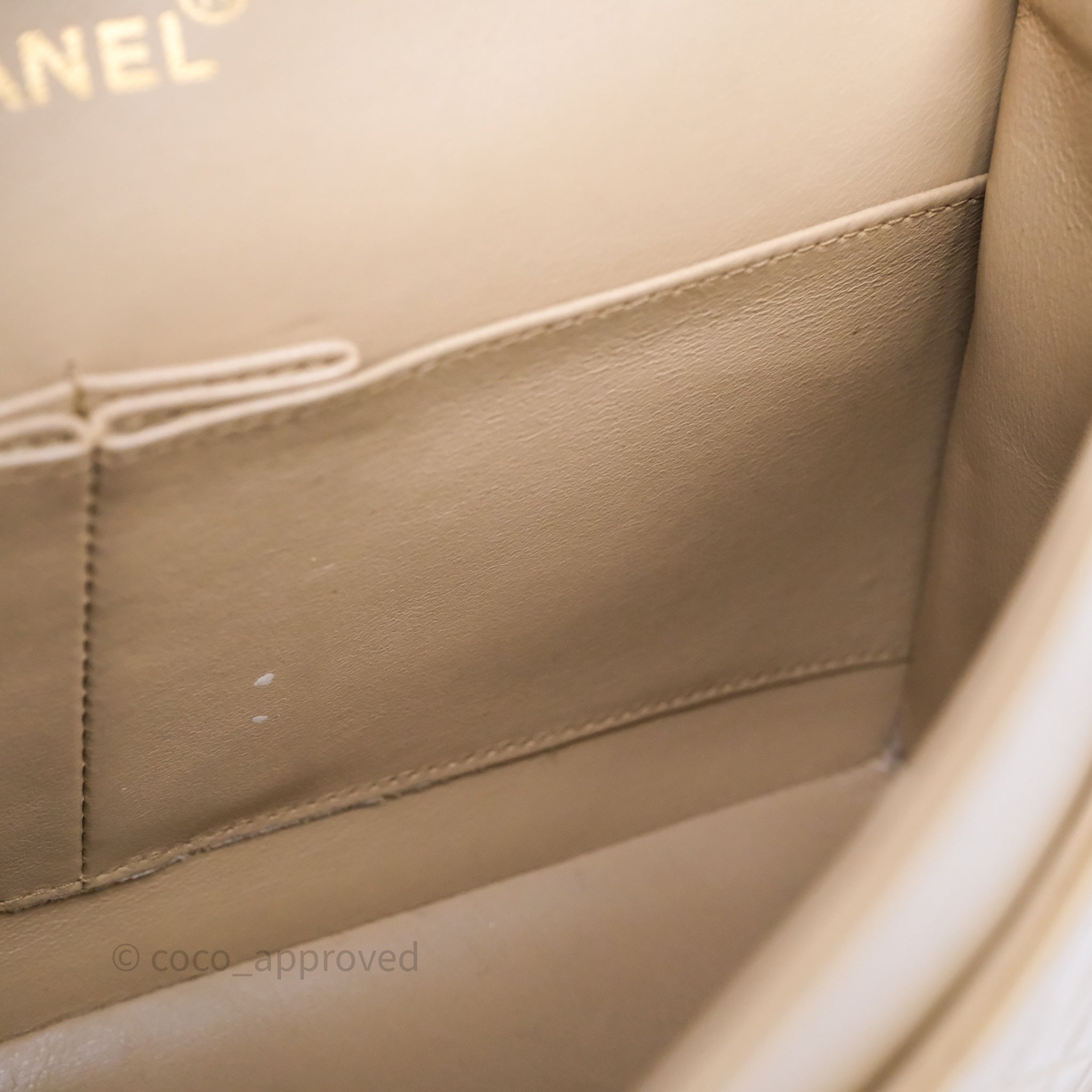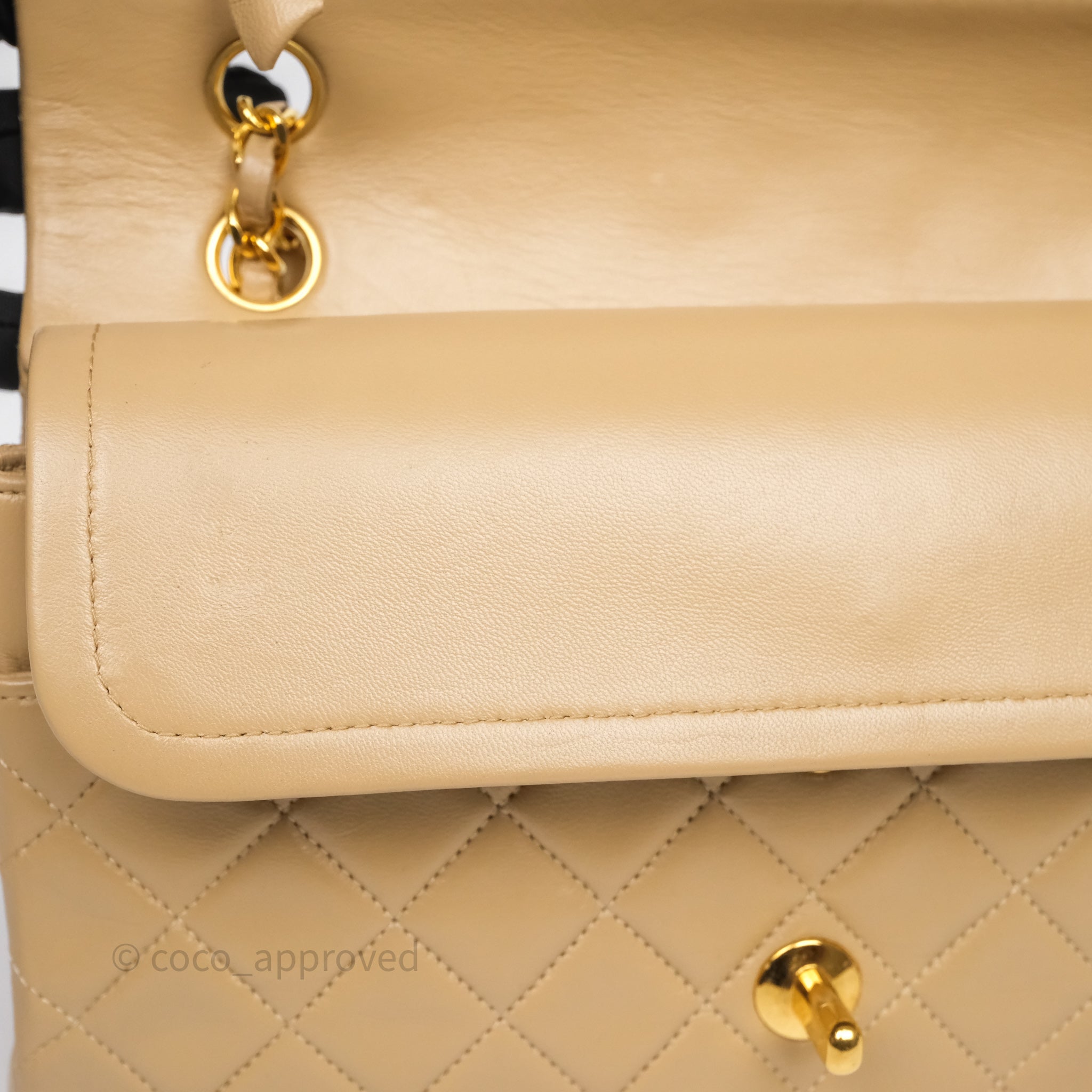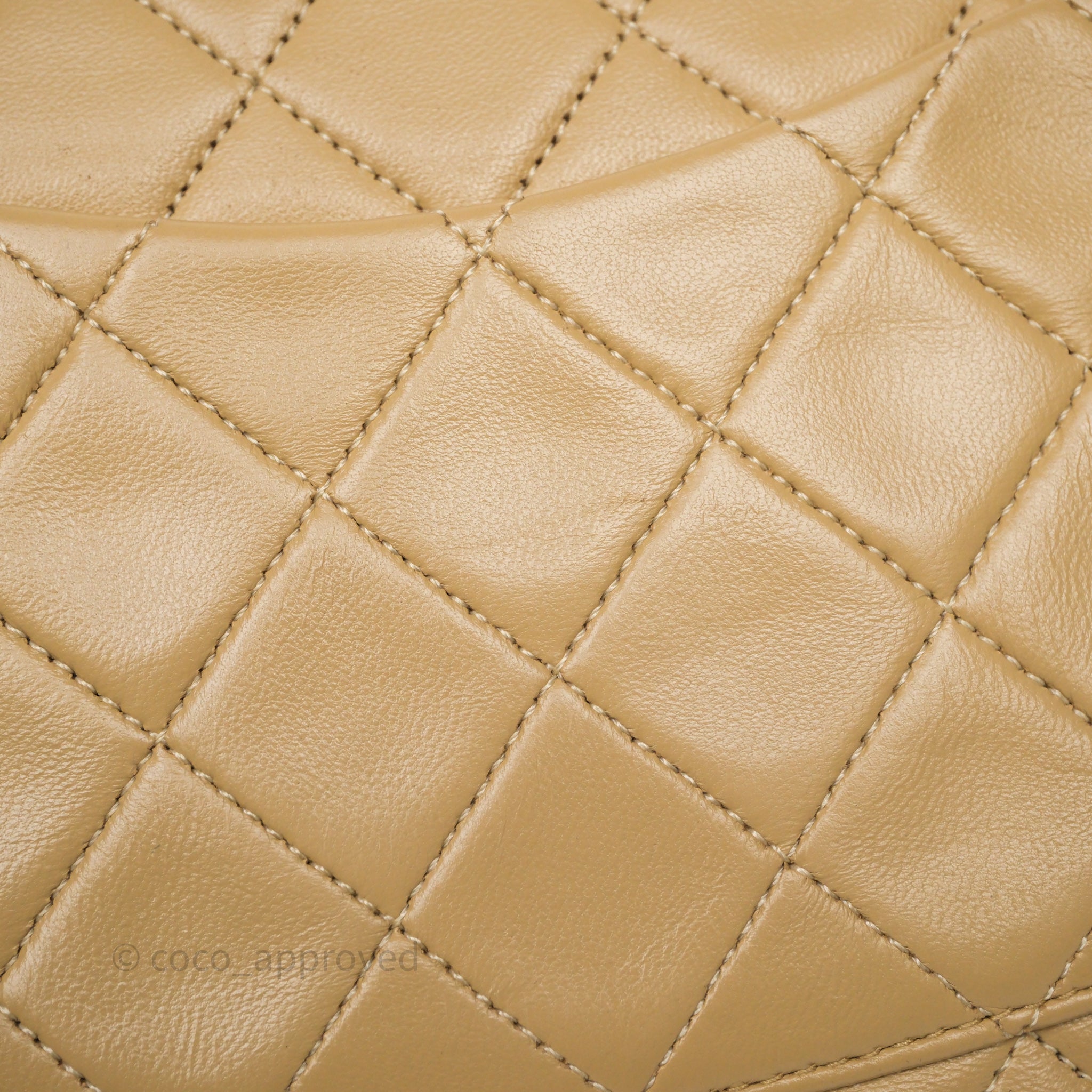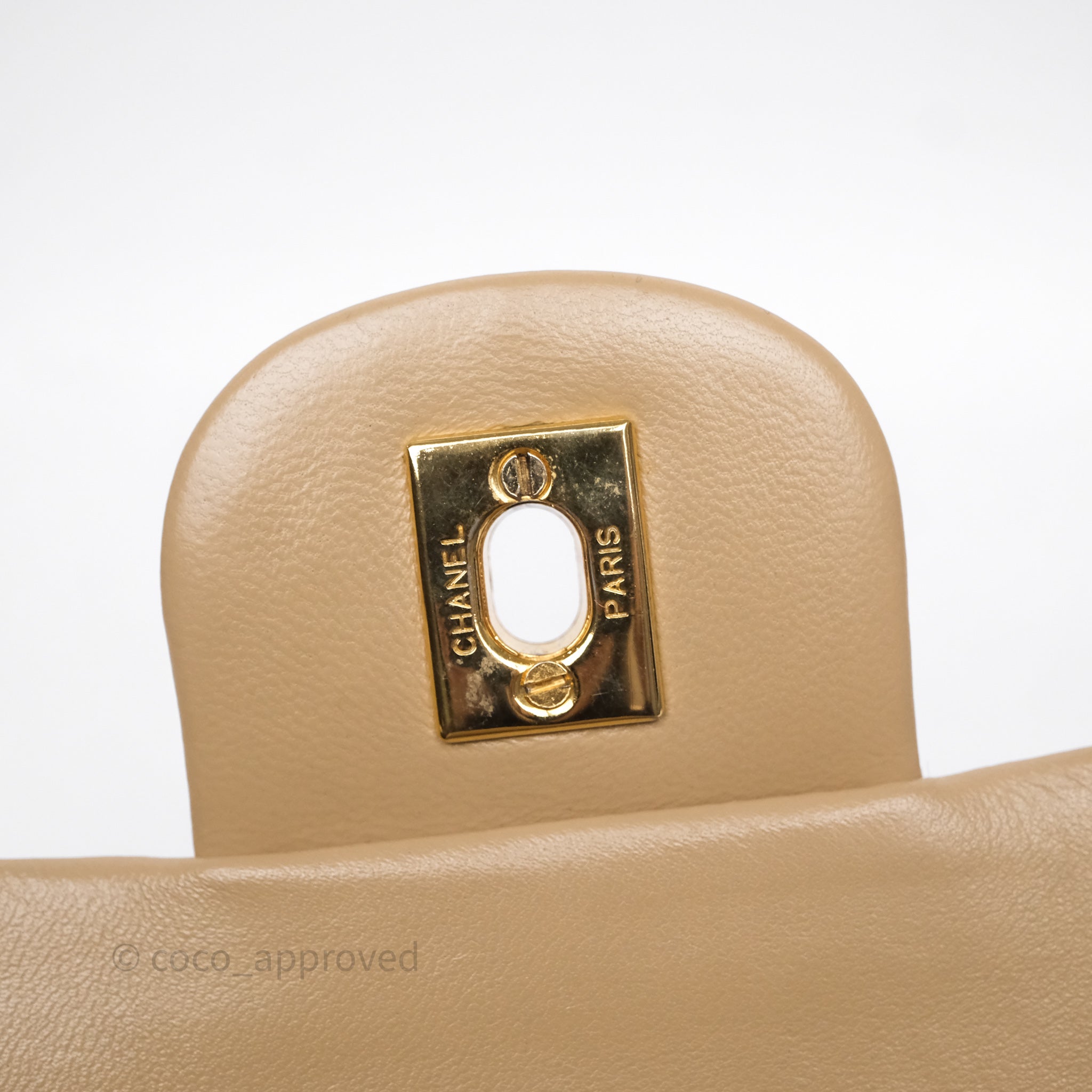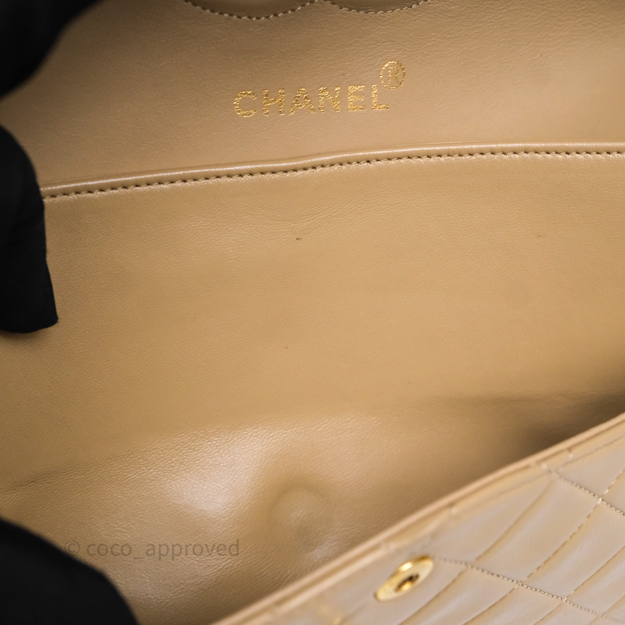 Chanel Vintage Medium Classic Flap Beige Lambskin 24K Gold Hardware