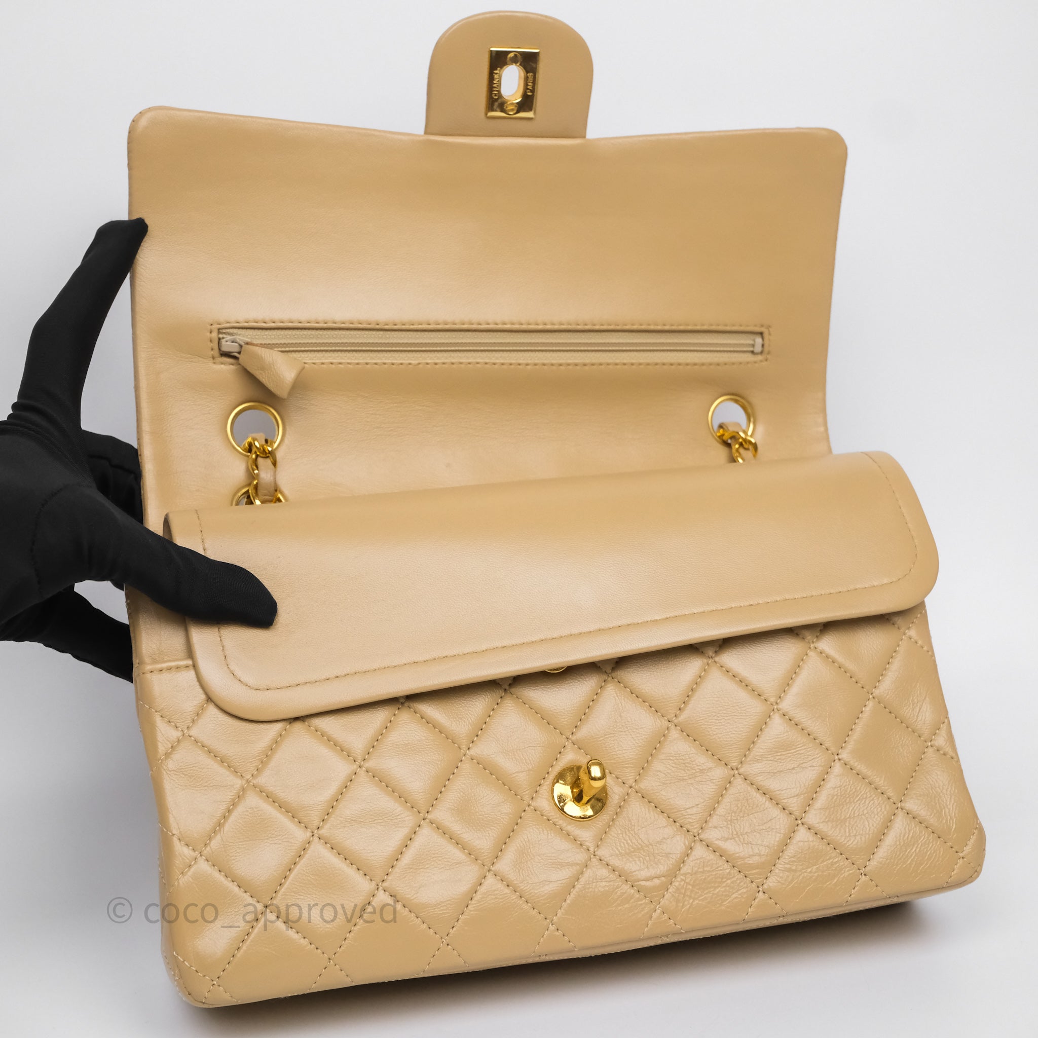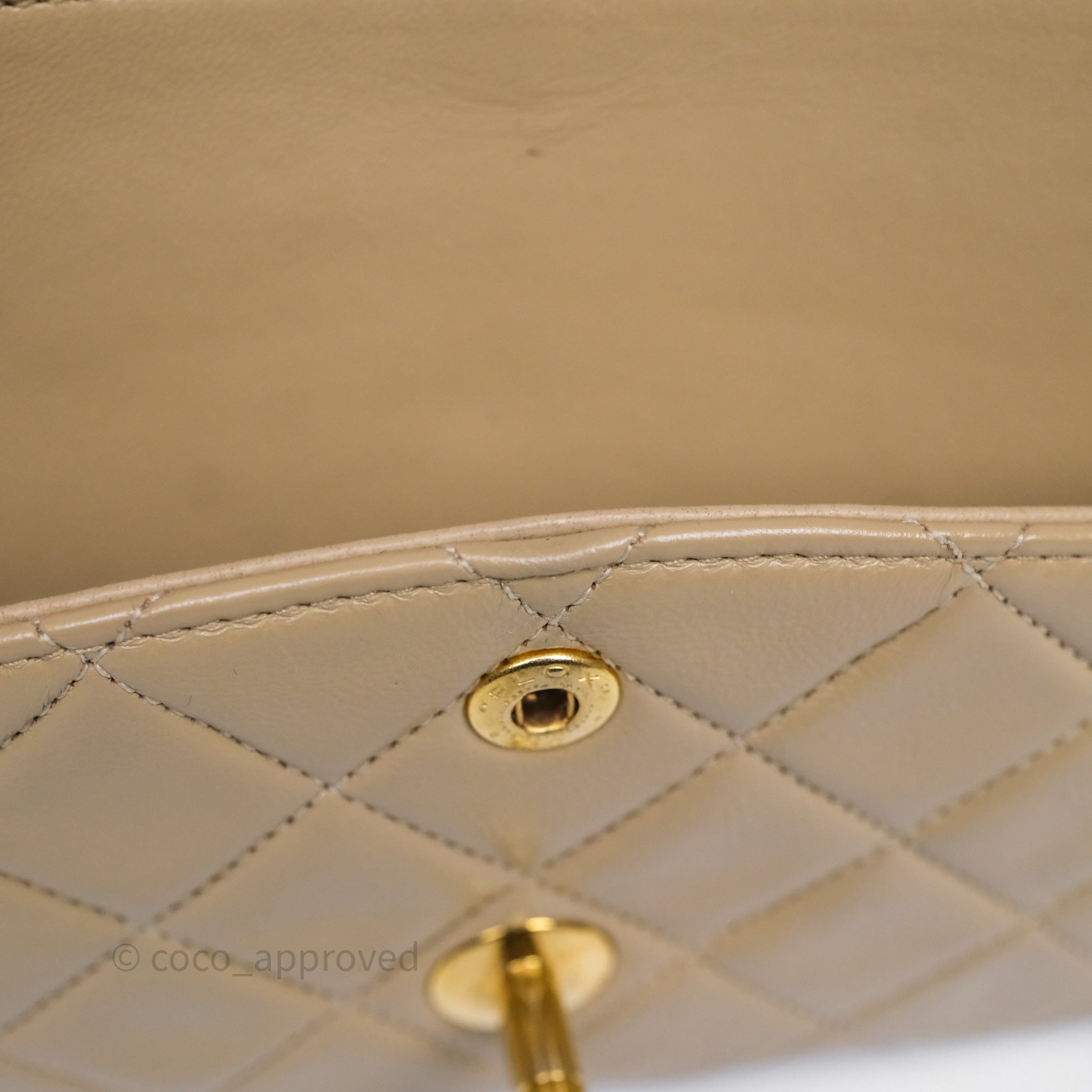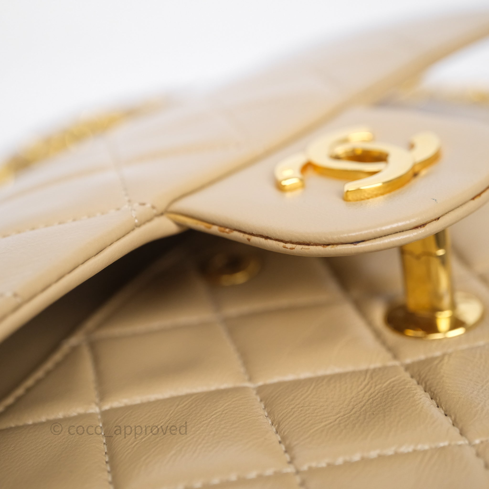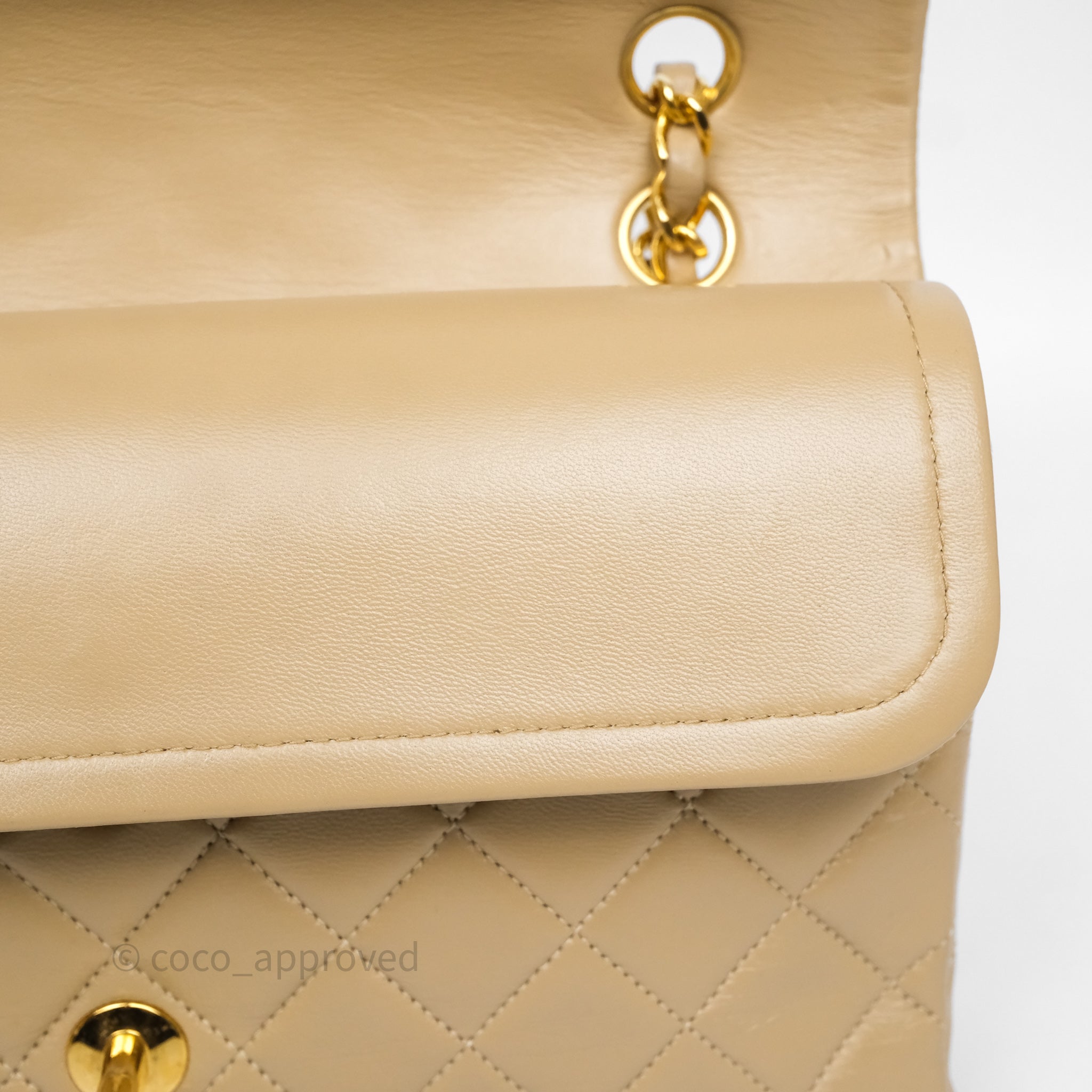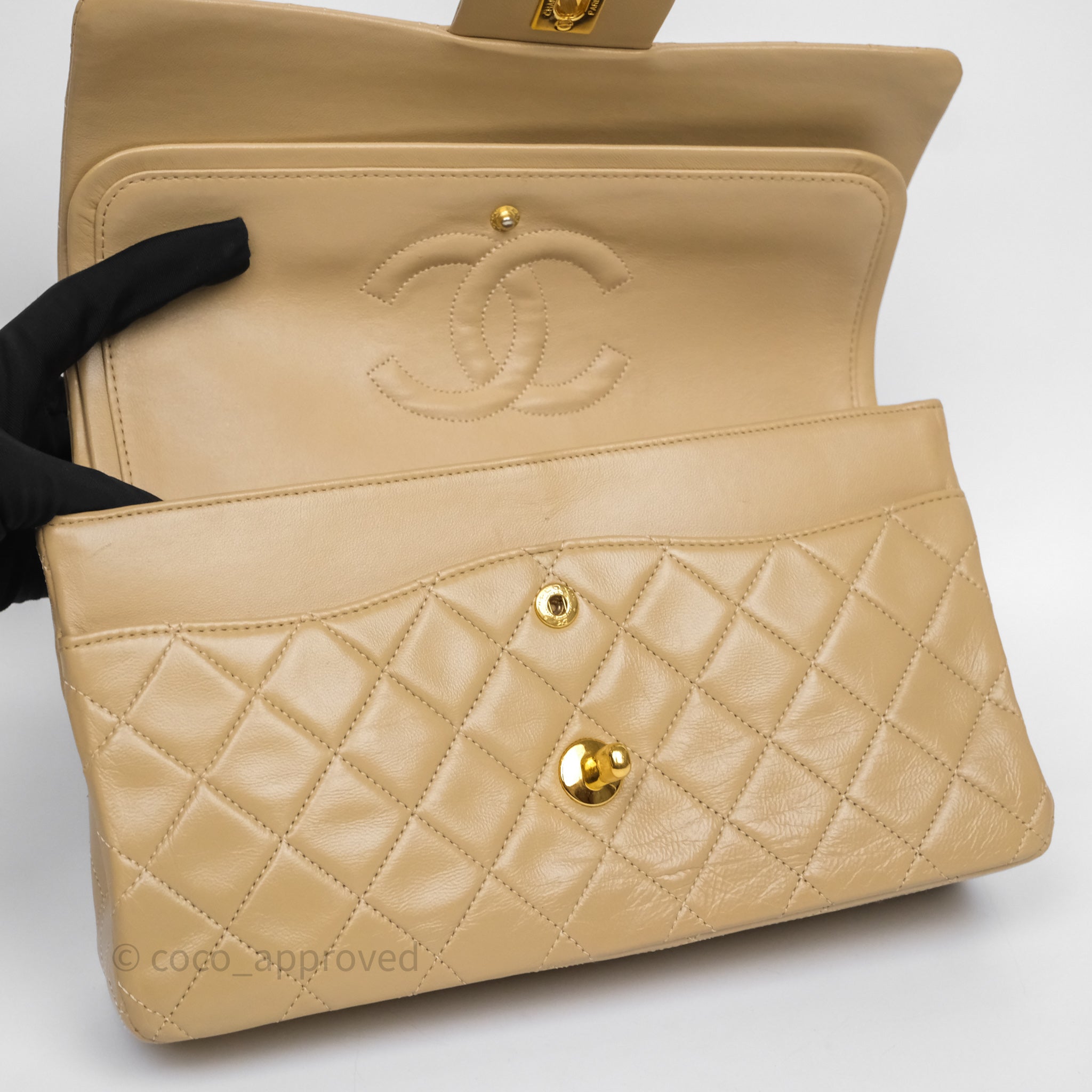Chanel Vintage Medium Classic Flap Beige Lambskin 24K Gold Hardware
