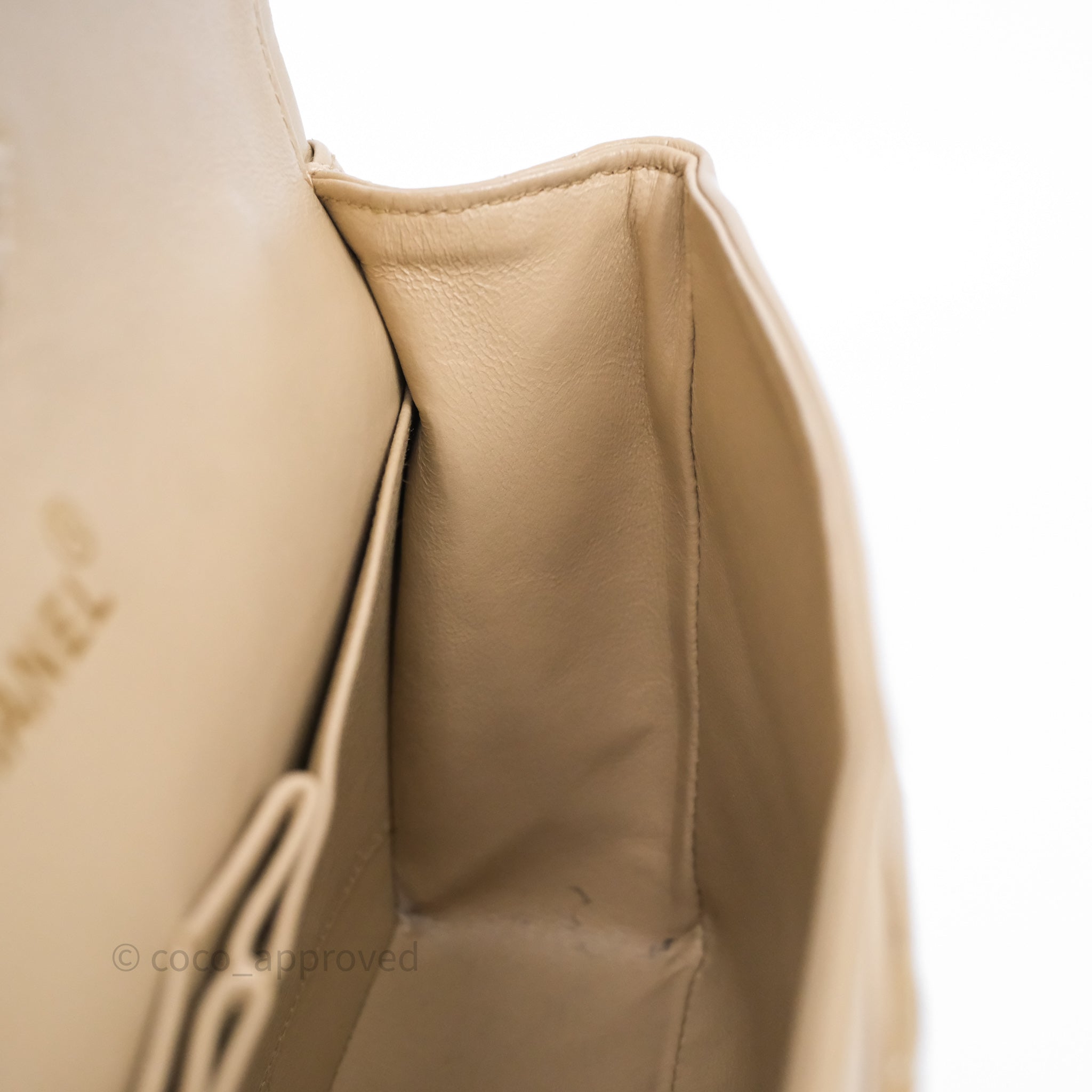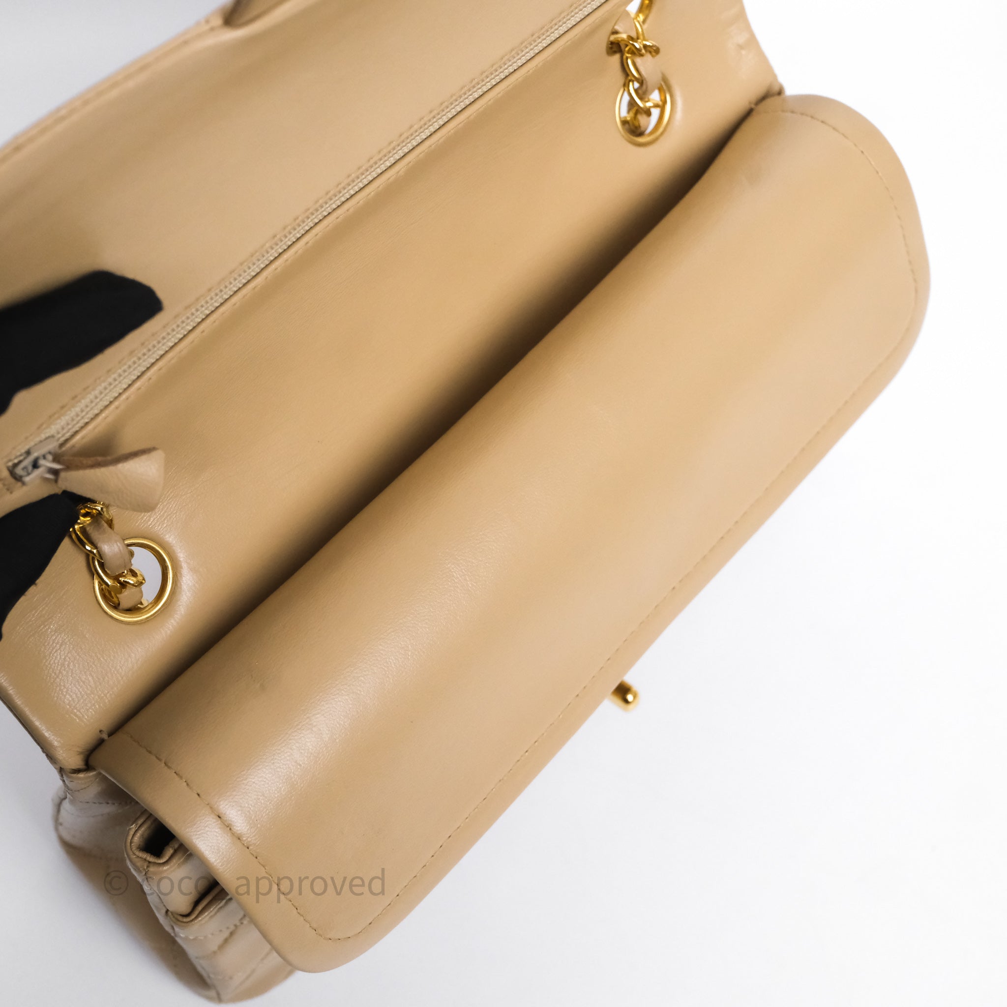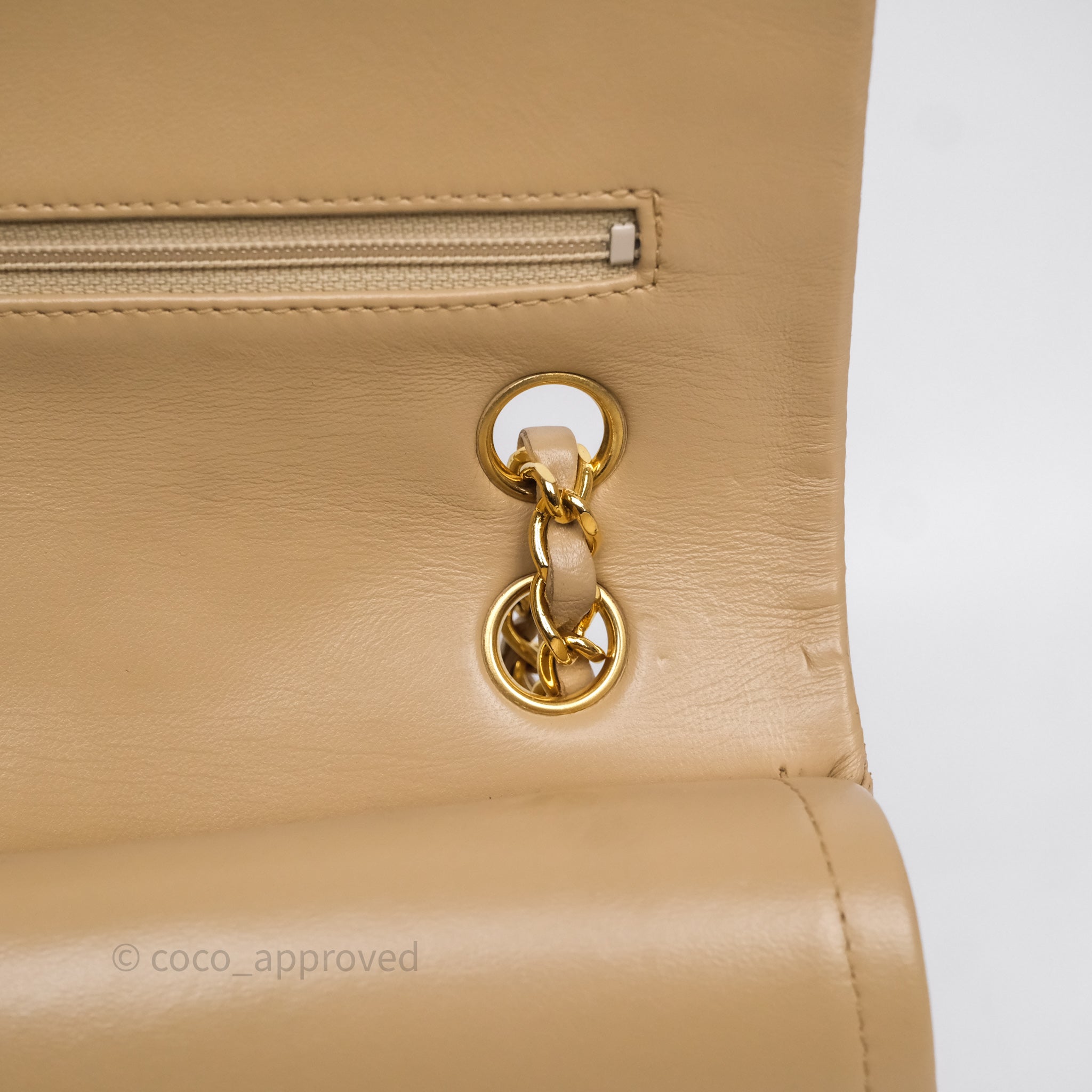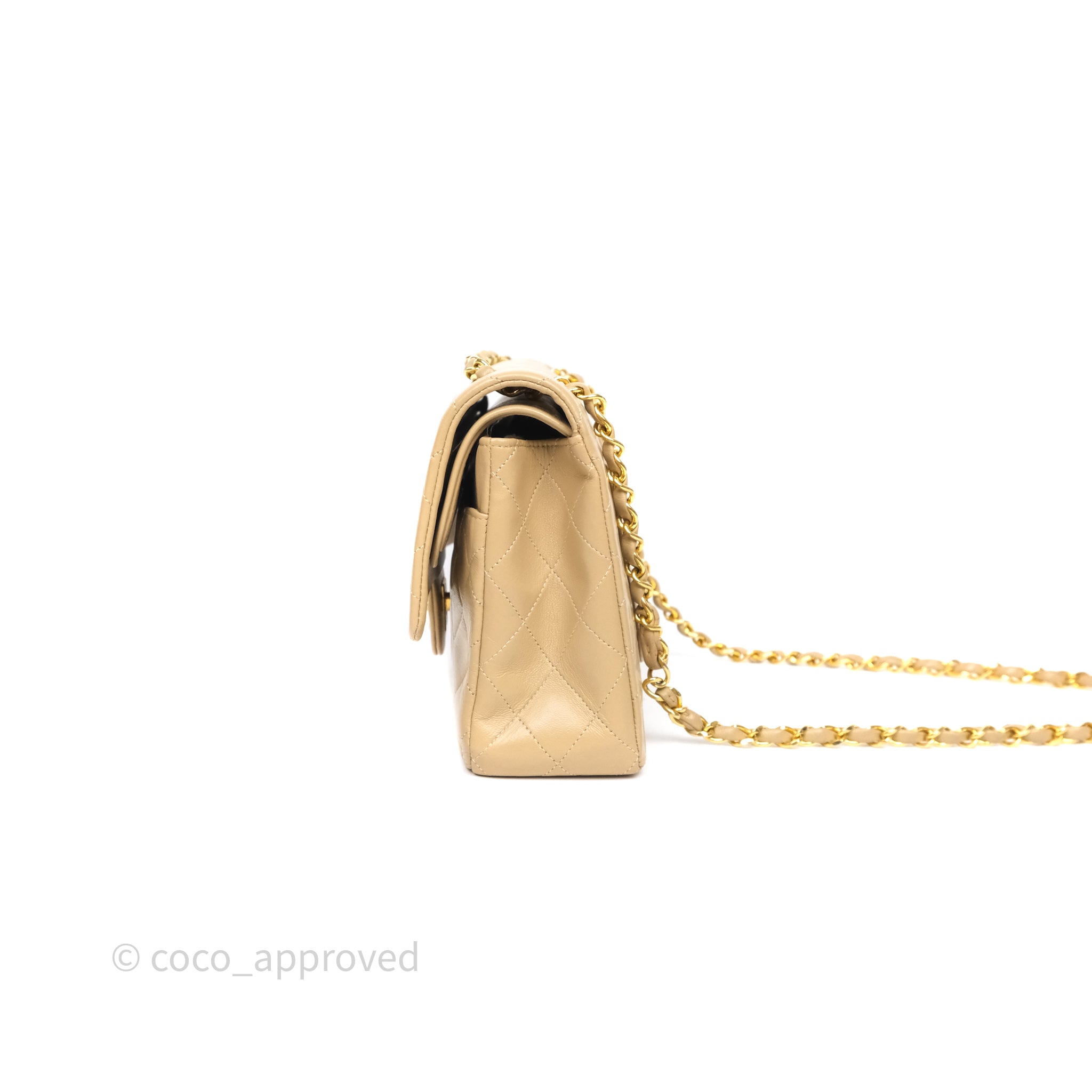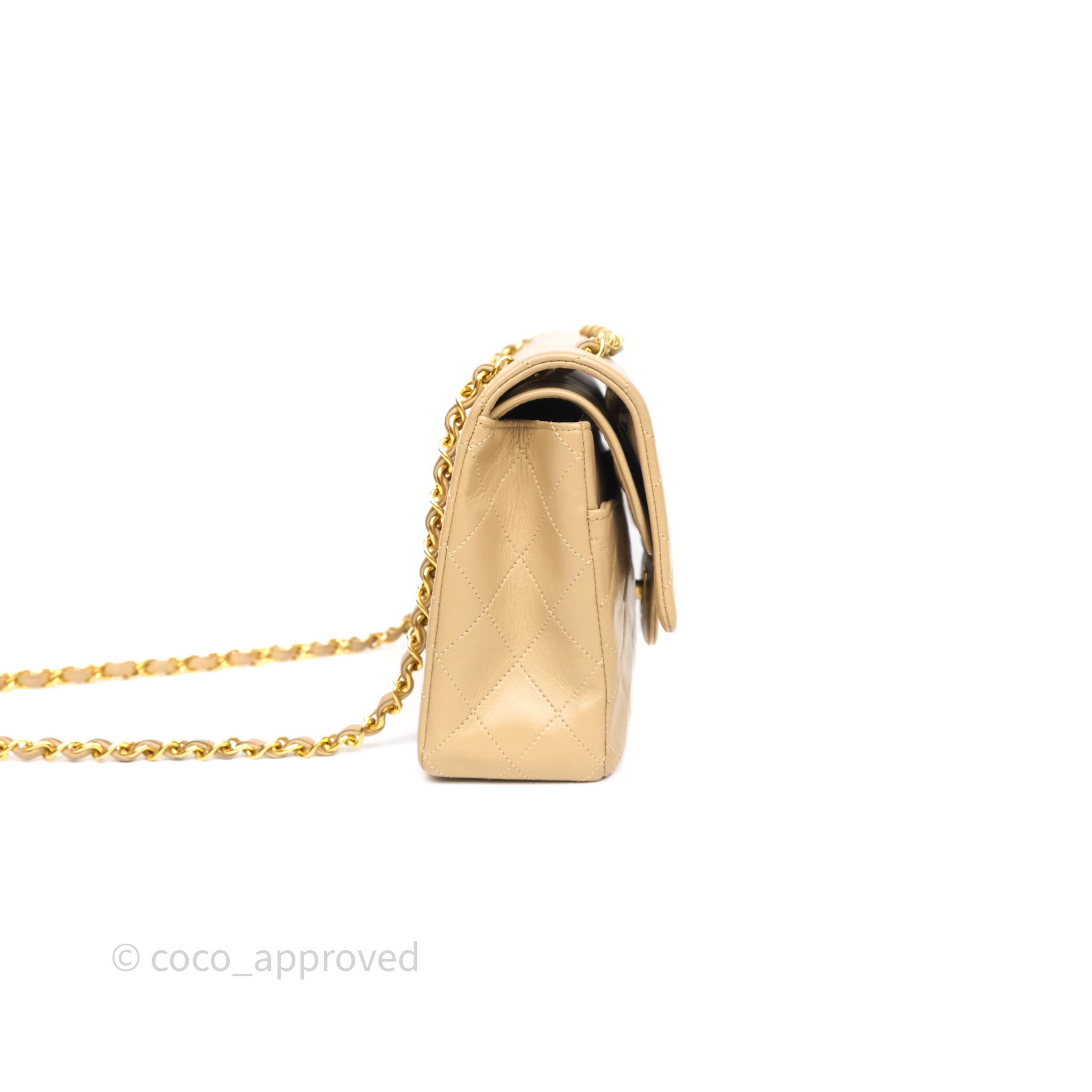 Chanel Vintage Medium Classic Flap Beige Lambskin 24K Gold Hardware