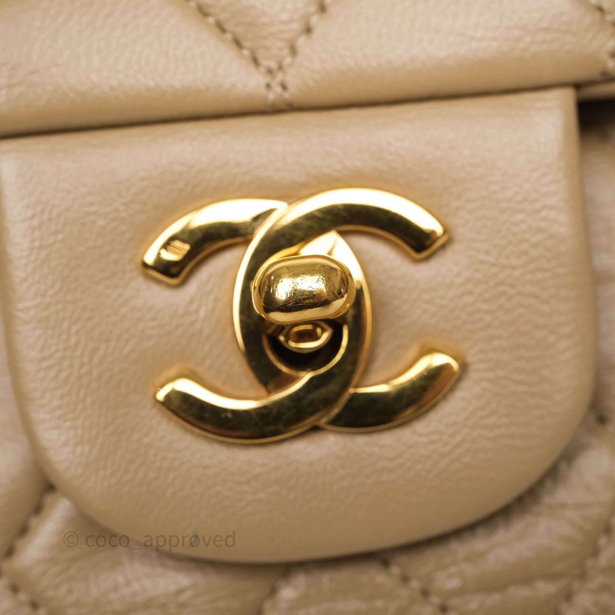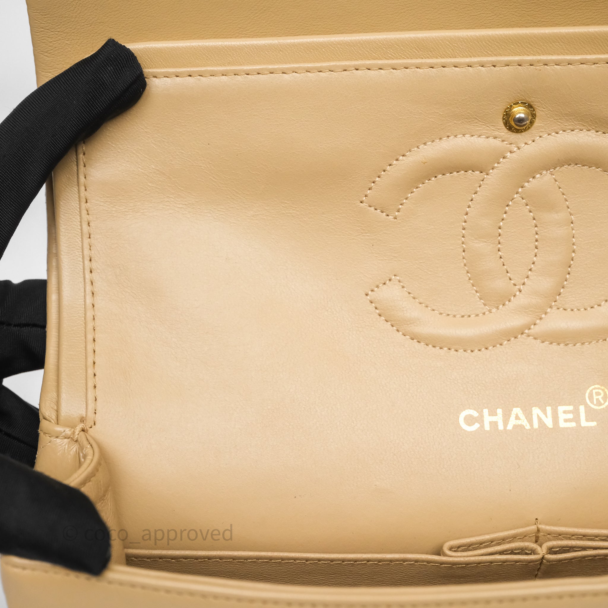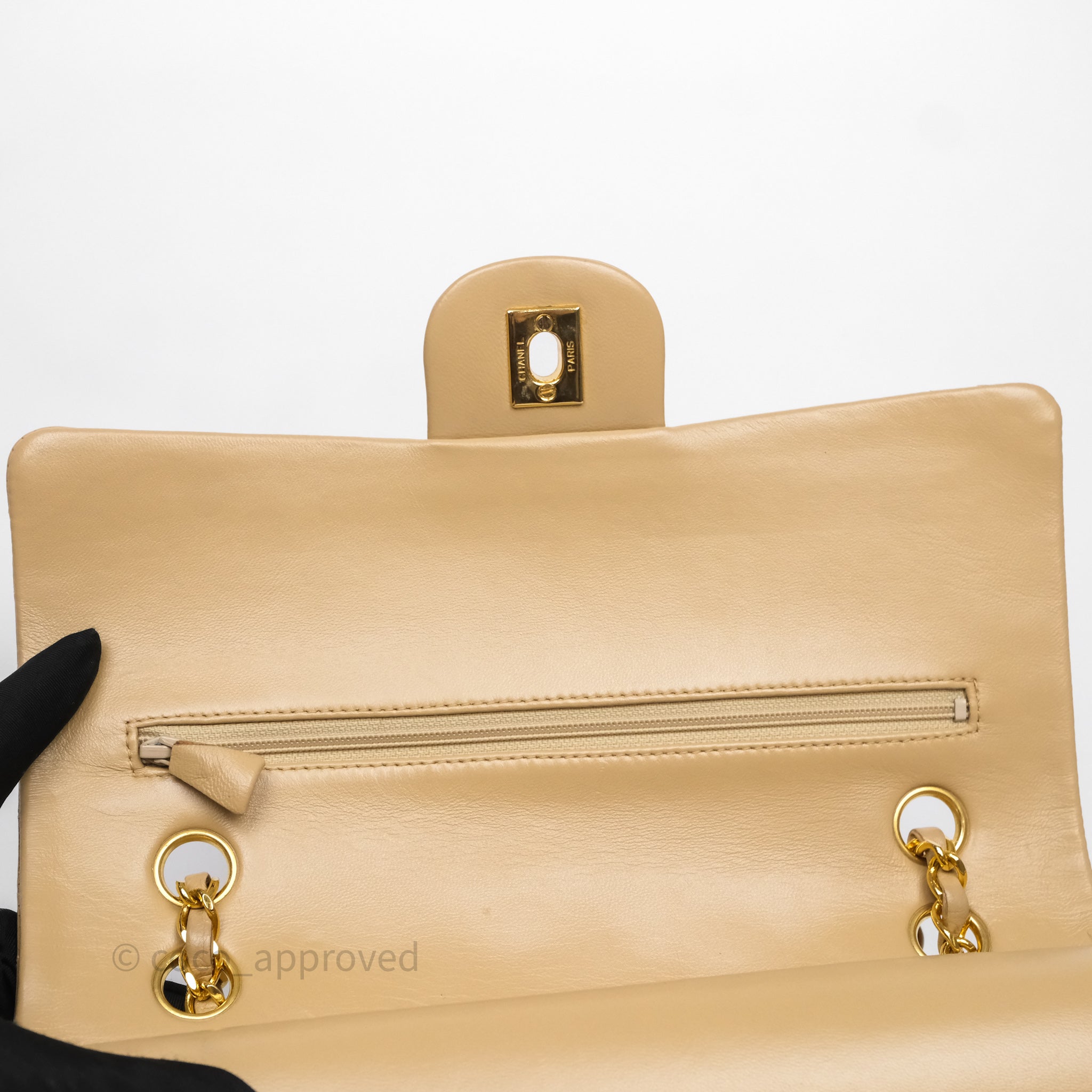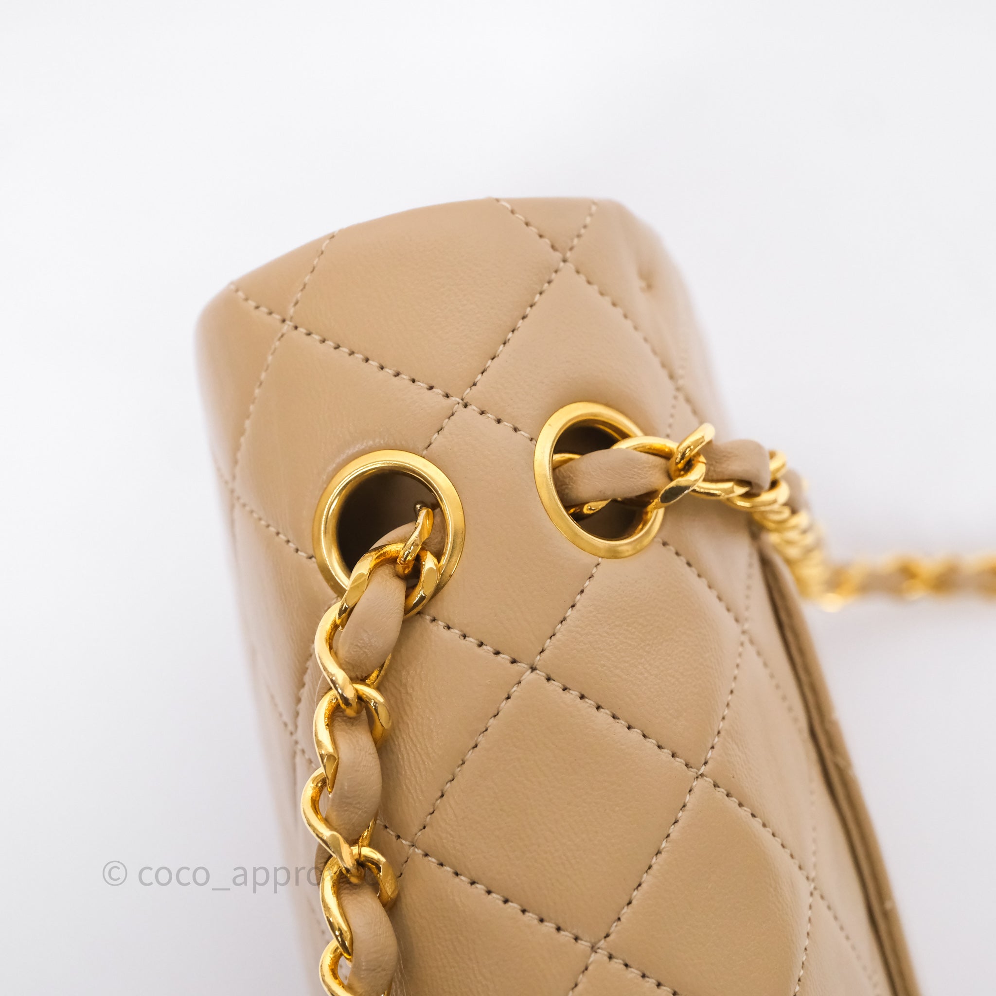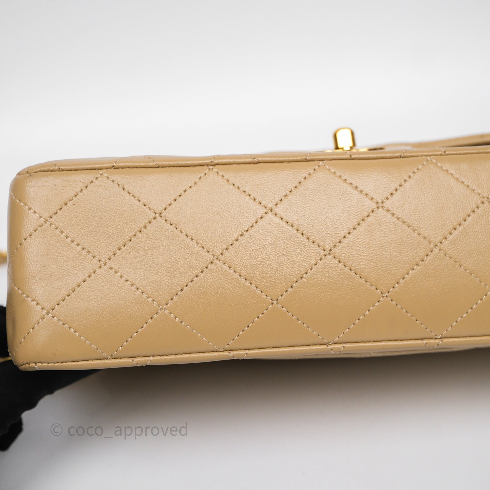 Chanel Vintage Medium Classic Flap Beige Lambskin 24K Gold Hardware