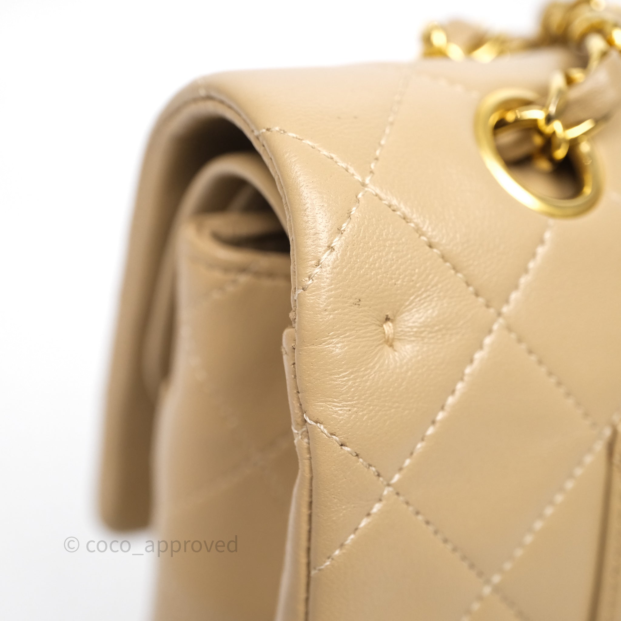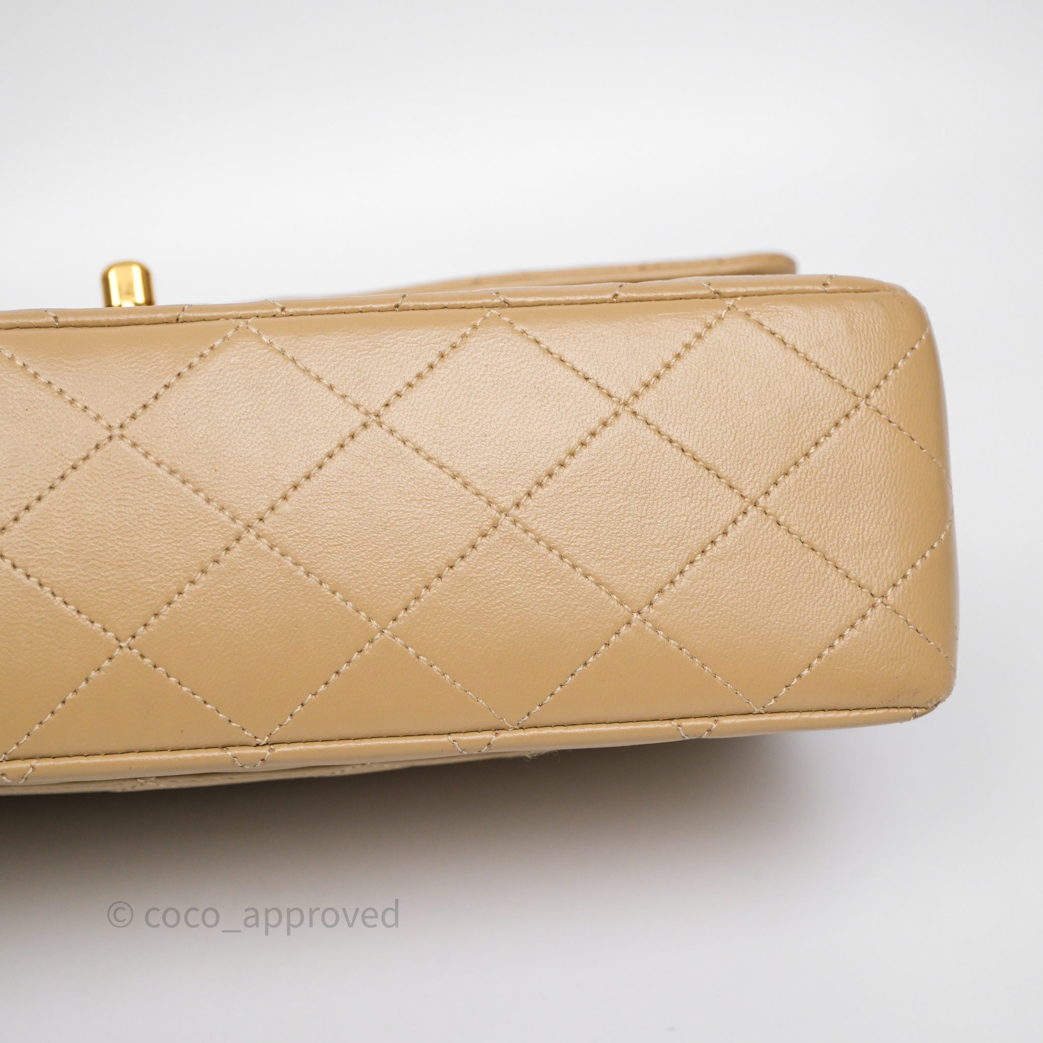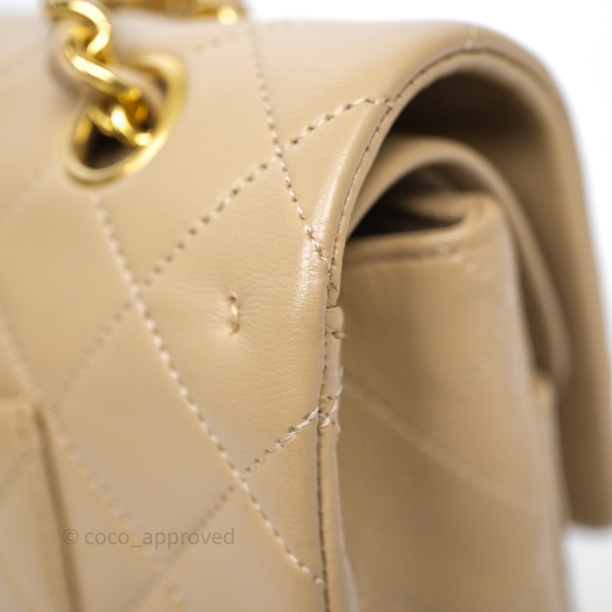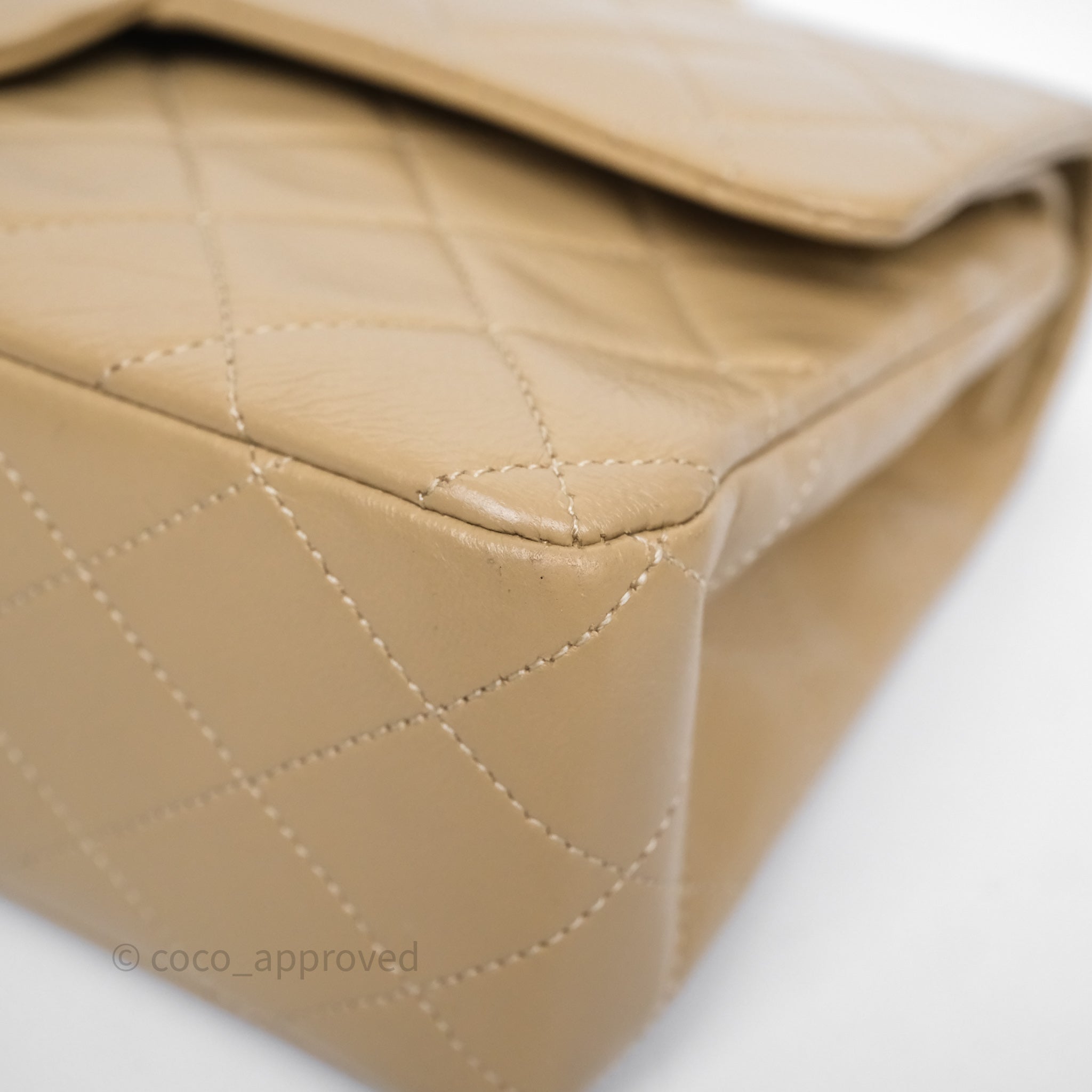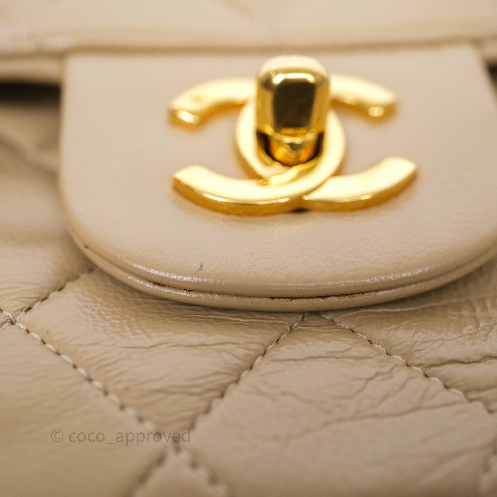 Chanel Vintage Medium Classic Flap Beige Lambskin 24K Gold Hardware