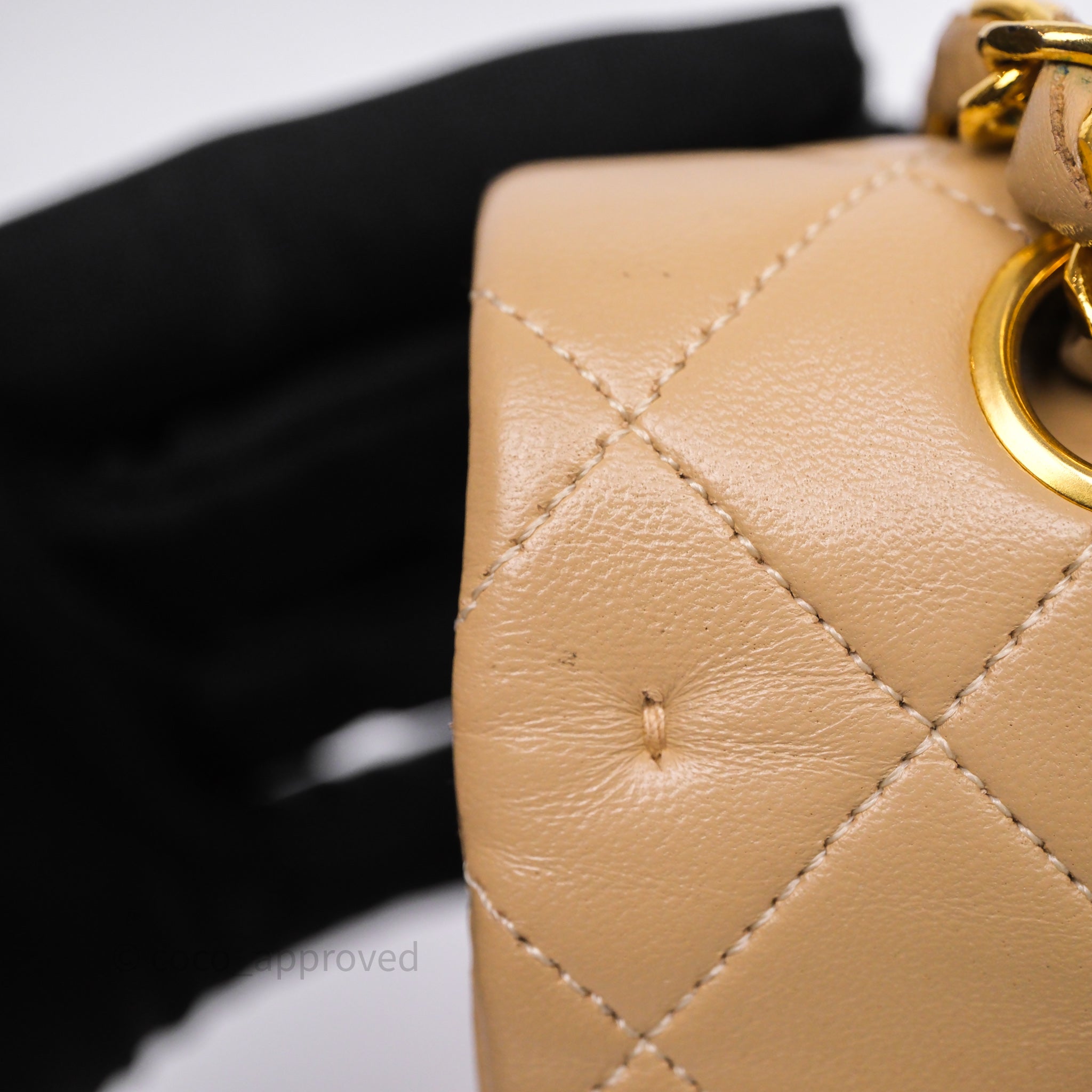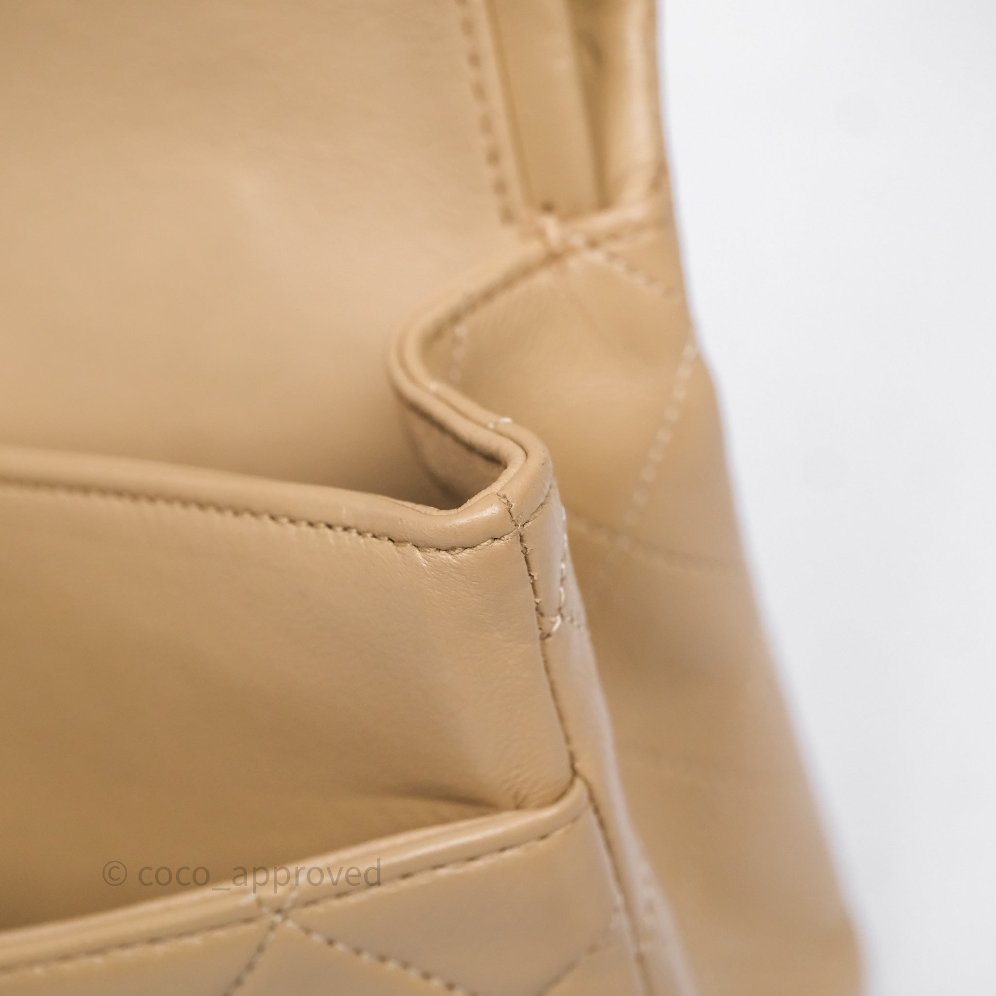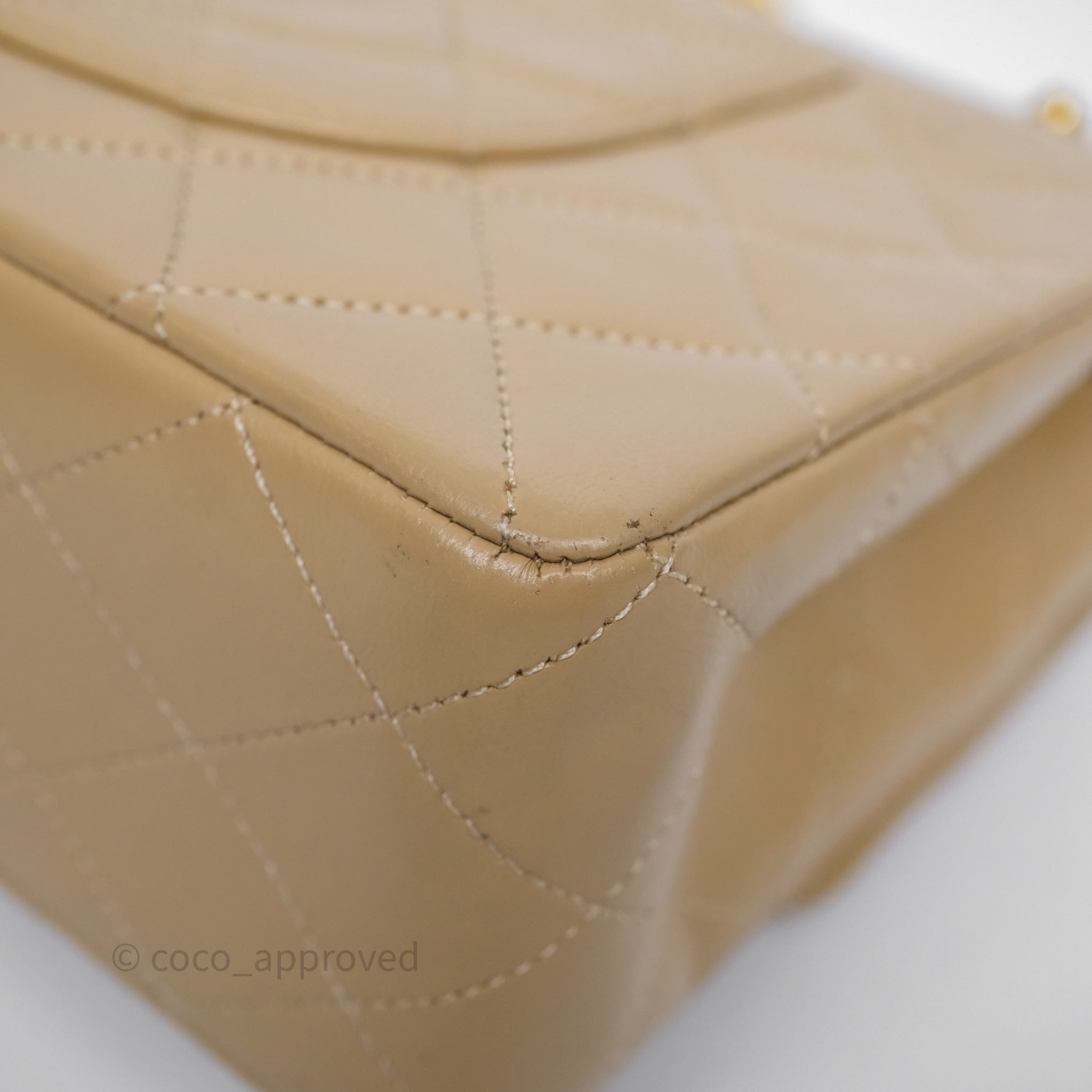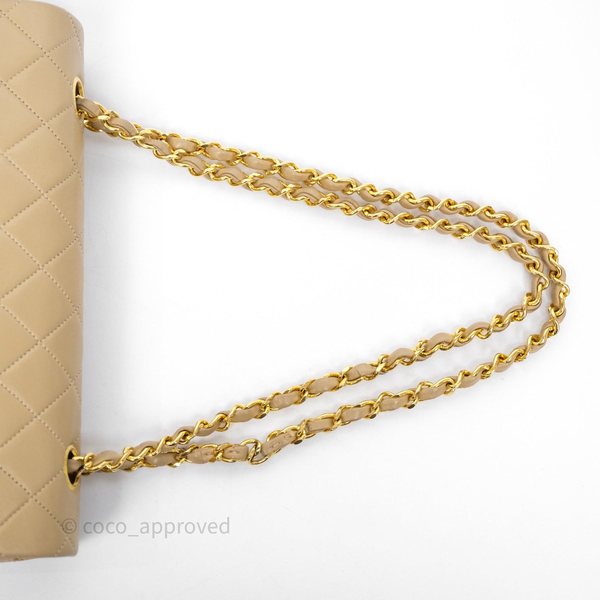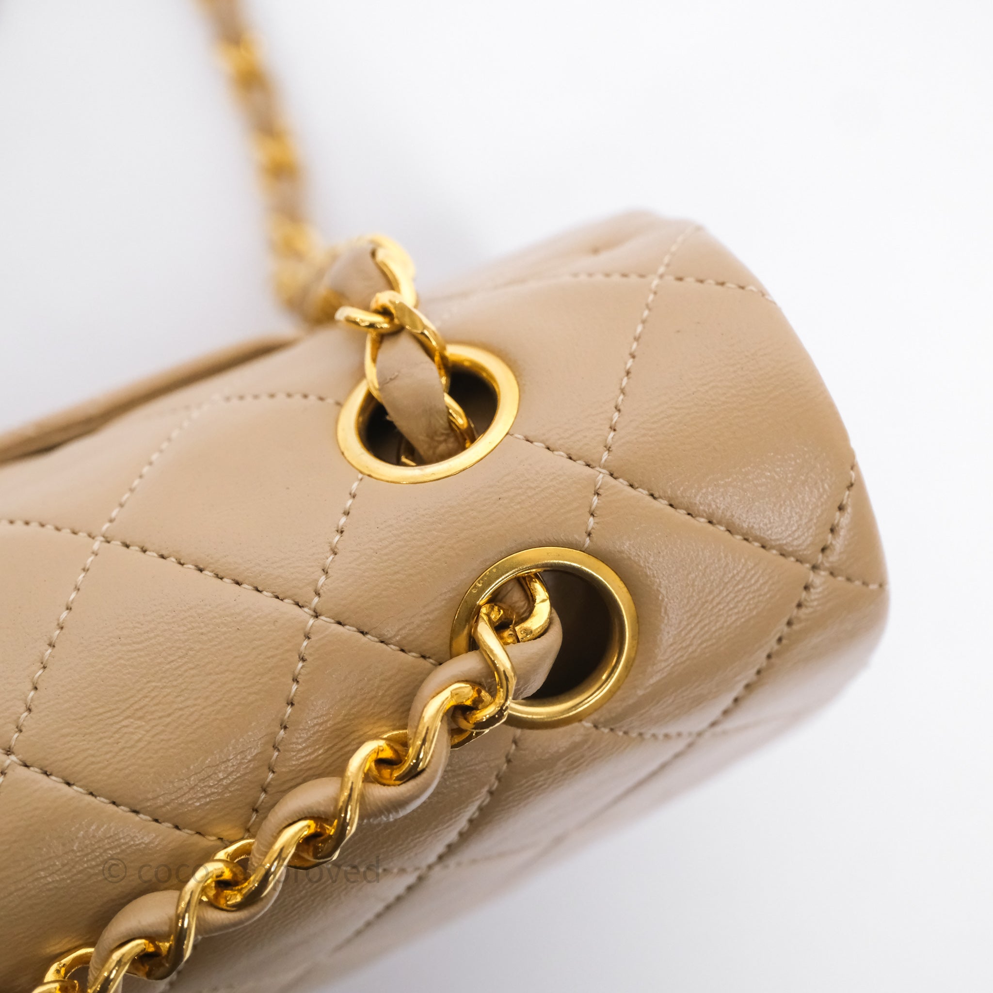 Chanel Vintage Medium Classic Flap Beige Lambskin 24K Gold Hardware