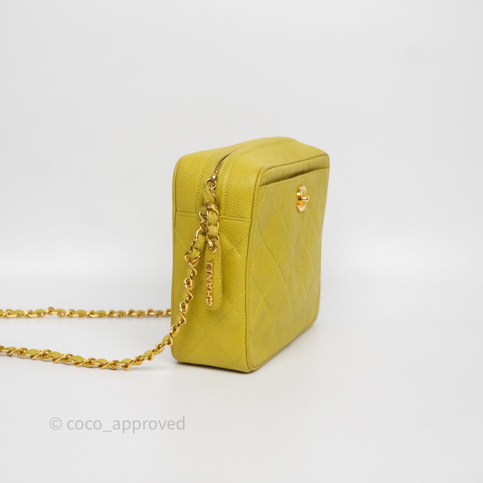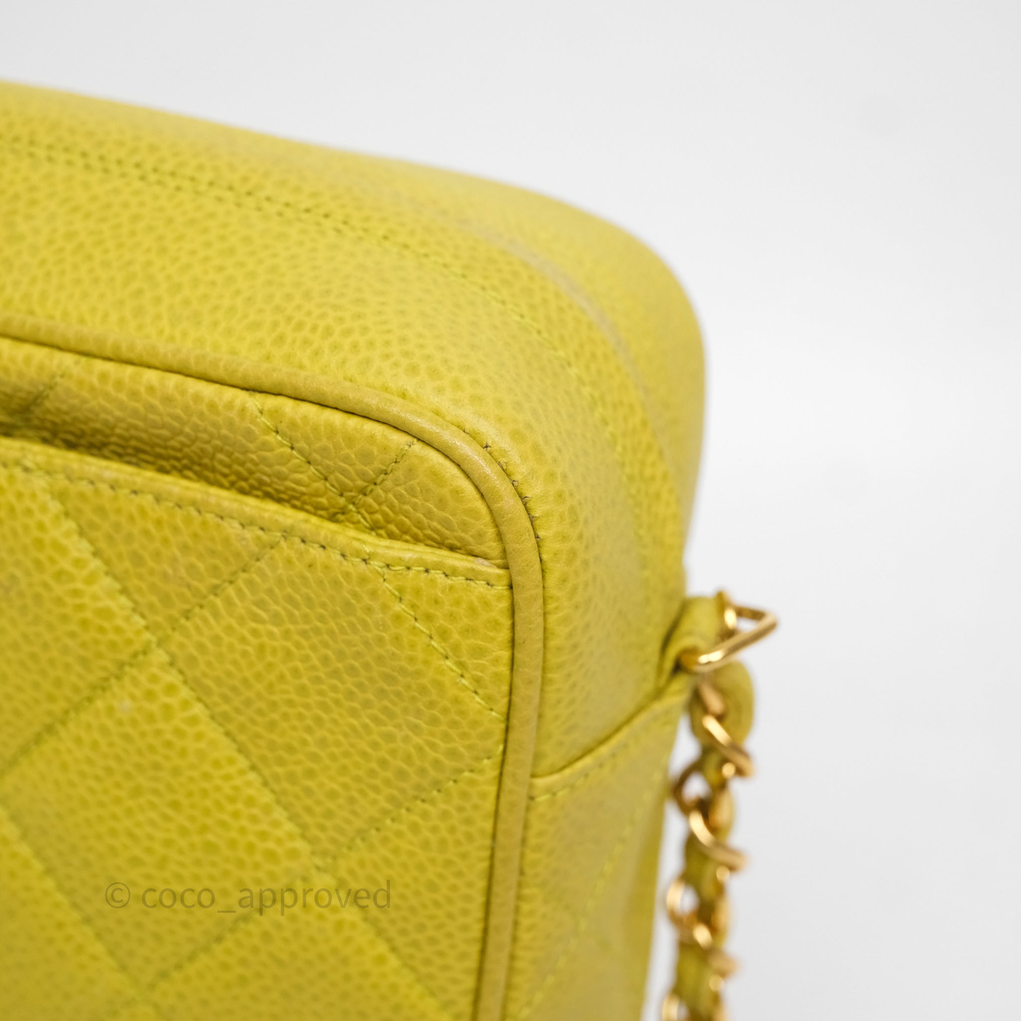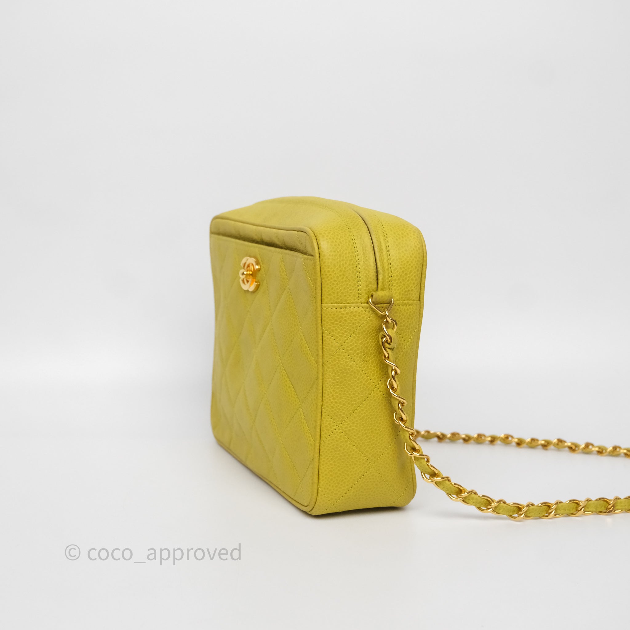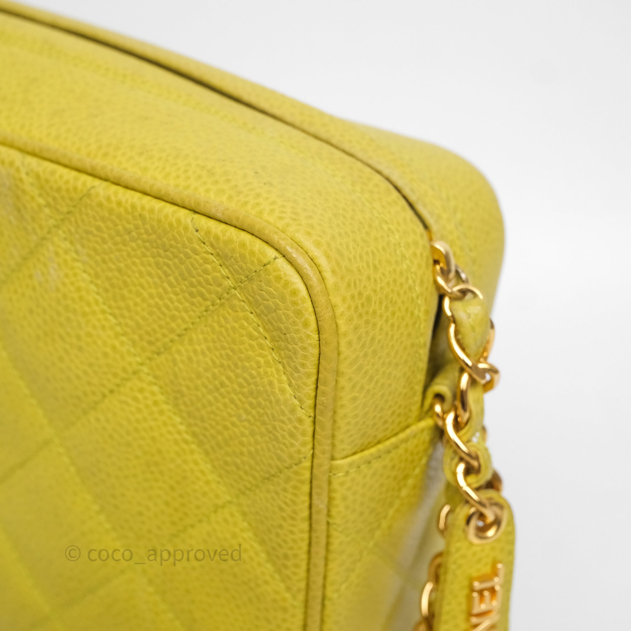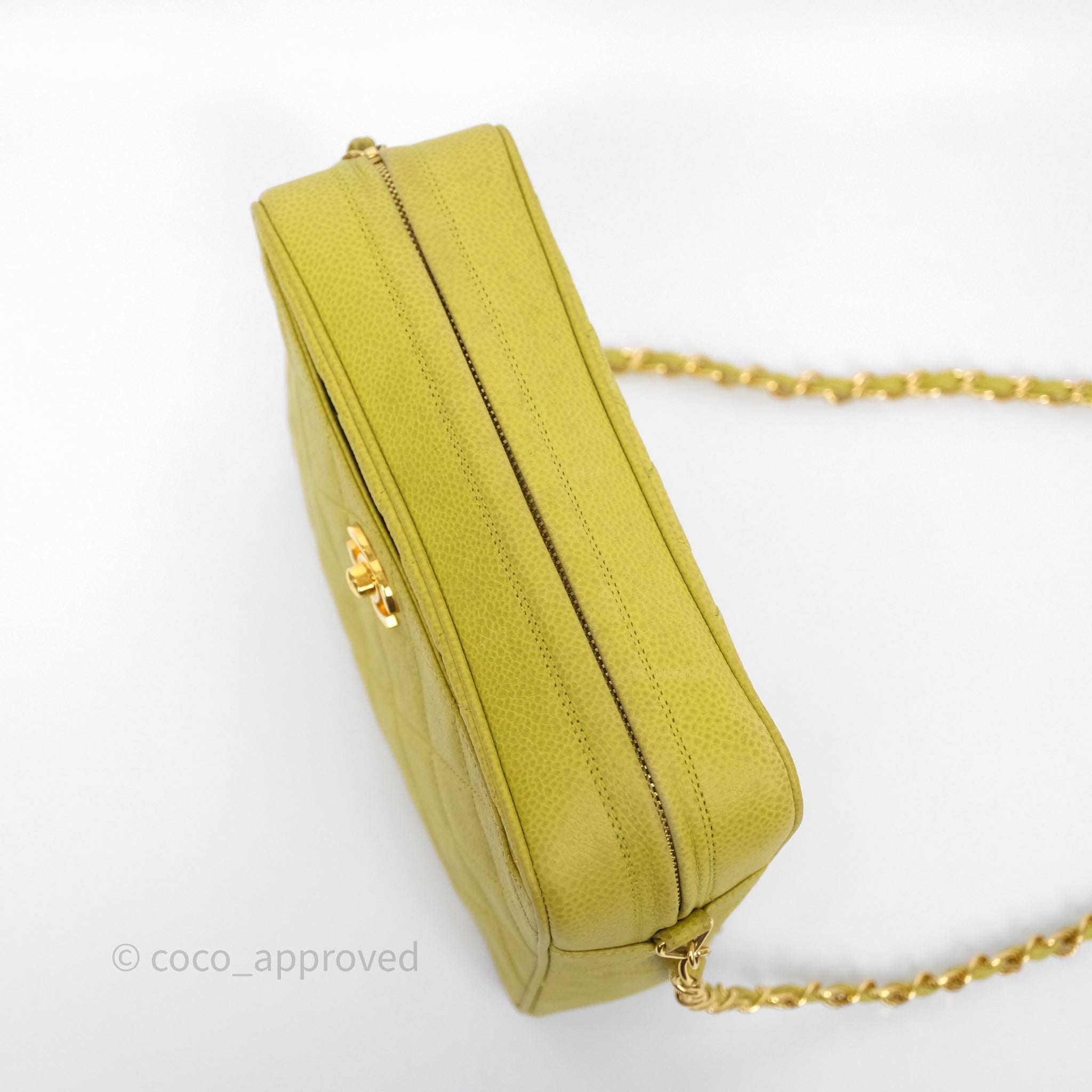 Chanel Vintage Quilted Camera Bag Green Yellow Caviar Gold Hardware
